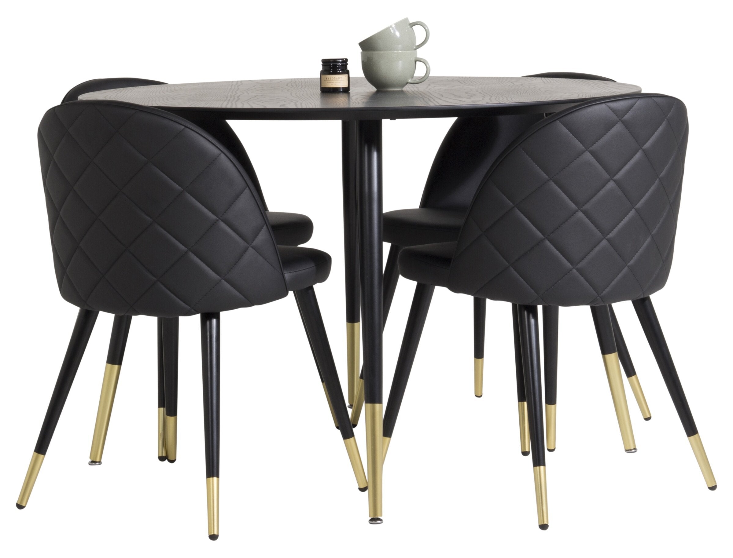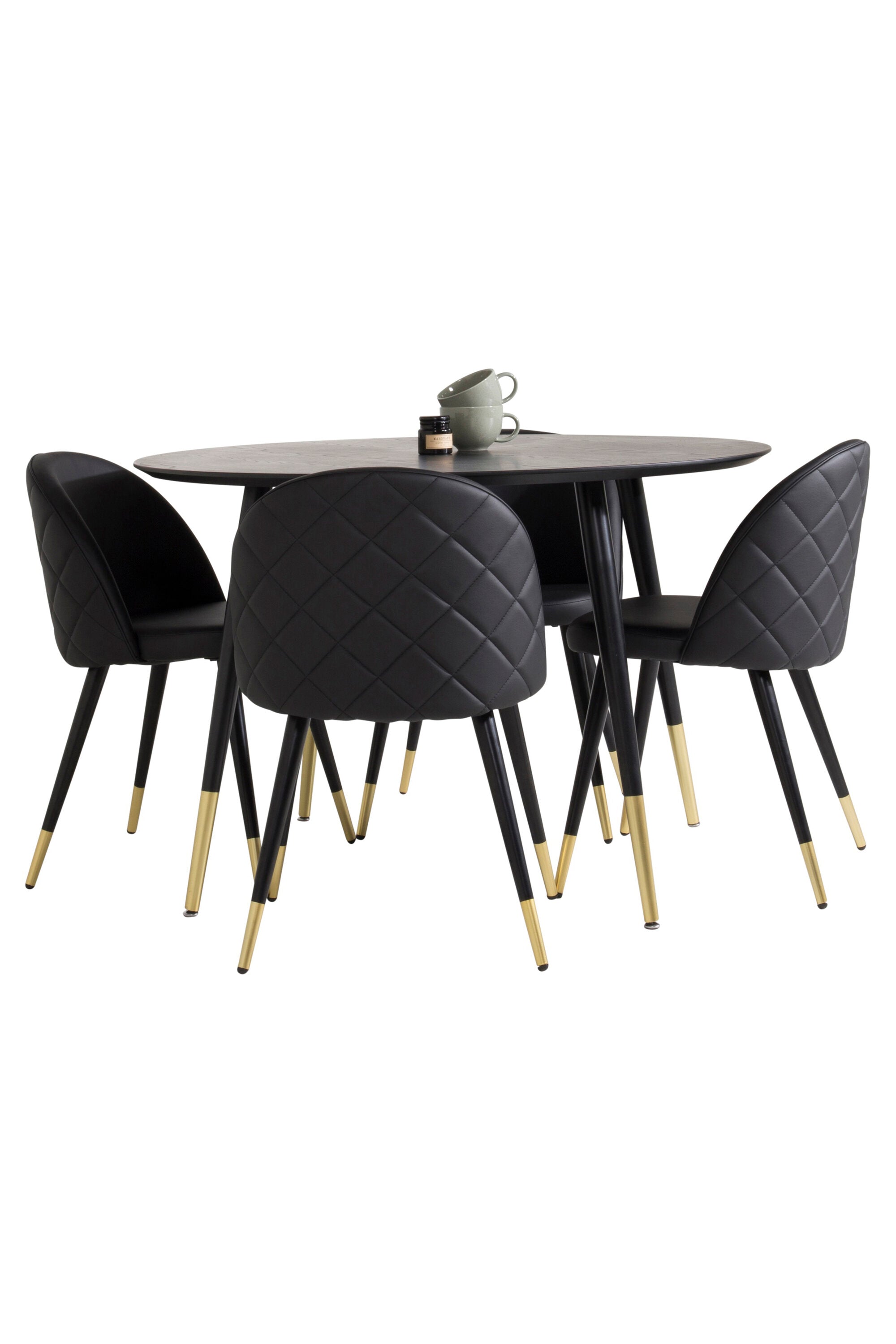 Jídelní stůl Dipp - 115 cm - Černá dýha / černé nohy s mosazným dipp Sametové stolování