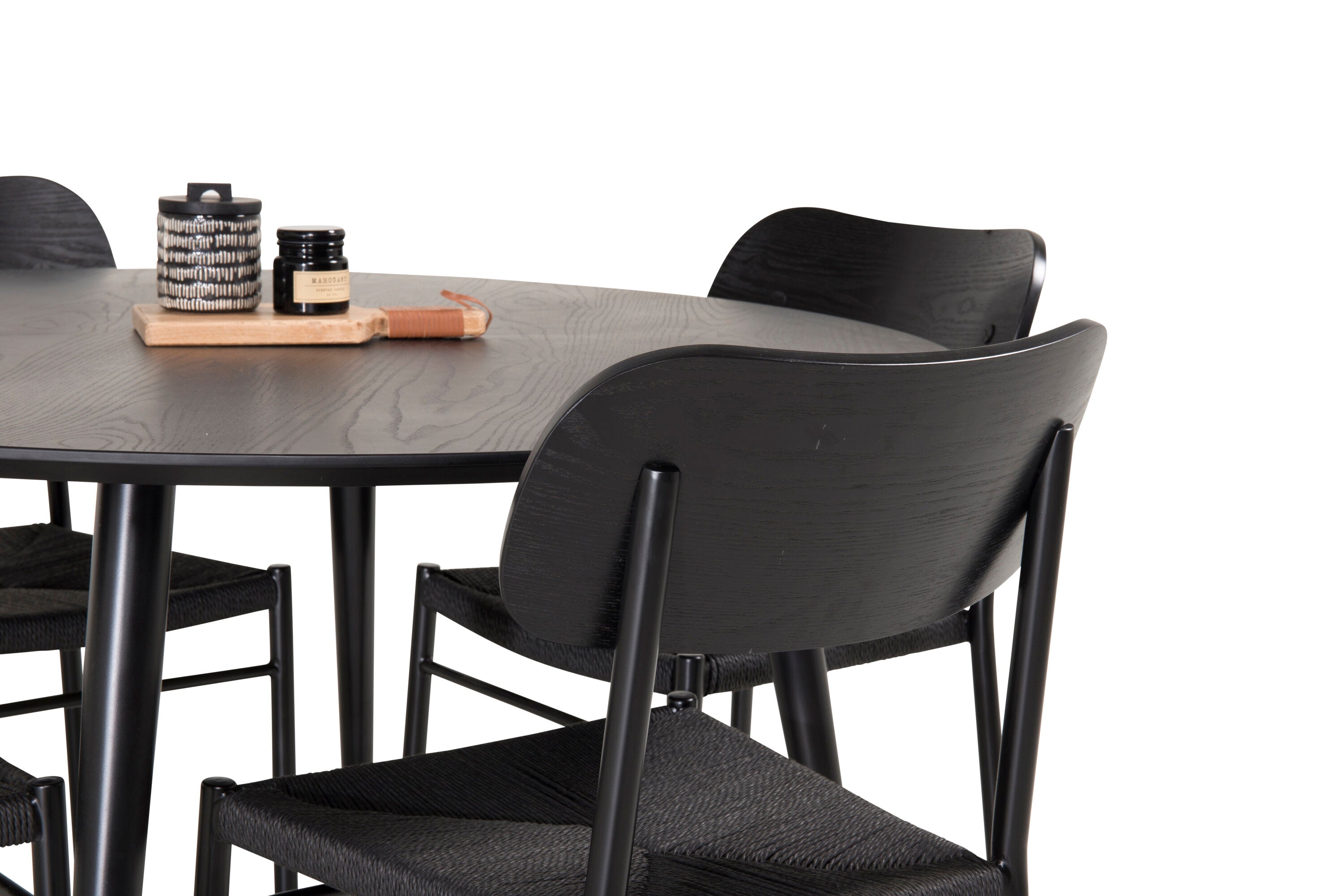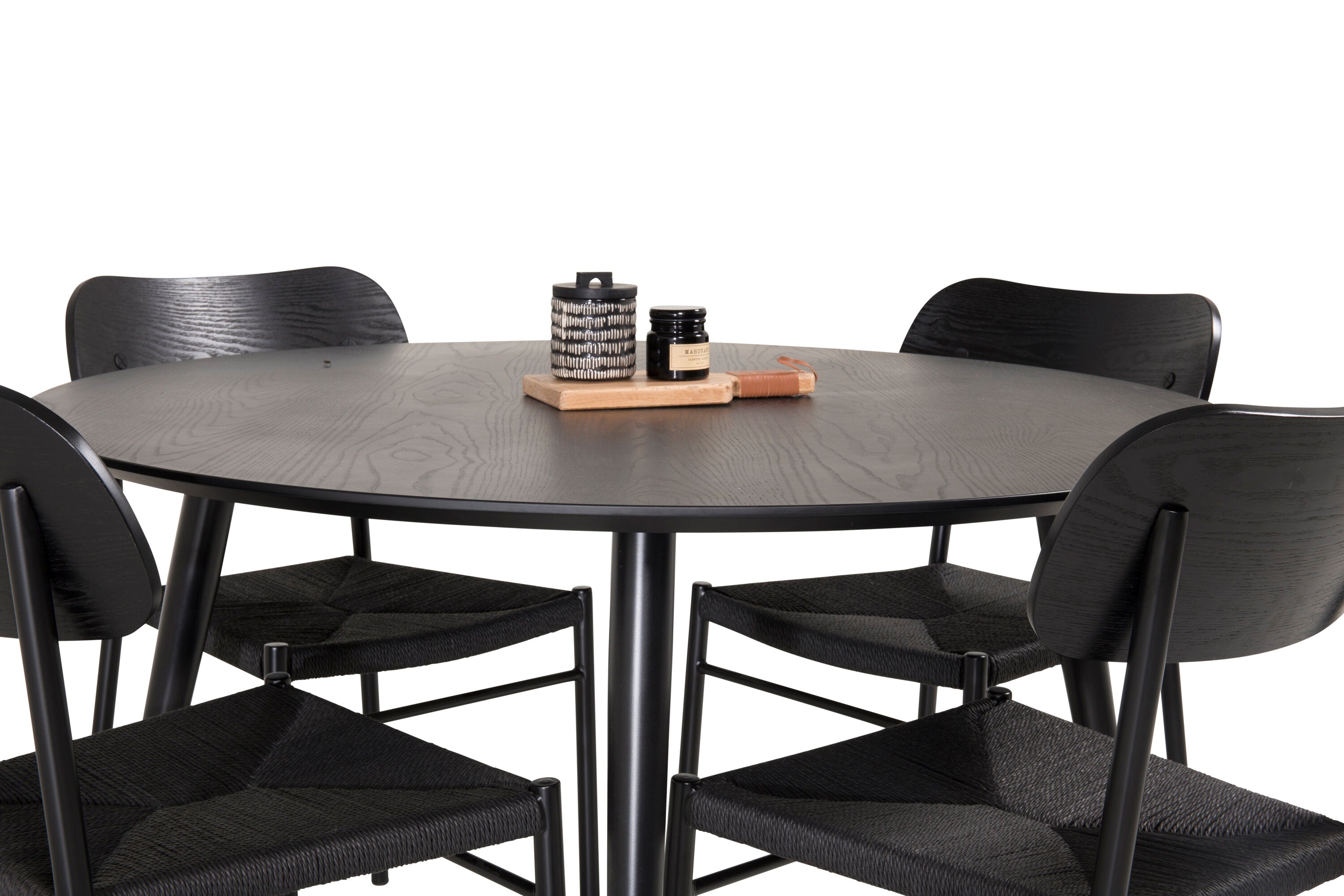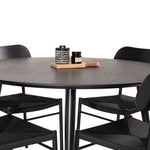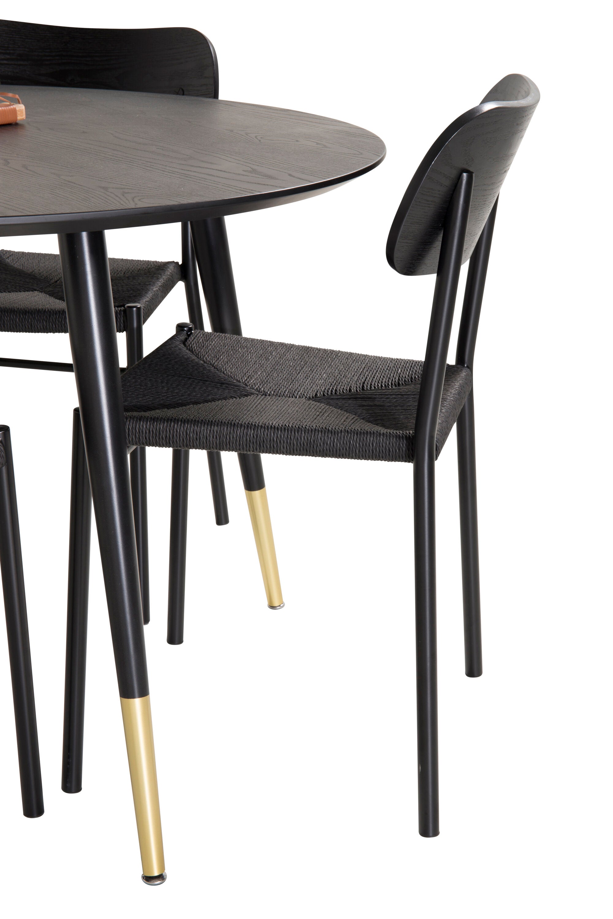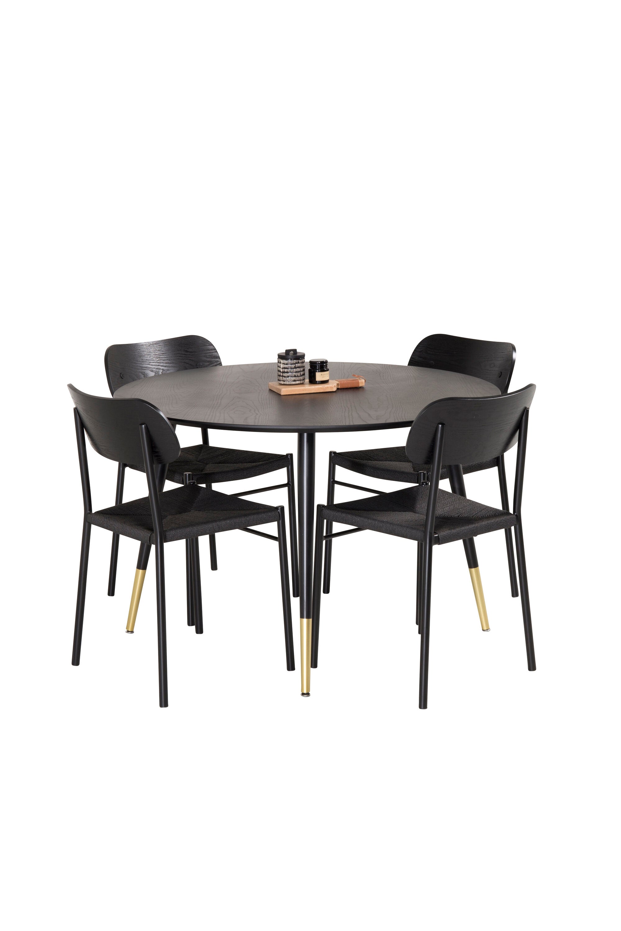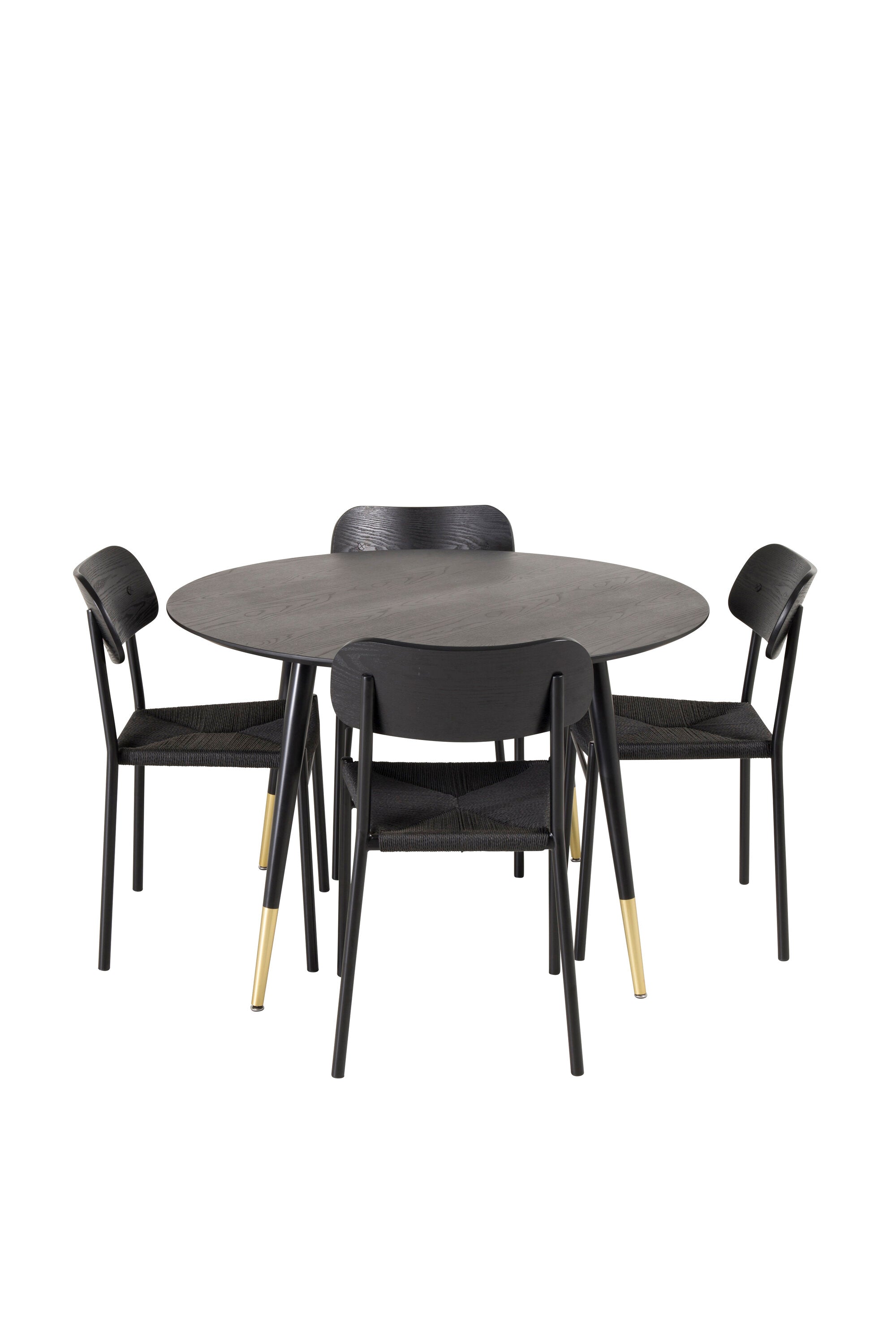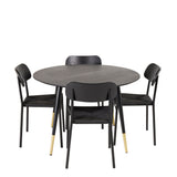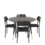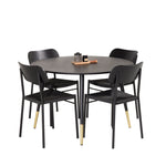 Jídelní stůl Dipp - 115 cm - Černá dýha / černé nohy s mosazným dippem + Jídelní židle Polly - Černá / Černá _4