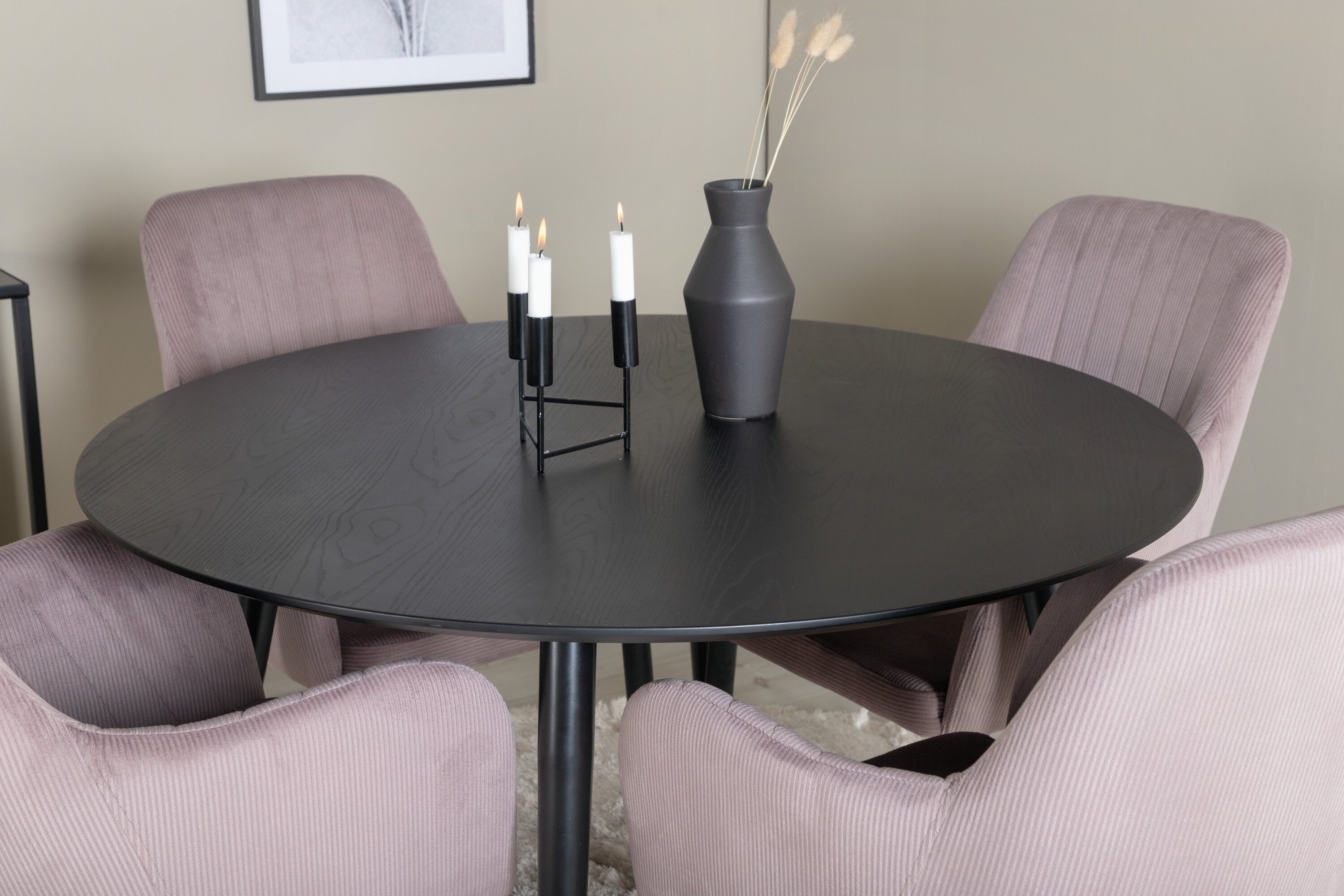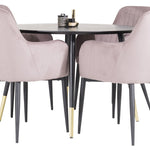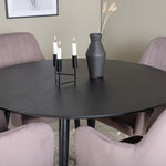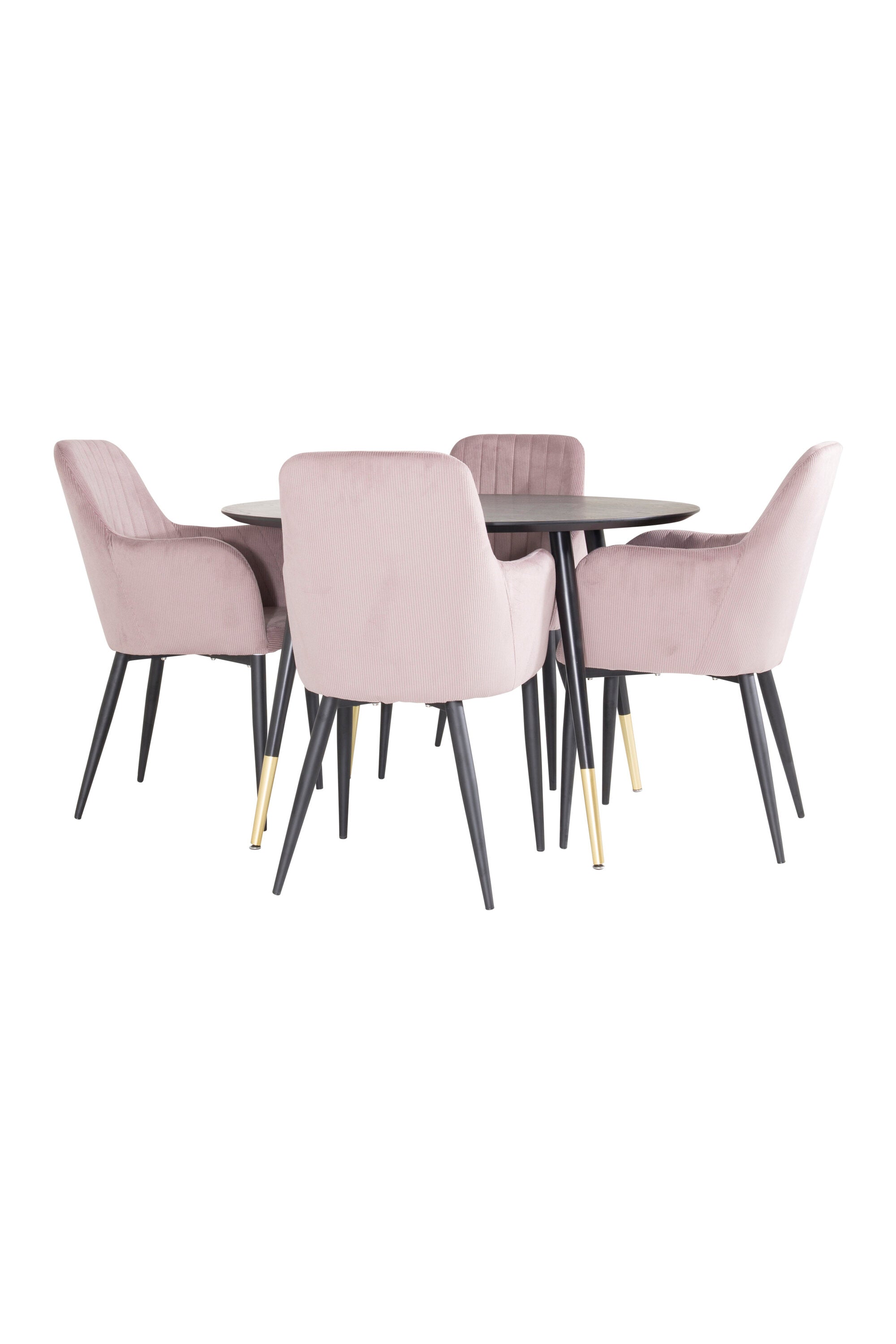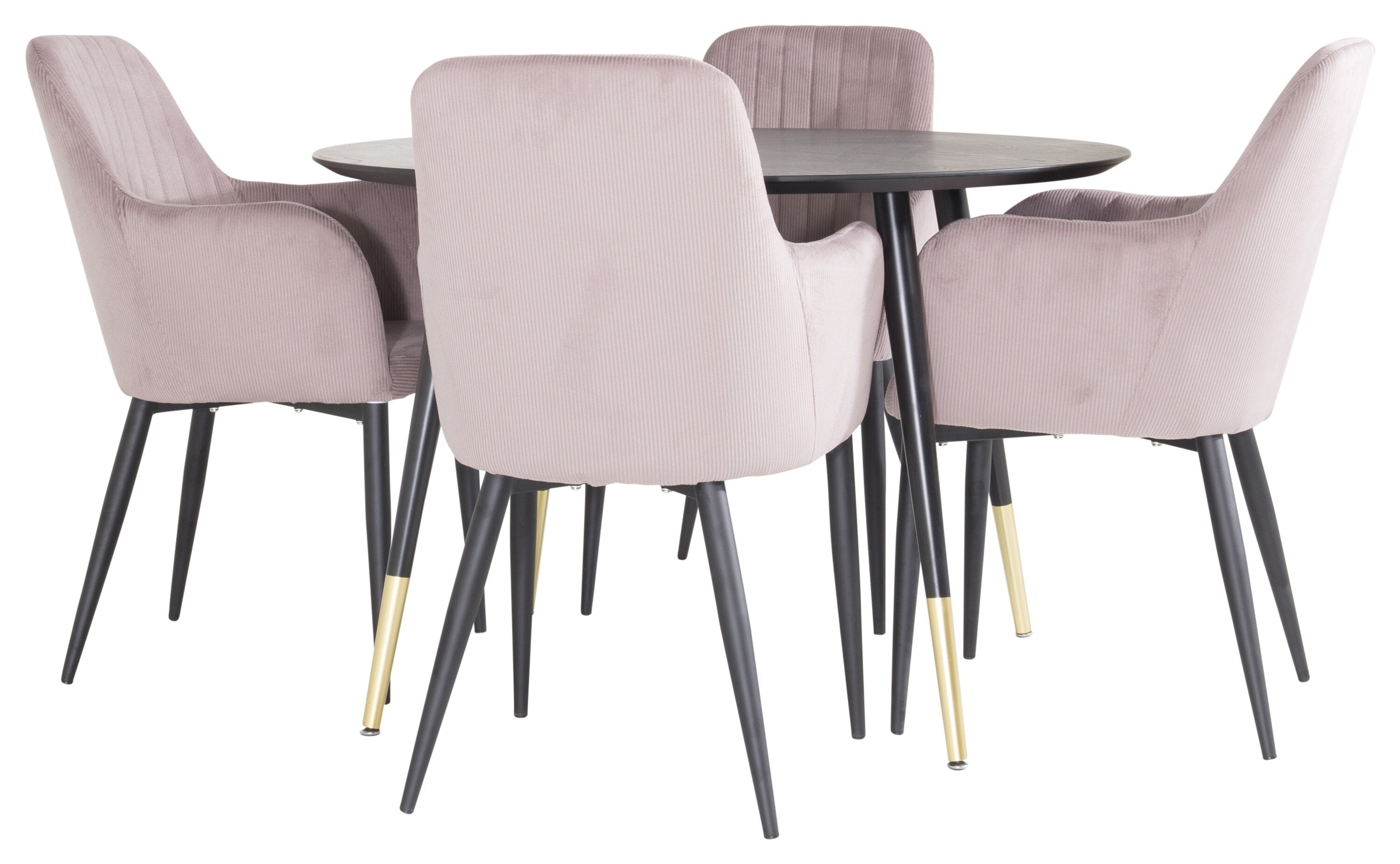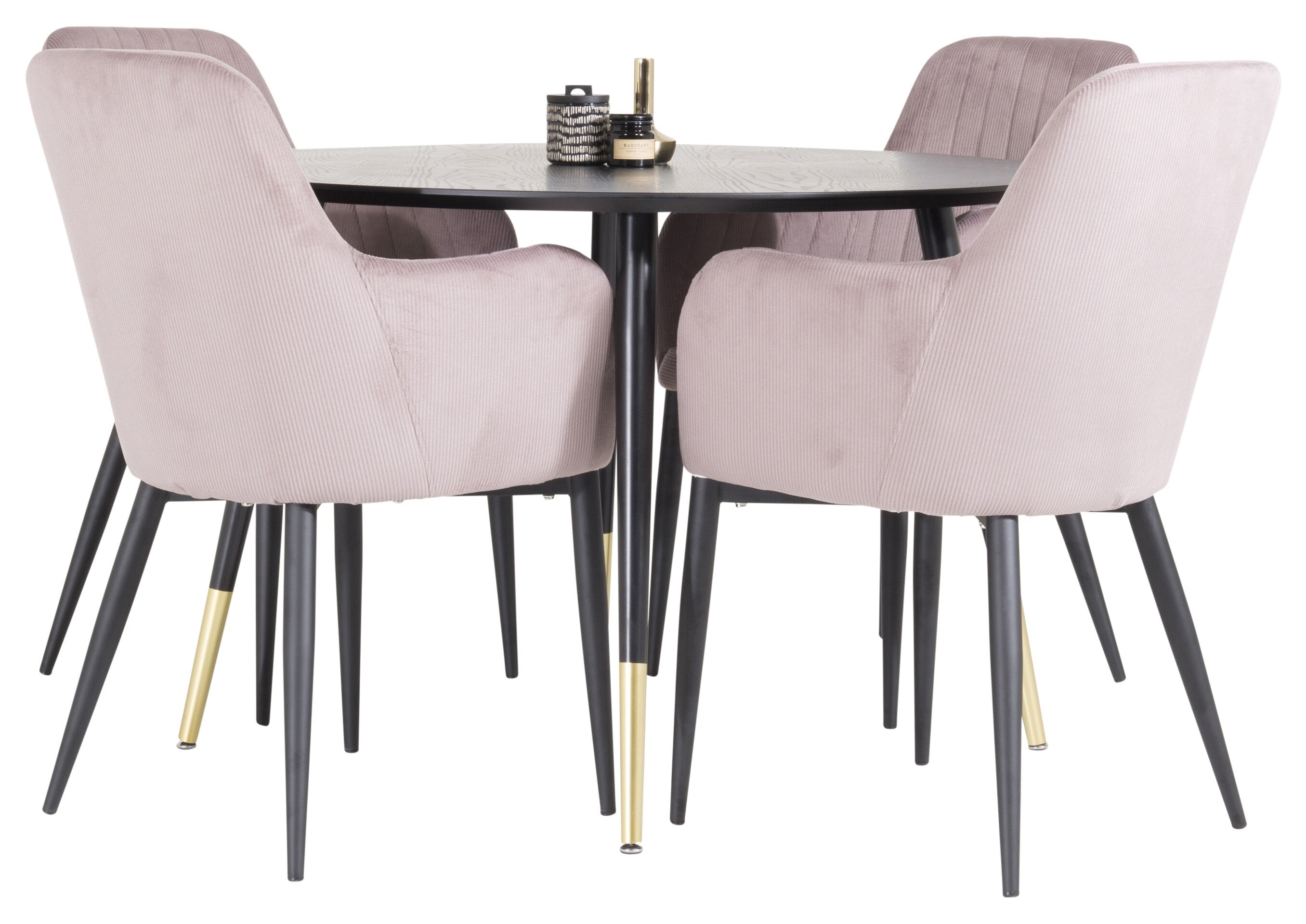 Jídelní stůl Dipp - 115 cm - Černá dýha / černé nohy s mosazným dippem + Komfortní jídelní židle - černé nohy / Dusty Pink Manšestr _4