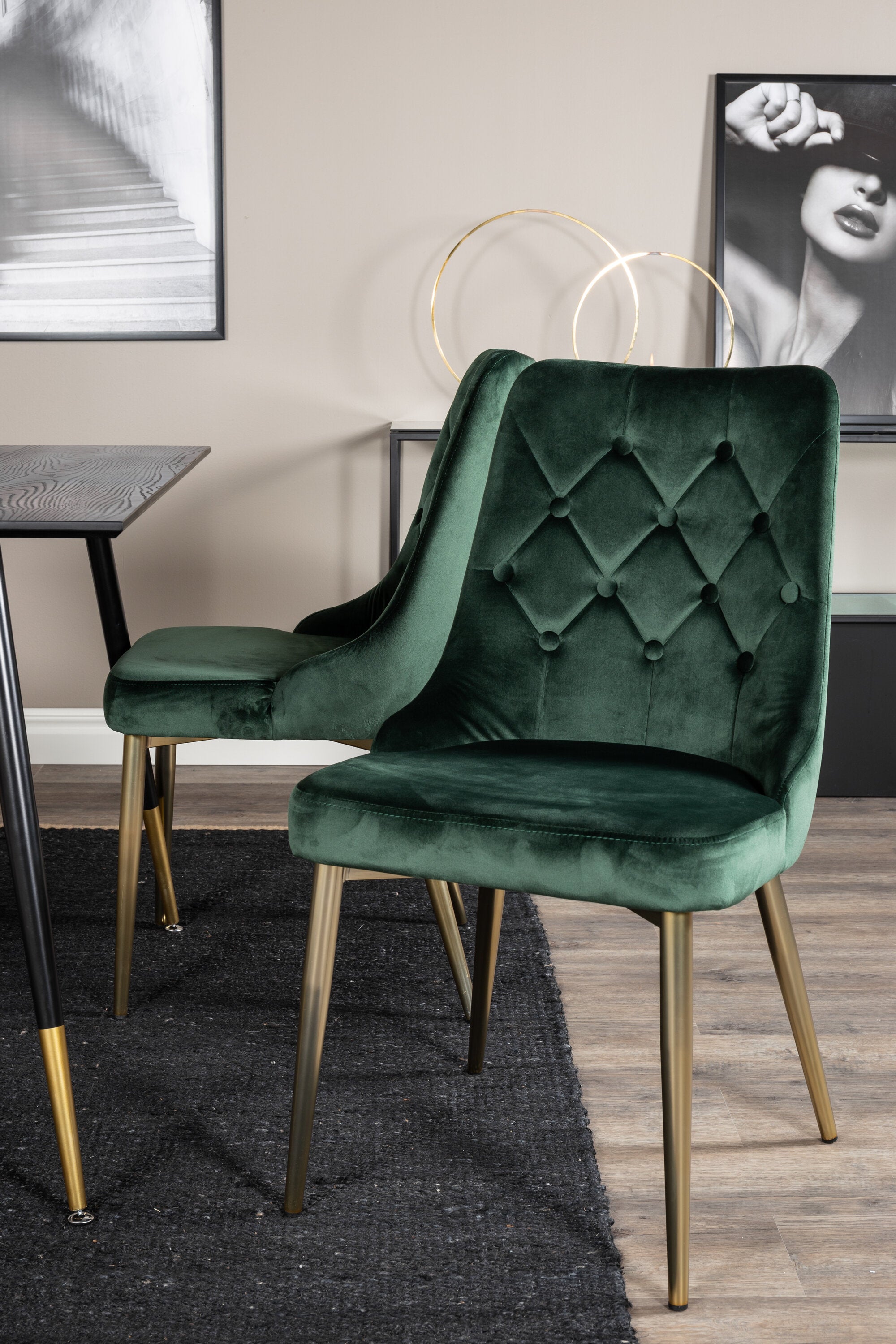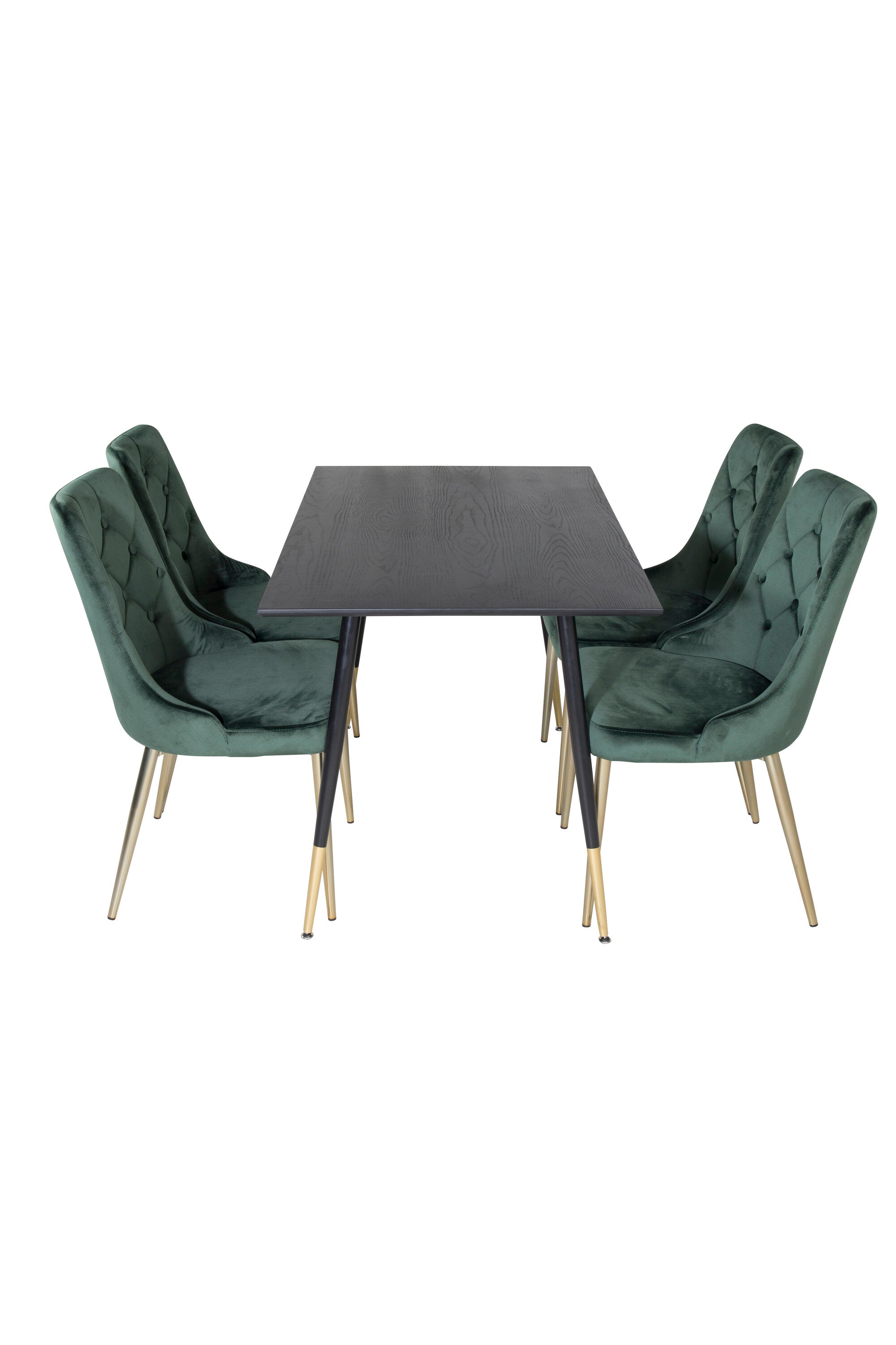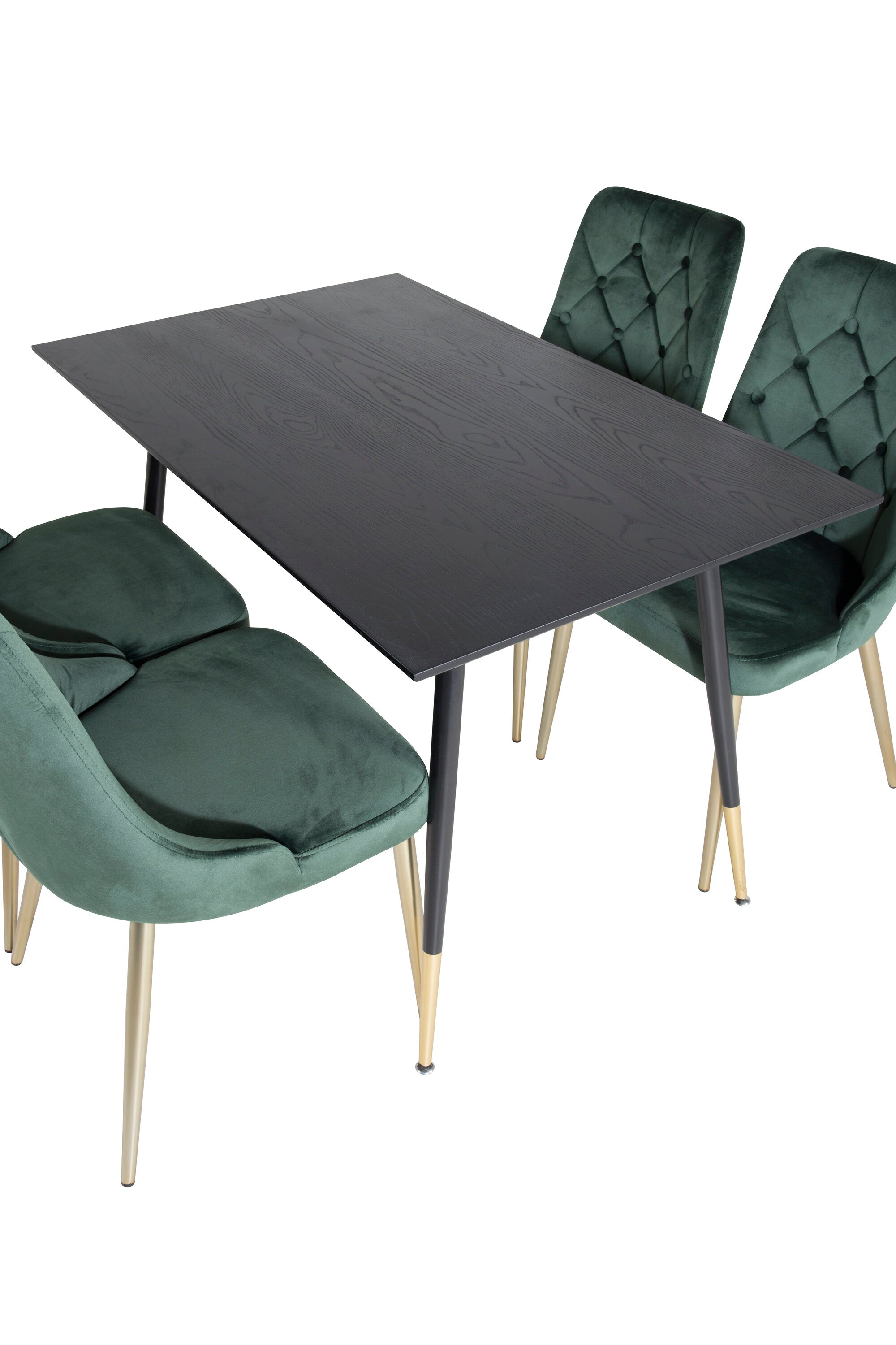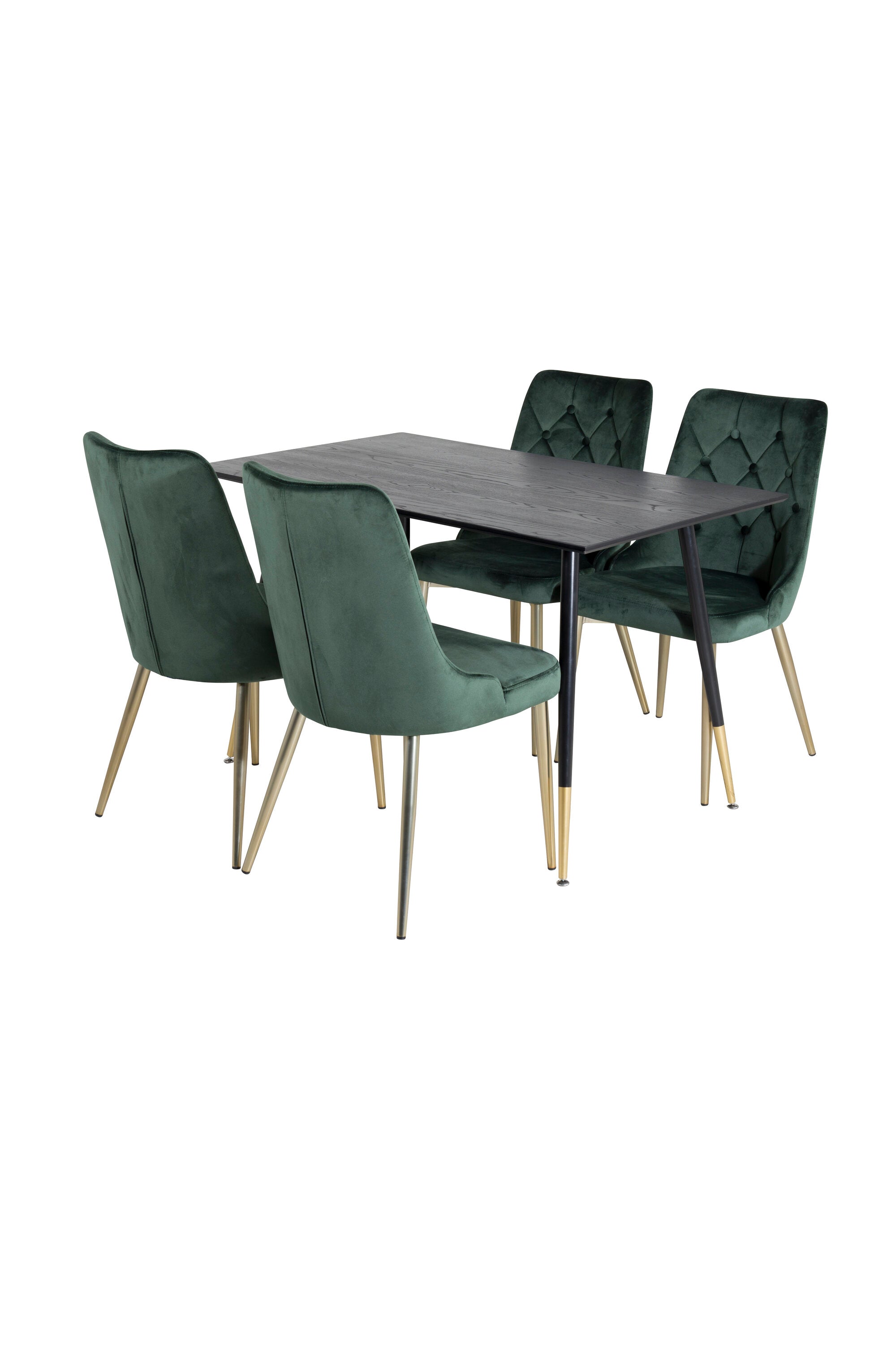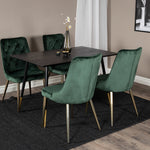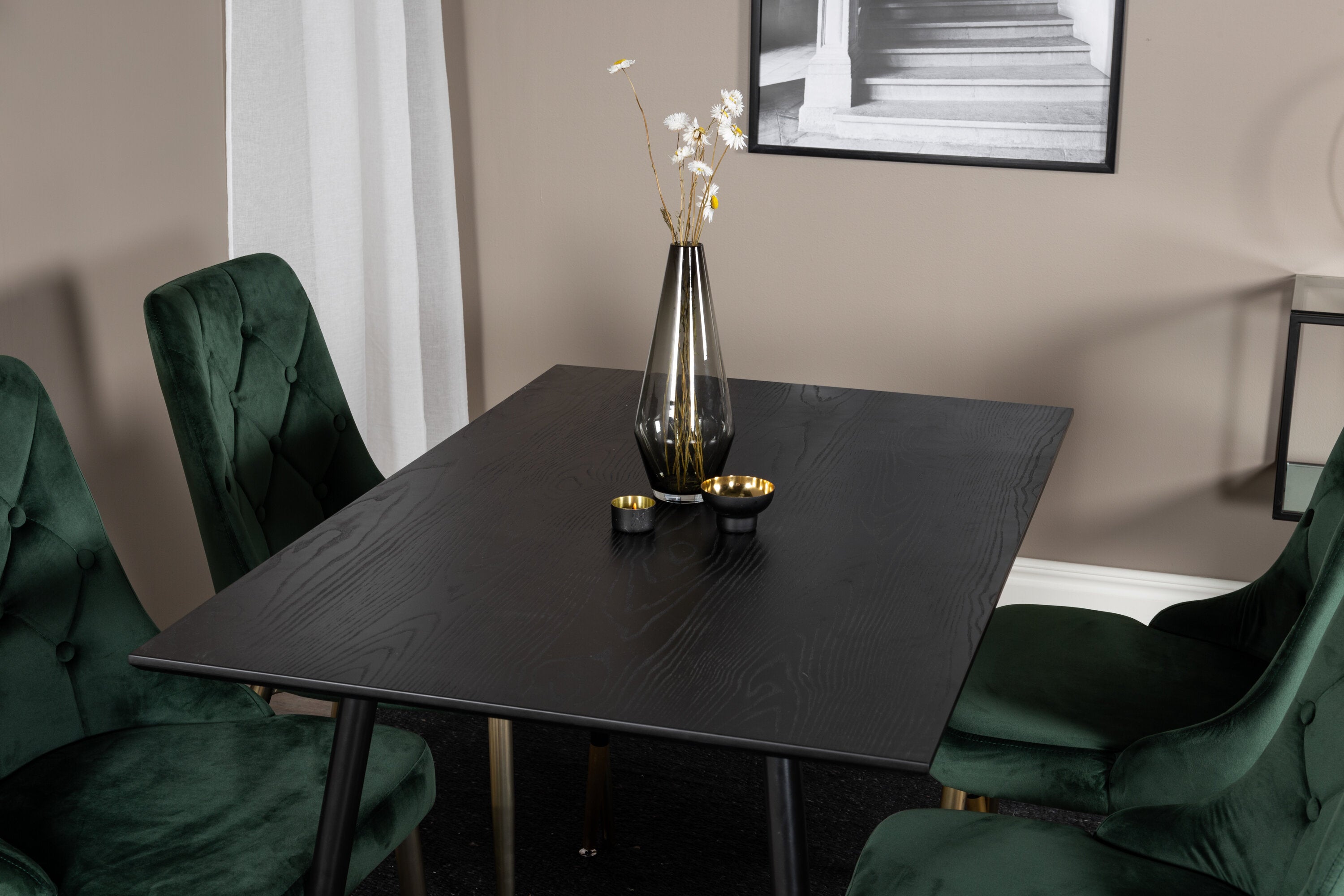Jídelní stůl Dipp - 120 cm - Černá dýha - Černé nohy š. Brass dipp+Velvet Deluxe Jídelní židle - Zelená / Brass_4