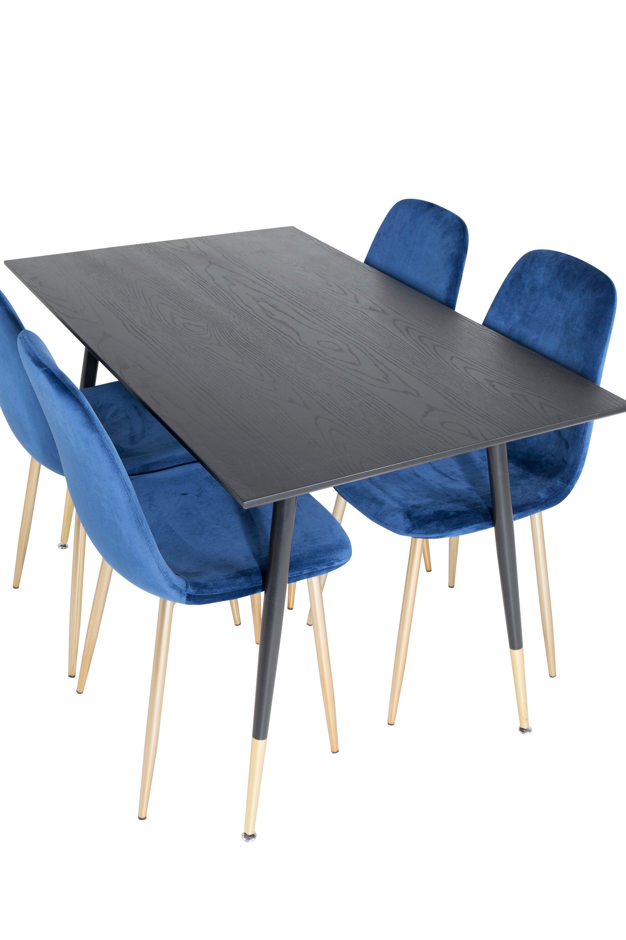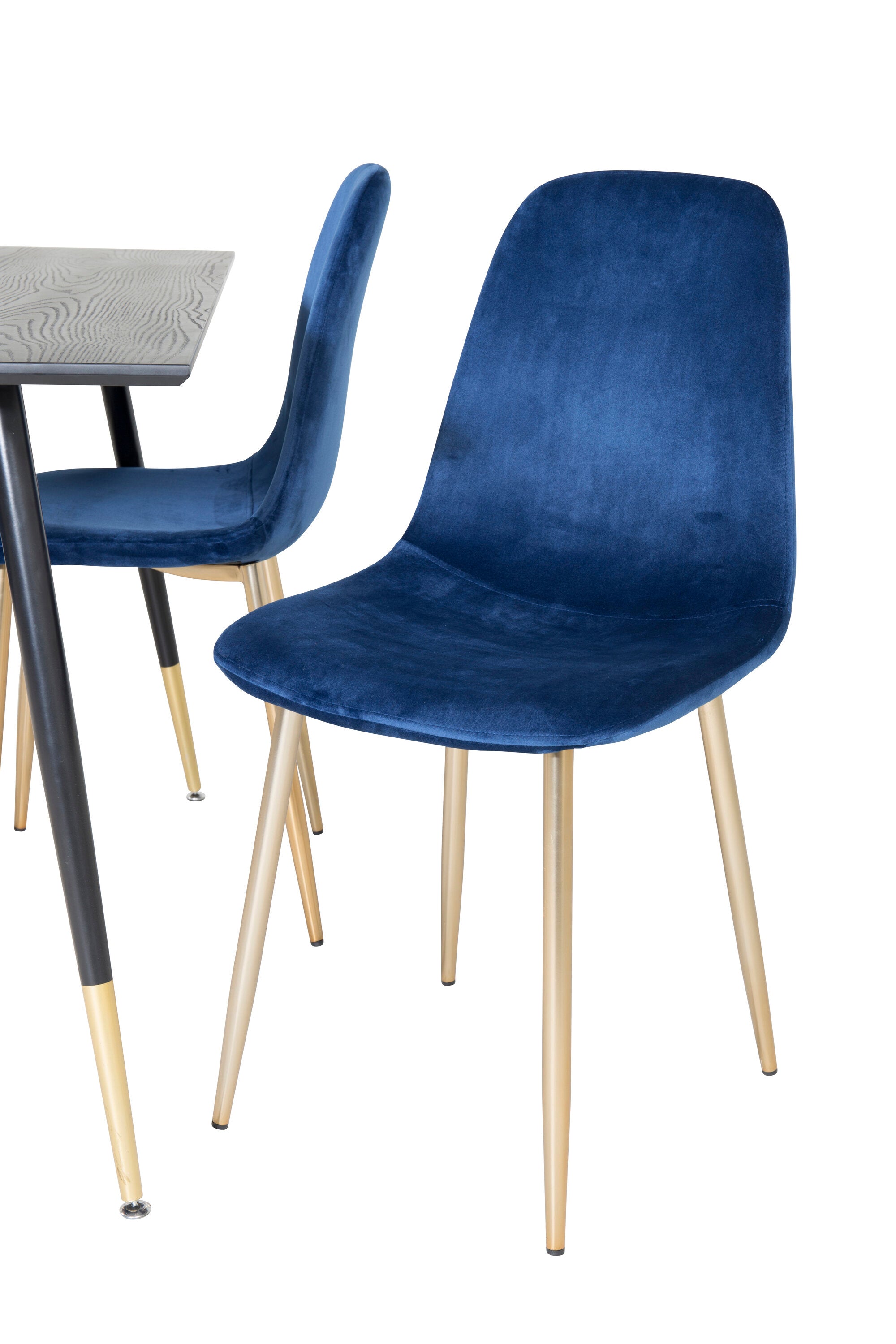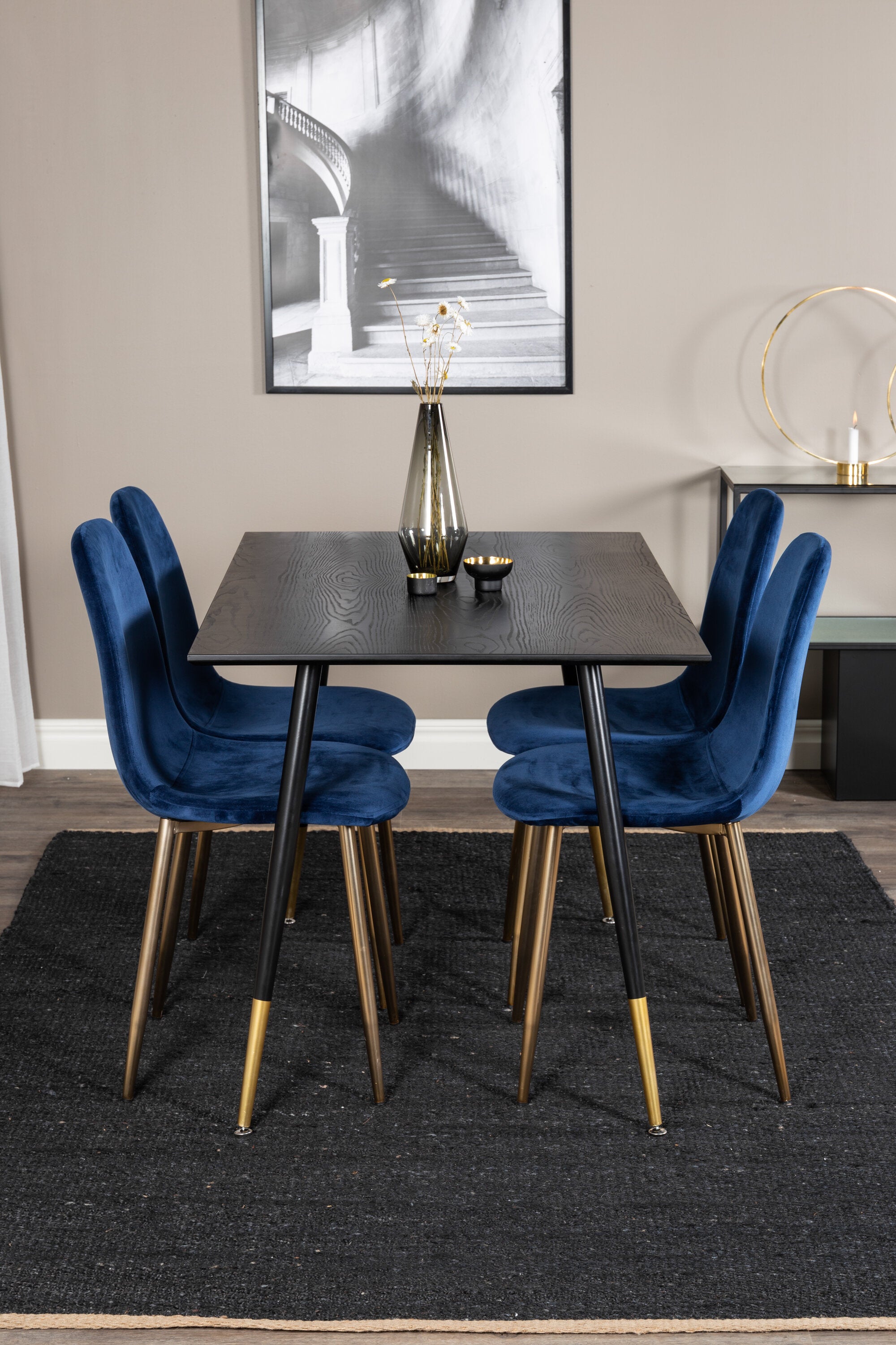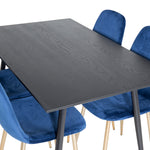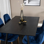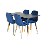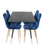 Jídelní stůl Dipp - 120 cm - Černá dýha - Černé nohy š. Mosazný dipp+Polar Jídelní židle - Modrá / Mosaz_4