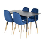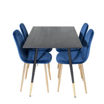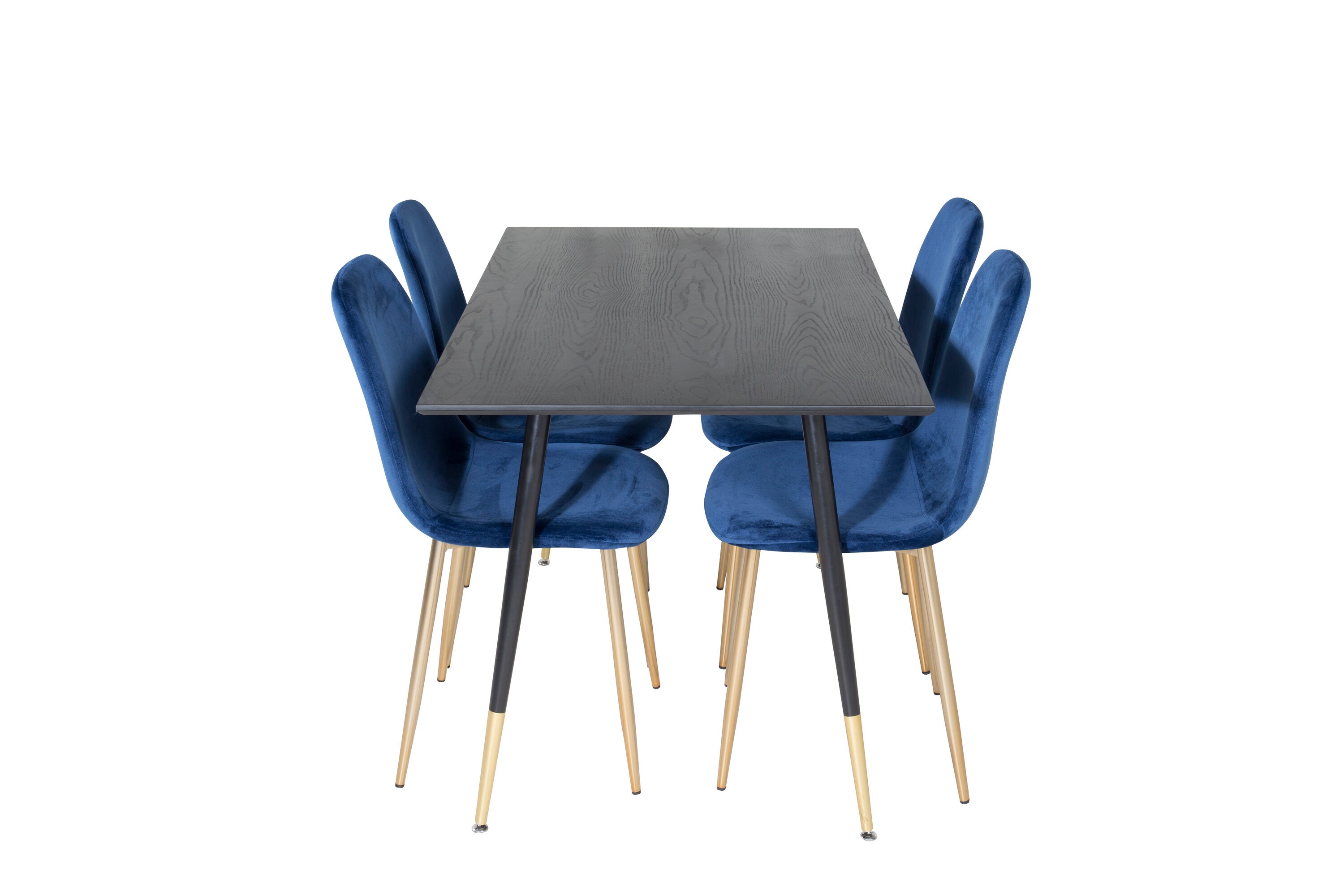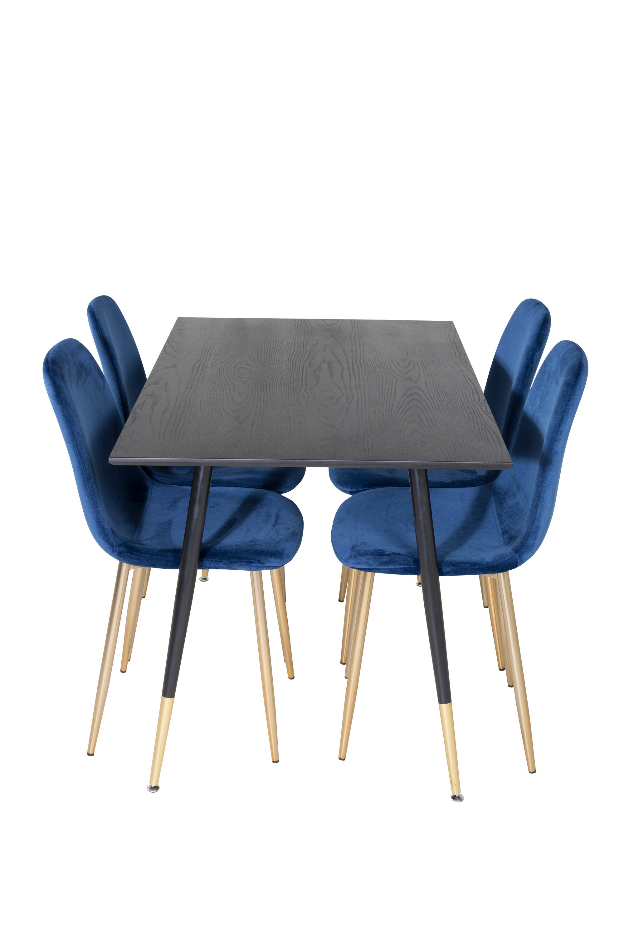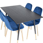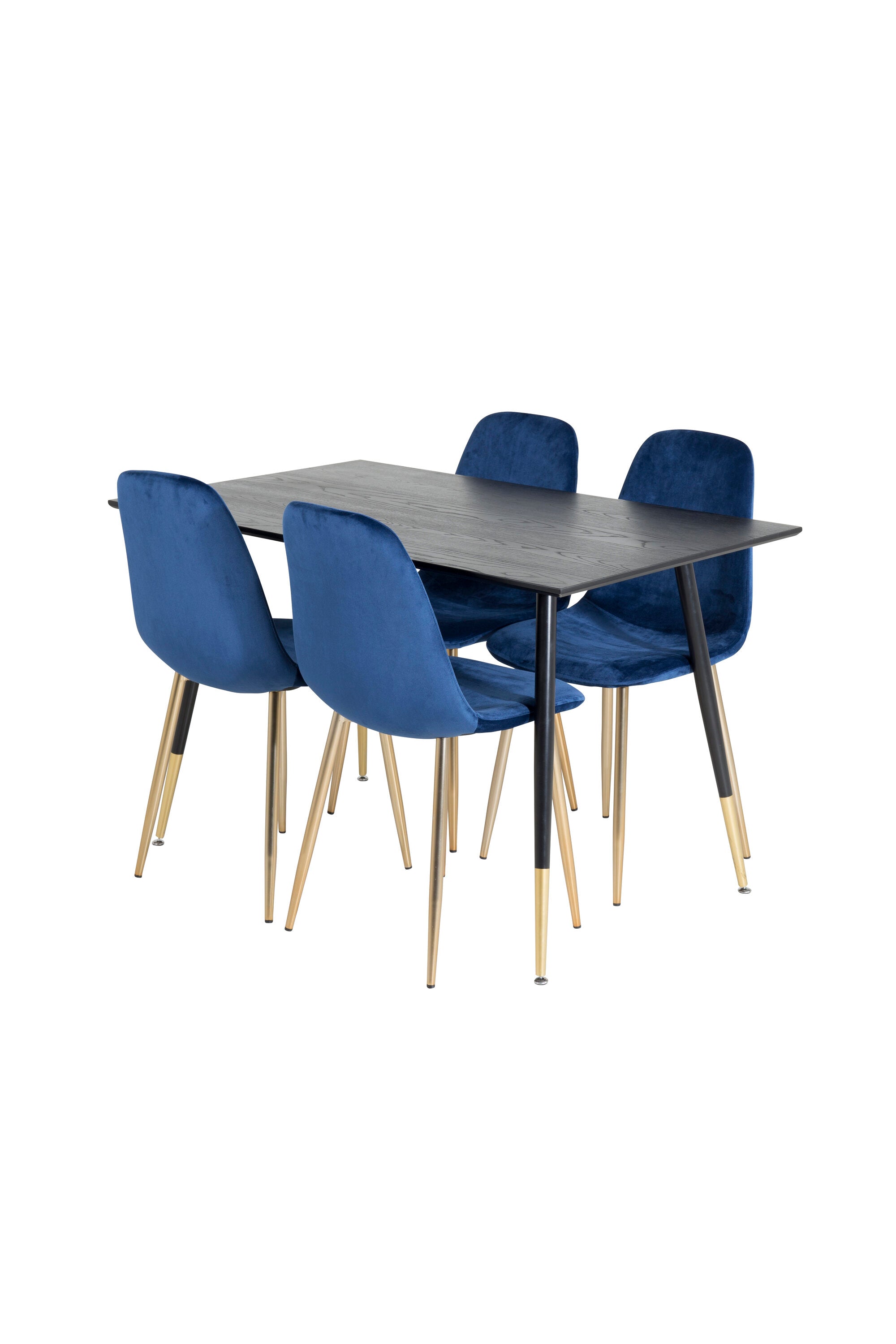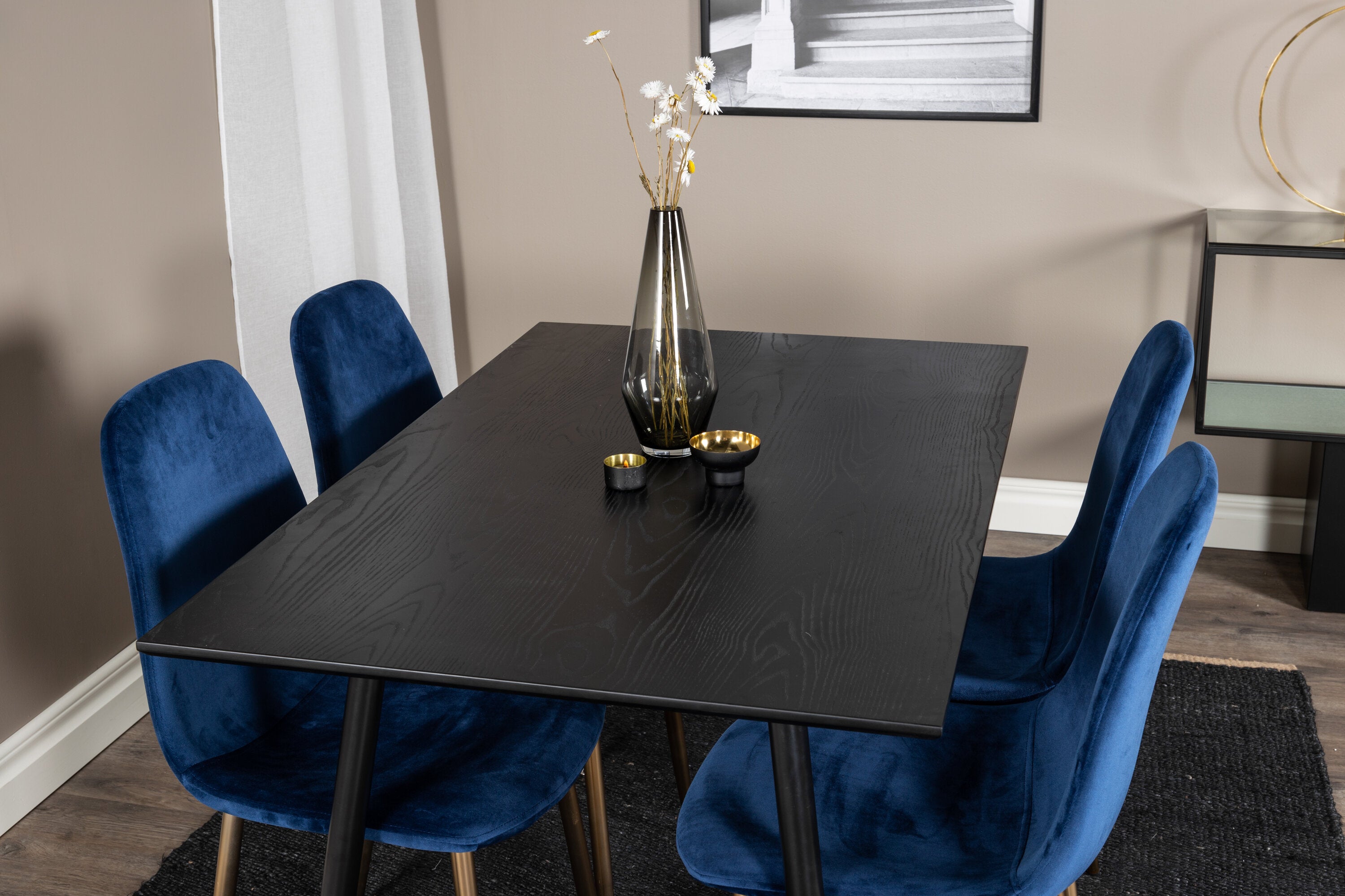Jídelní stůl Dipp - 120 cm - Černá dýha - Černé nohy š. Mosazný dipp+Polar Jídelní židle - Modrá / Mosaz_4