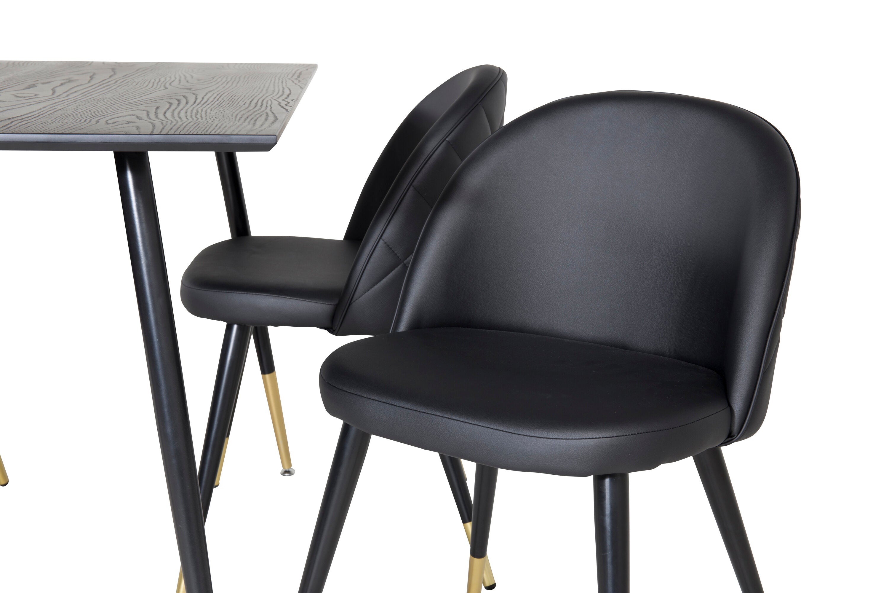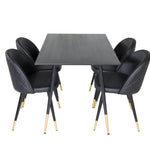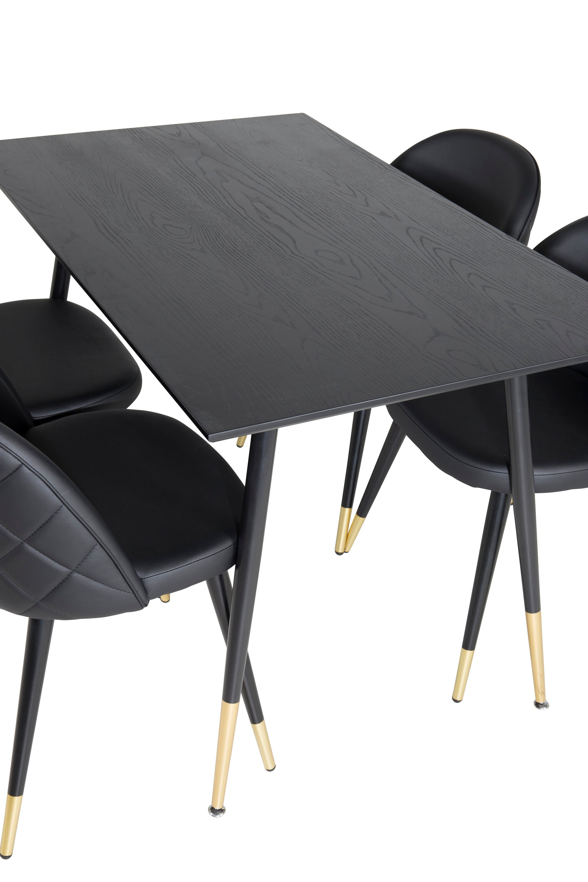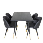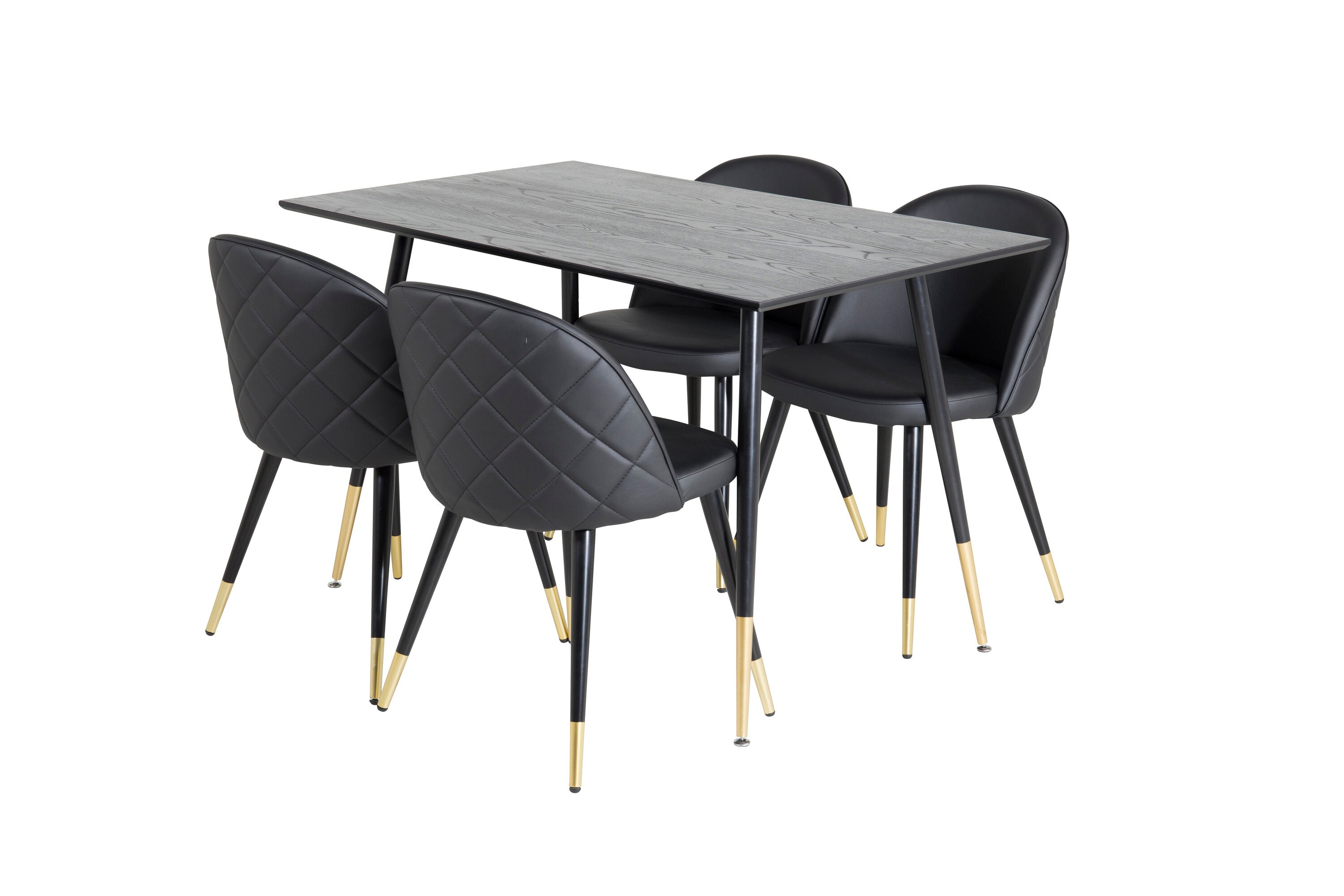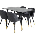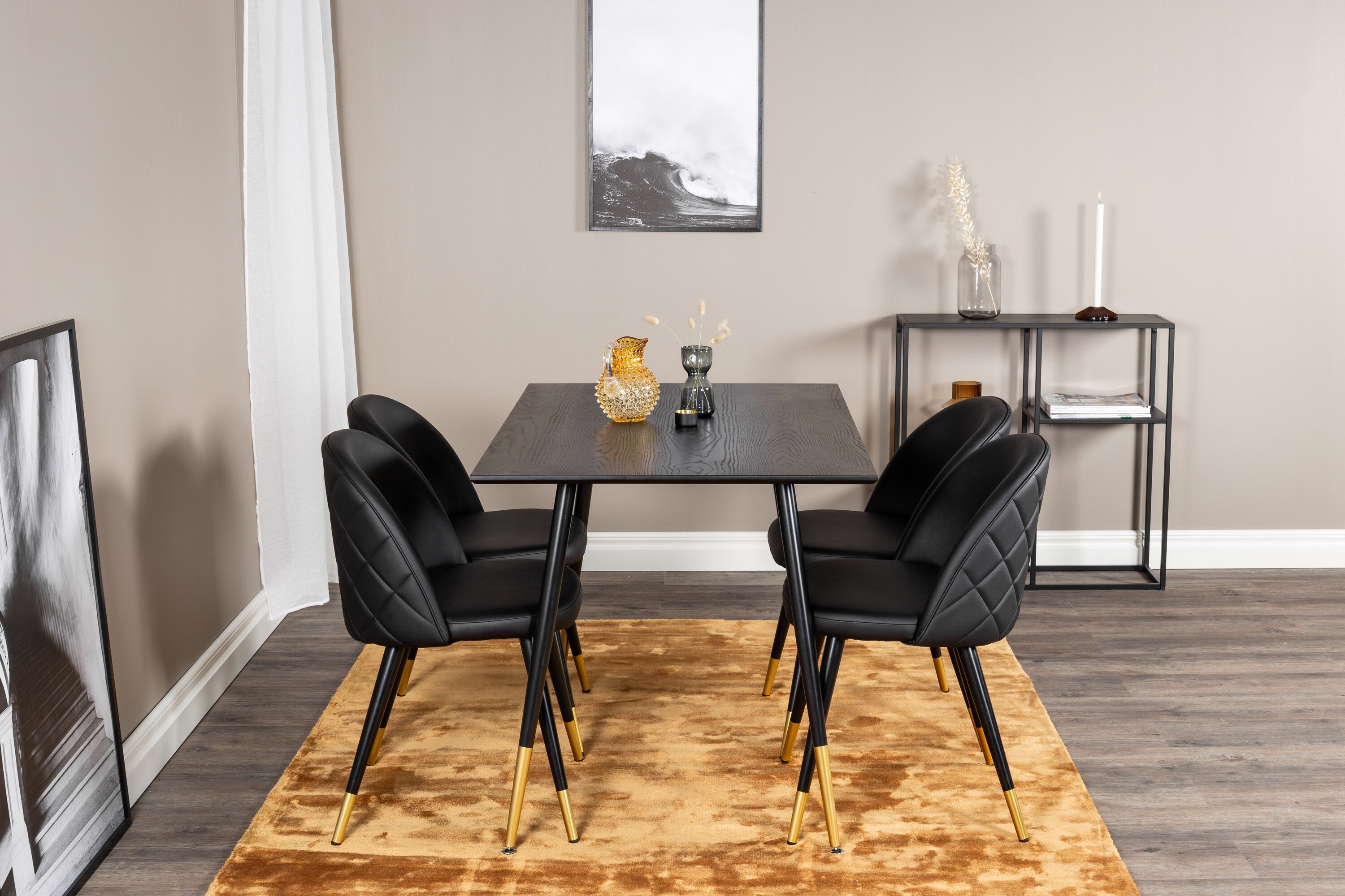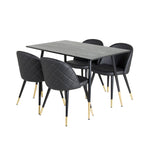 Jídelní stůl Dipp - 120 cm - Černá dýha - Černé nohy š. Mosazný dipp+Velvet Jídelní židle w. Stiches - PU - Black / Black_4