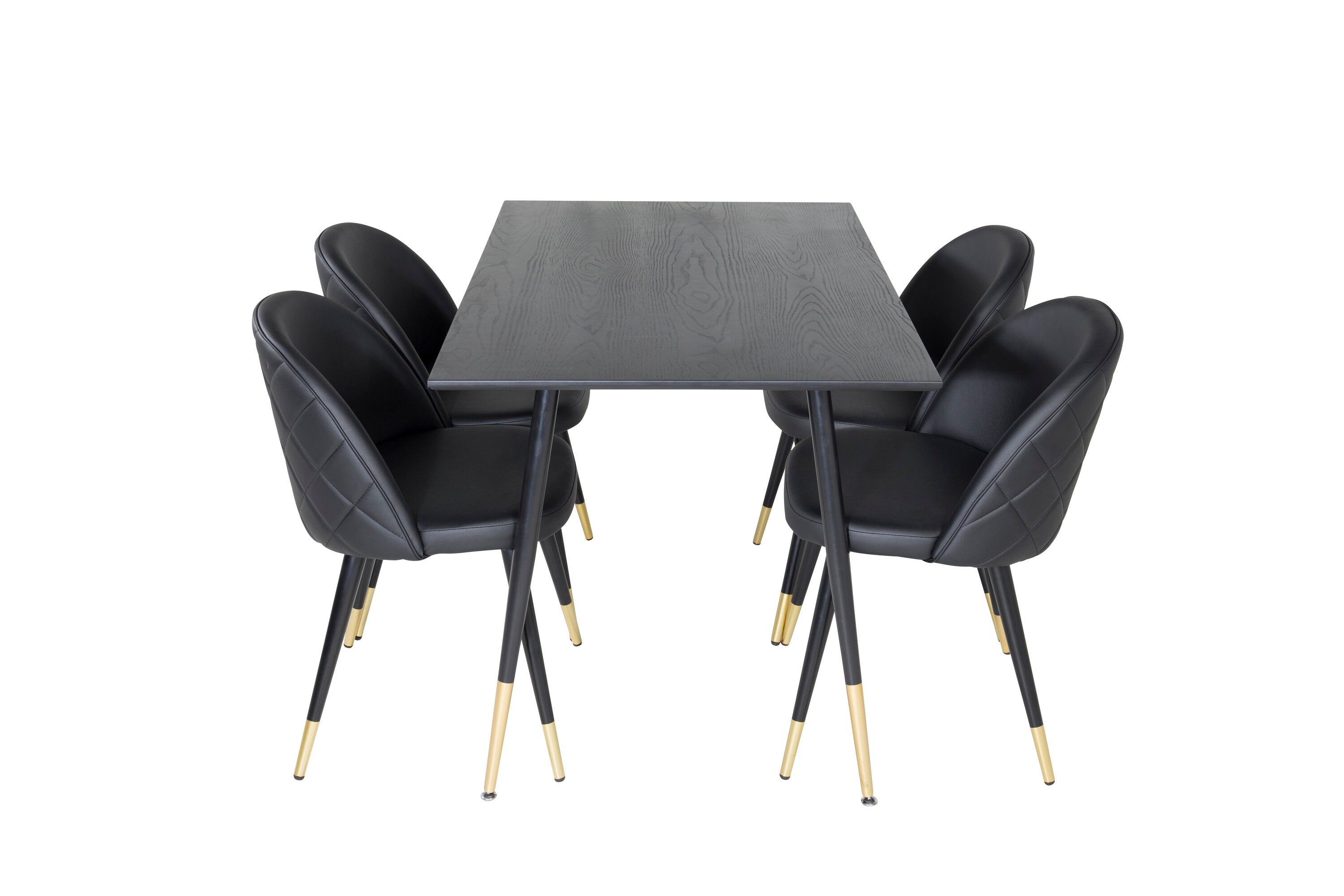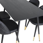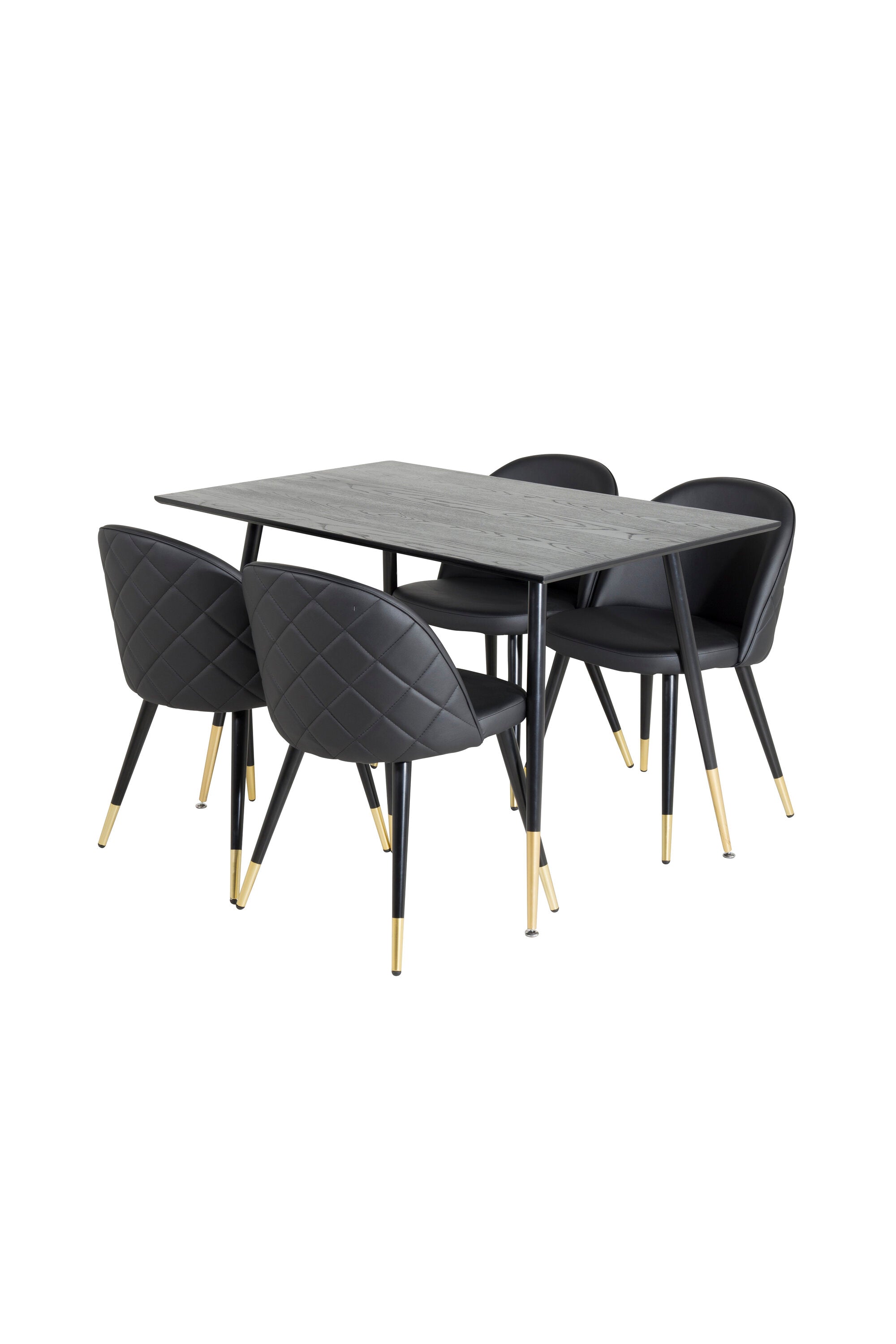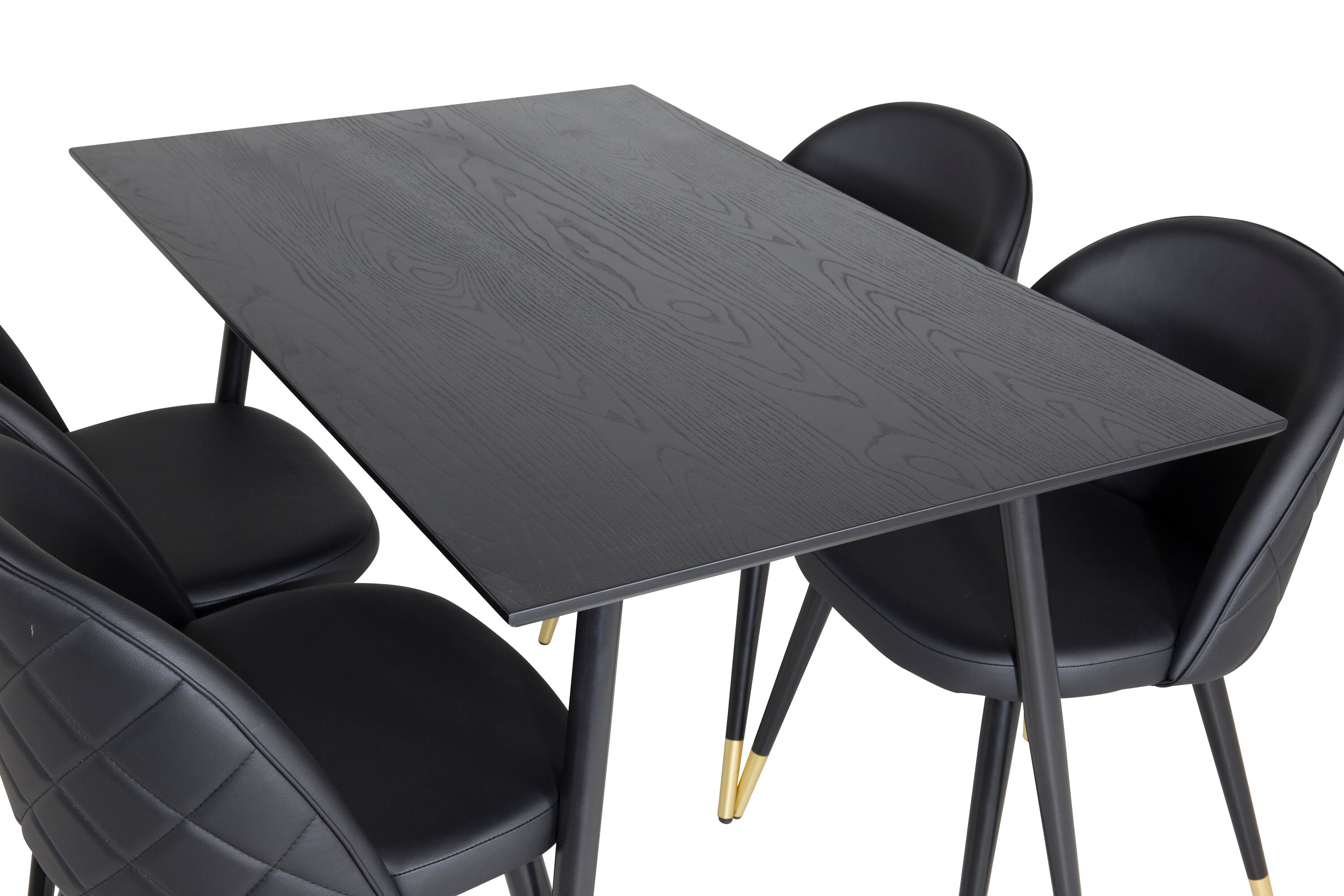 Jídelní stůl Dipp - 120 cm - Černá dýha - Černé nohy š. Mosazný dipp+Velvet Jídelní židle w. Stiches - PU - Black / Black_4