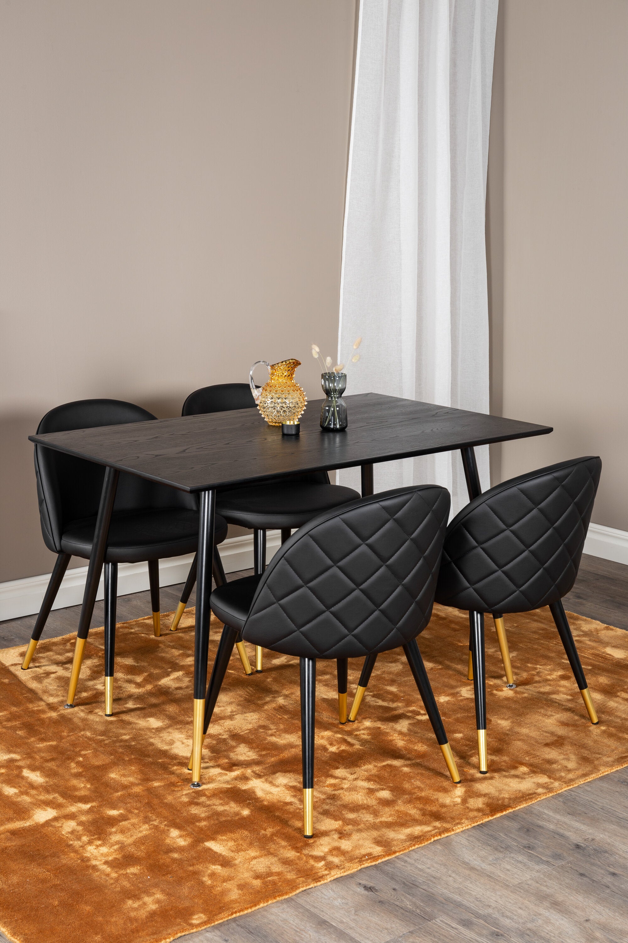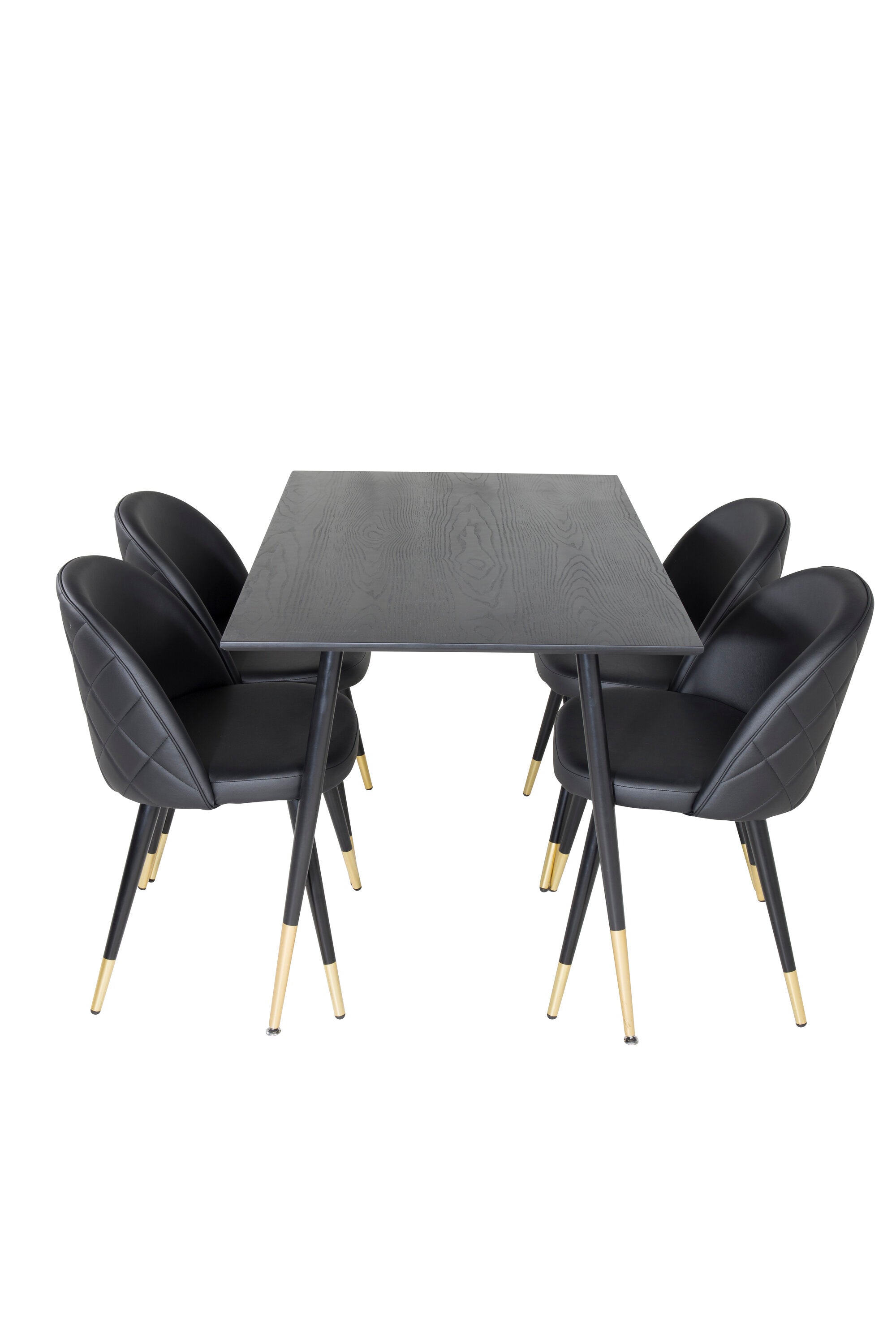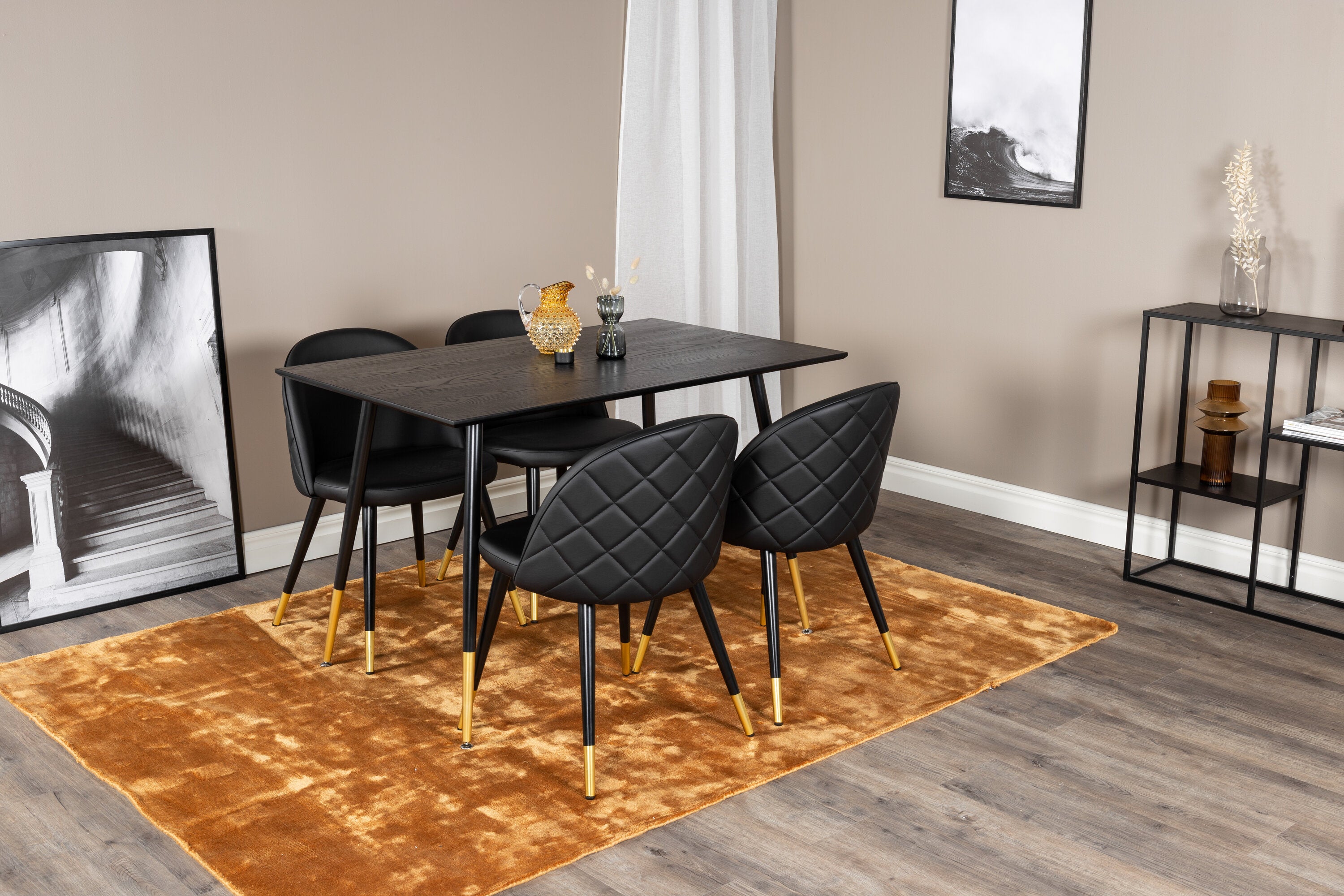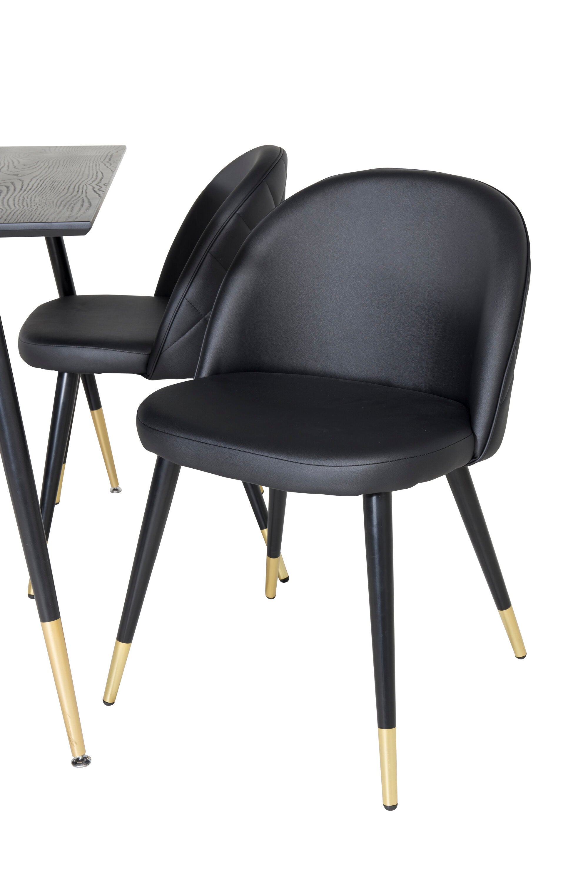 Jídelní stůl Dipp - 120 cm - Černá dýha - Černé nohy š. Mosazný dipp+Velvet Jídelní židle w. Stiches - PU - Black / Black_4