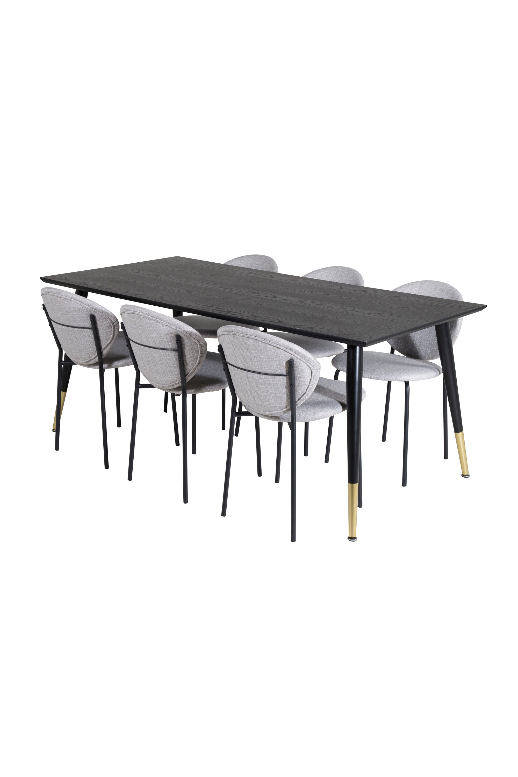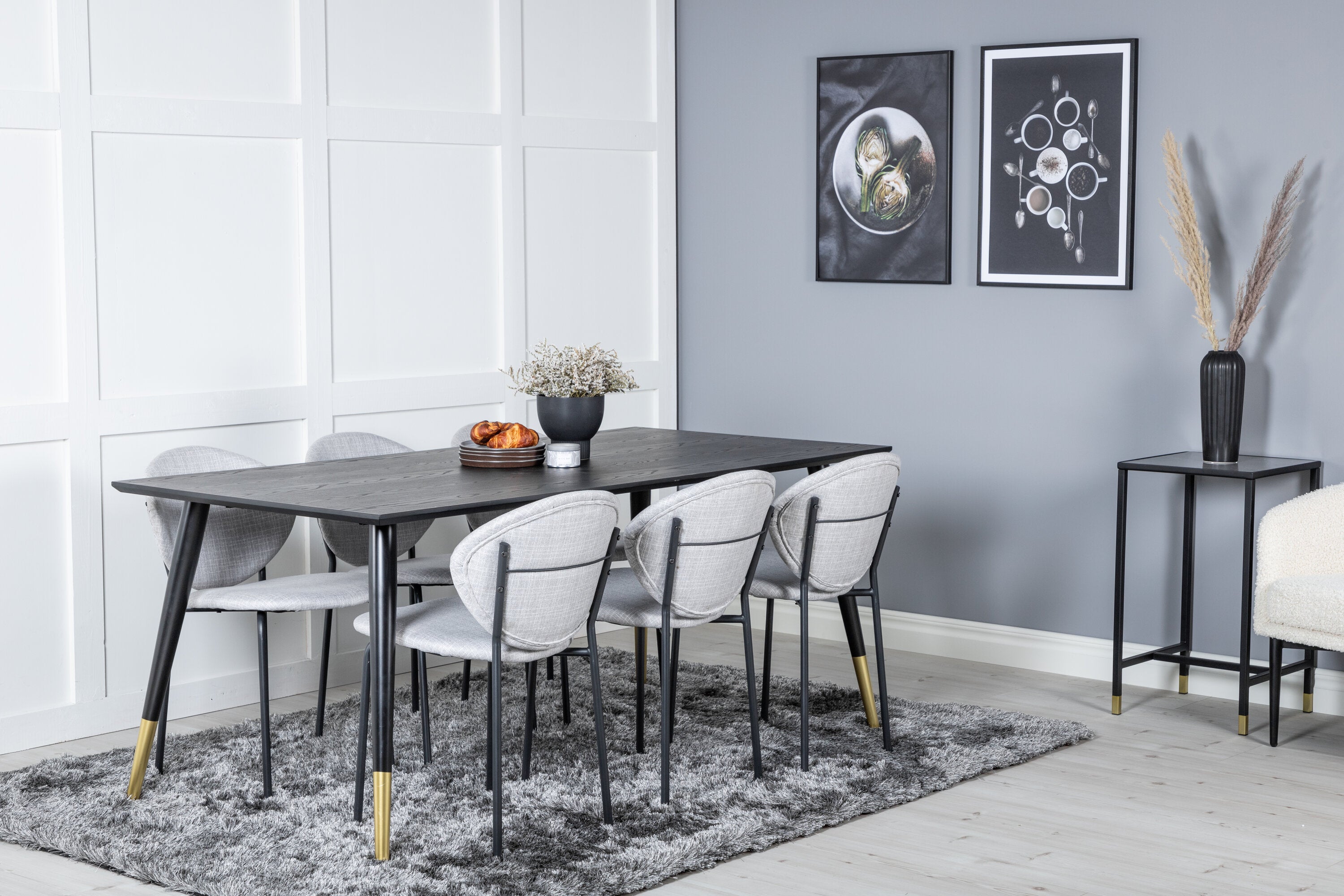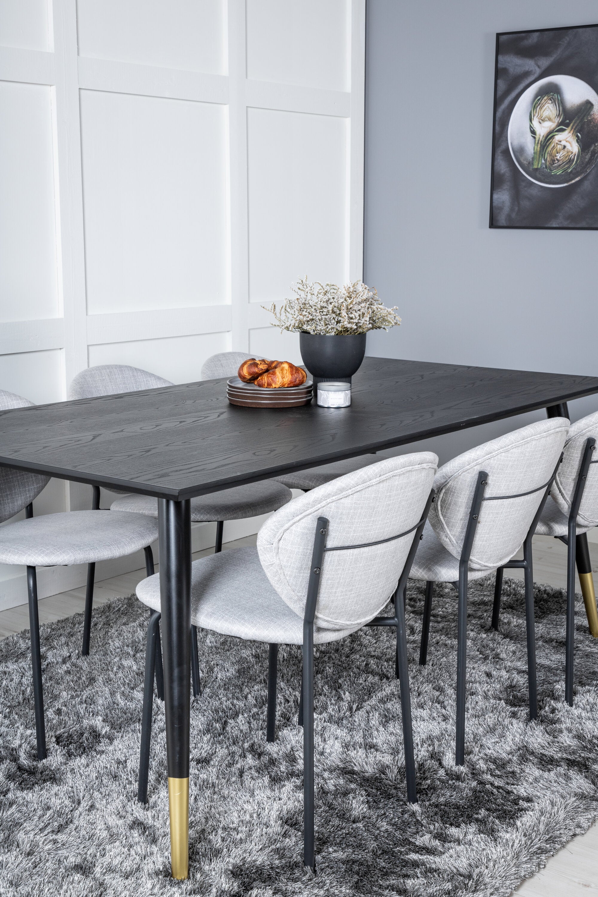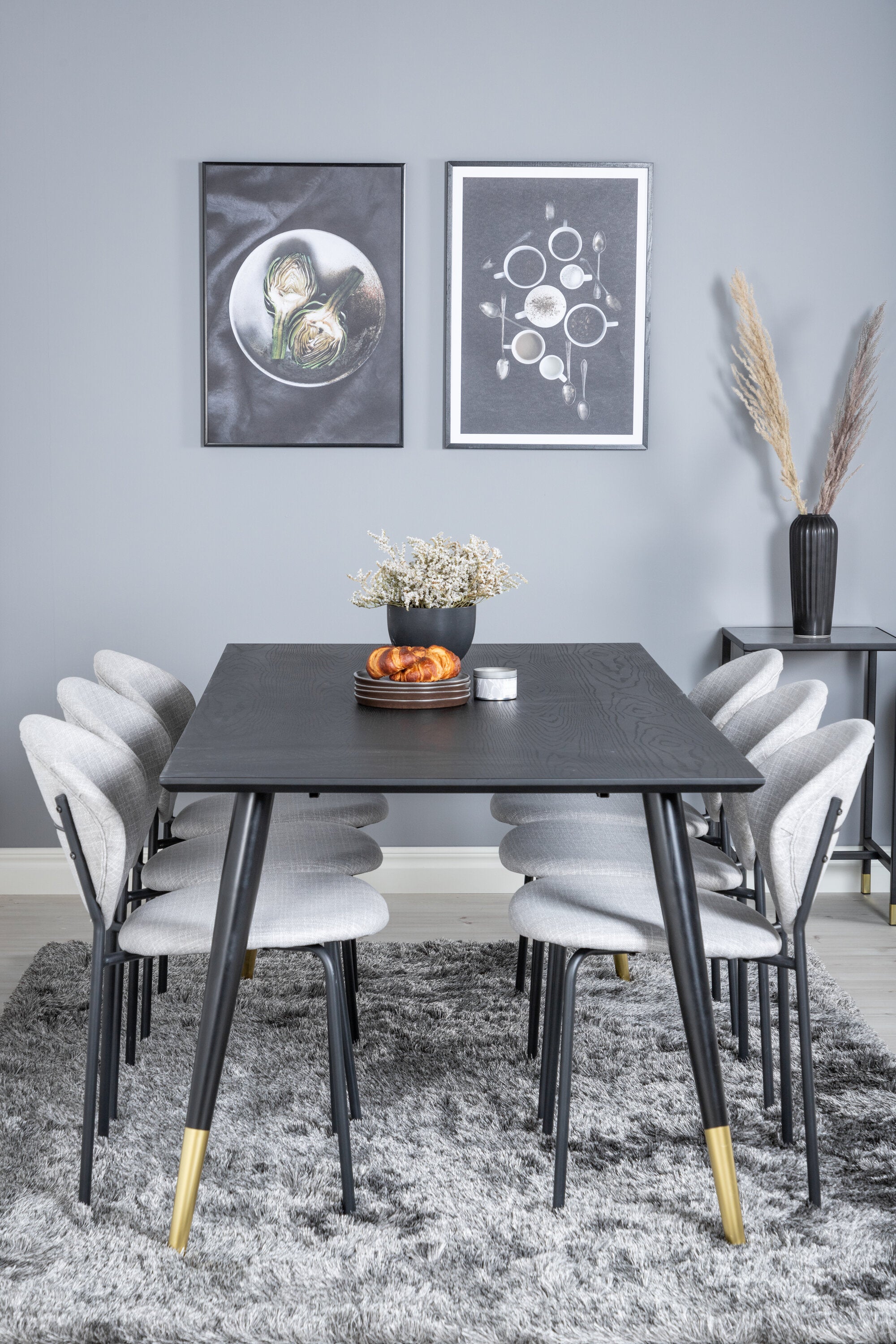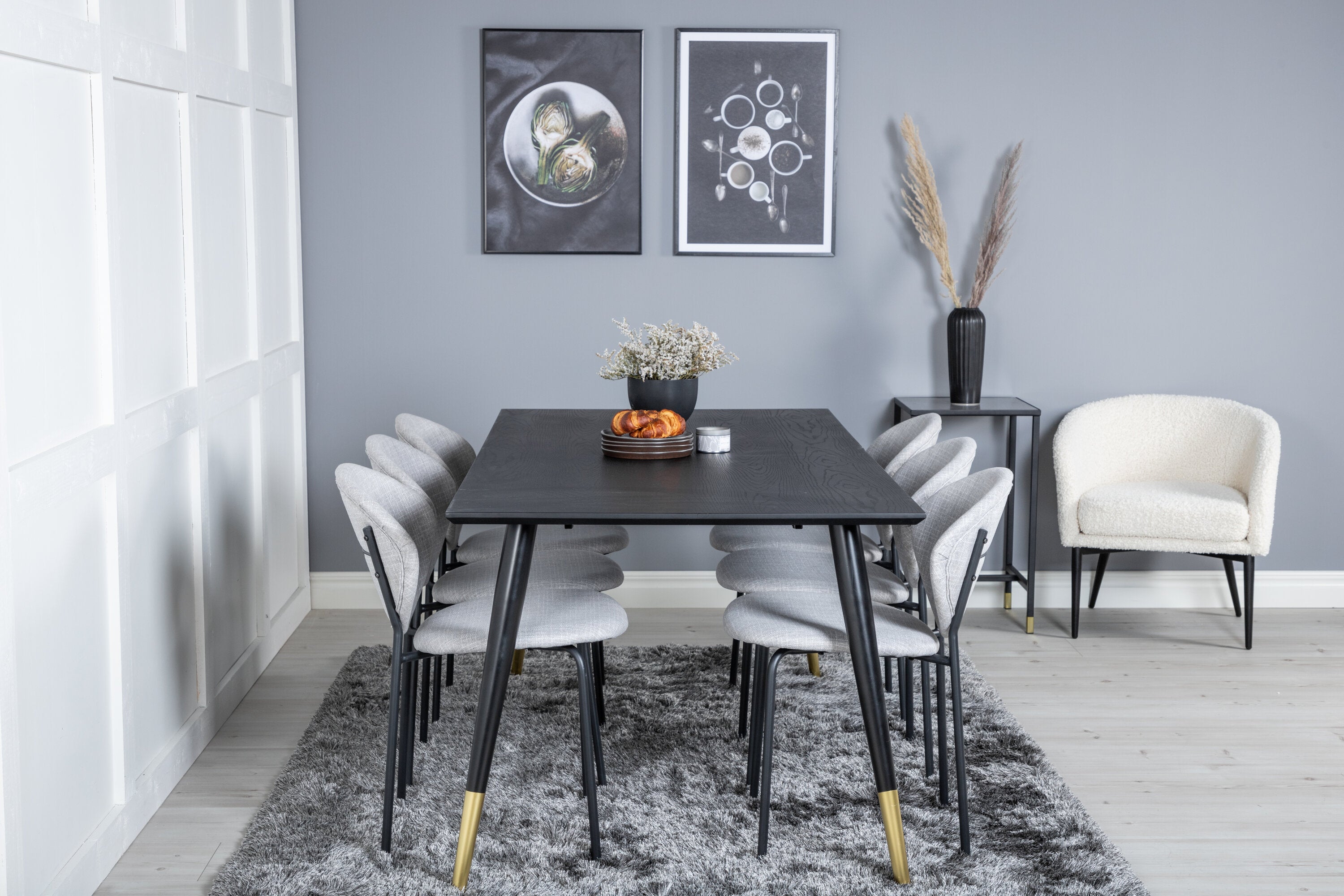Jídelní stůl Dipp - 180*90cm - Černá / Černá mosaz + Jídelní židle Vault - Černé nohy - Šedá látka_6