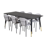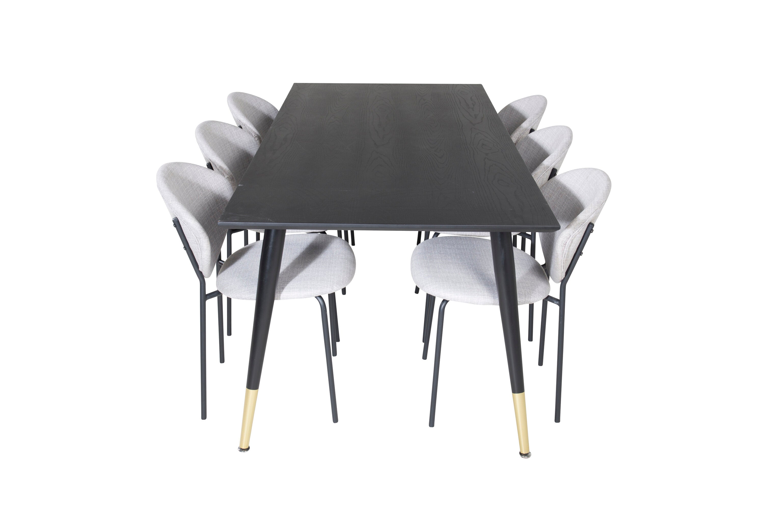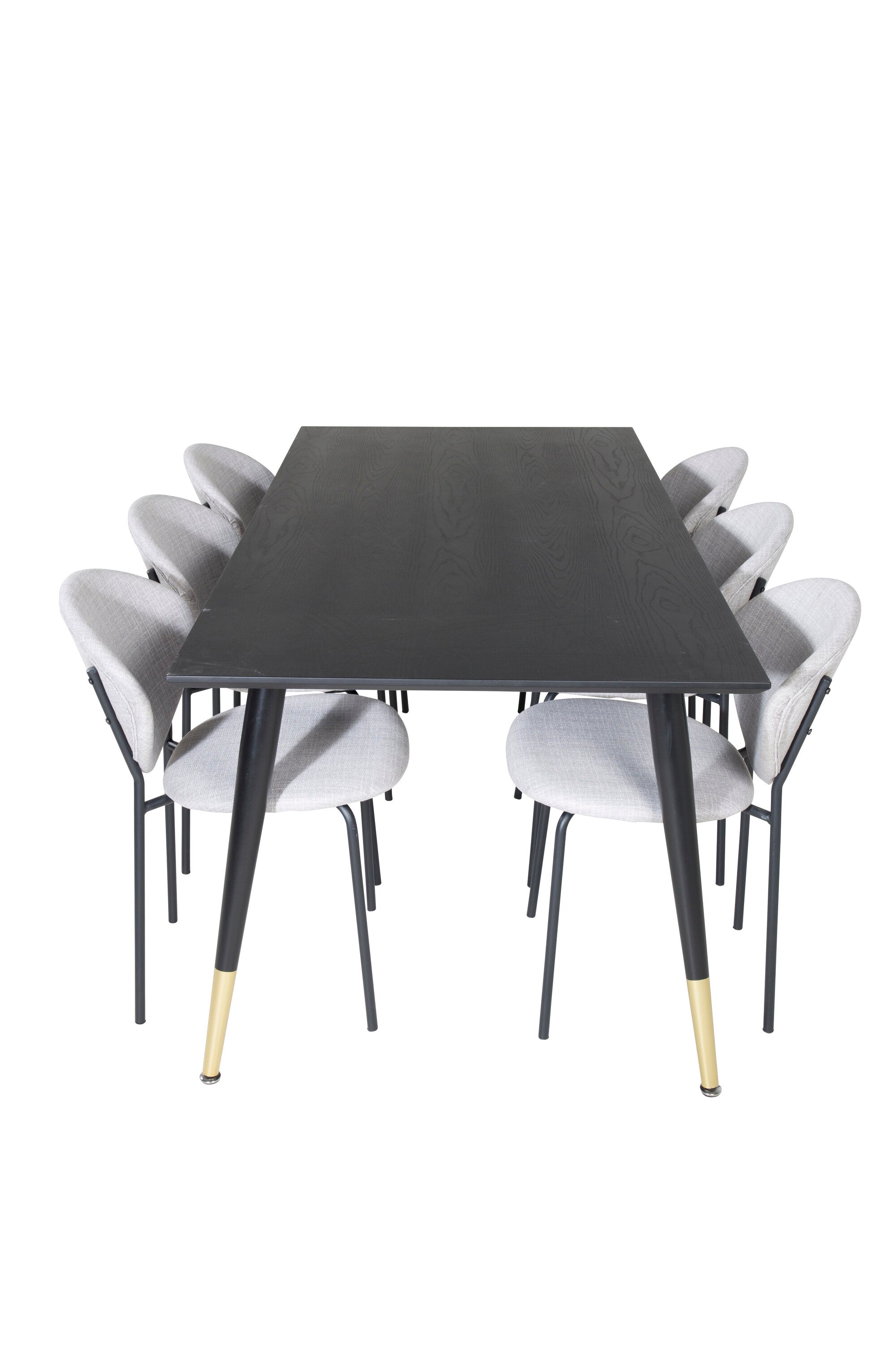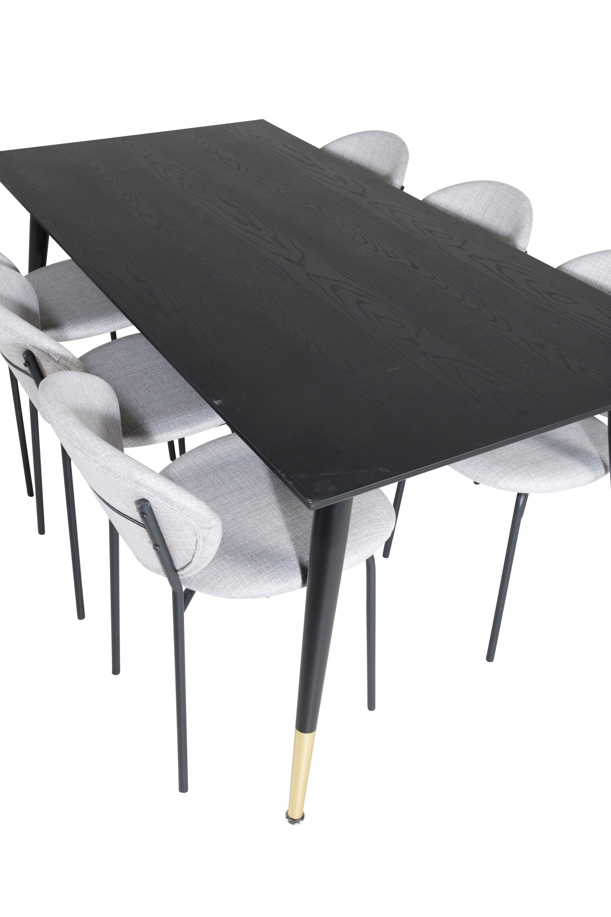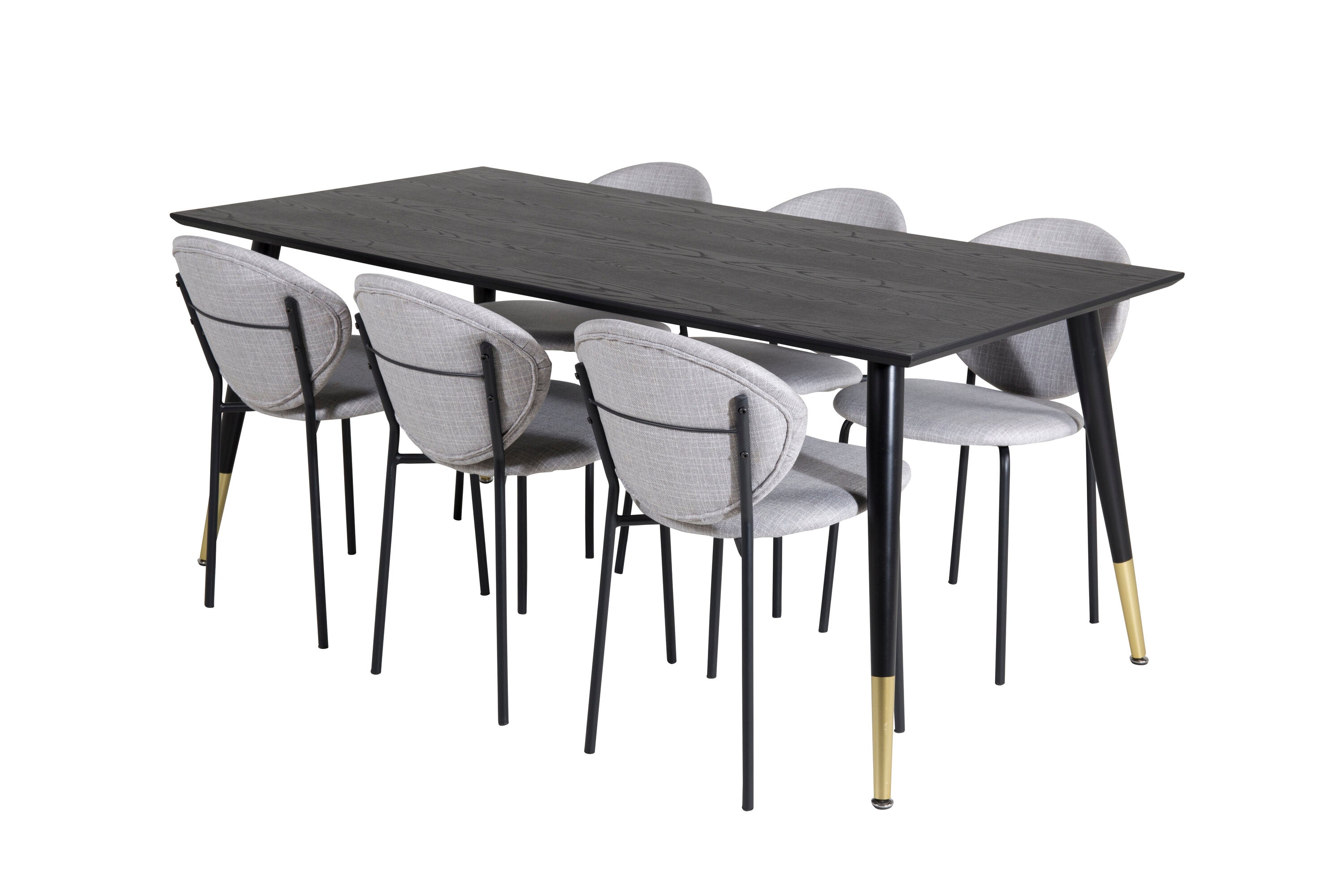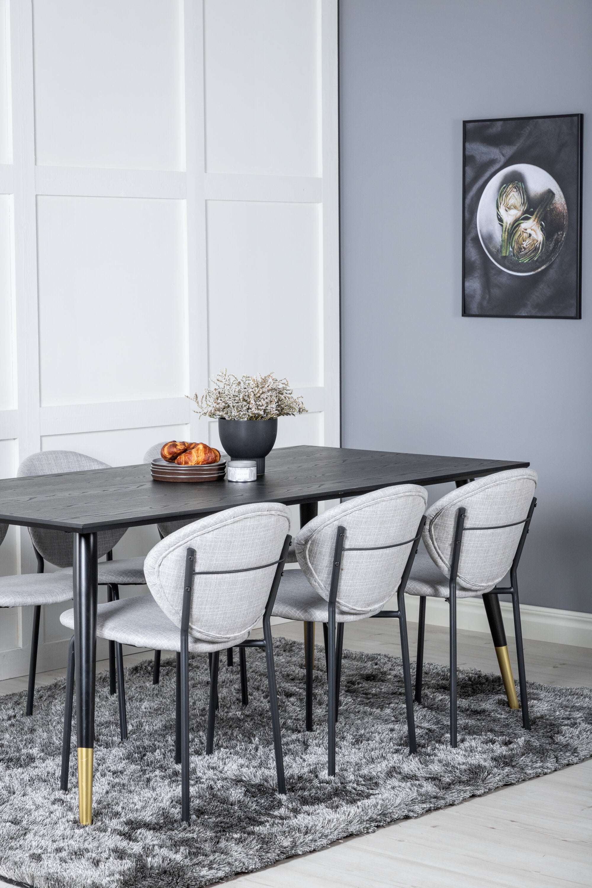 Jídelní stůl Dipp - 180*90cm - Černá / Černá mosaz + Jídelní židle Vault - Černé nohy - Šedá látka_6