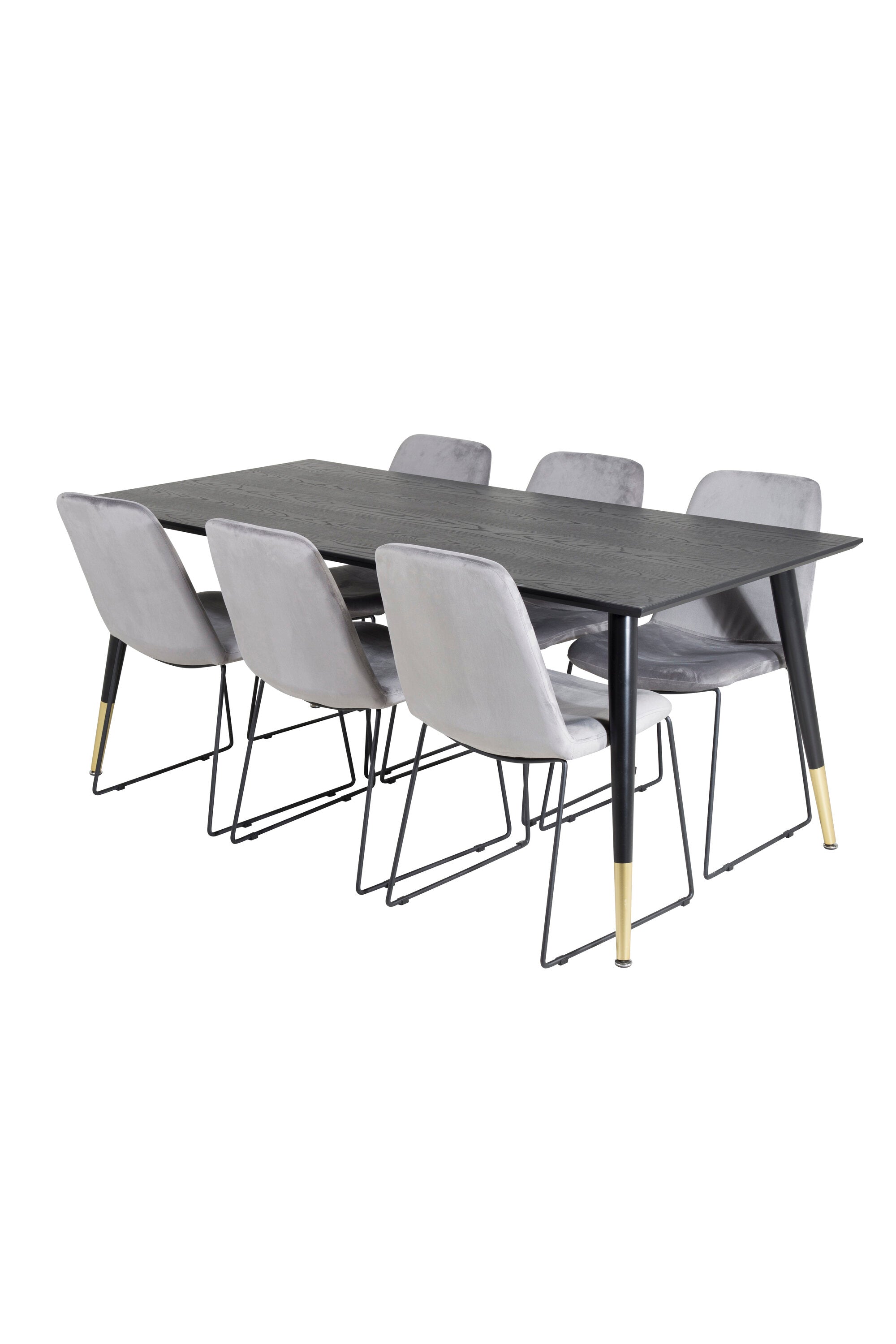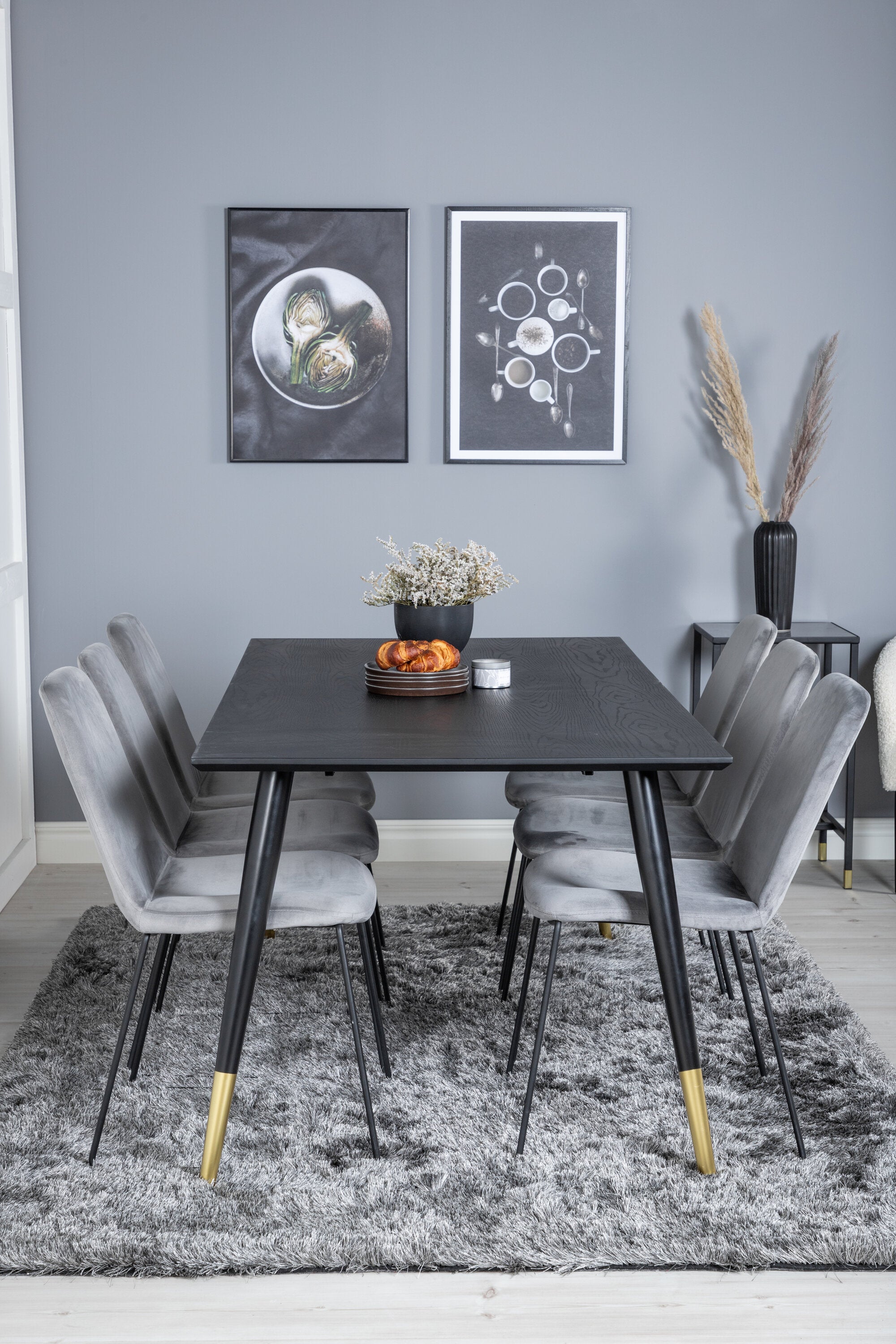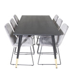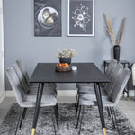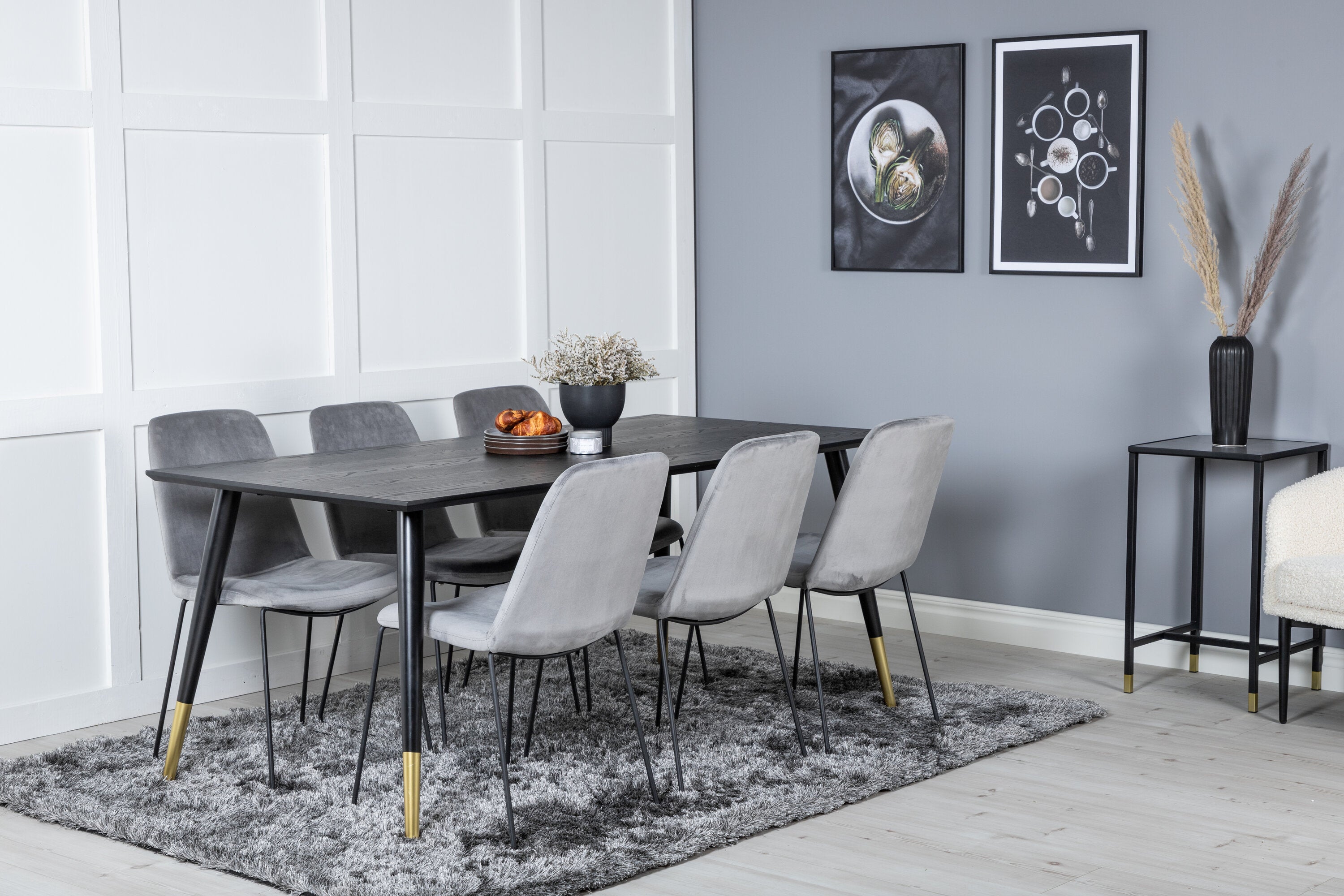 Jídelní stůl Dipp - 180*90cm - Černá / Černá mosaz+muce Jídelní židle - Černé nohy - Šedá Velvet_6
