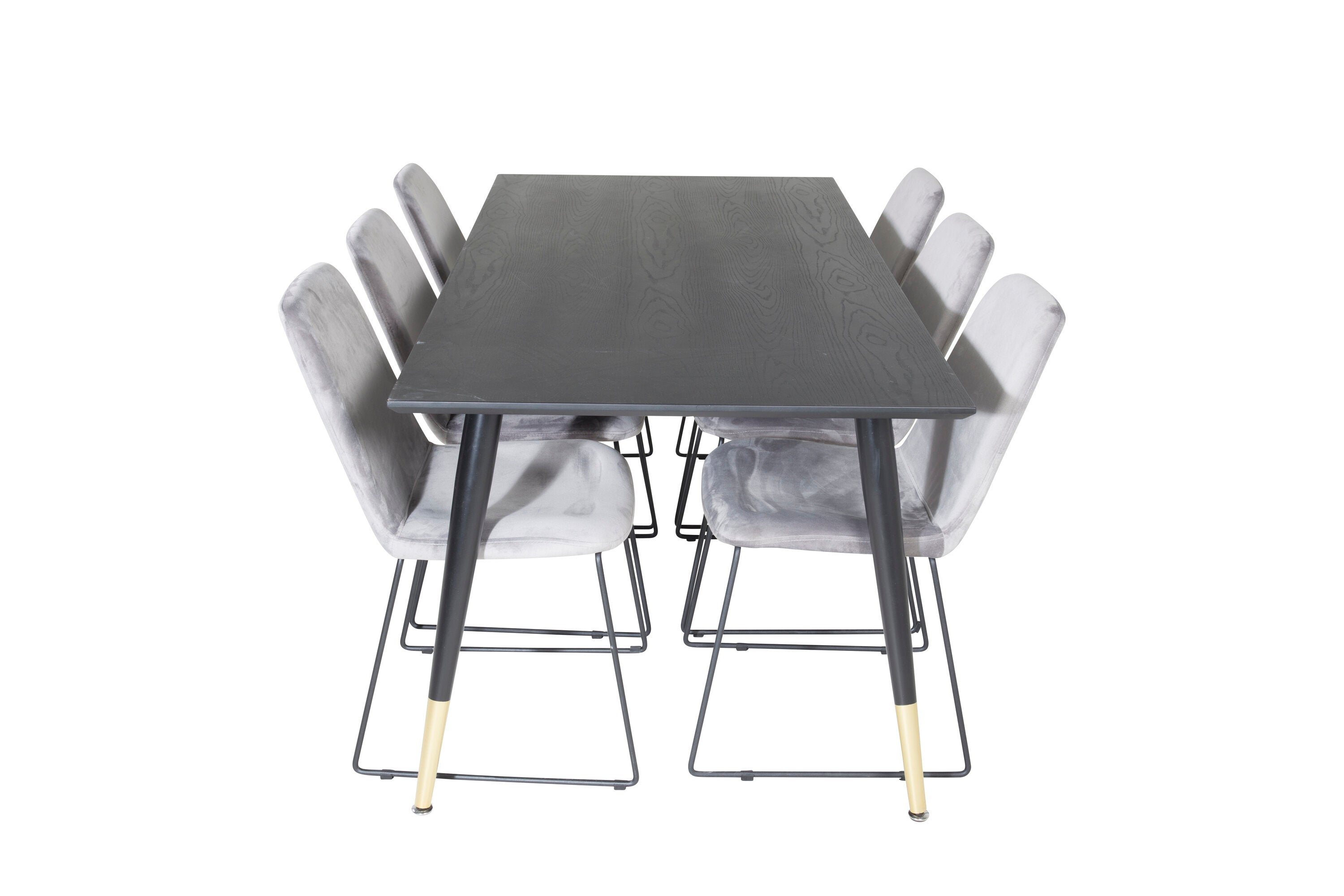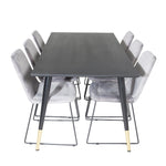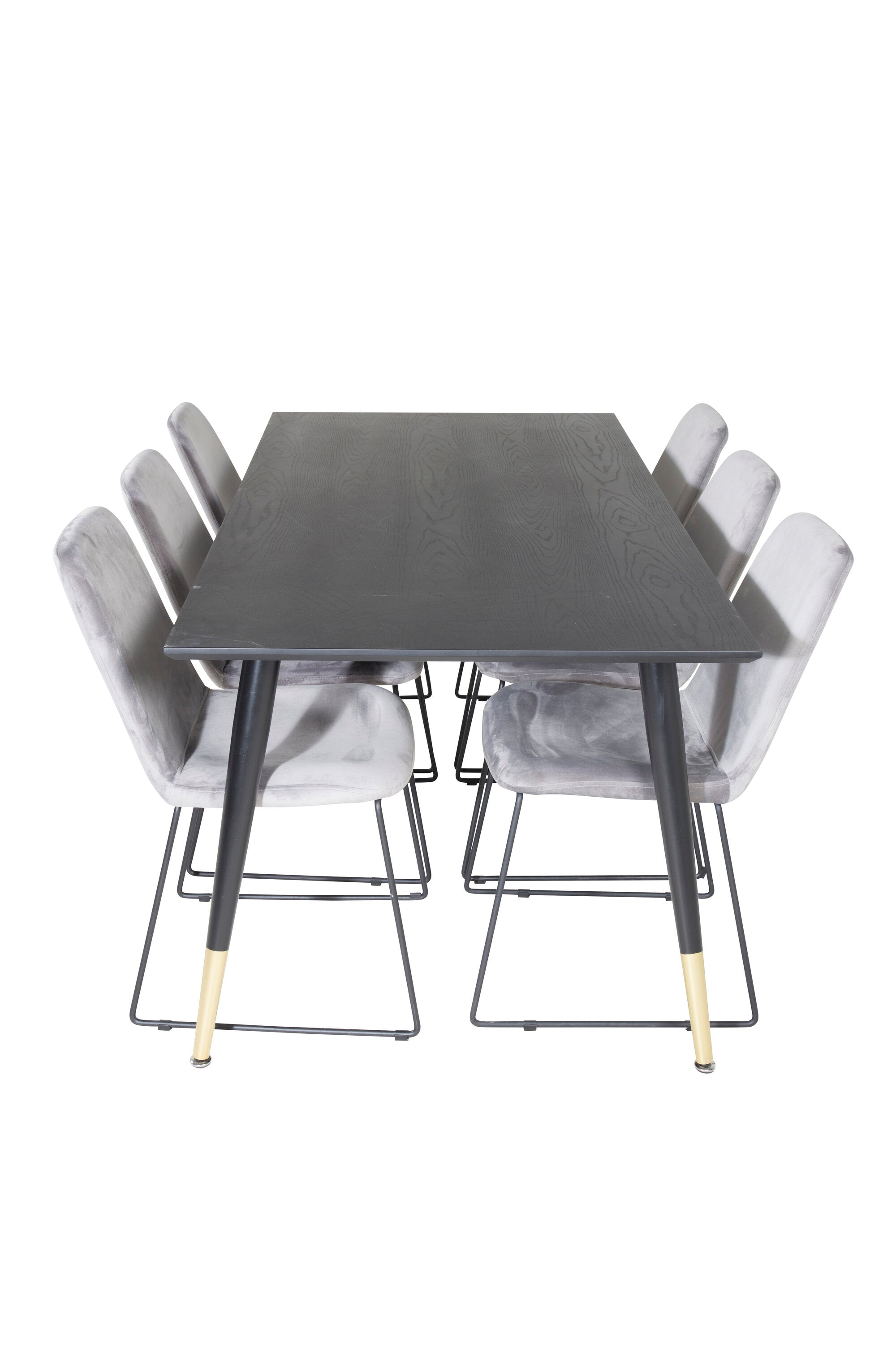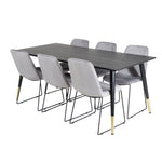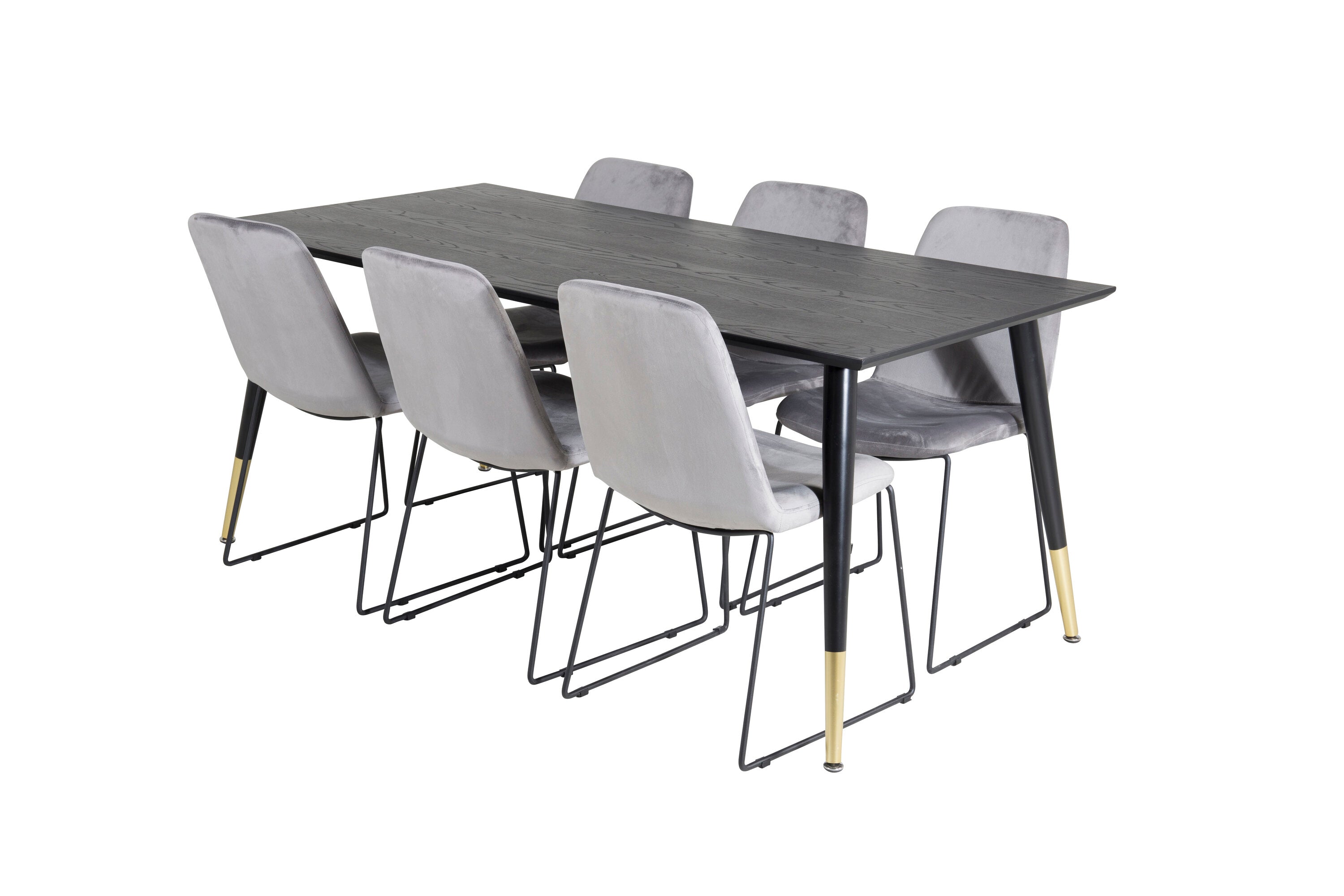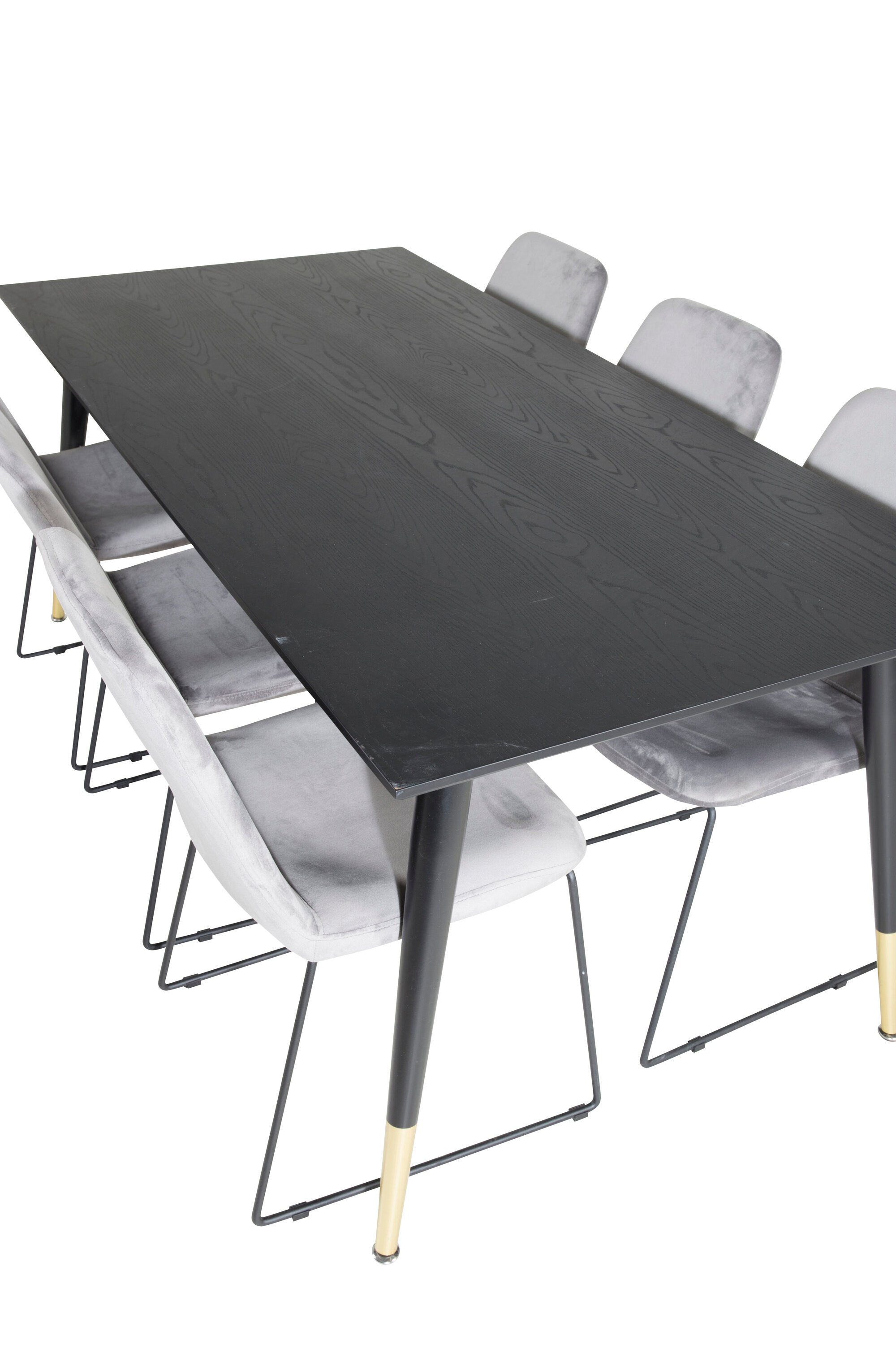 Jídelní stůl Dipp - 180*90cm - Černá / Černá mosaz+muce Jídelní židle - Černé nohy - Šedá Velvet_6