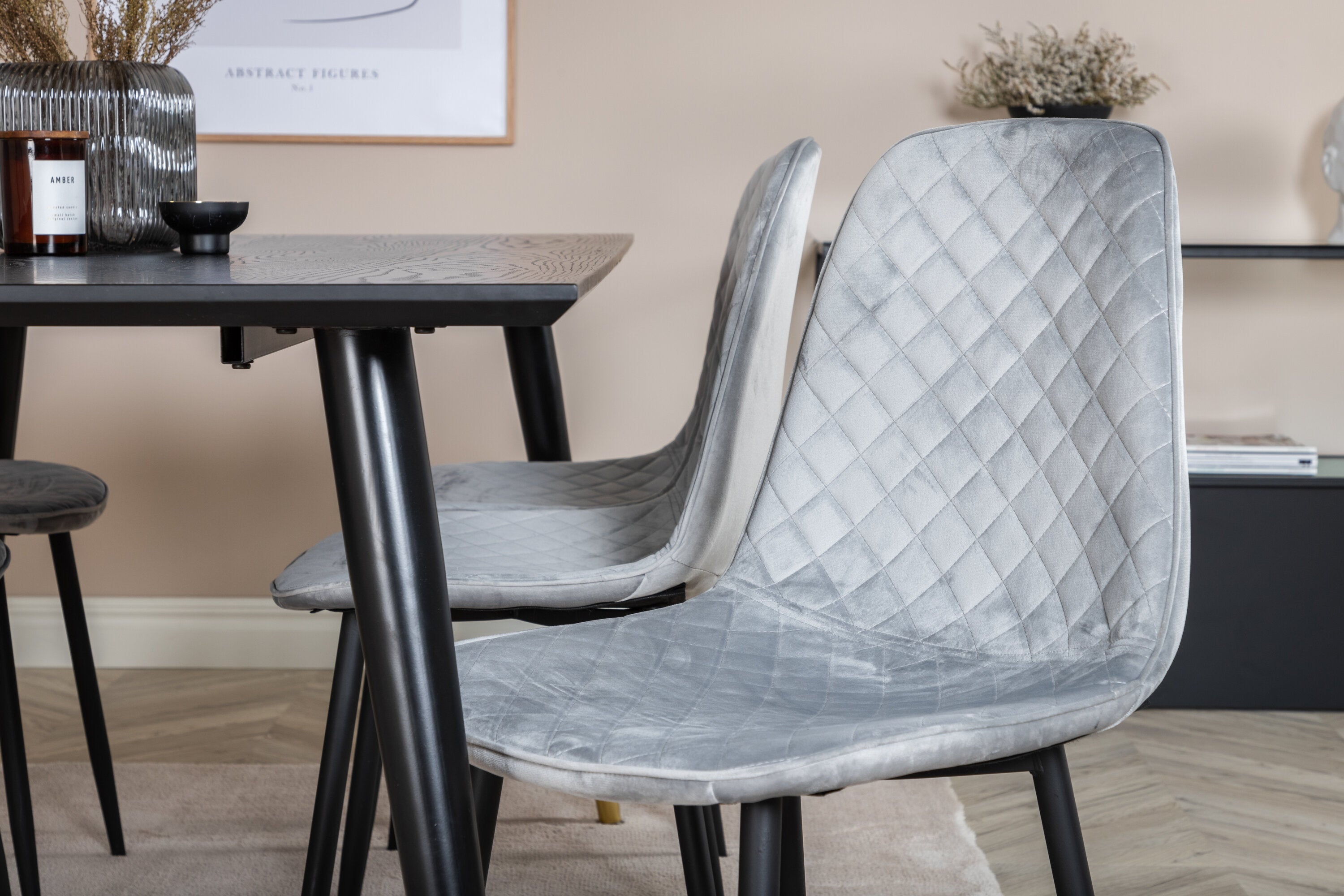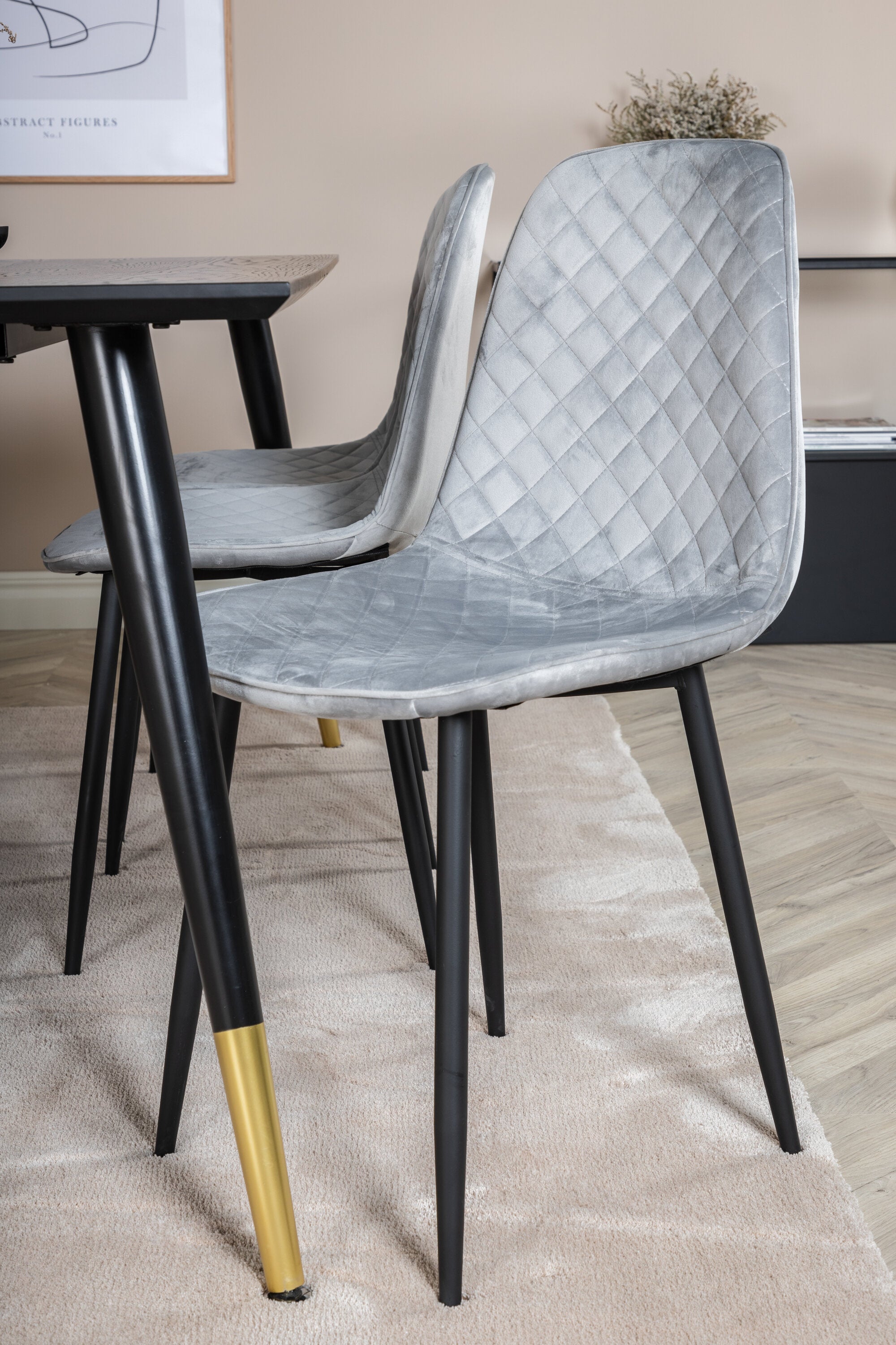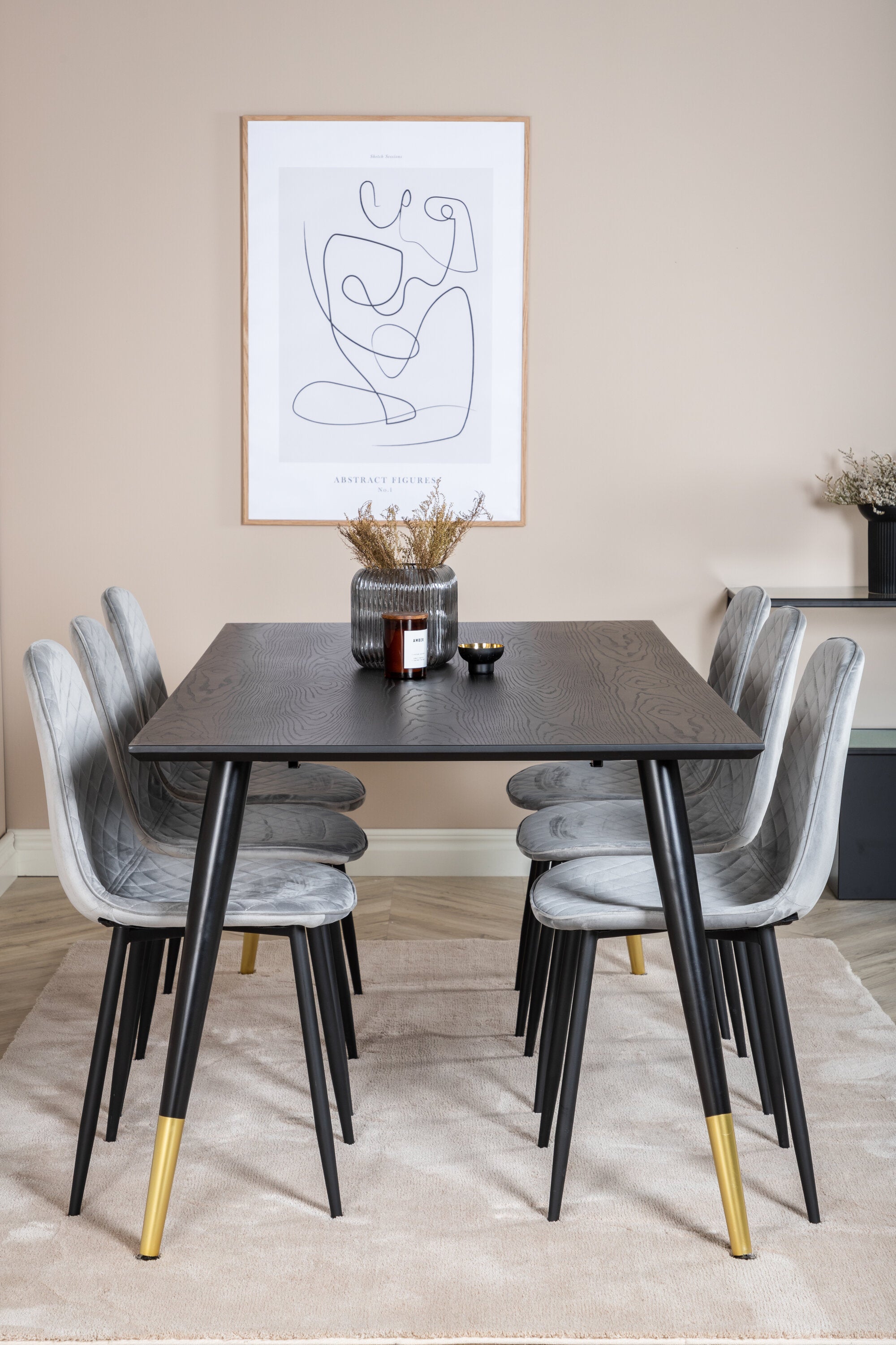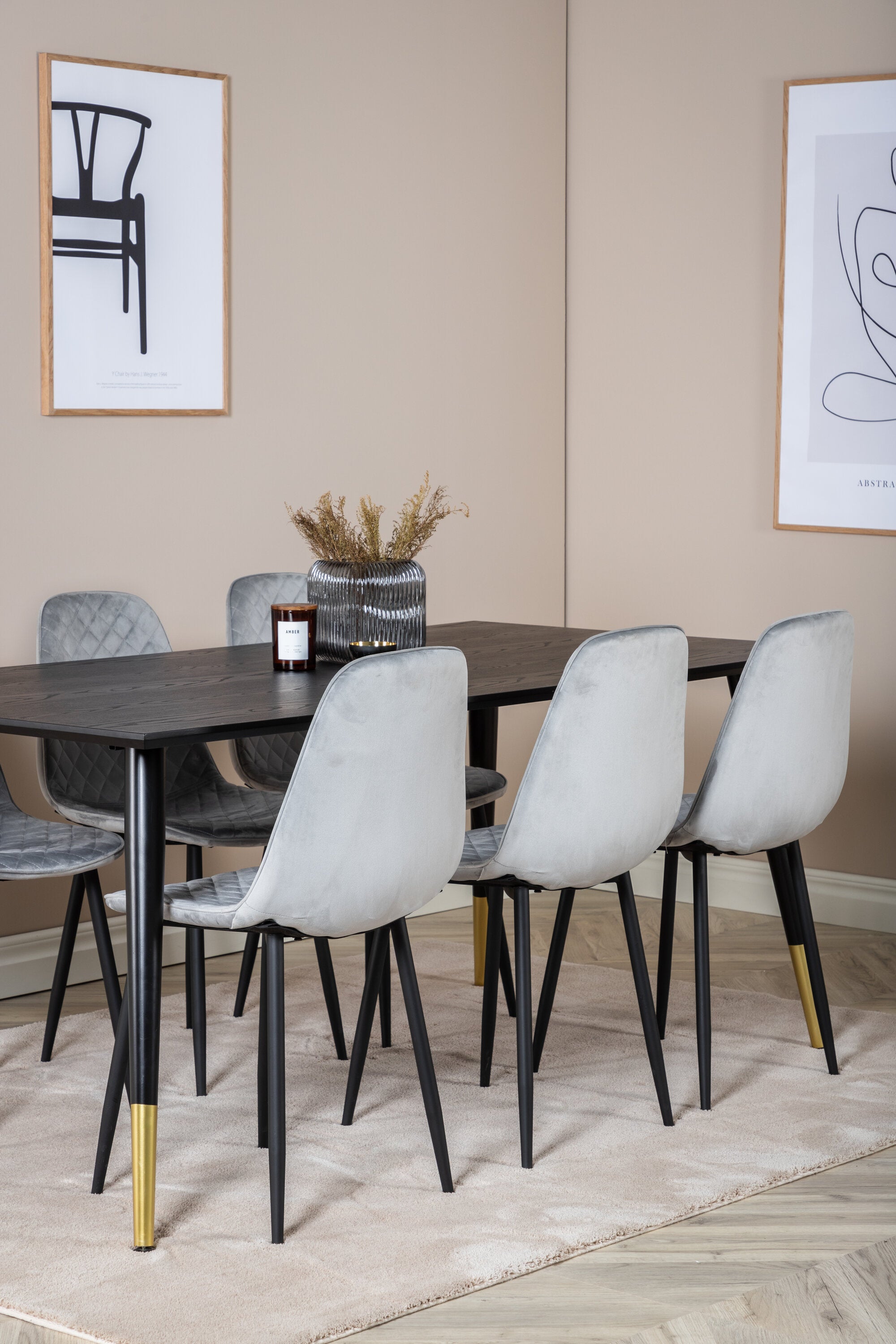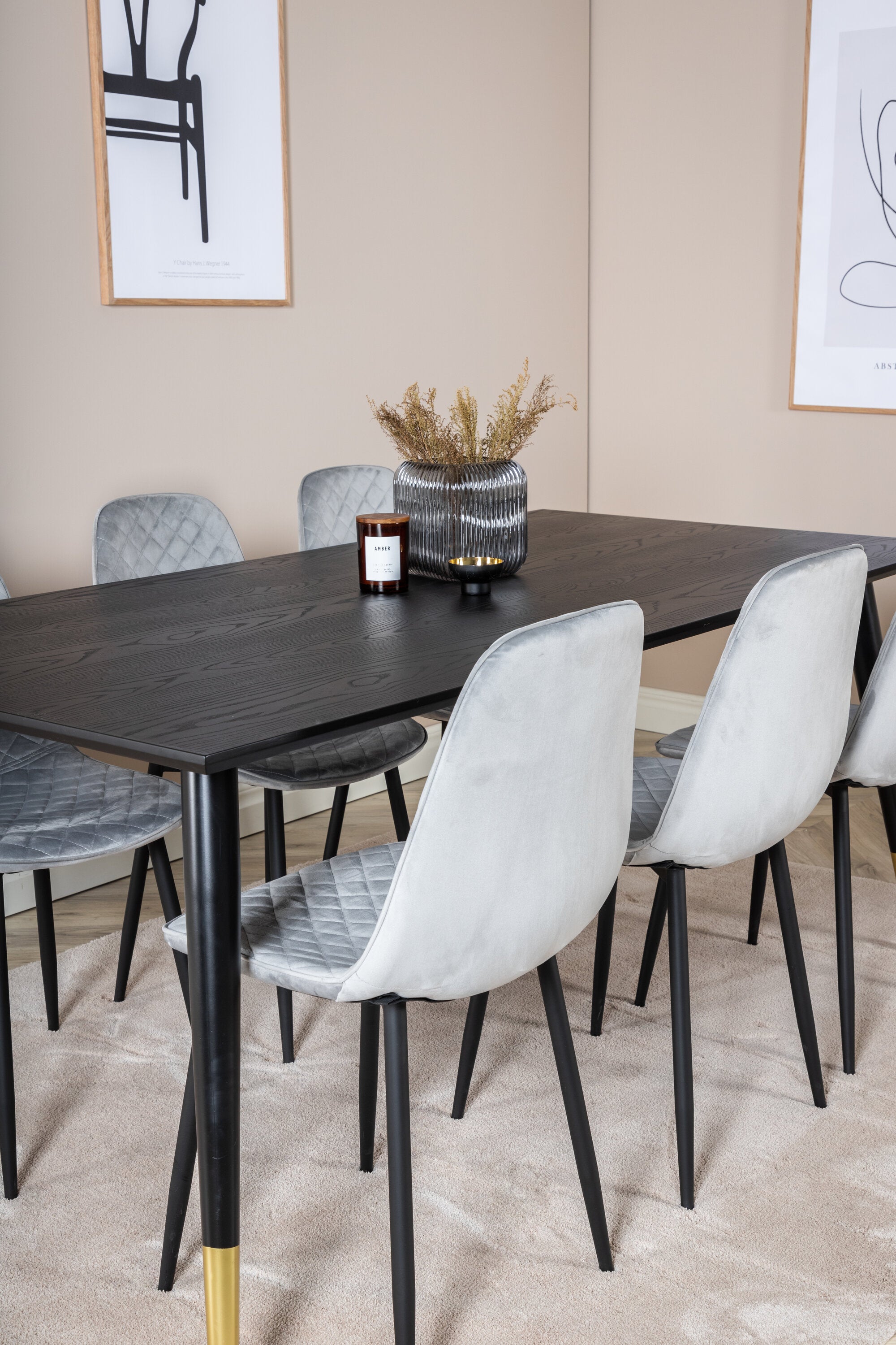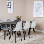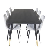 Jídelní stůl Dipp - 180*90cm - Černá / Černá mosaz + Polar Diamond Jídelní židle - Černé nohy - Šedá Velvet_6
