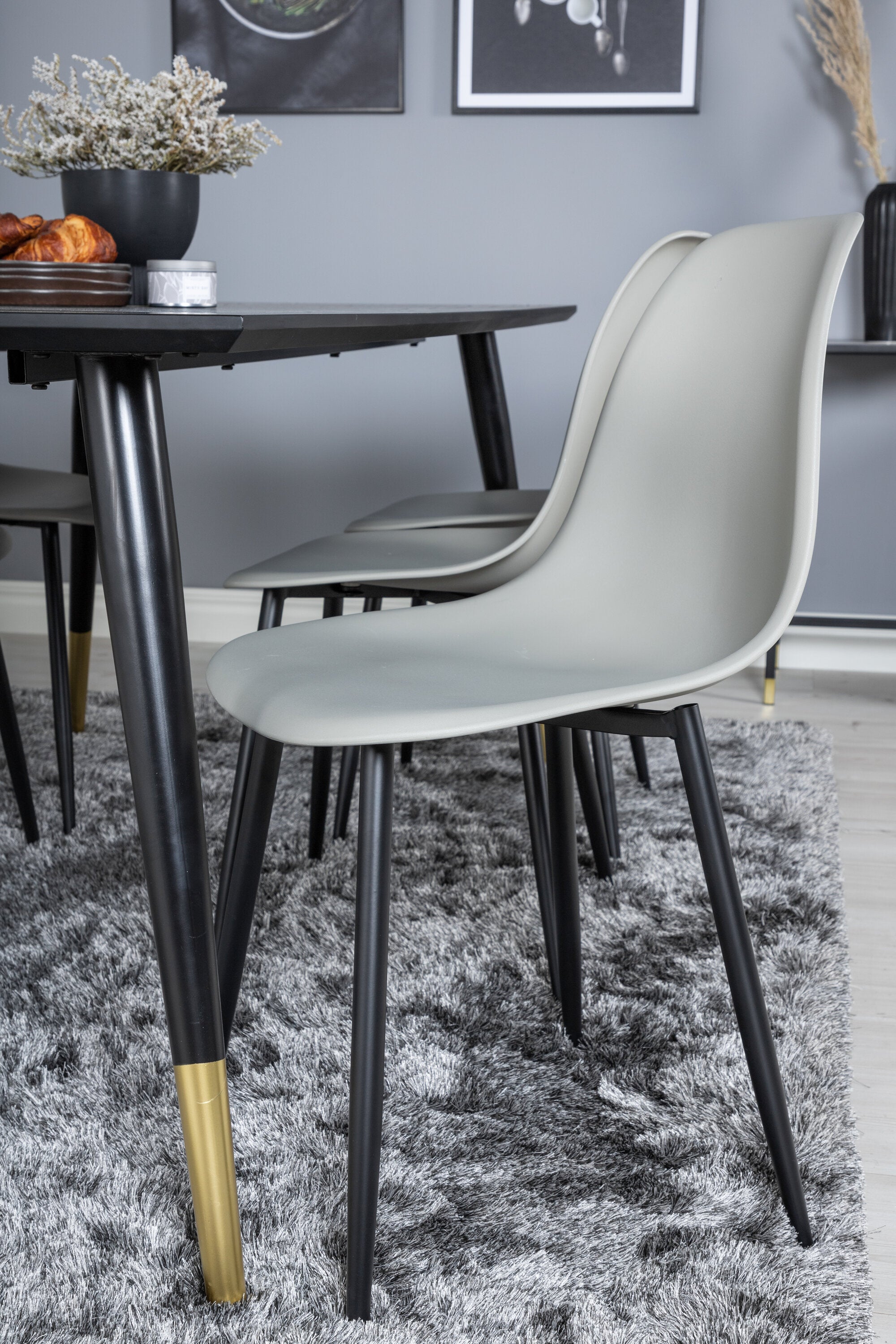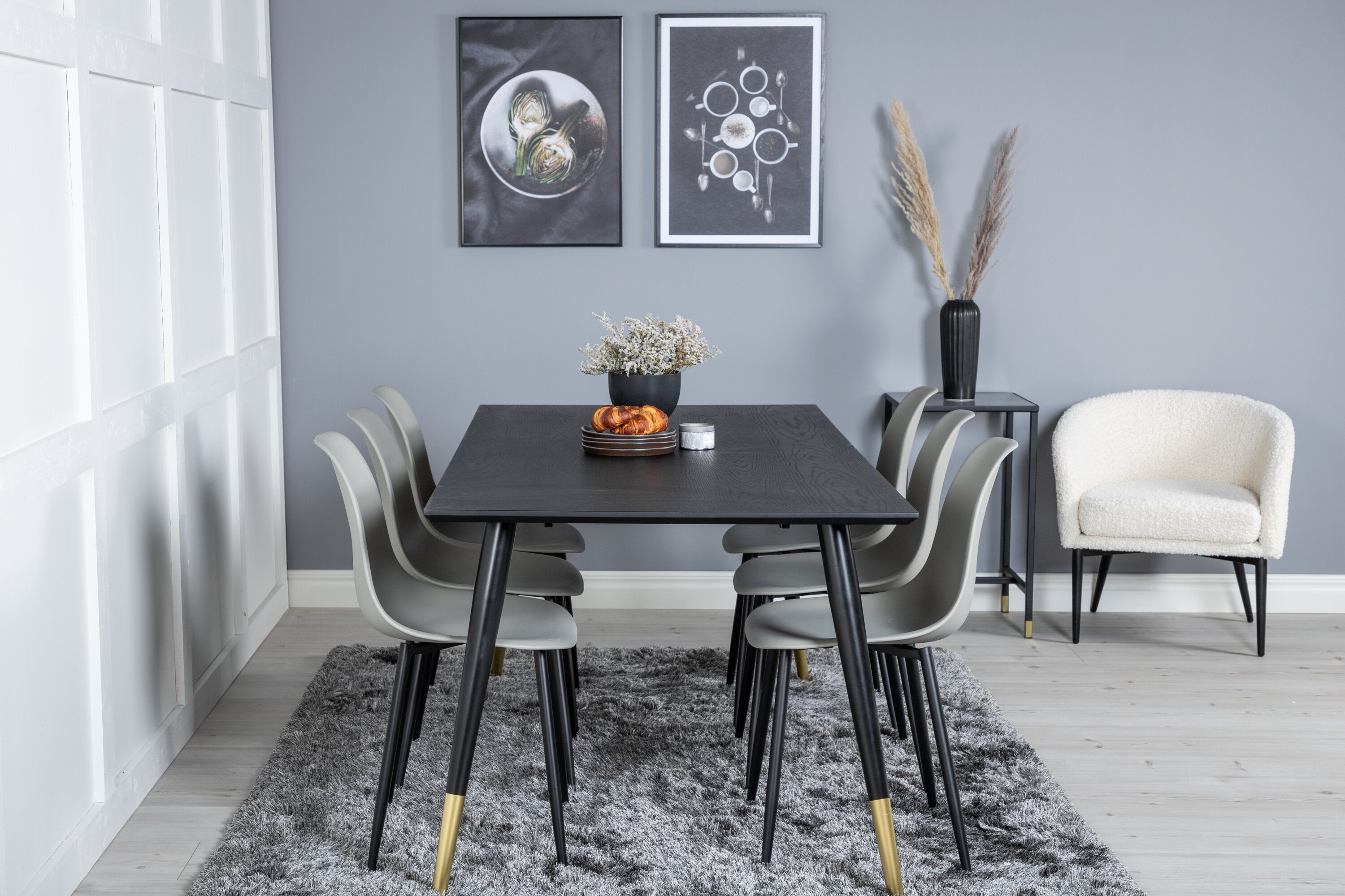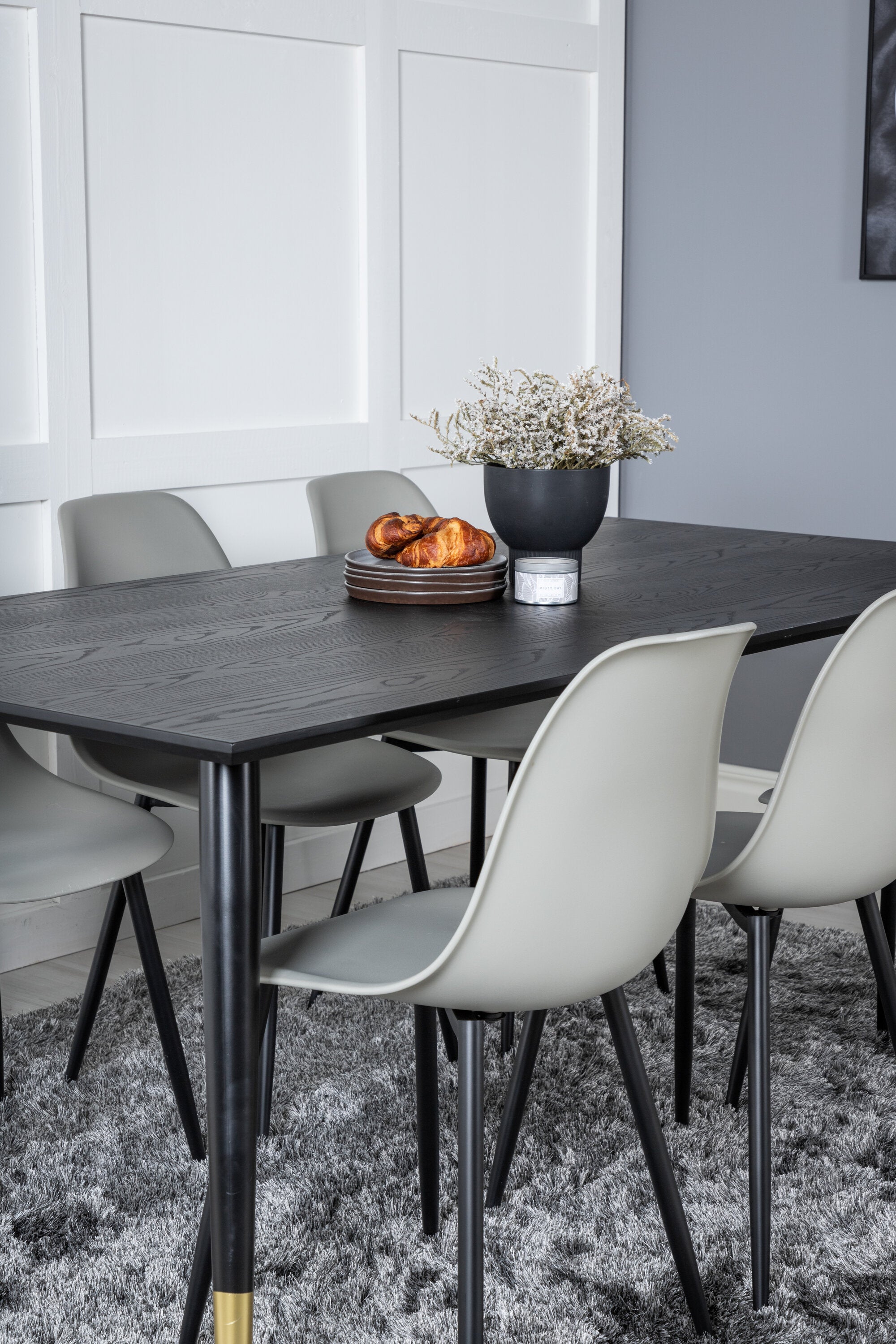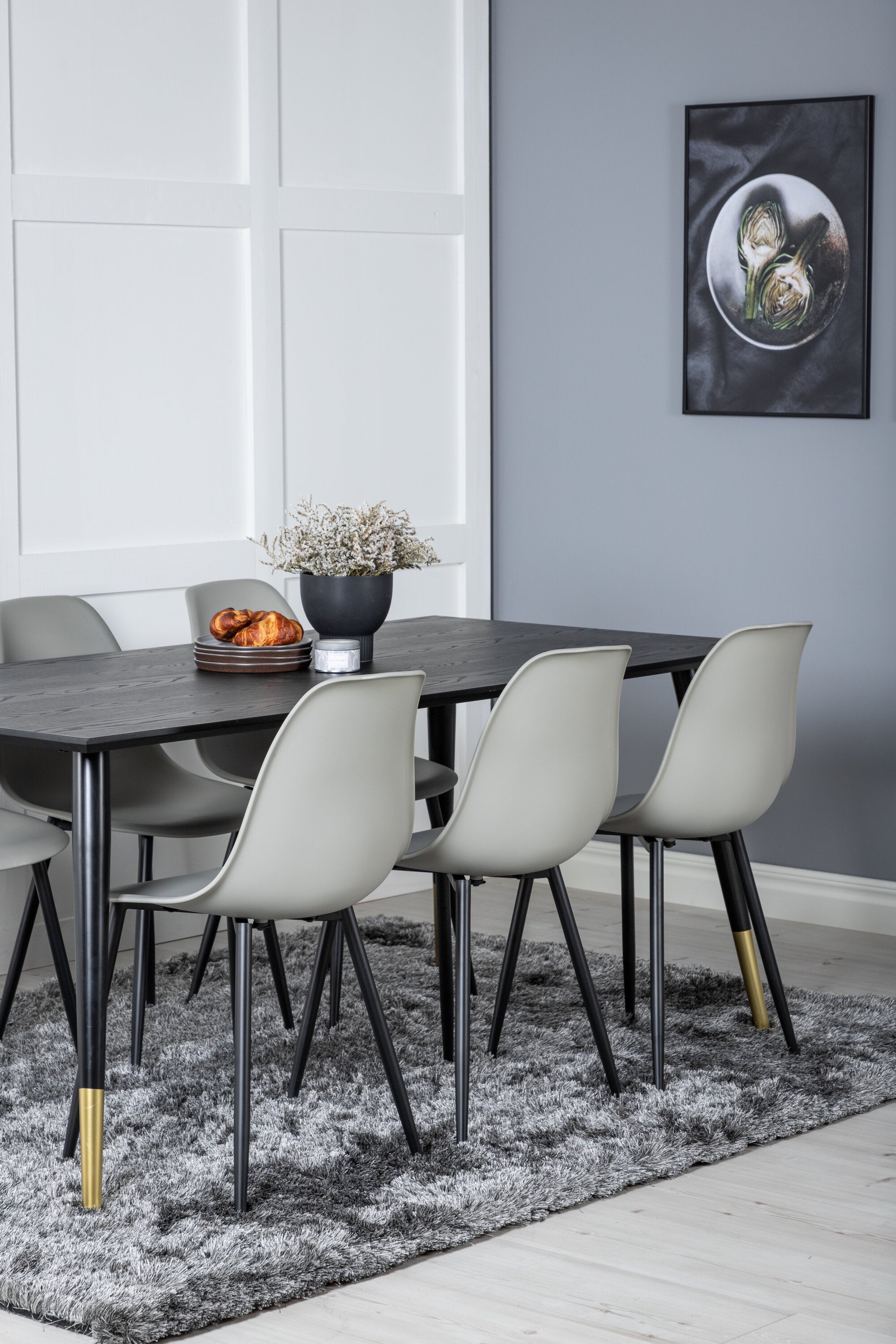 Jídelní stůl Dipp - 180*90cm - Černá / Černá mosaz+Polar Plastová jídelní židle - Černé nohy / Šedý plast_6