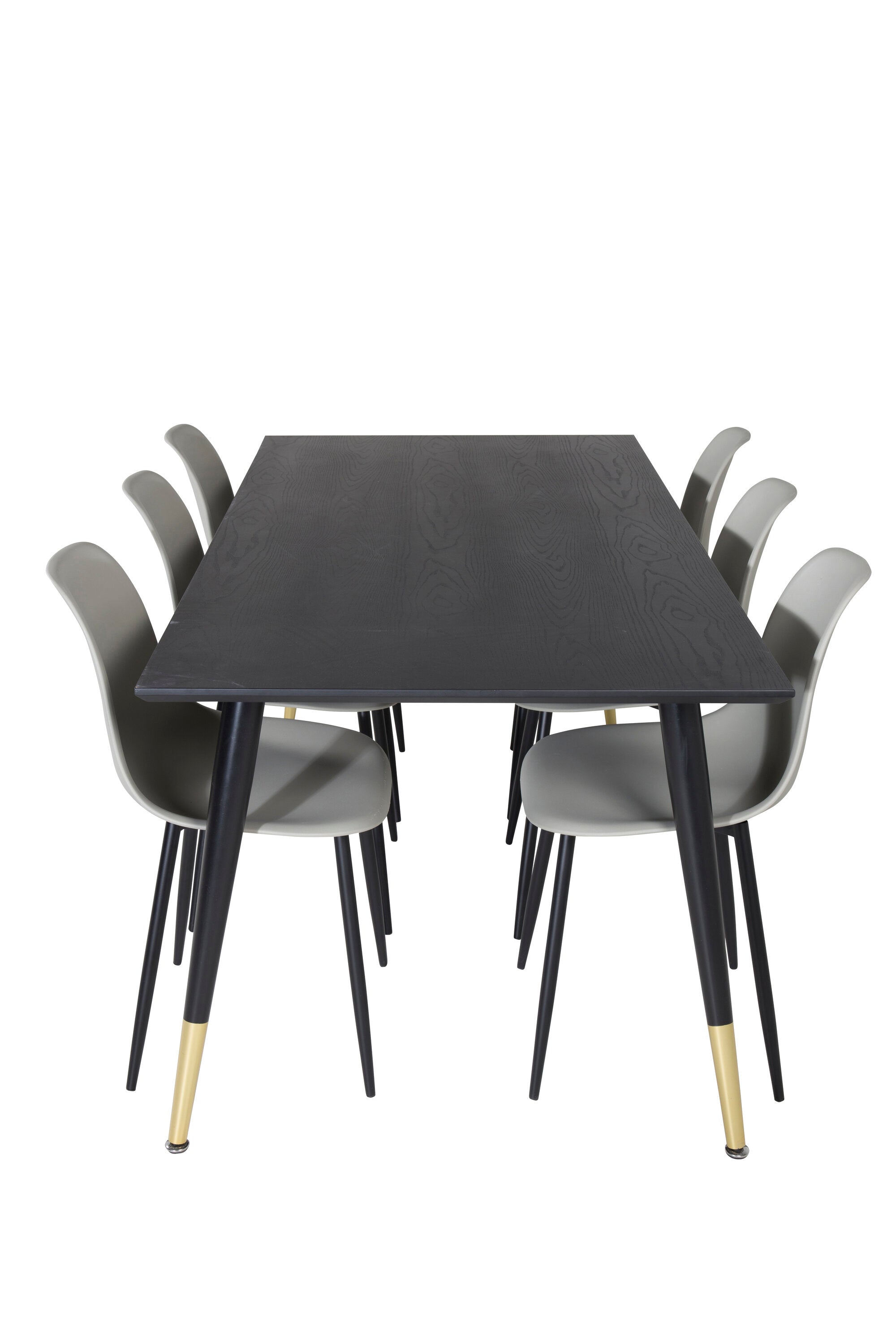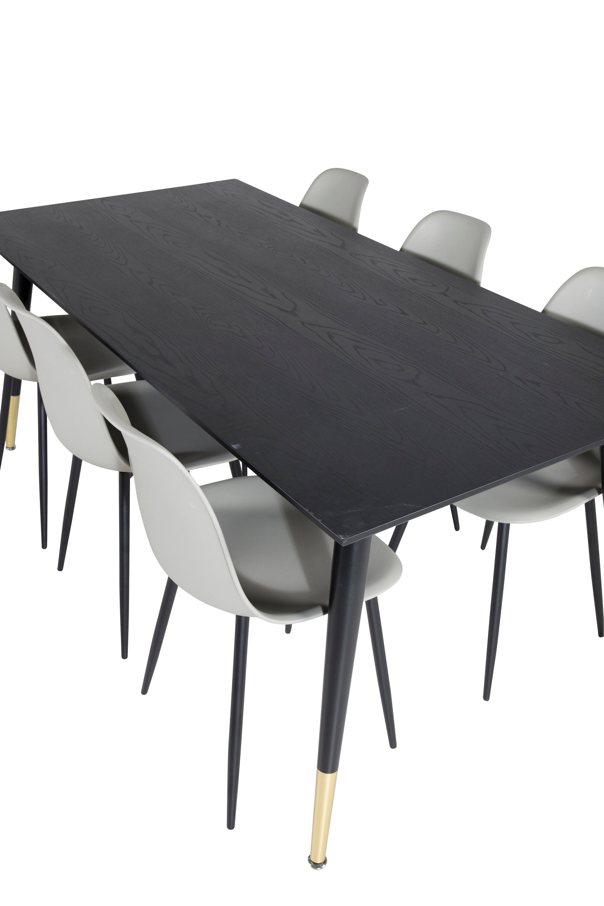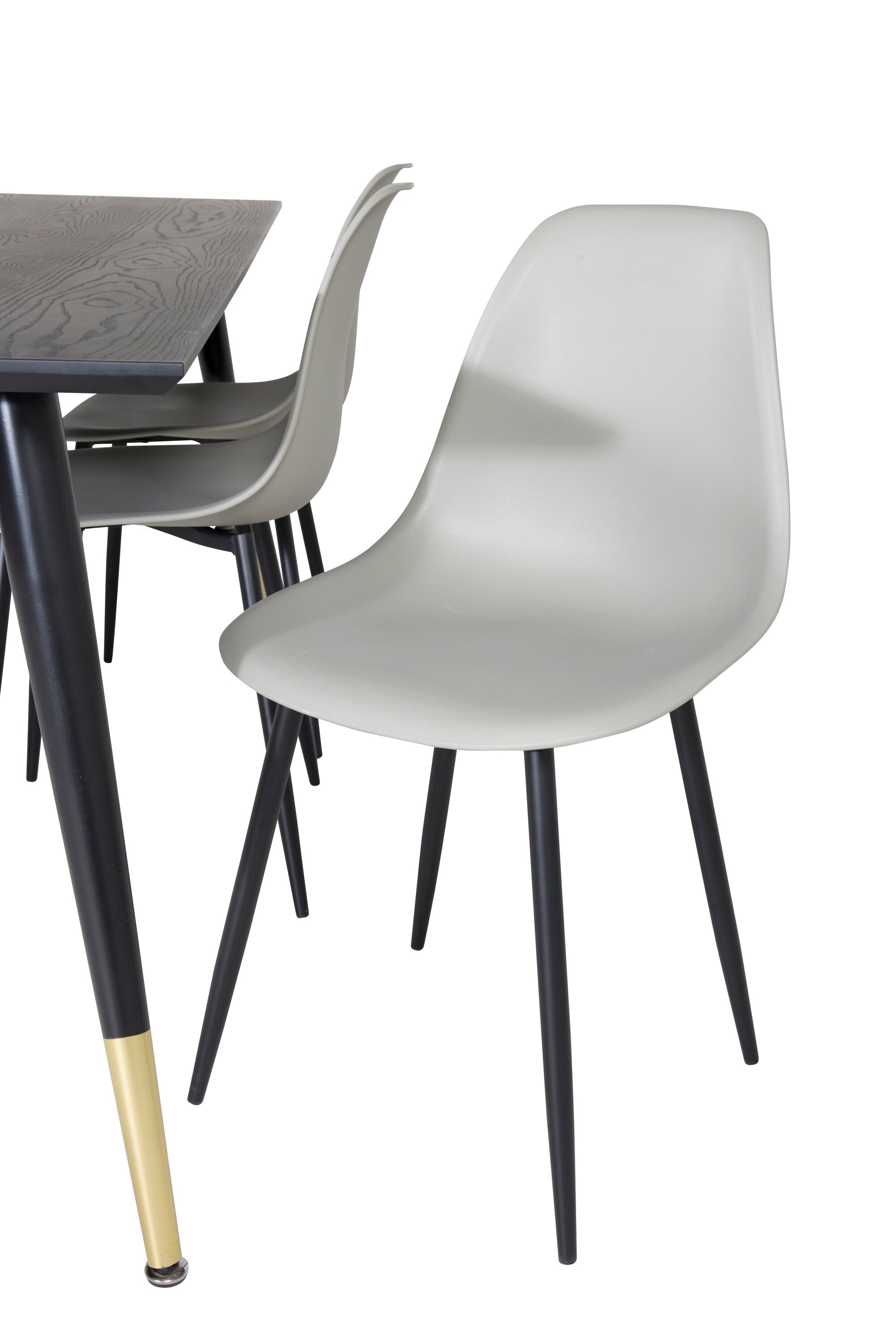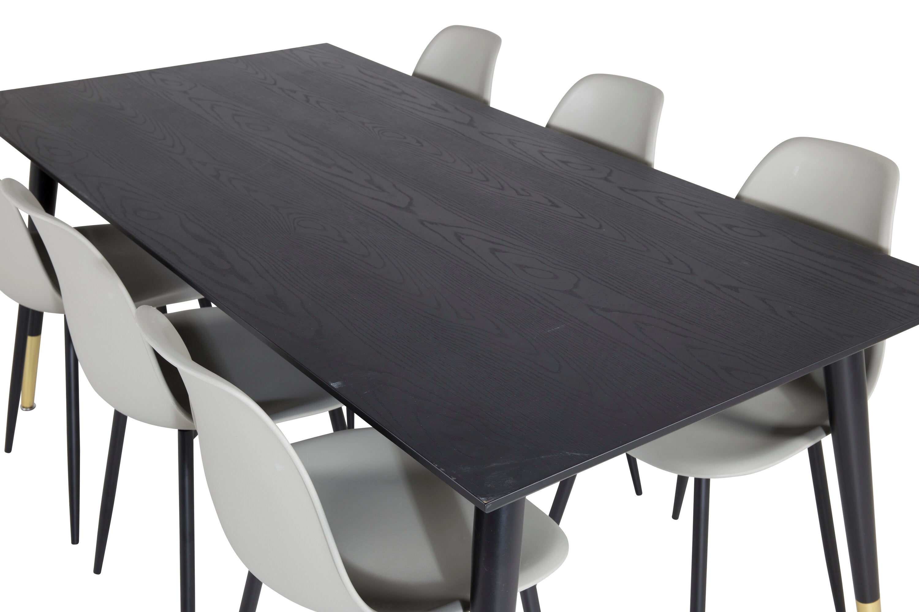 Jídelní stůl Dipp - 180*90cm - Černá / Černá mosaz+Polar Plastová jídelní židle - Černé nohy / Šedý plast_6