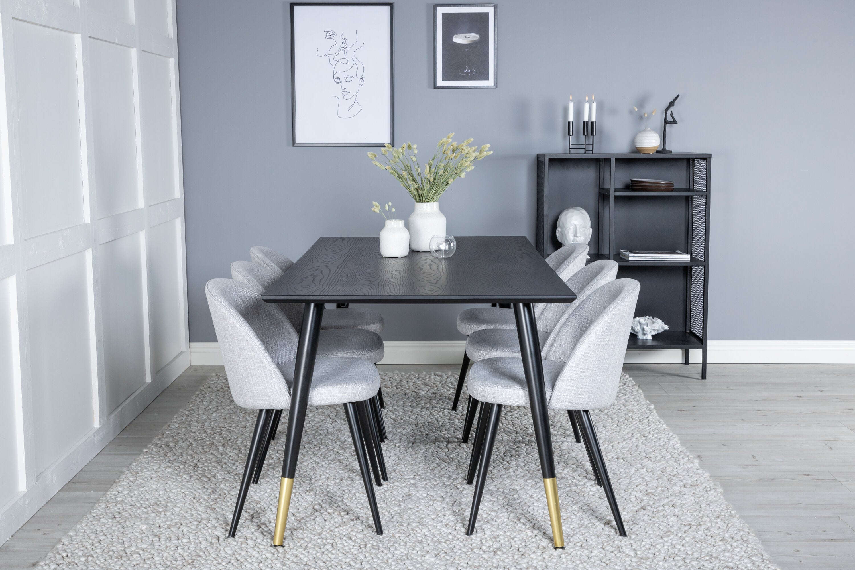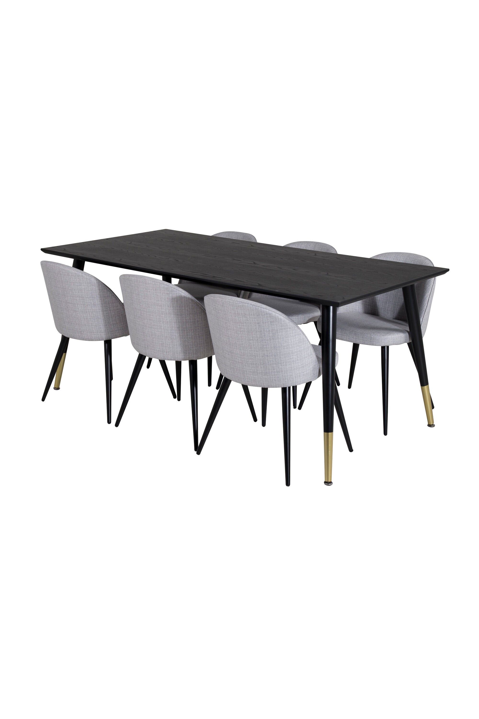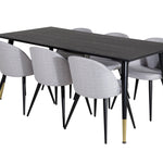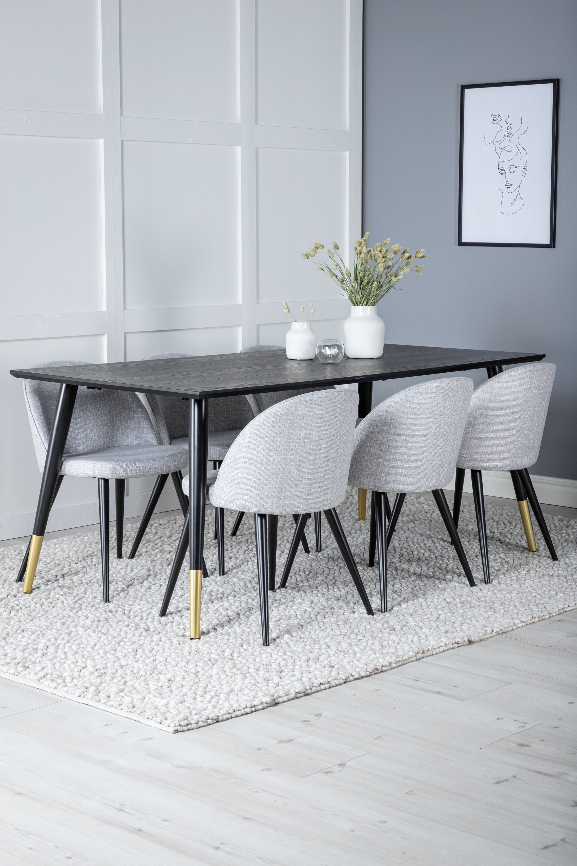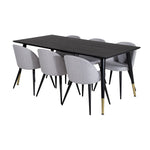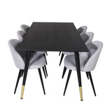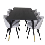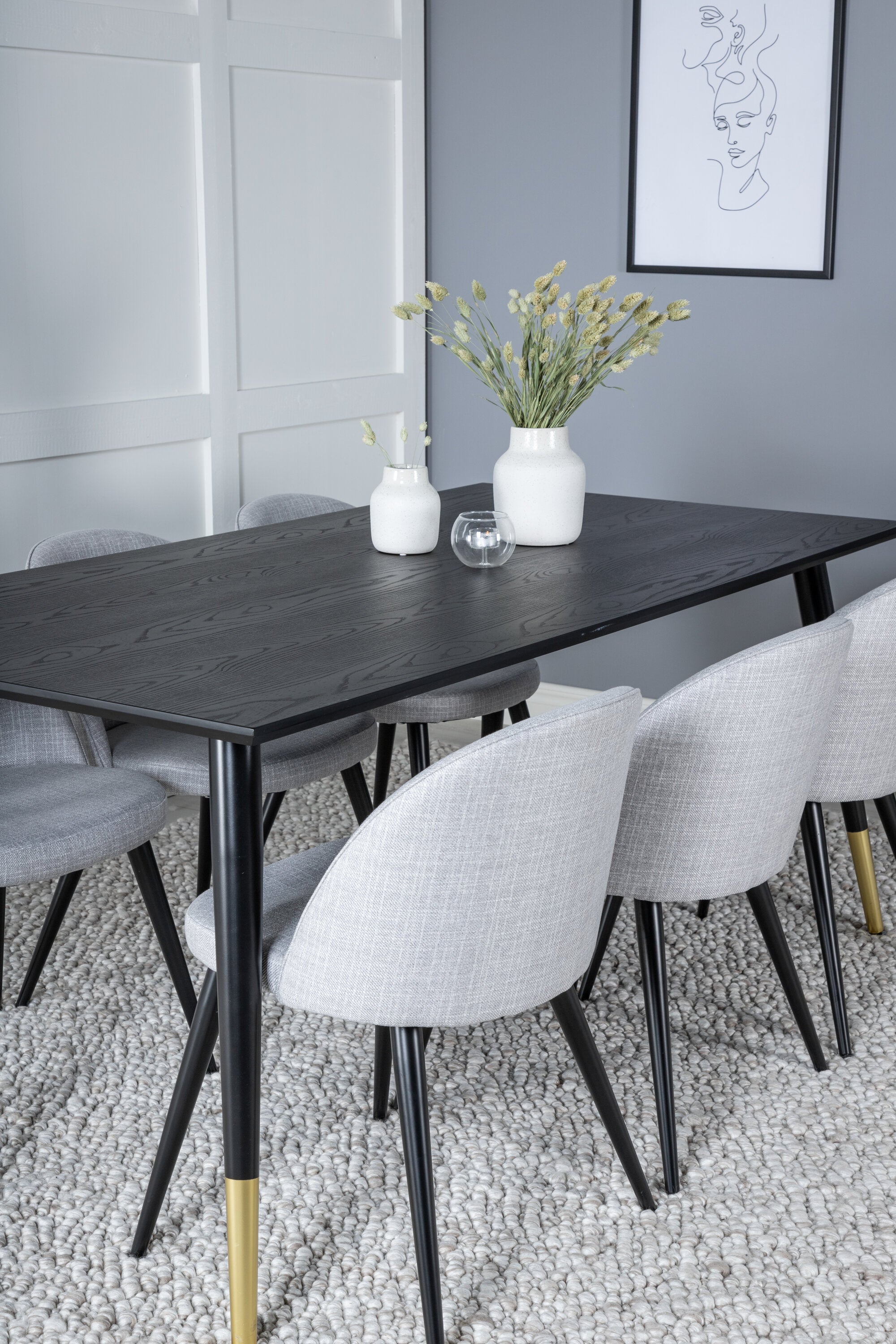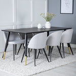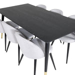 Jídelní stůl Dipp - 180*90cm - Černá / Černá mosaz+Sametová jídelní židle - Černé nohy - Světle šedáTkanina_6
