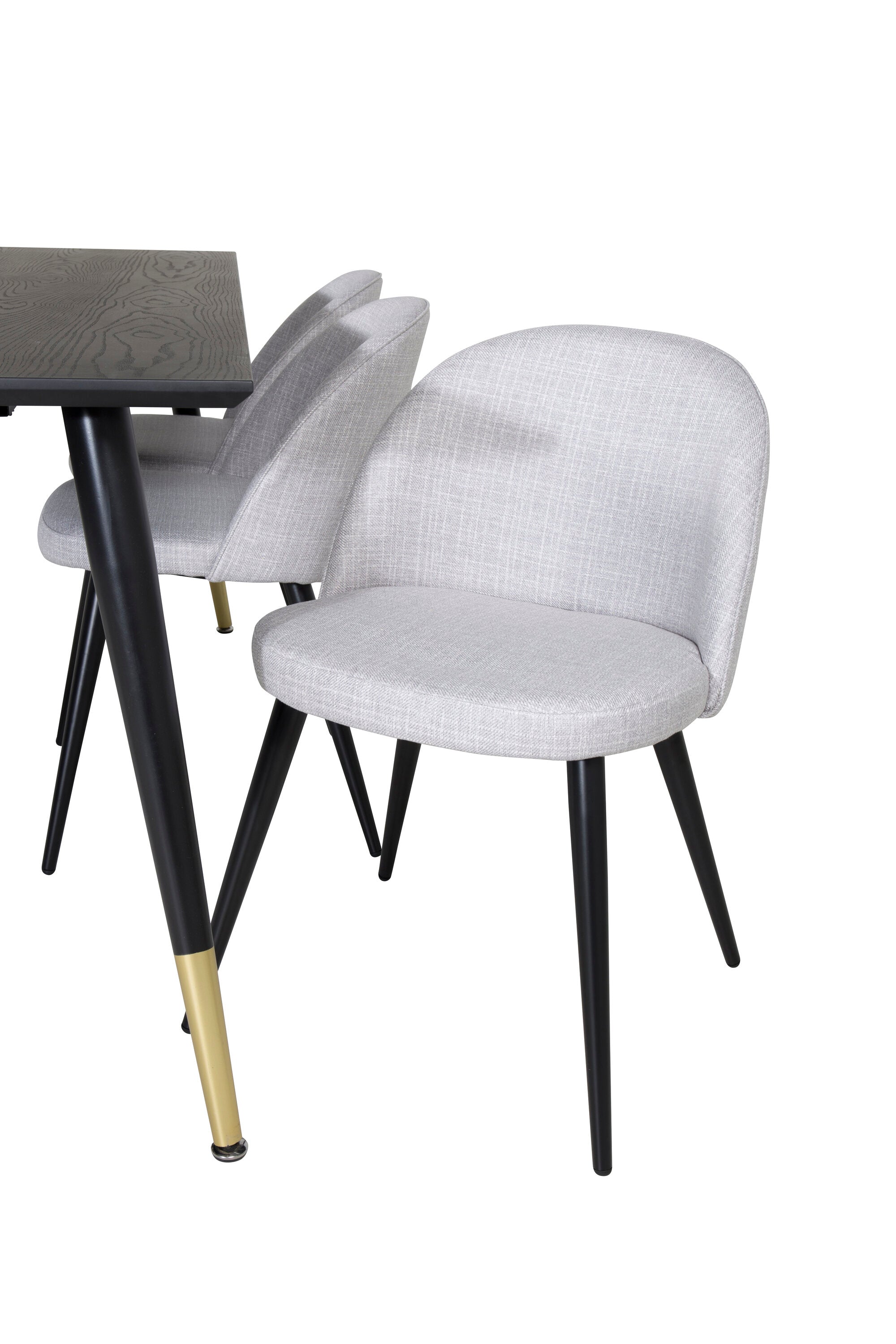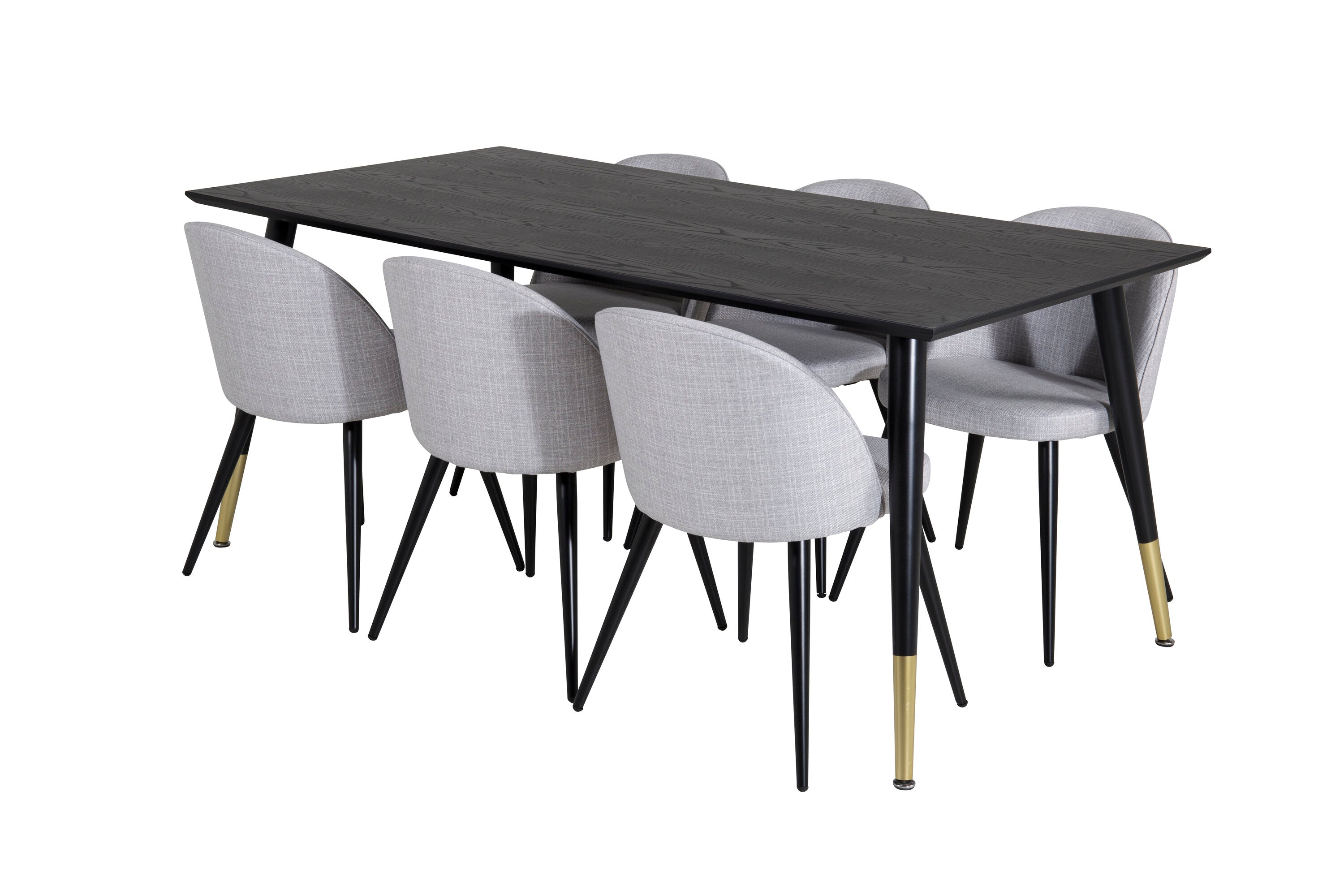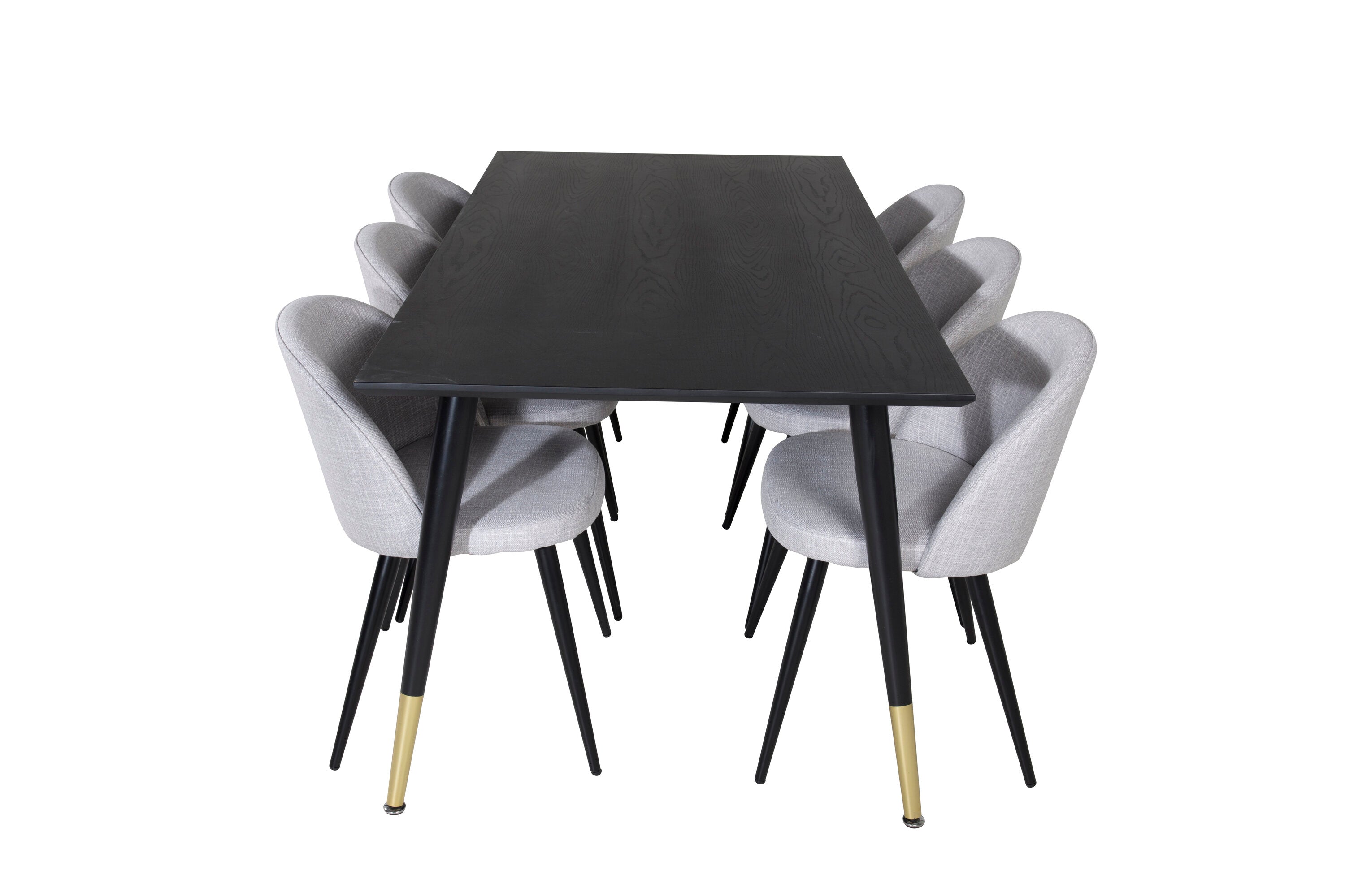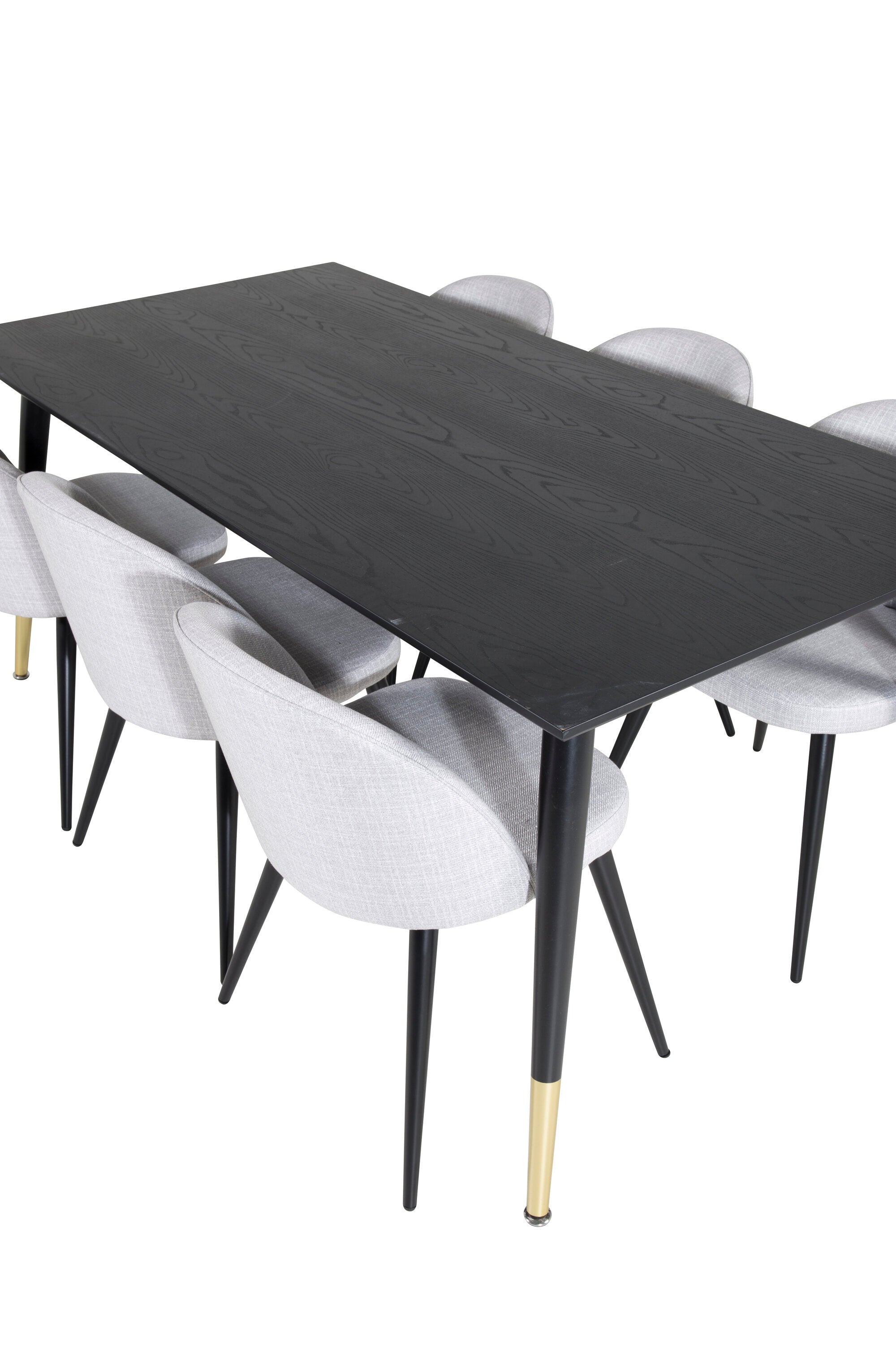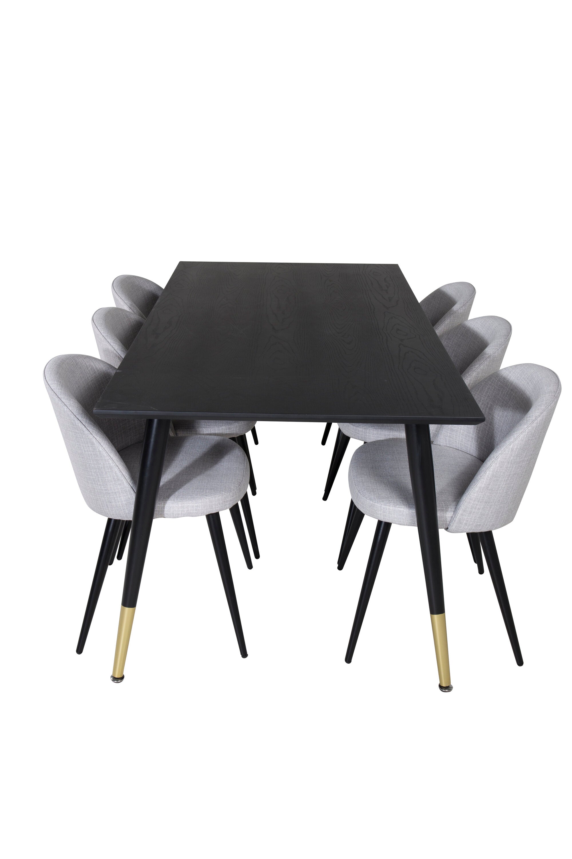 Jídelní stůl Dipp - 180*90cm - Černá / Černá mosaz+Sametová jídelní židle - Černé nohy - Světle šedáTkanina_6