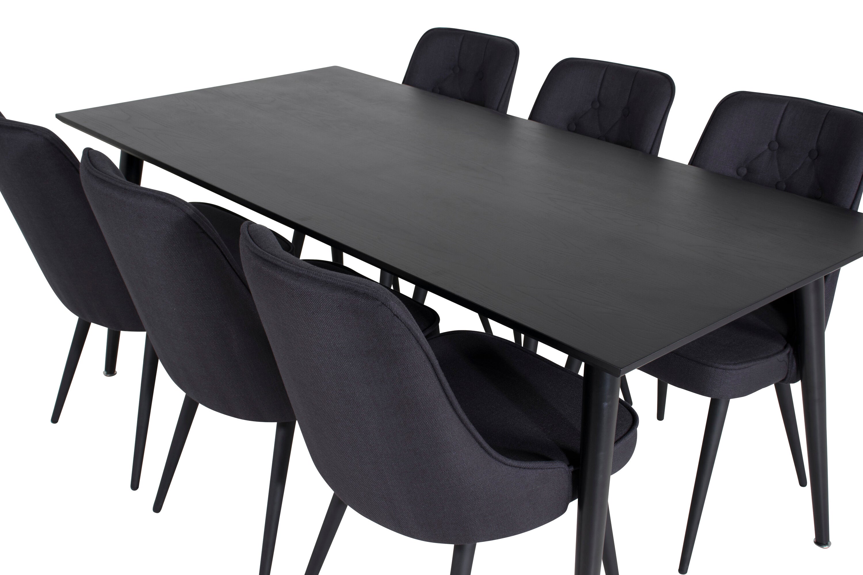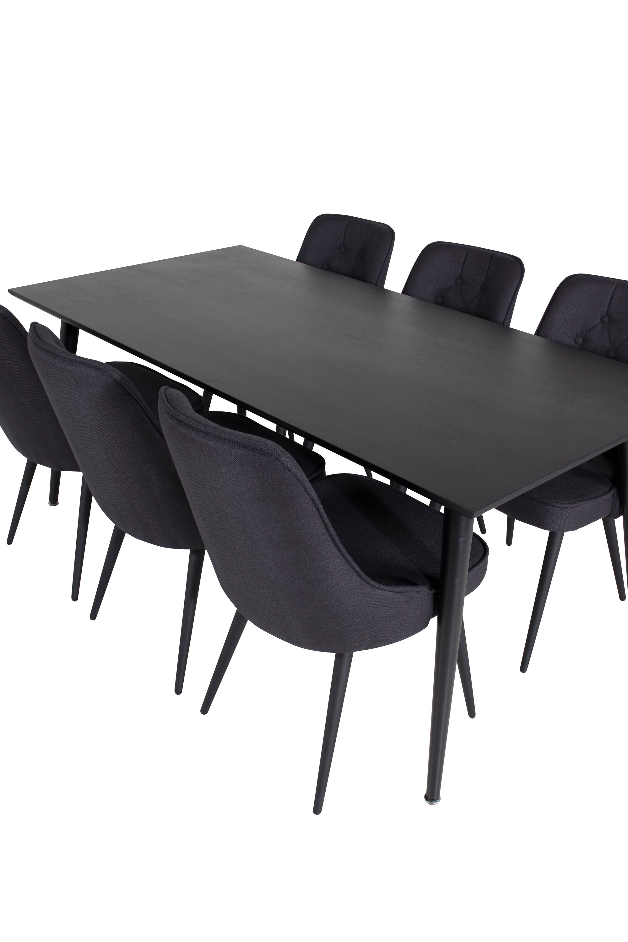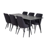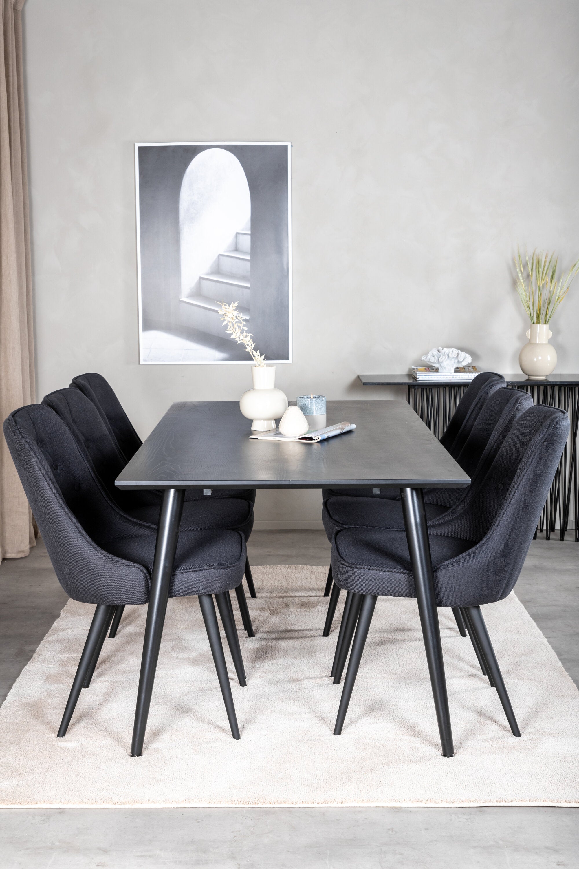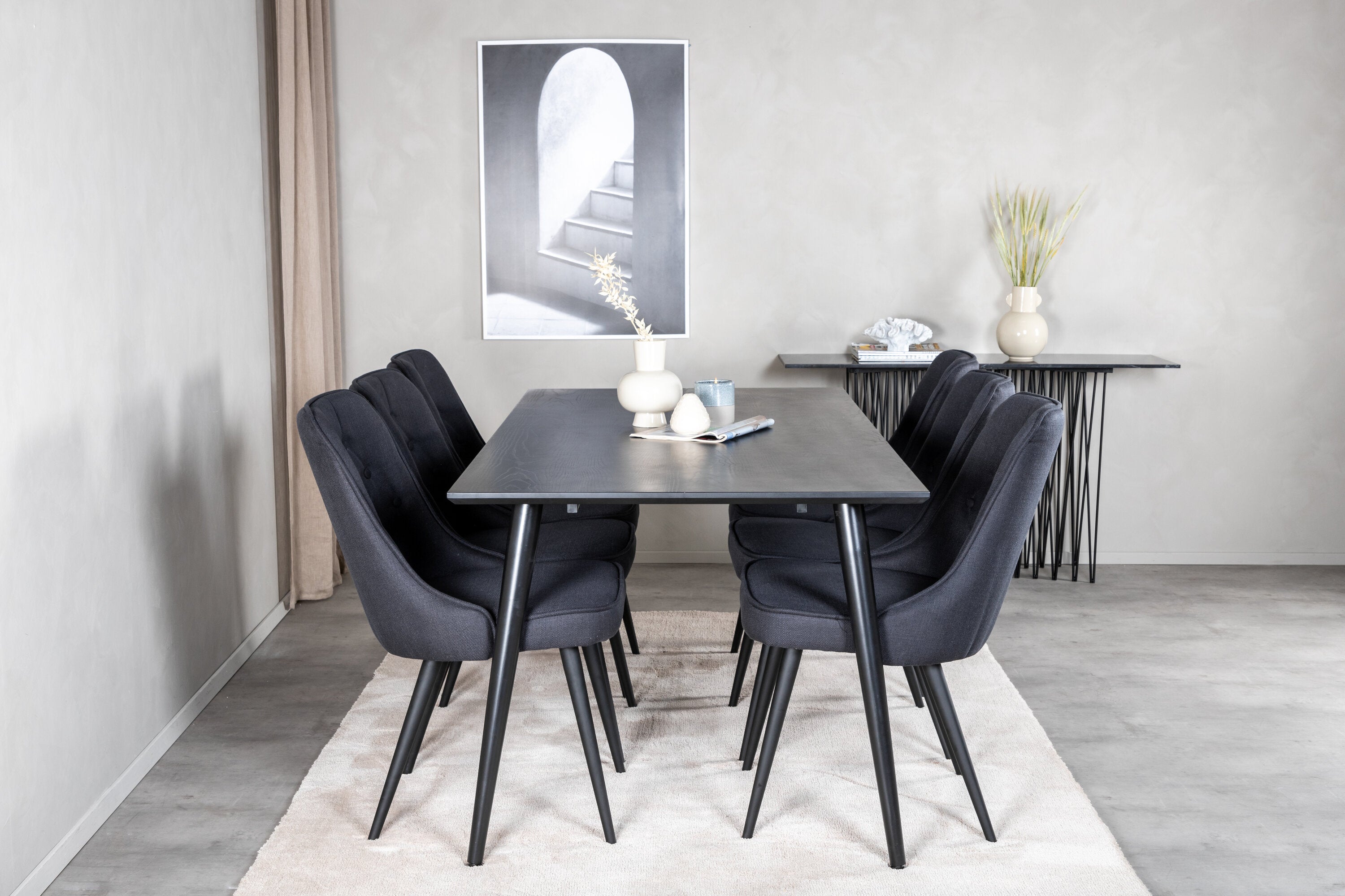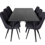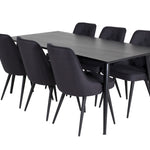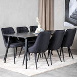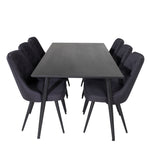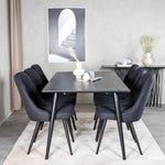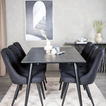 Jídelní stůl Dipp - 180*90cm - Černá dýha / celé černé nohy + Jídelní židle Velvet Deluxe - Černé nohy - Black Fabric_6