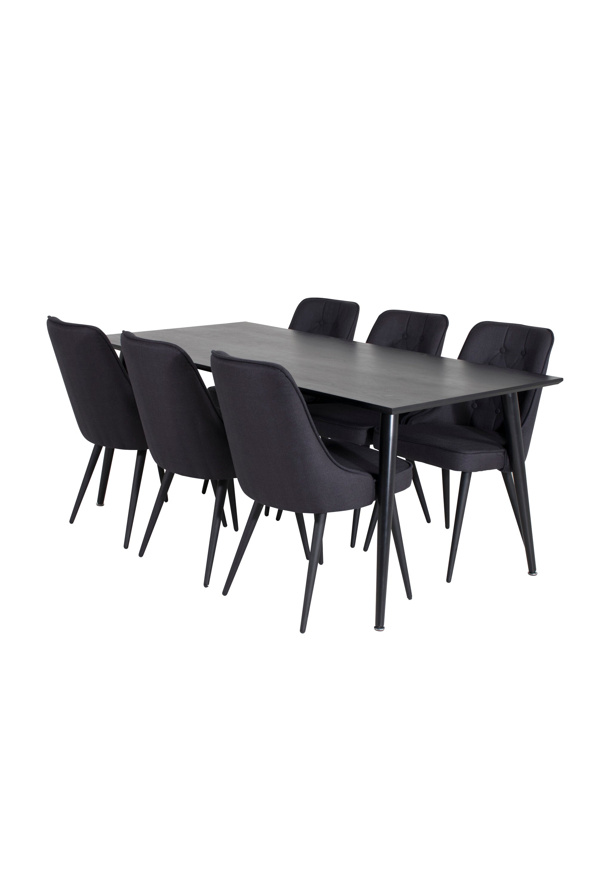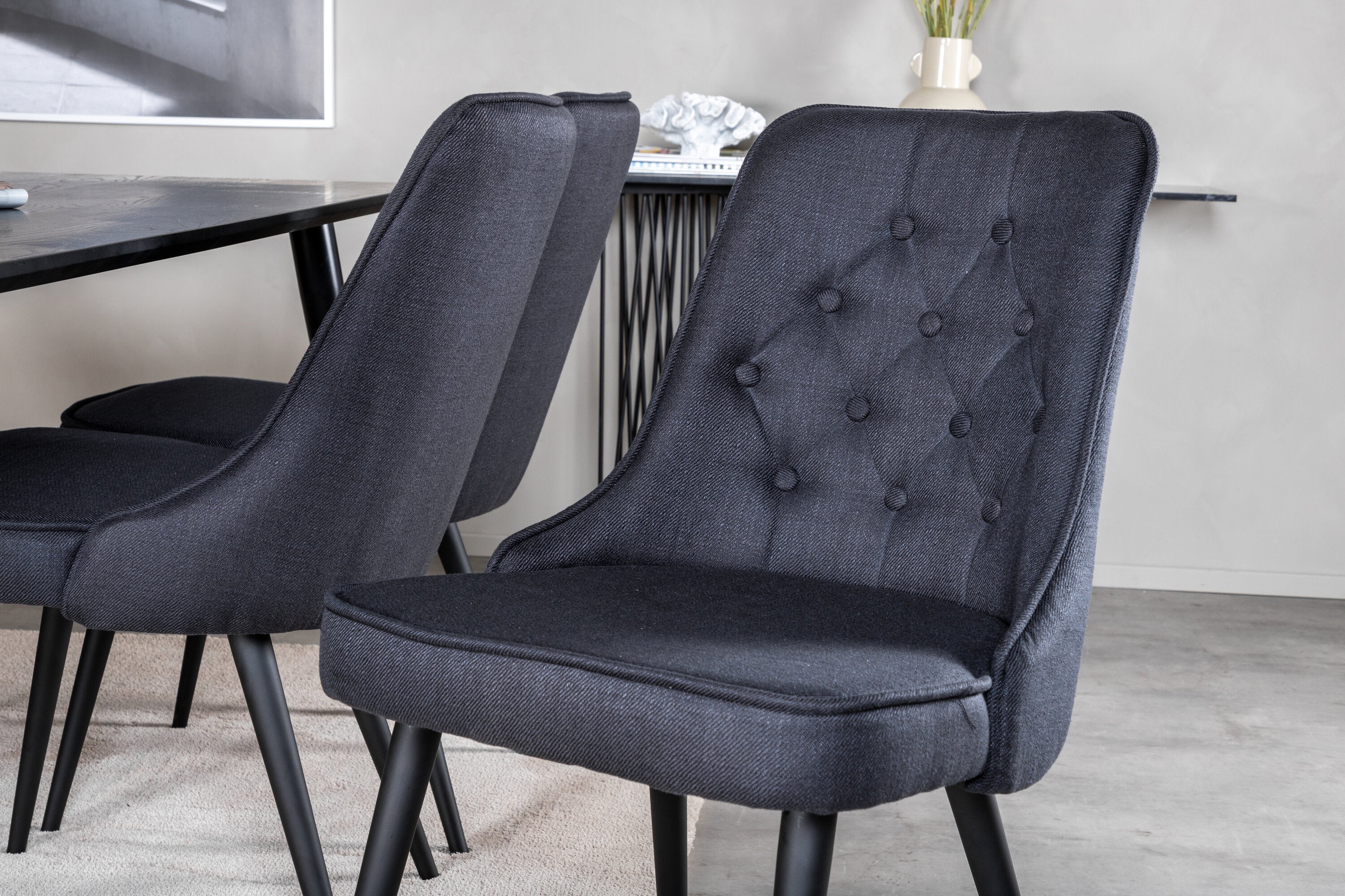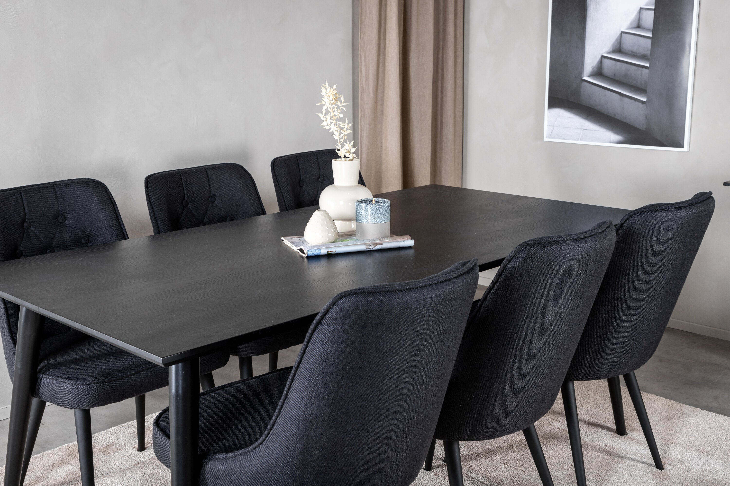 Jídelní stůl Dipp - 180*90cm - Černá dýha / celé černé nohy + Jídelní židle Velvet Deluxe - Černé nohy - Black Fabric_6