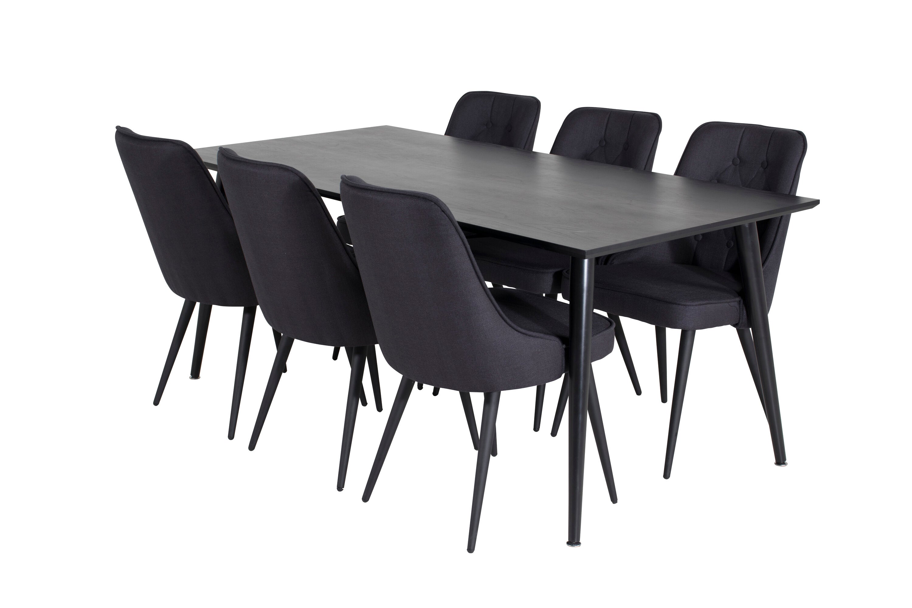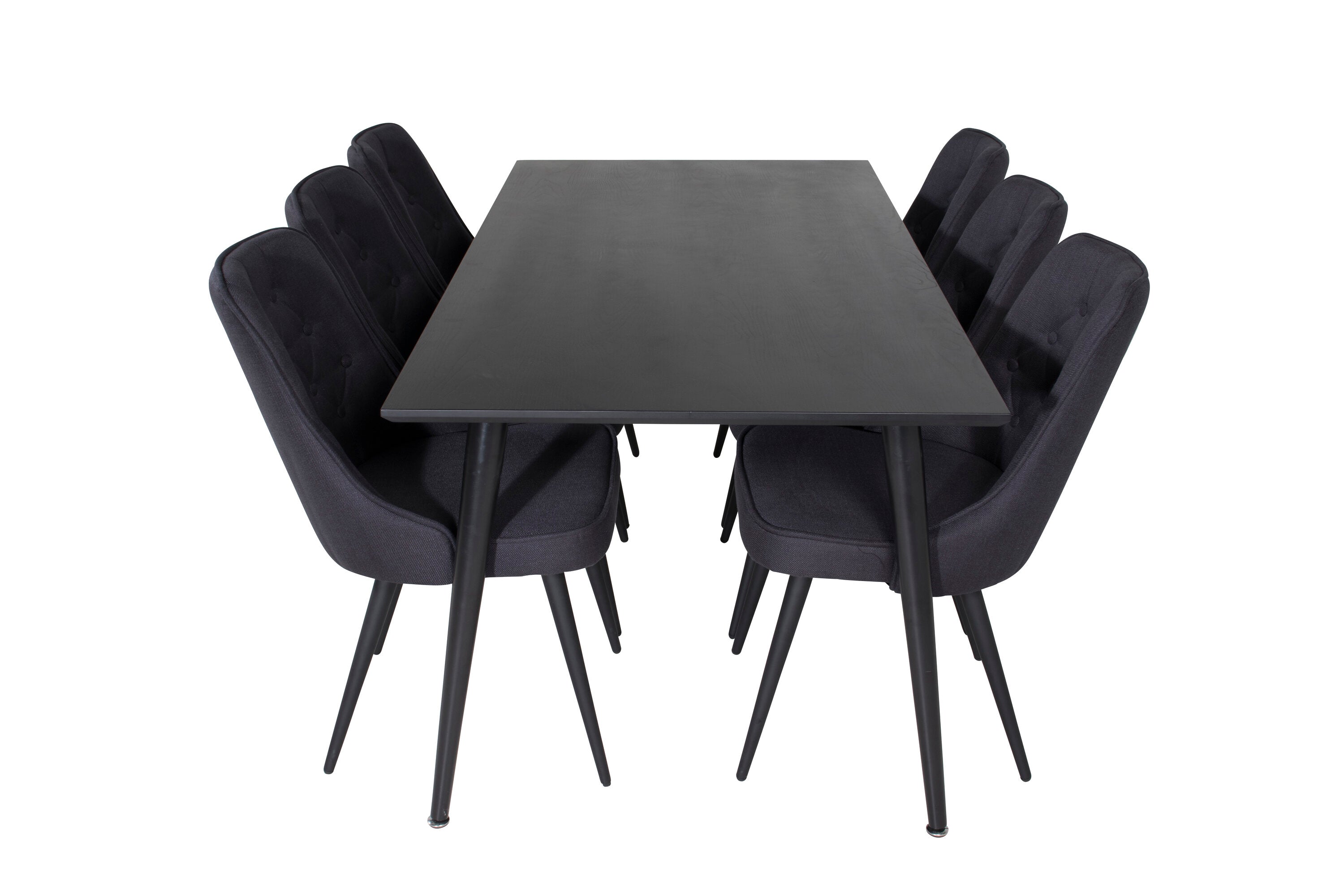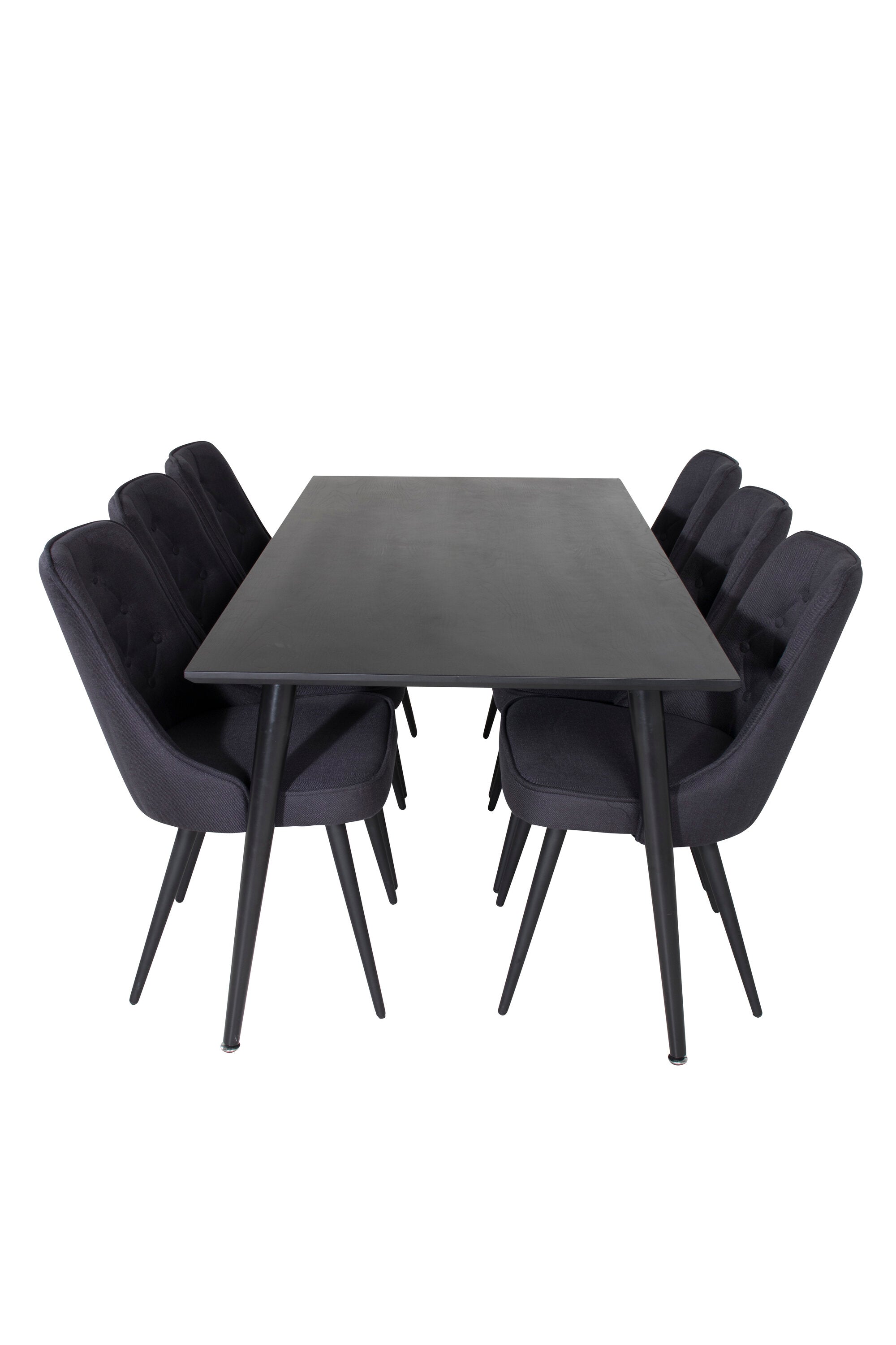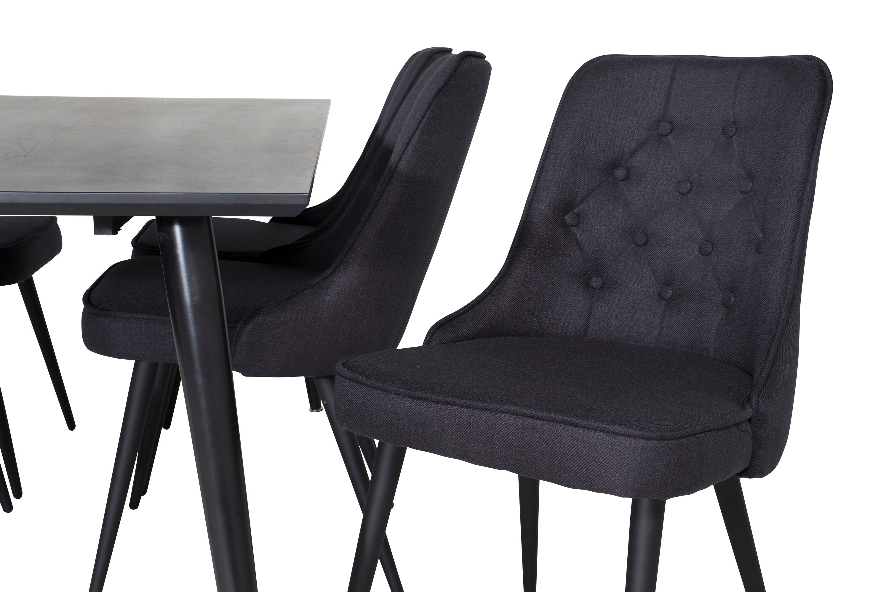 Jídelní stůl Dipp - 180*90cm - Černá dýha / celé černé nohy + Jídelní židle Velvet Deluxe - Černé nohy - Black Fabric_6