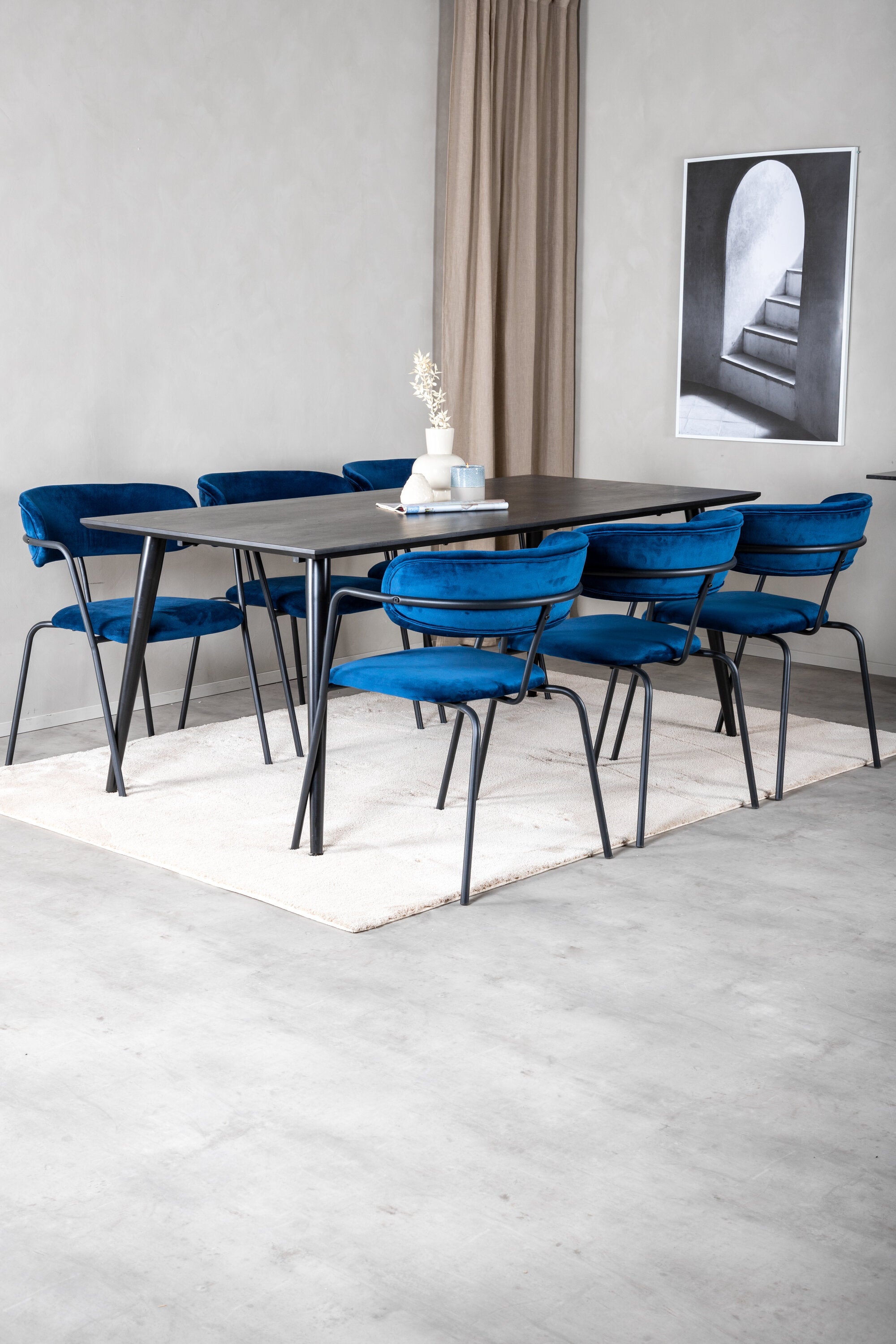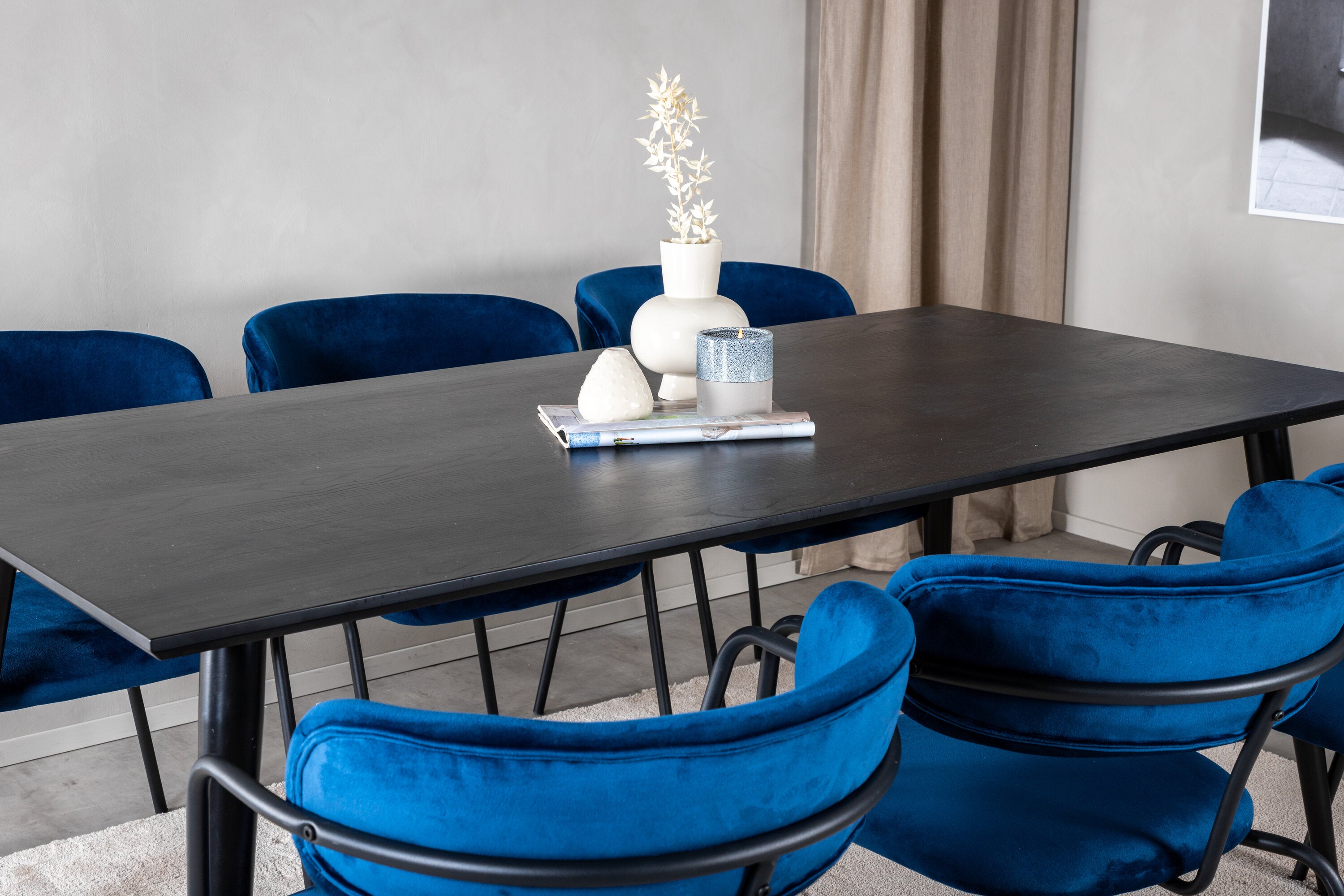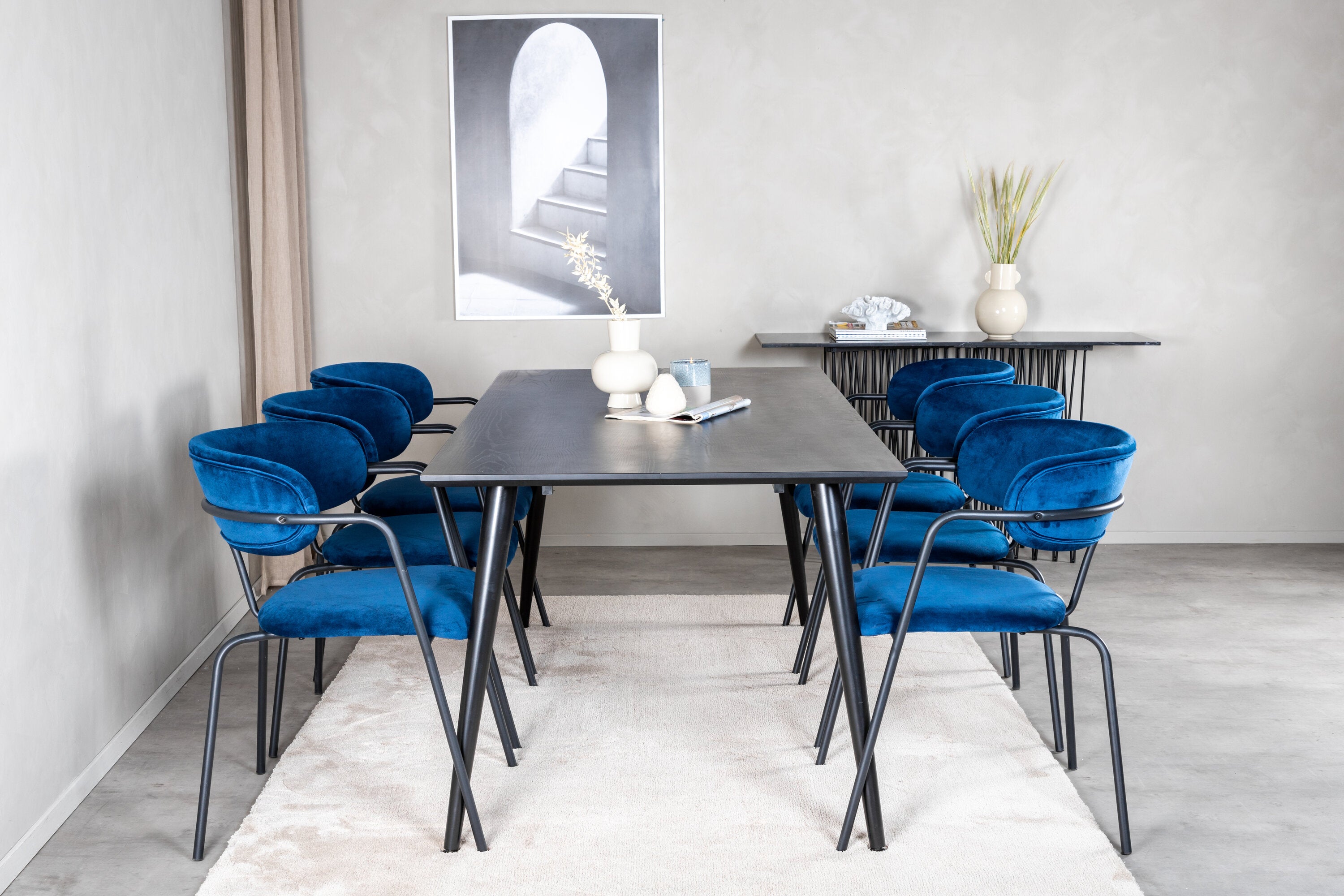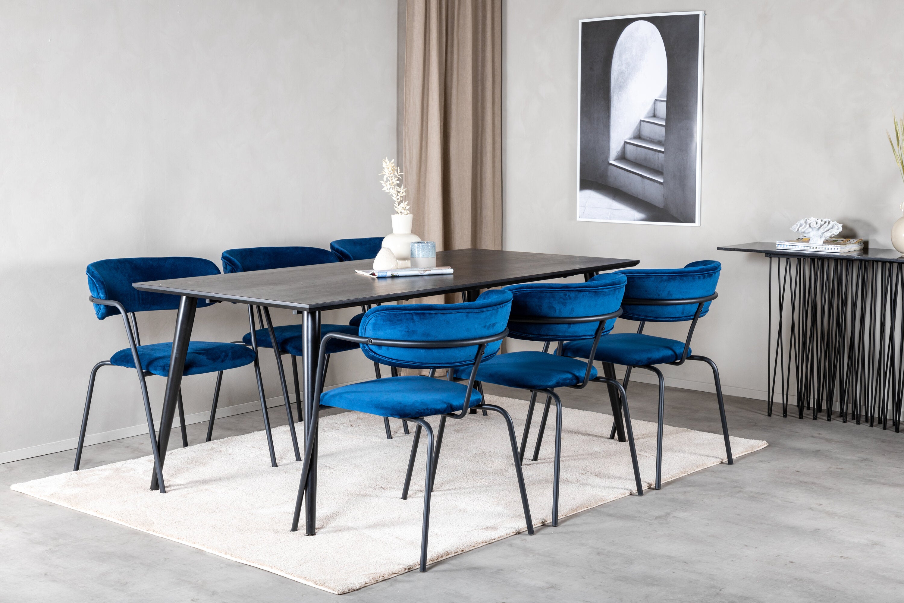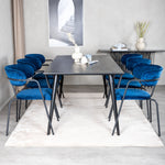 Jídelní stůl Dipp - 180*90cm - Černá dýha / celé černé nohy - Křeslo Arrow - Černé nohy - Blue Velvet 6