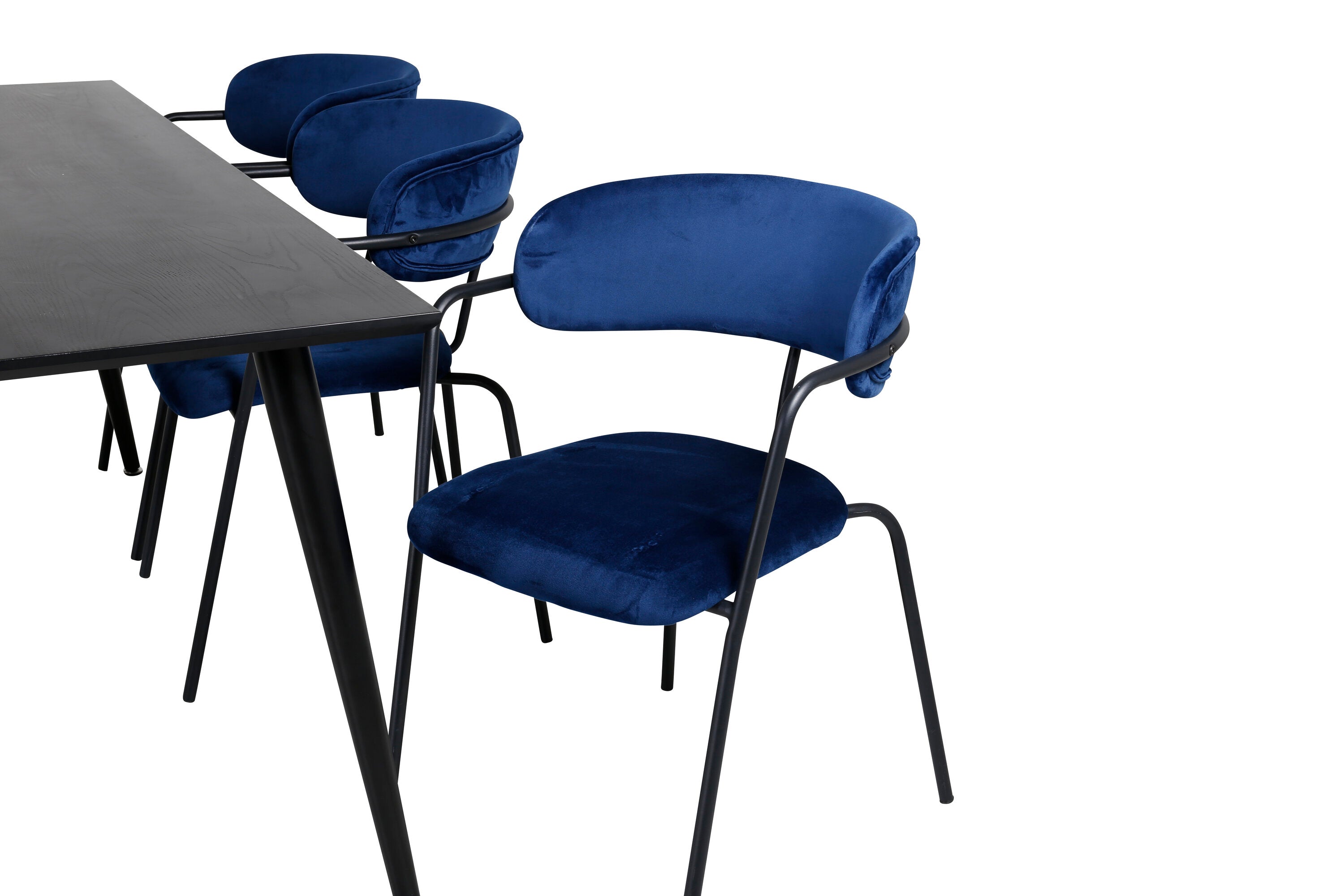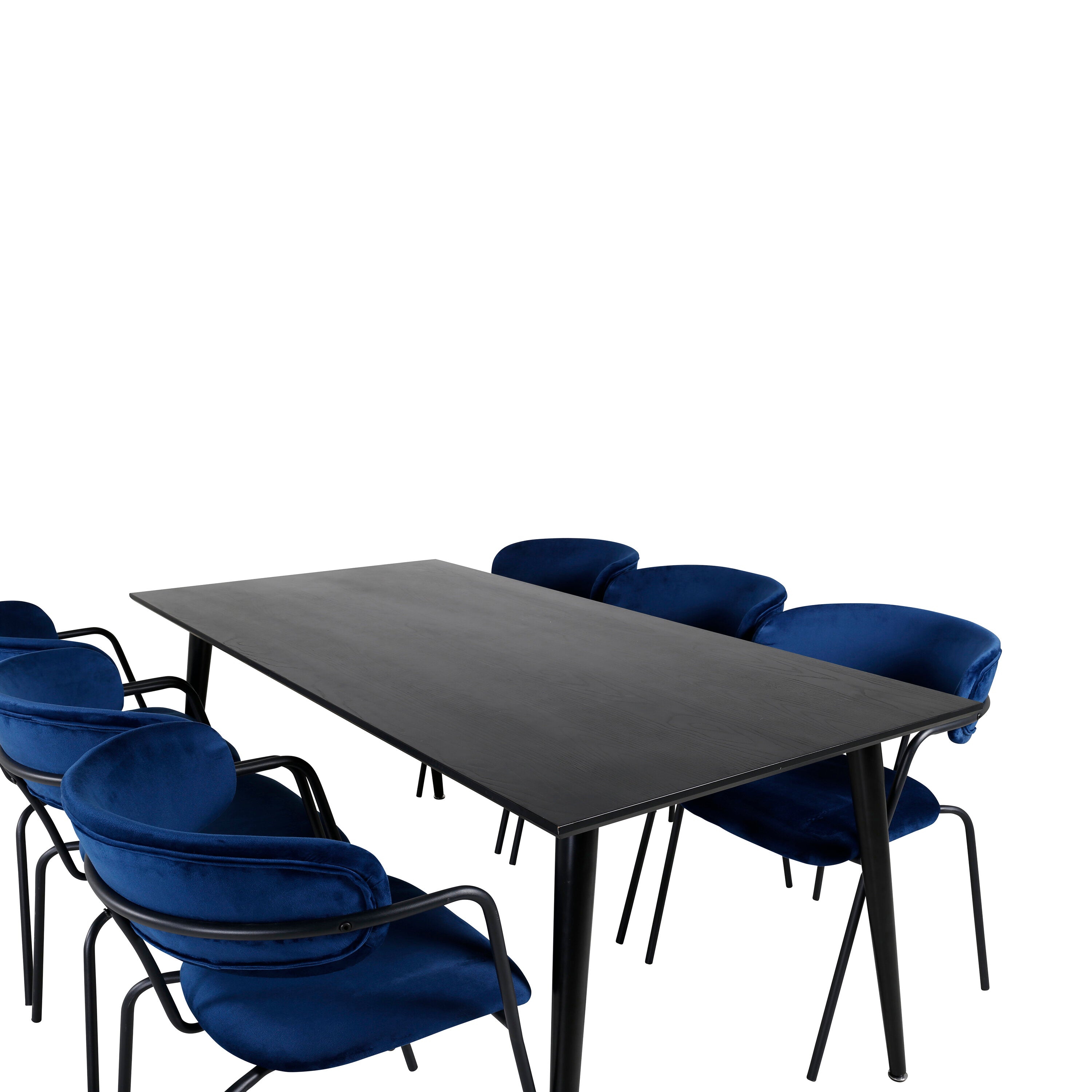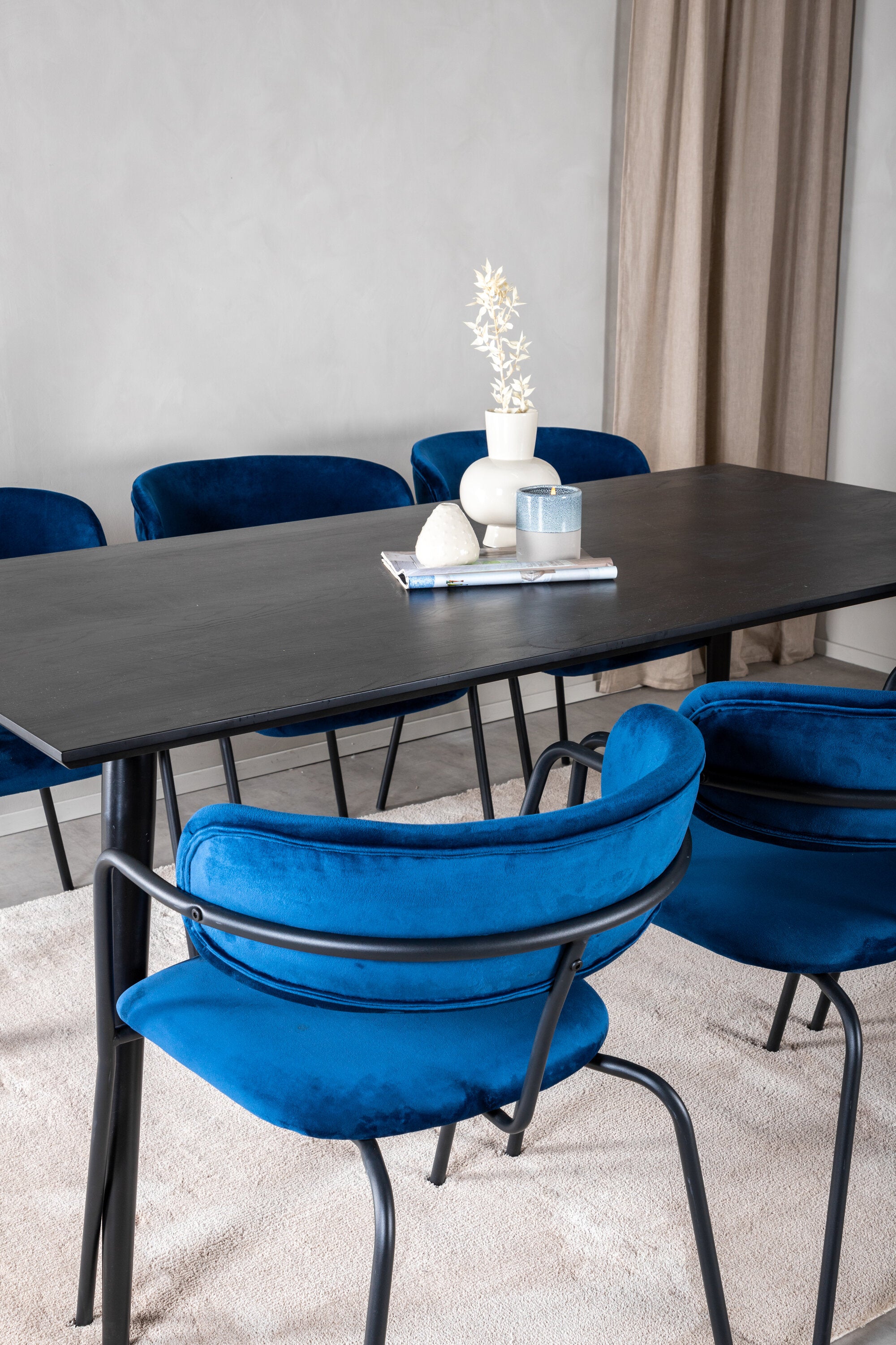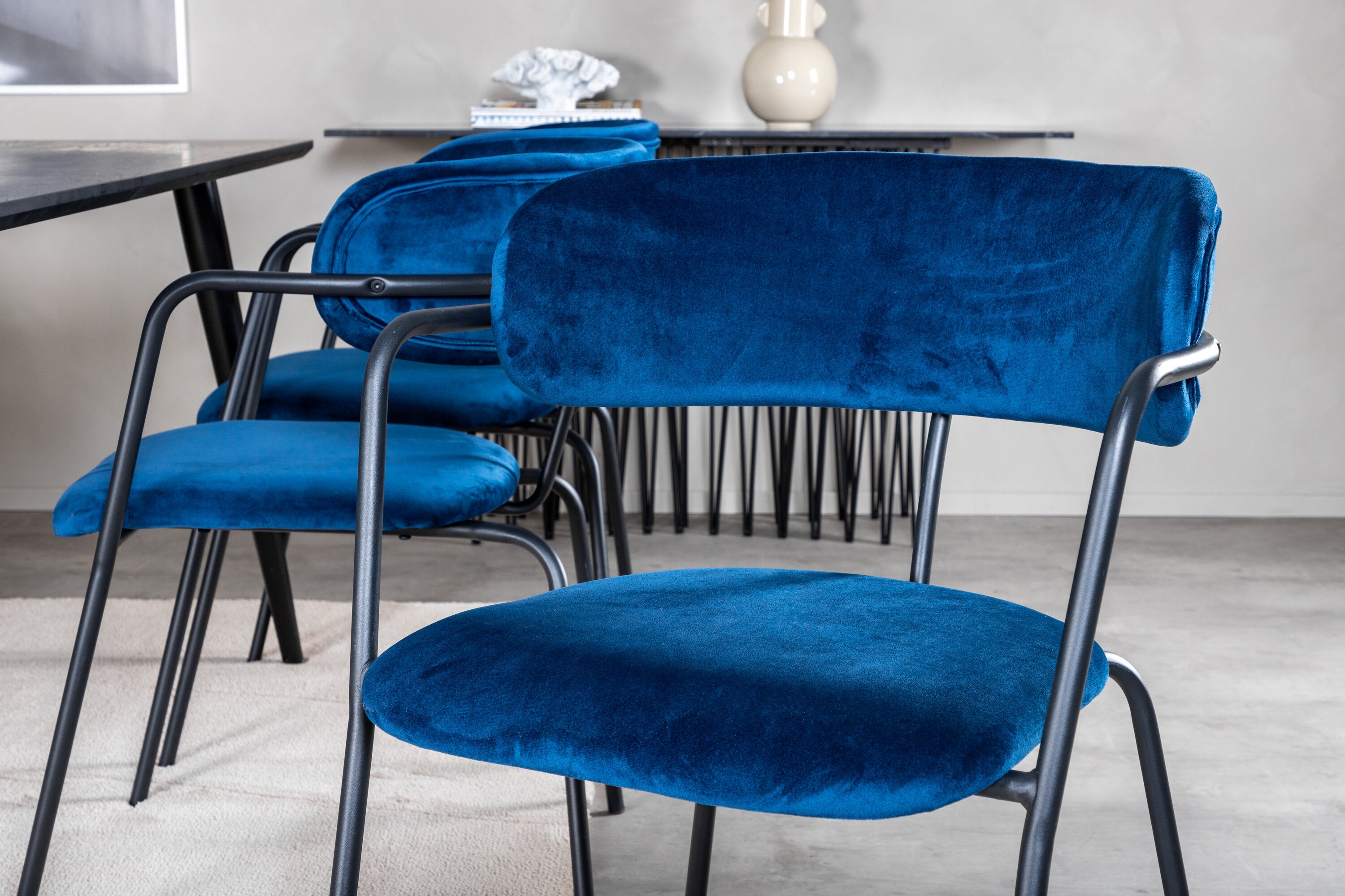 Jídelní stůl Dipp - 180*90cm - Černá dýha / celé černé nohy - Křeslo Arrow - Černé nohy - Blue Velvet 6