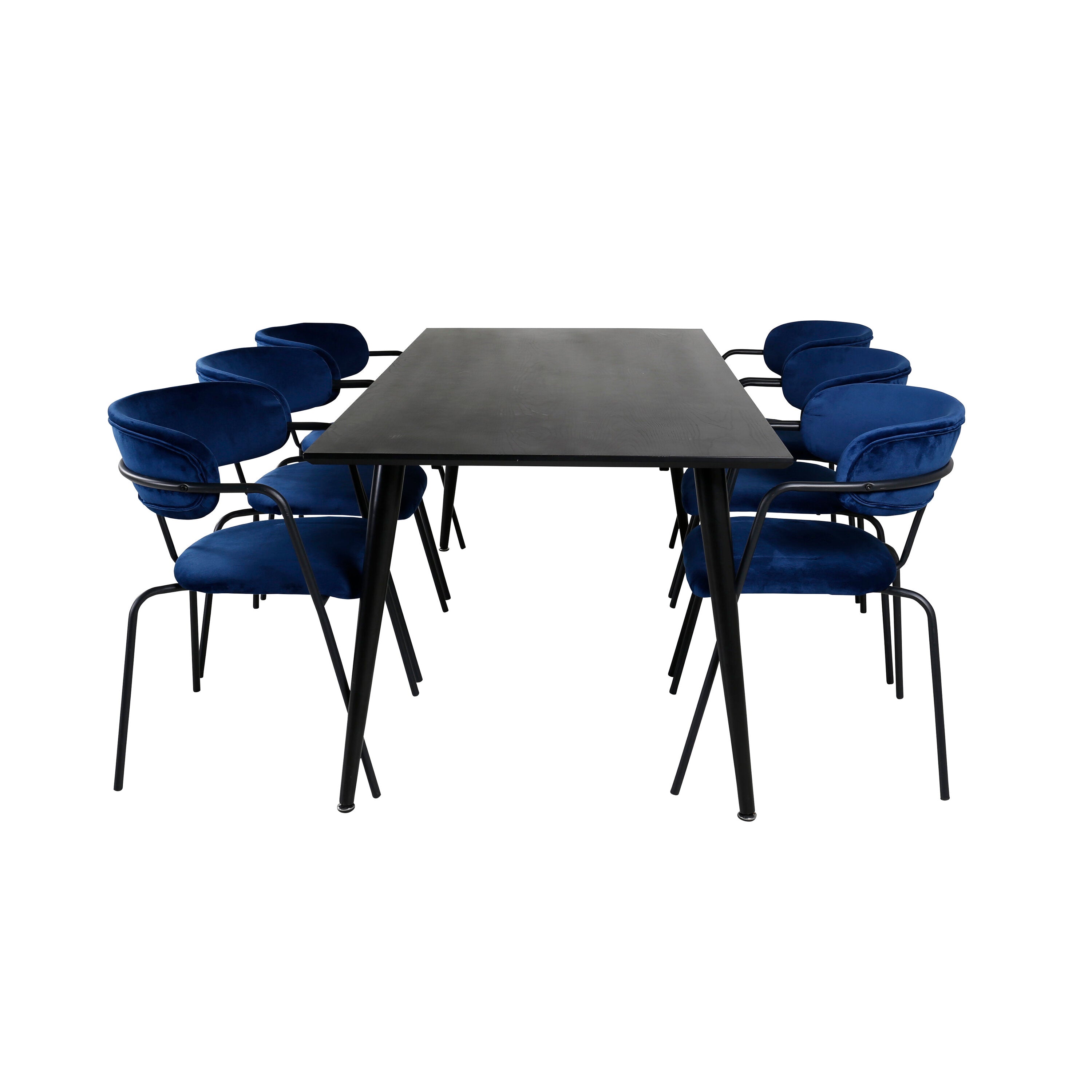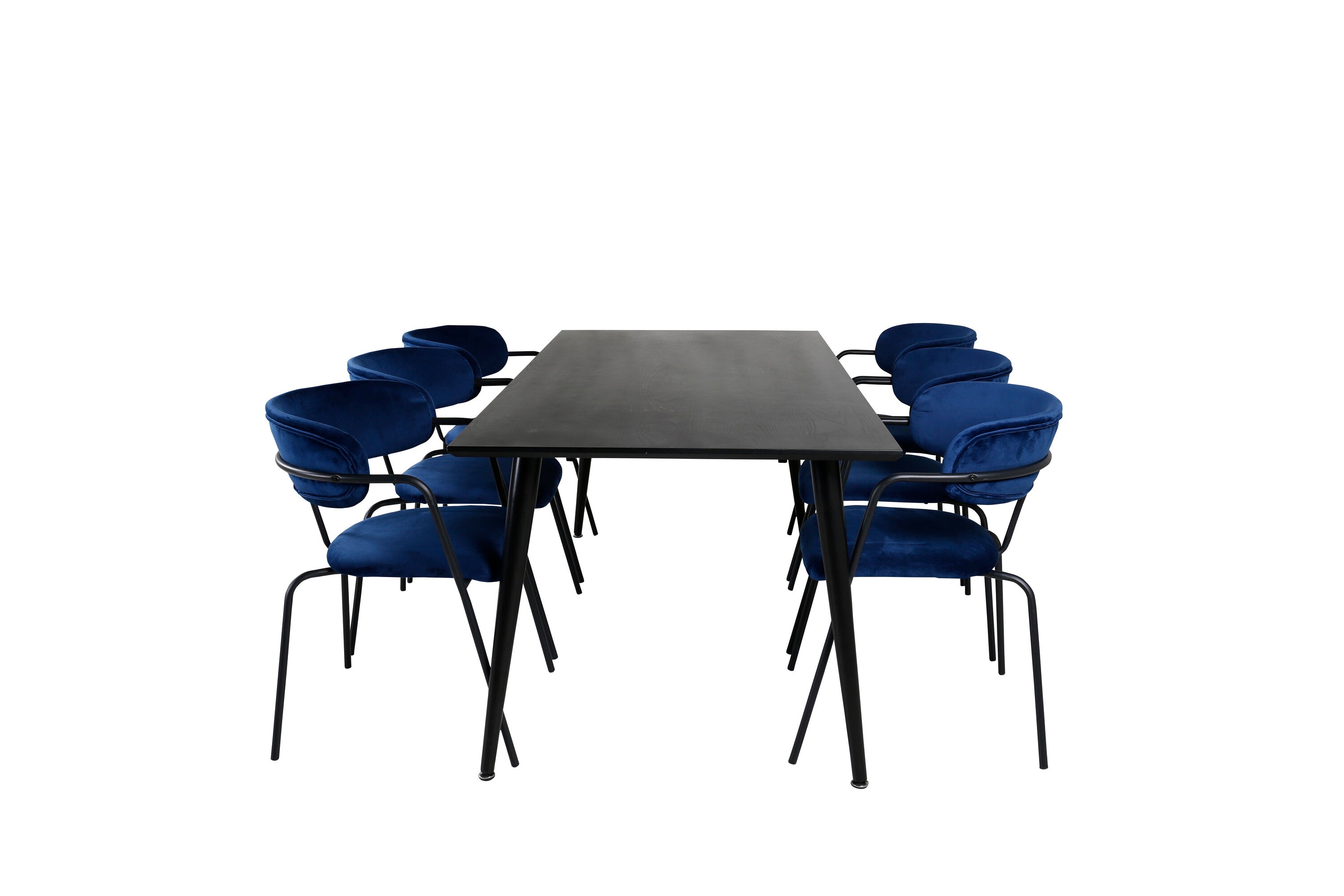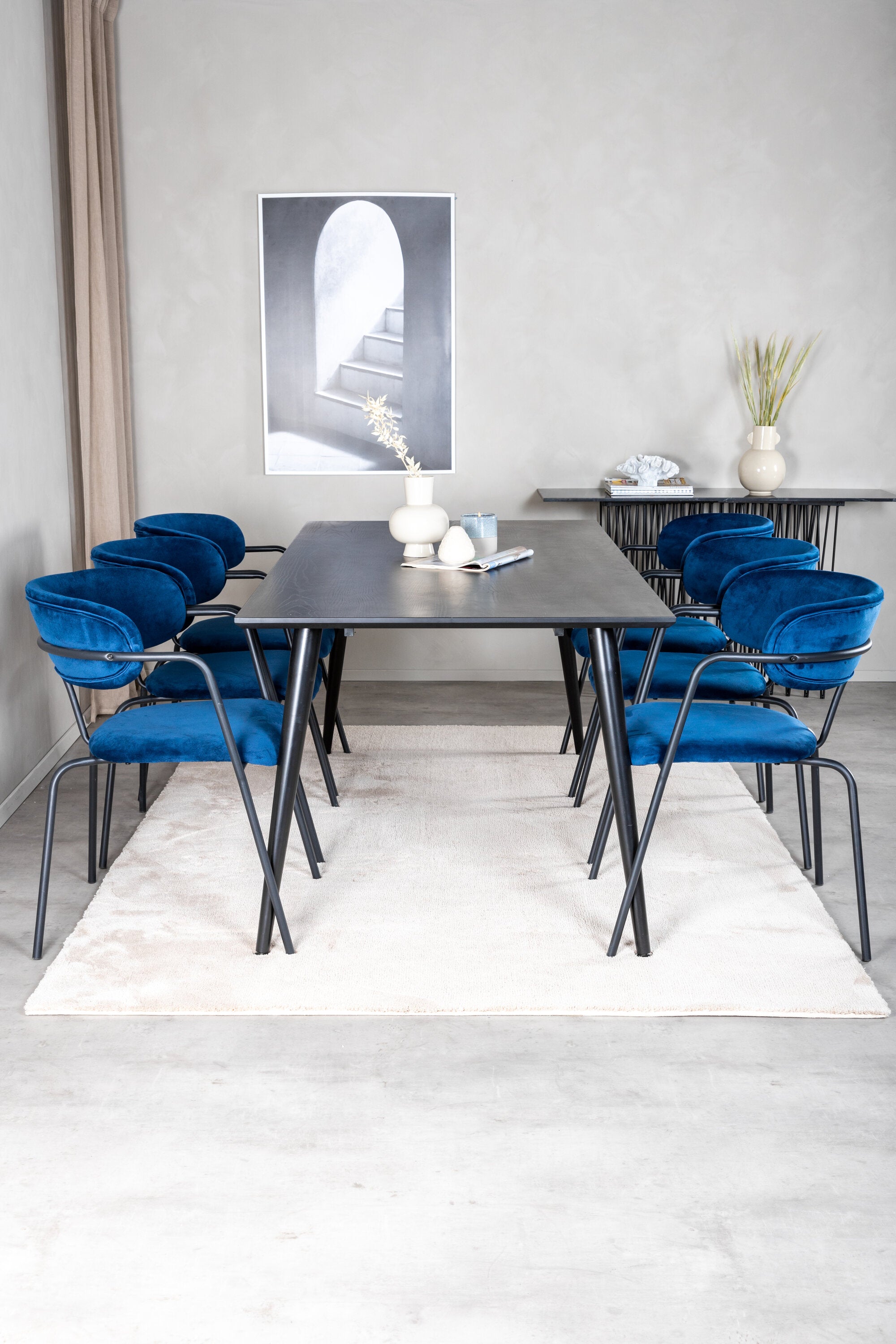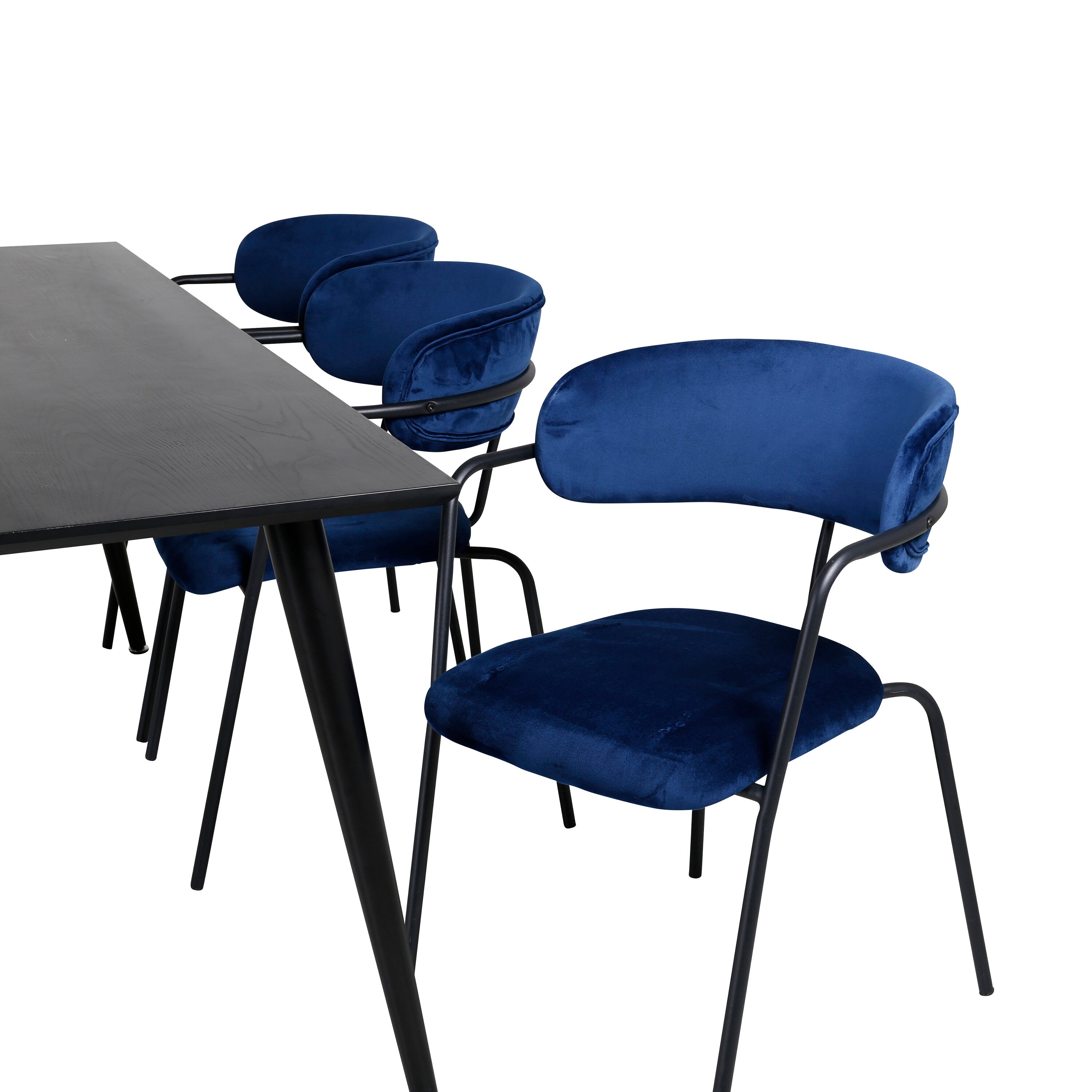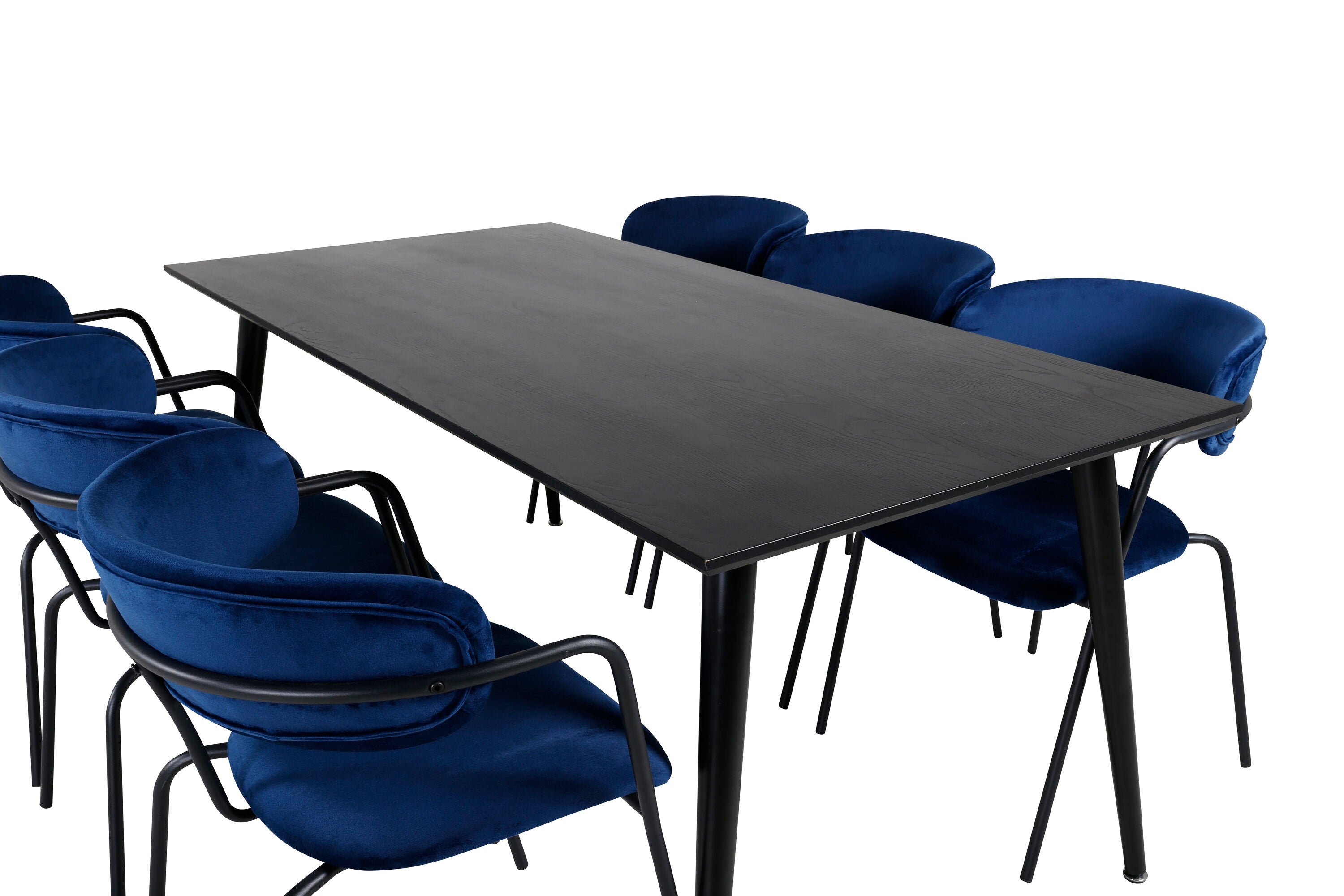 Jídelní stůl Dipp - 180*90cm - Černá dýha / celé černé nohy - Křeslo Arrow - Černé nohy - Blue Velvet 6
