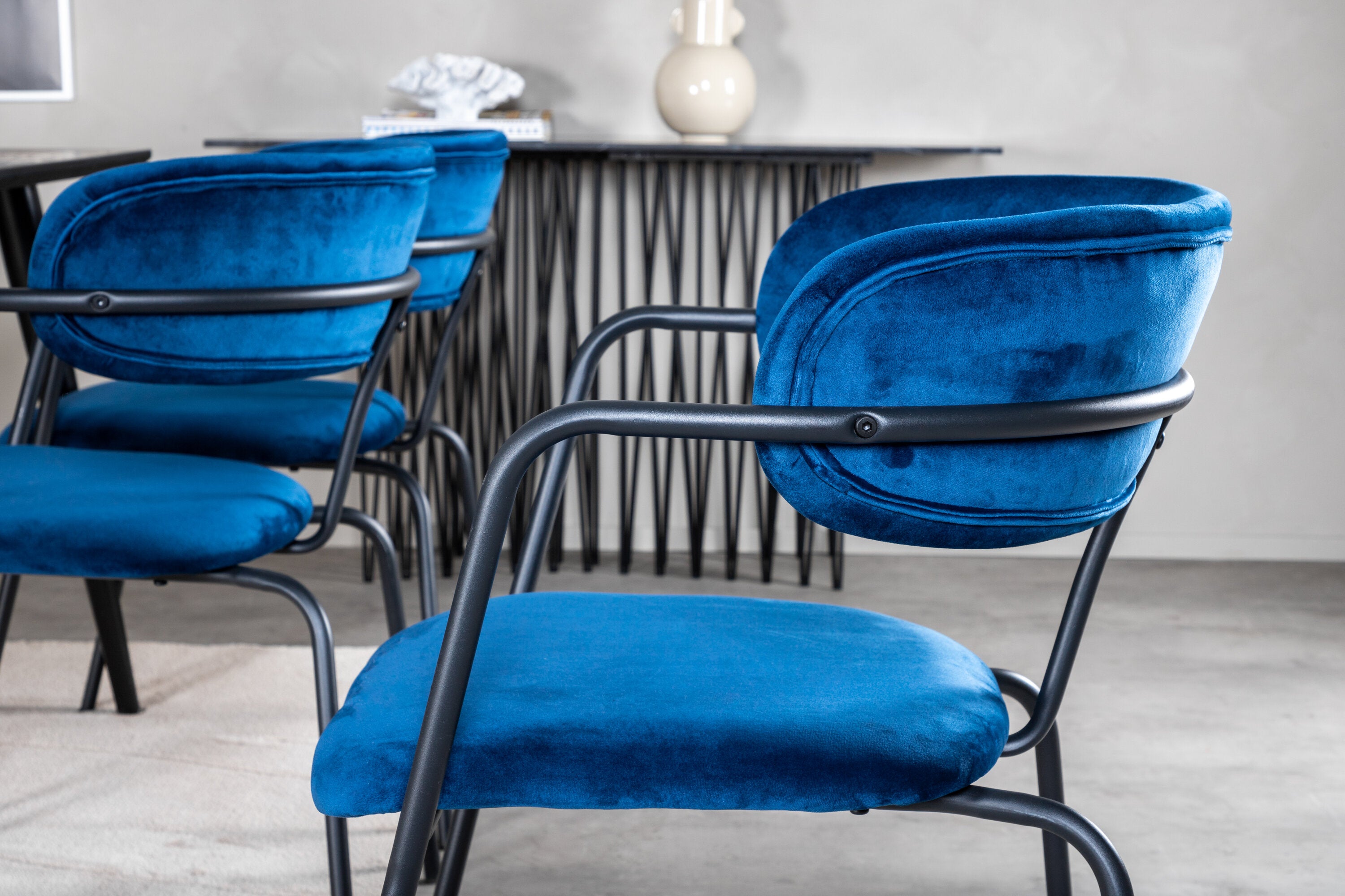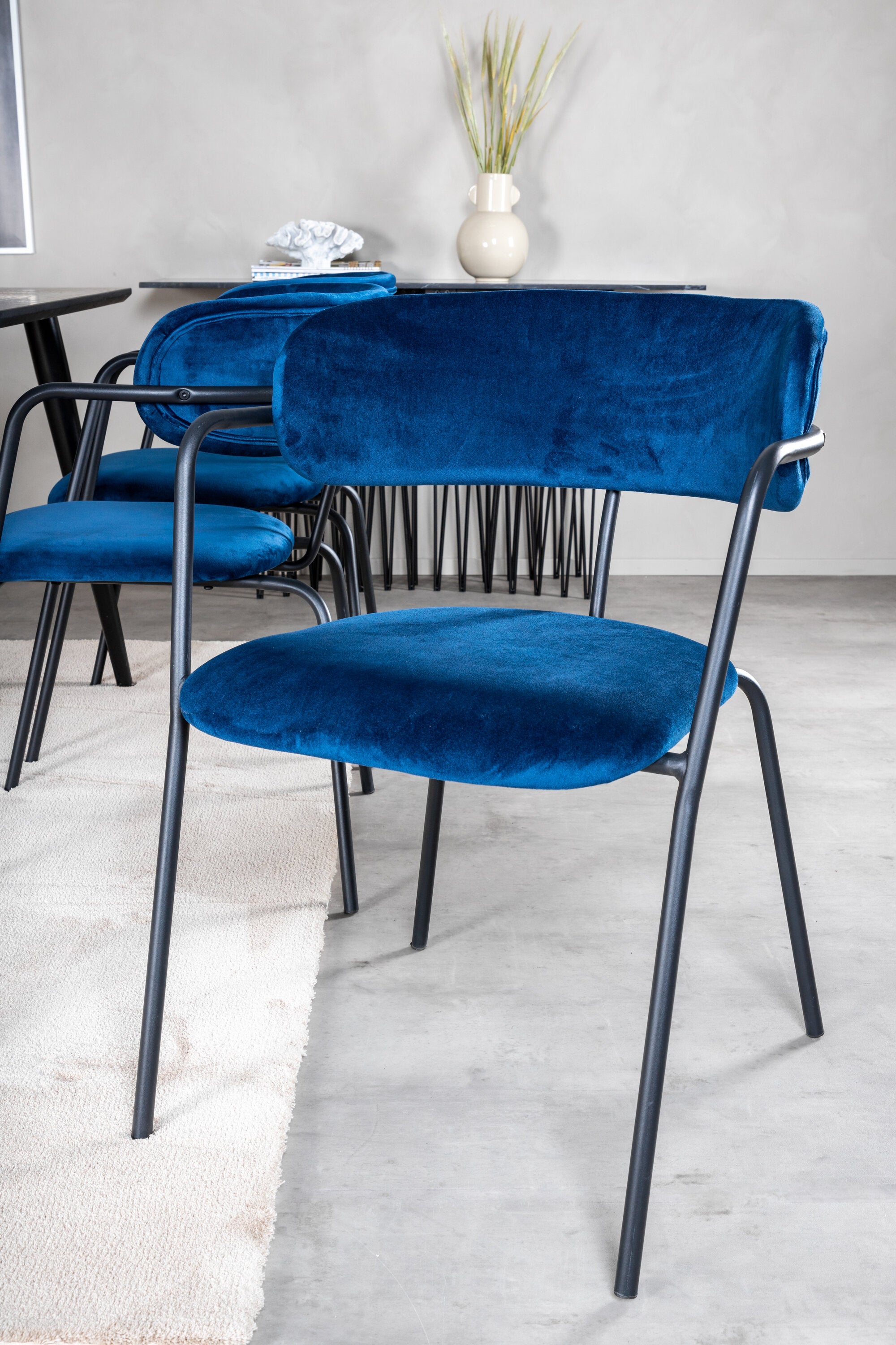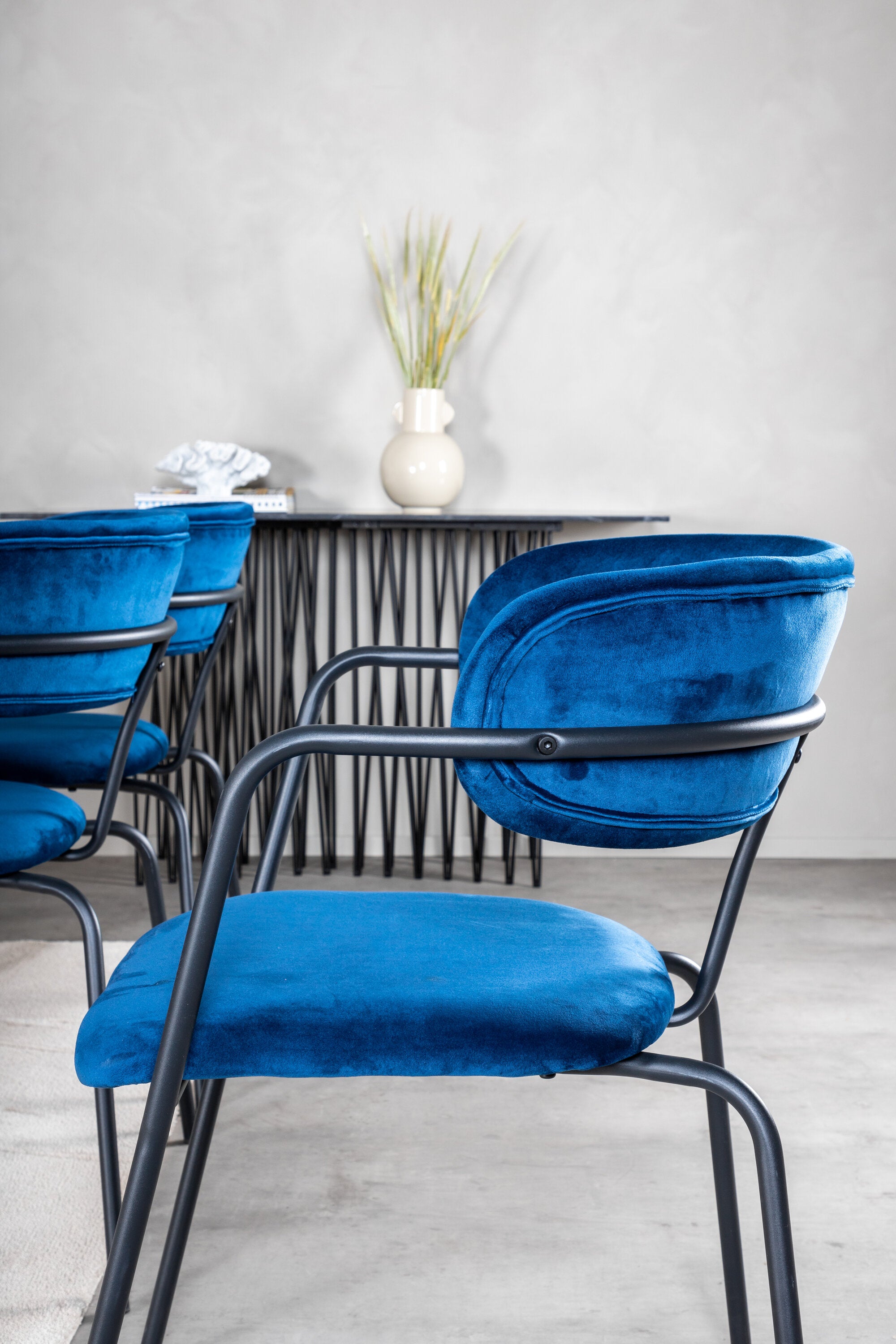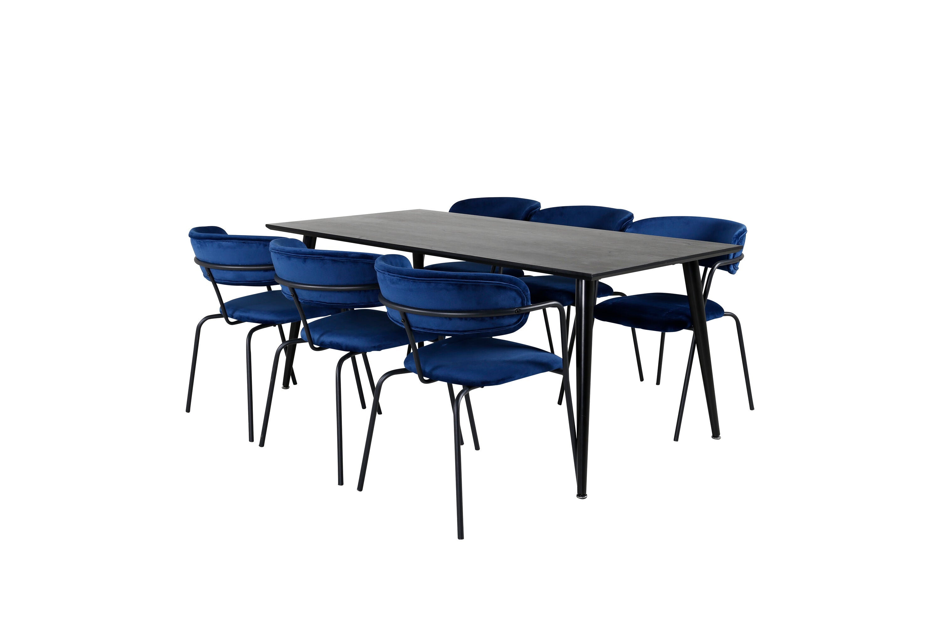 Jídelní stůl Dipp - 180*90cm - Černá dýha / celé černé nohy - Křeslo Arrow - Černé nohy - Blue Velvet 6