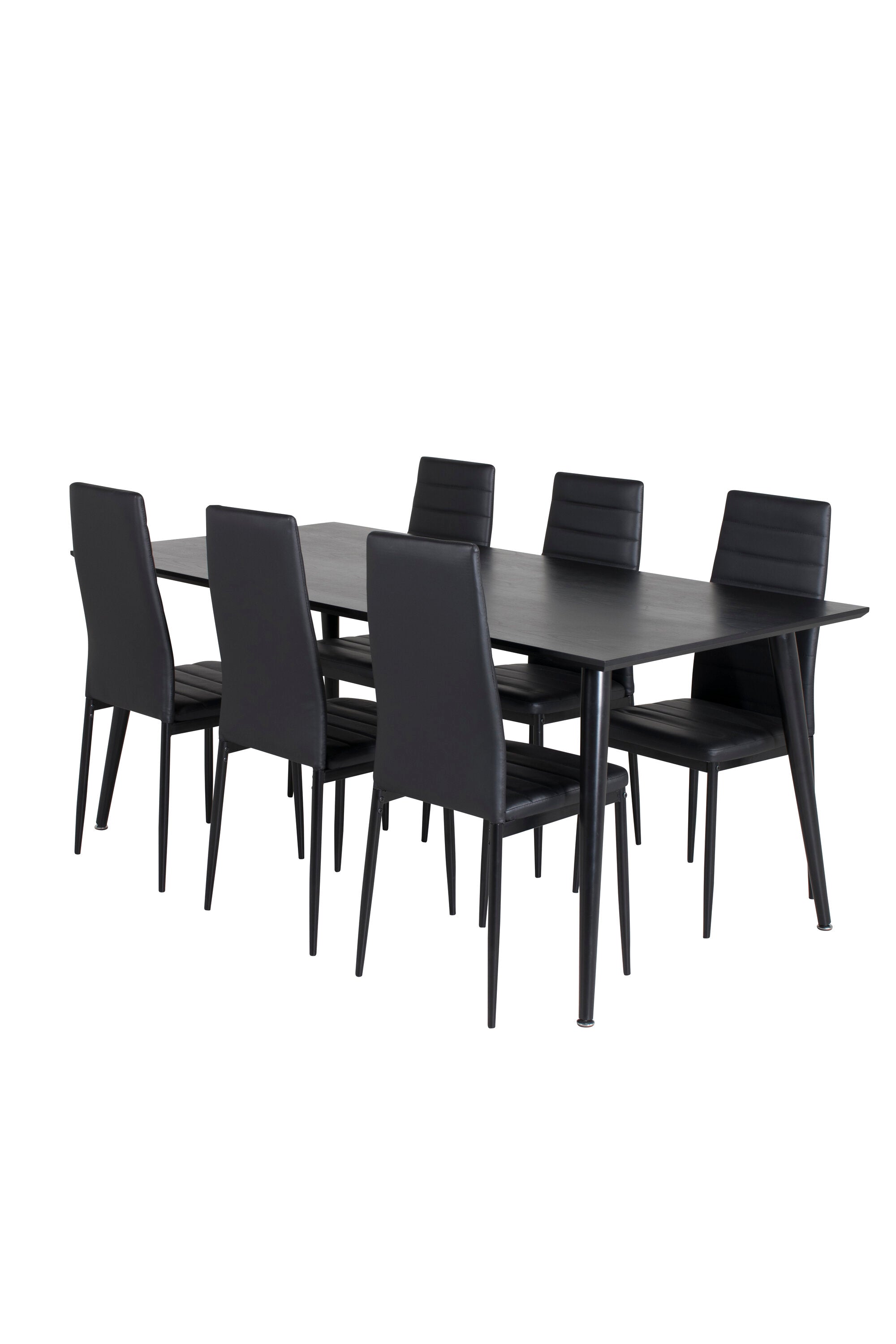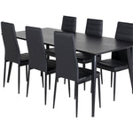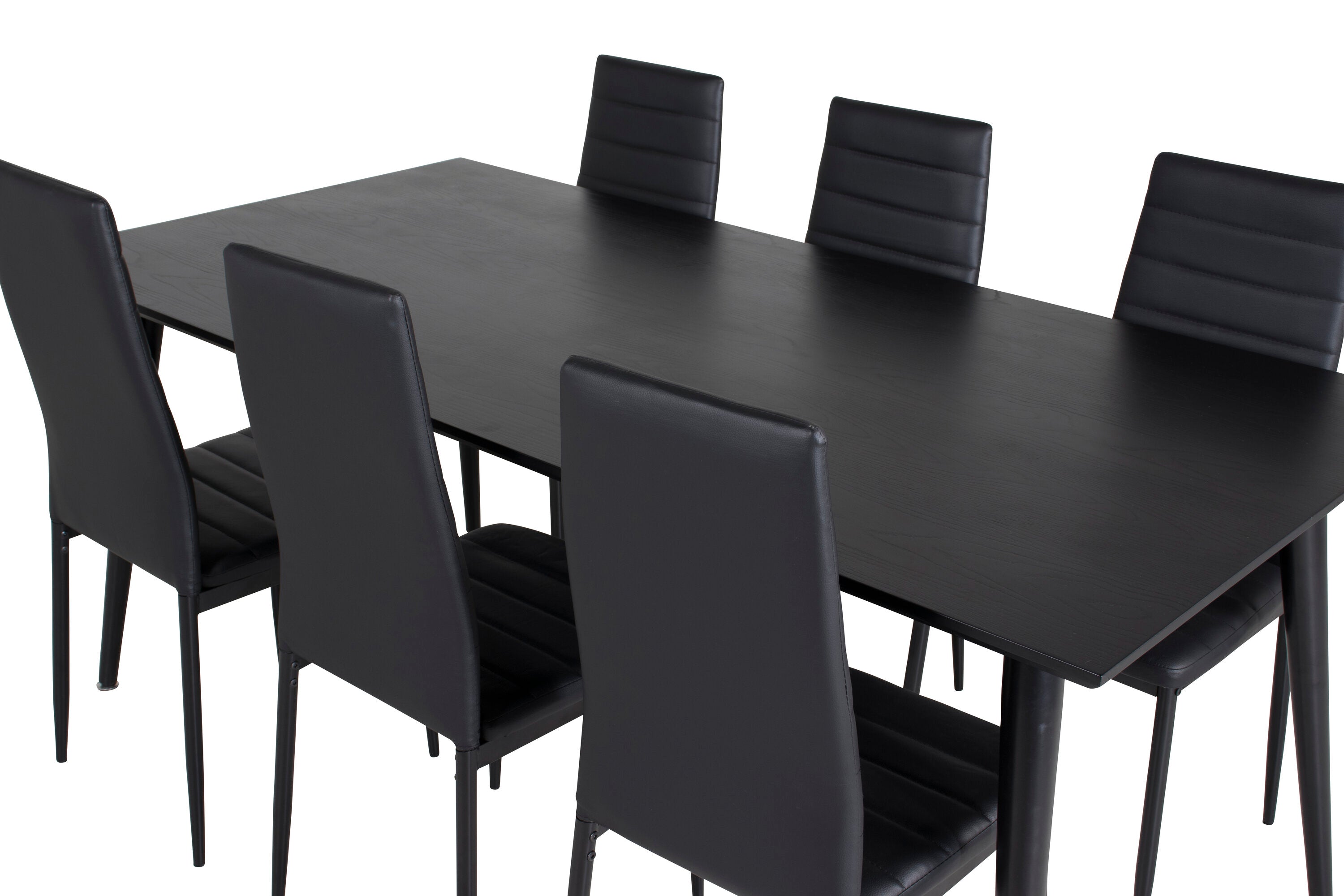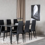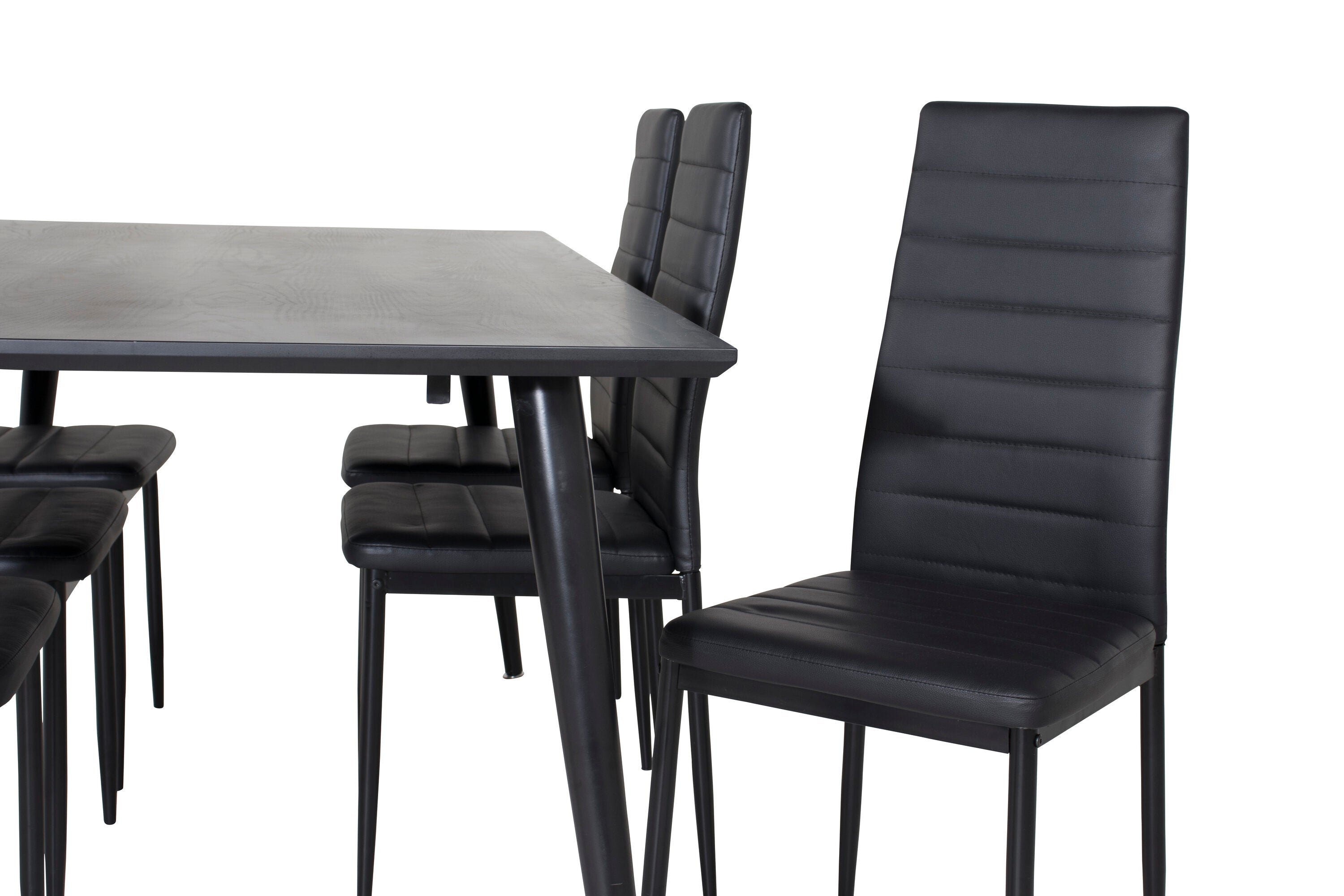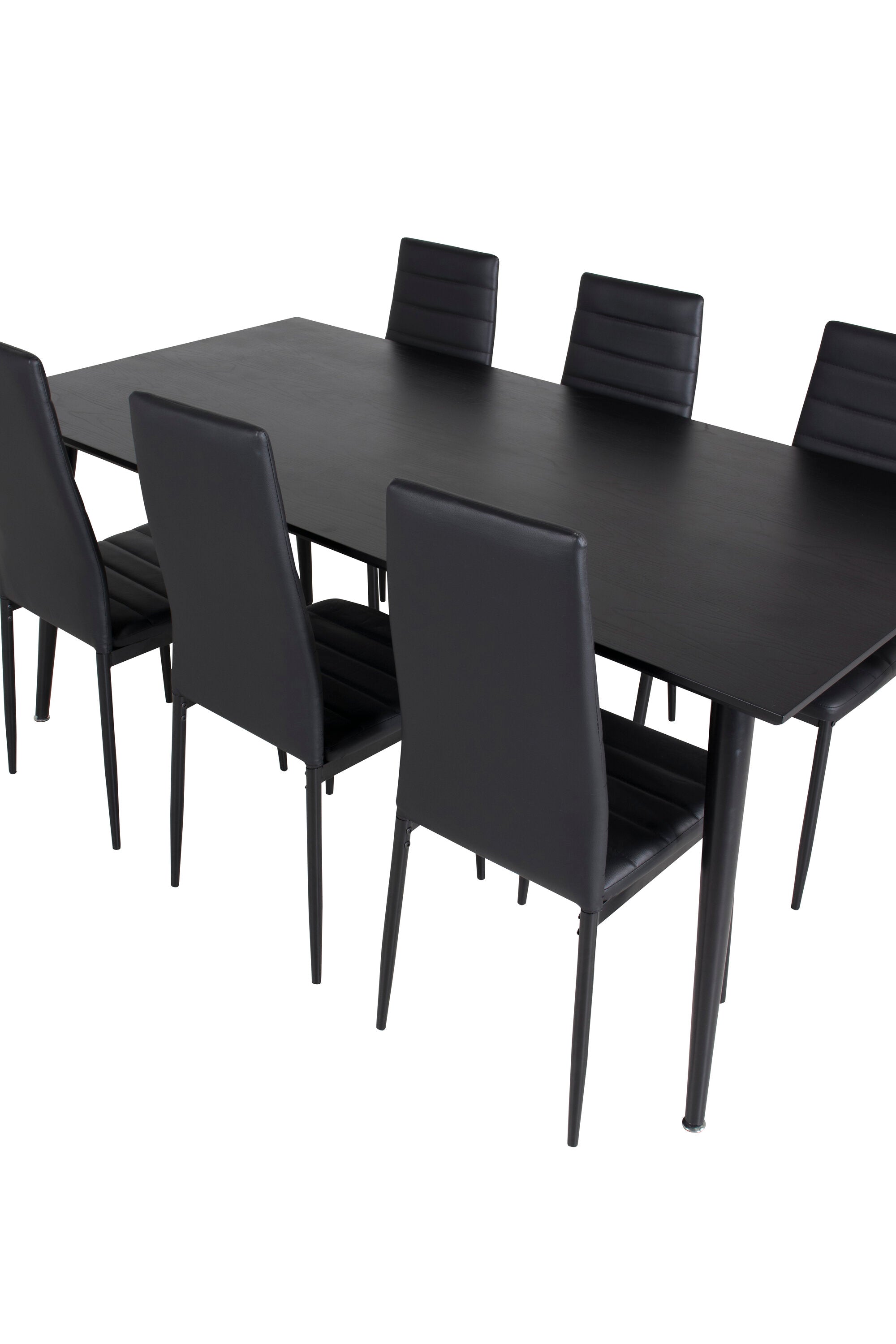 Jídelní stůl Dipp - 180*90cm - Černá dýha / celé černé nohy + Slim High Back Jídelní židle - Černé nohy - Černá PU_6