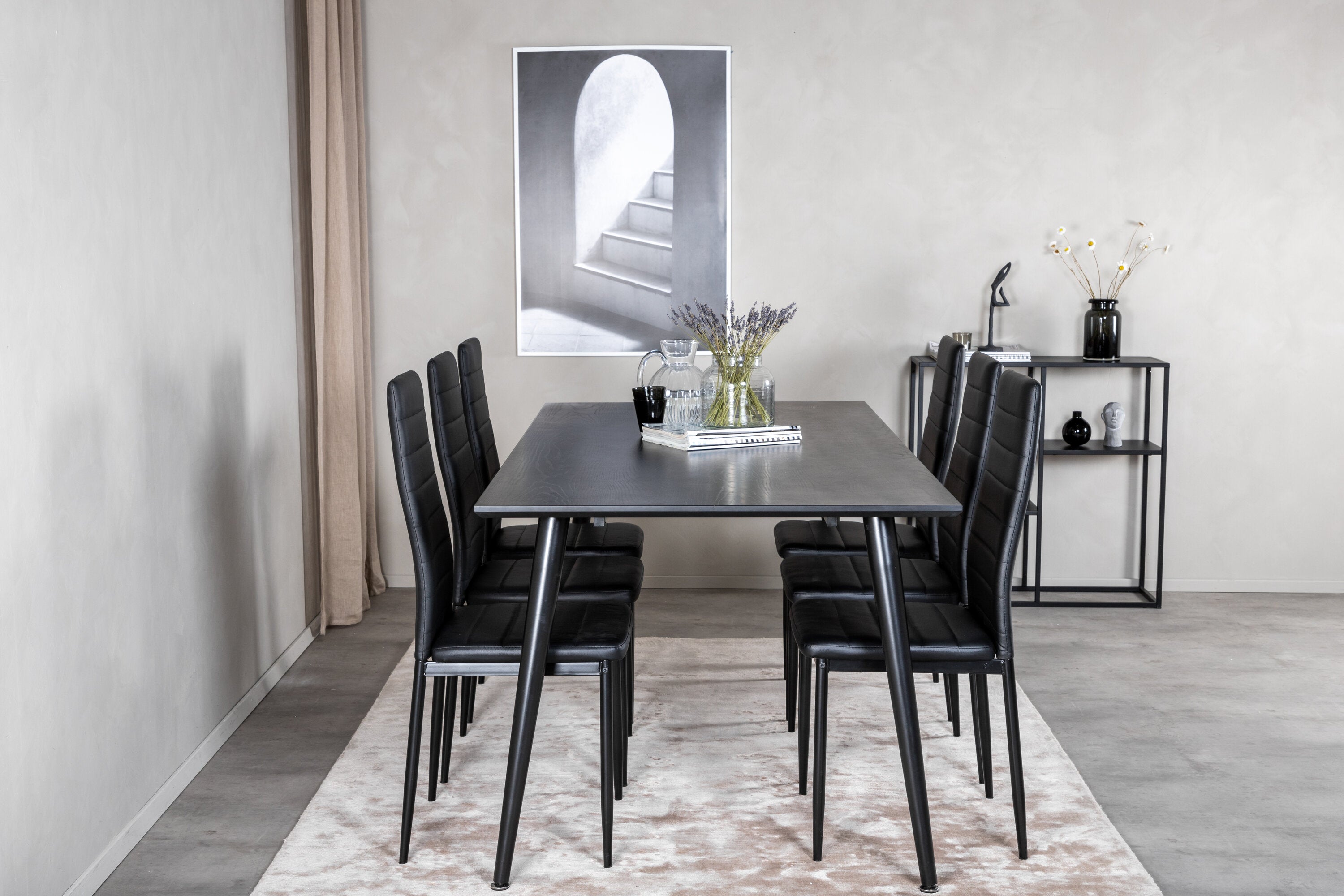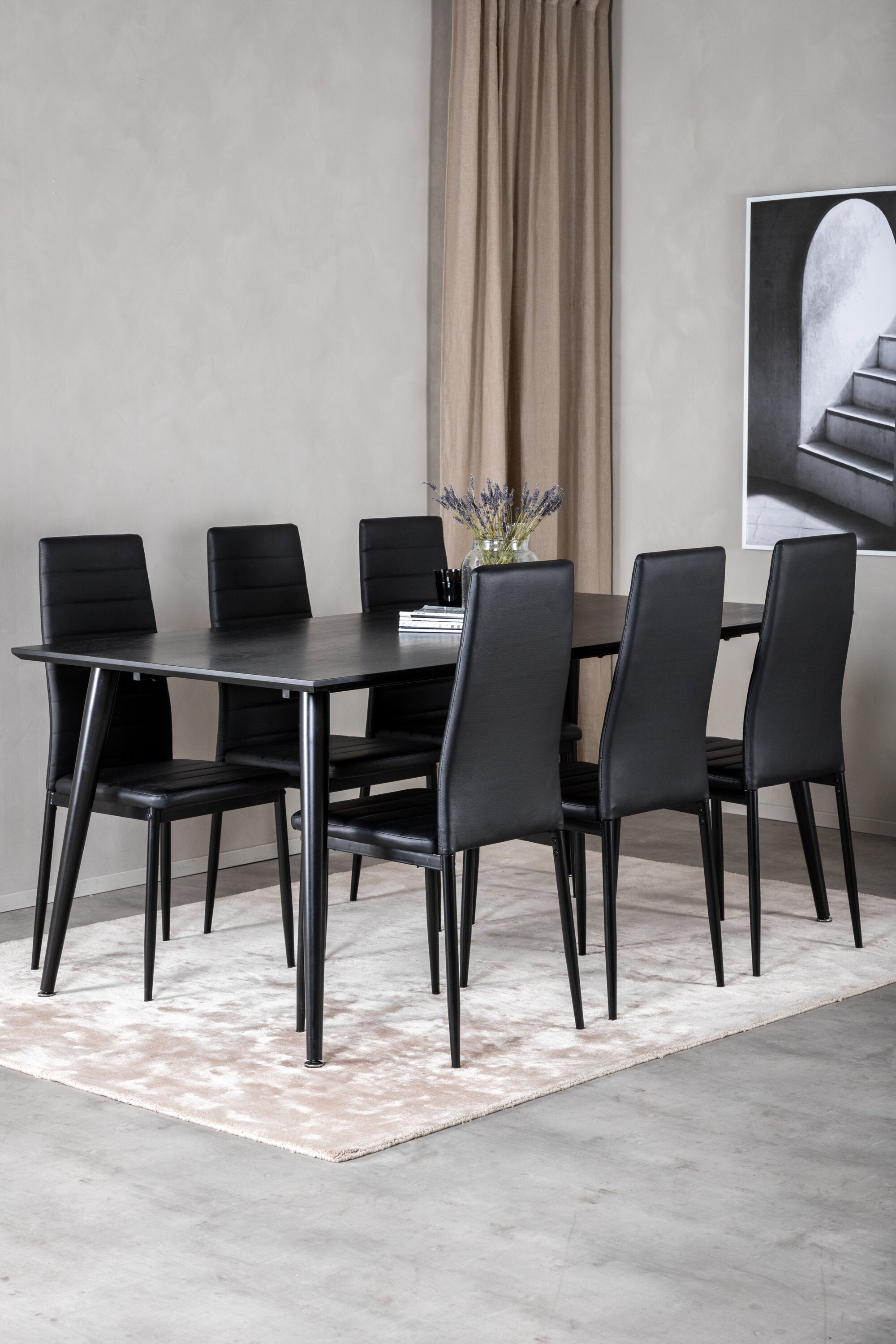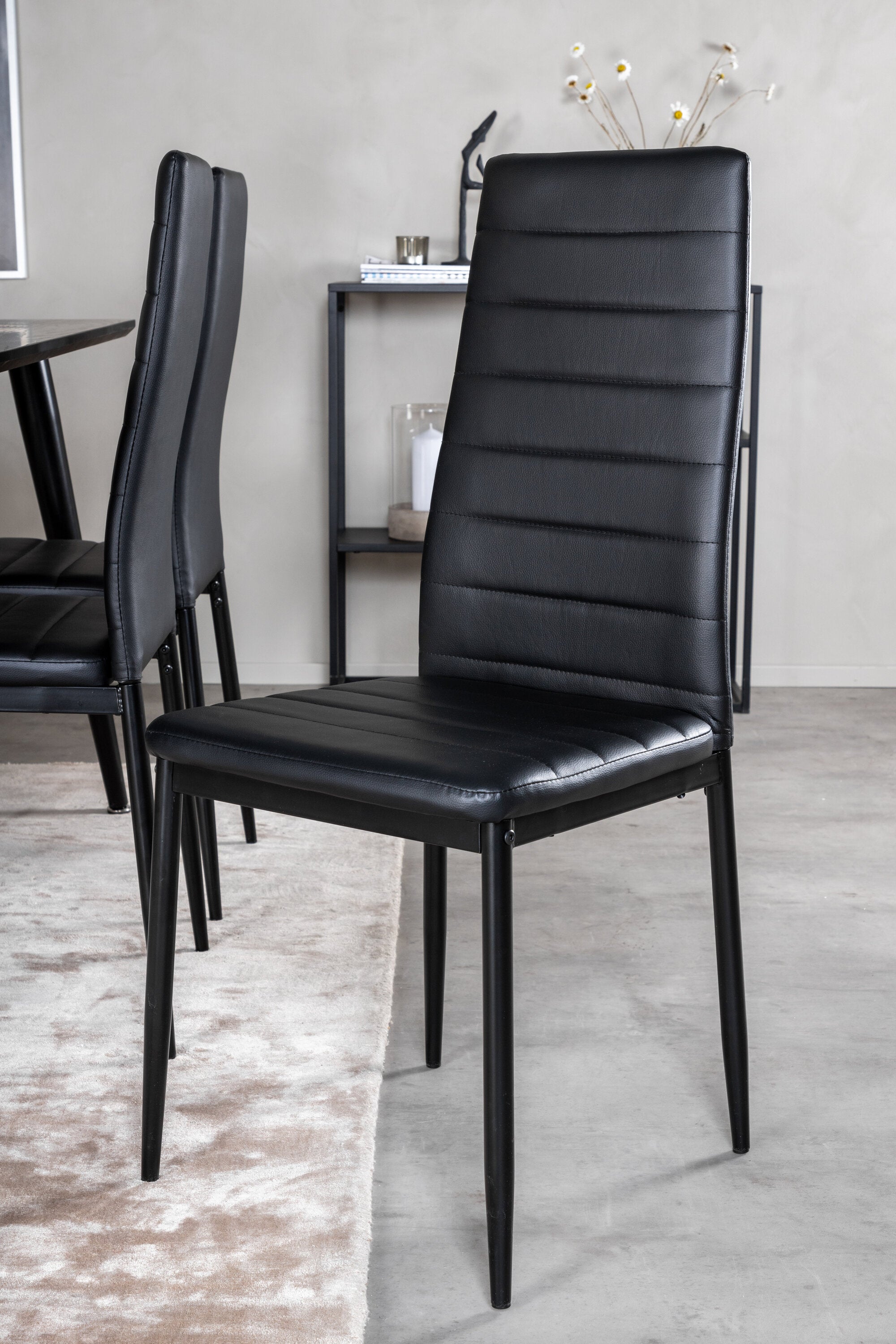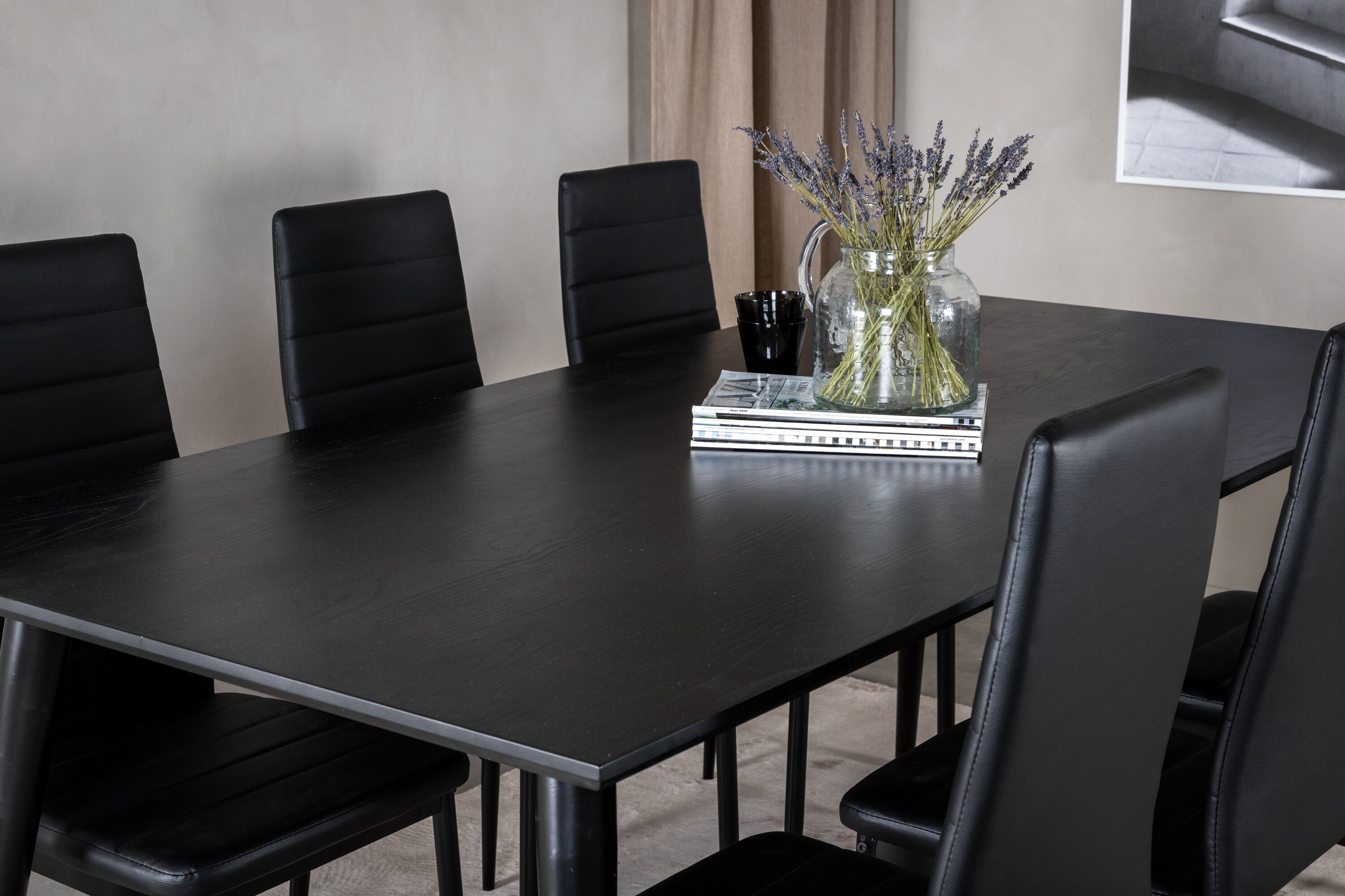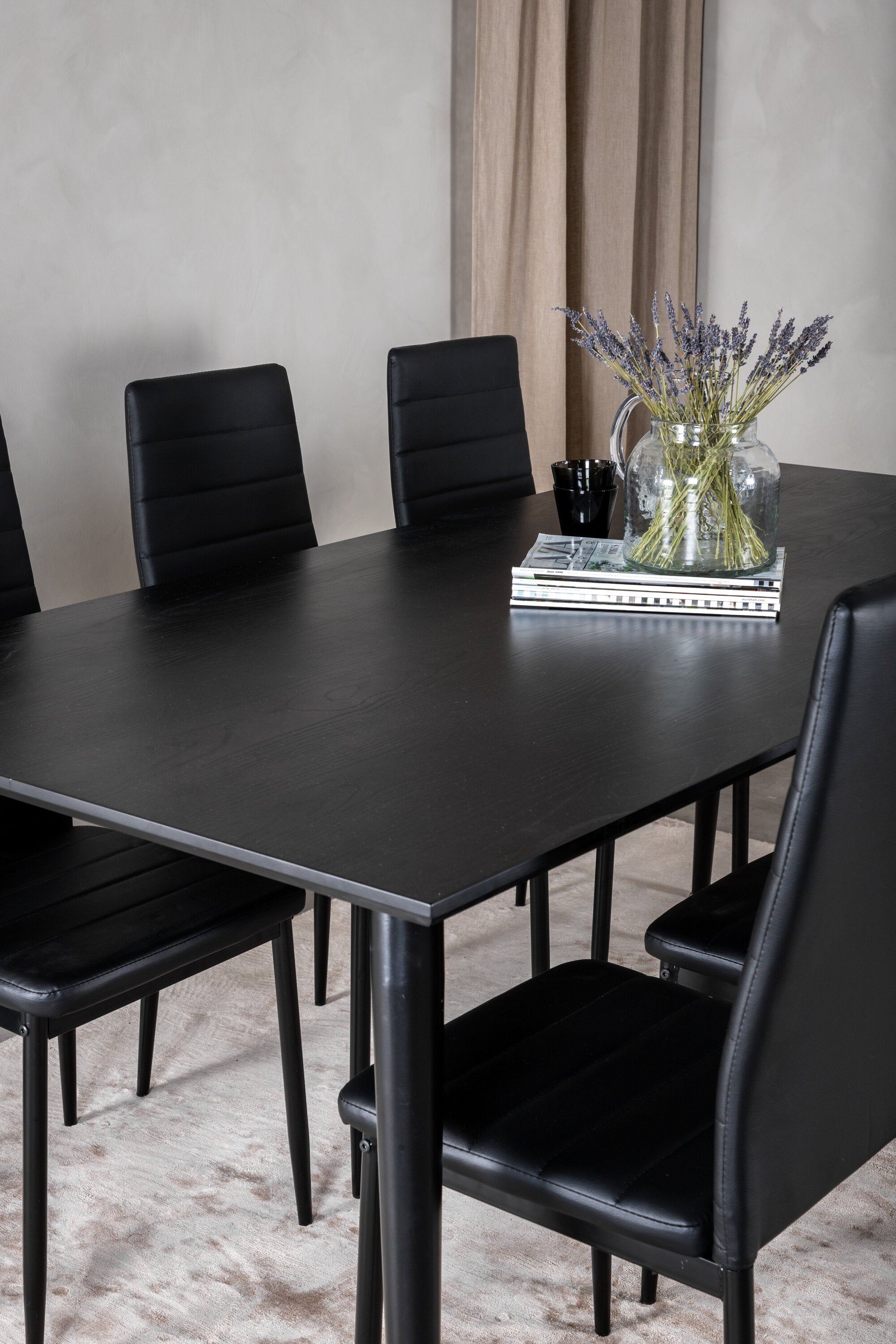 Jídelní stůl Dipp - 180*90cm - Černá dýha / celé černé nohy + Slim High Back Jídelní židle - Černé nohy - Černá PU_6