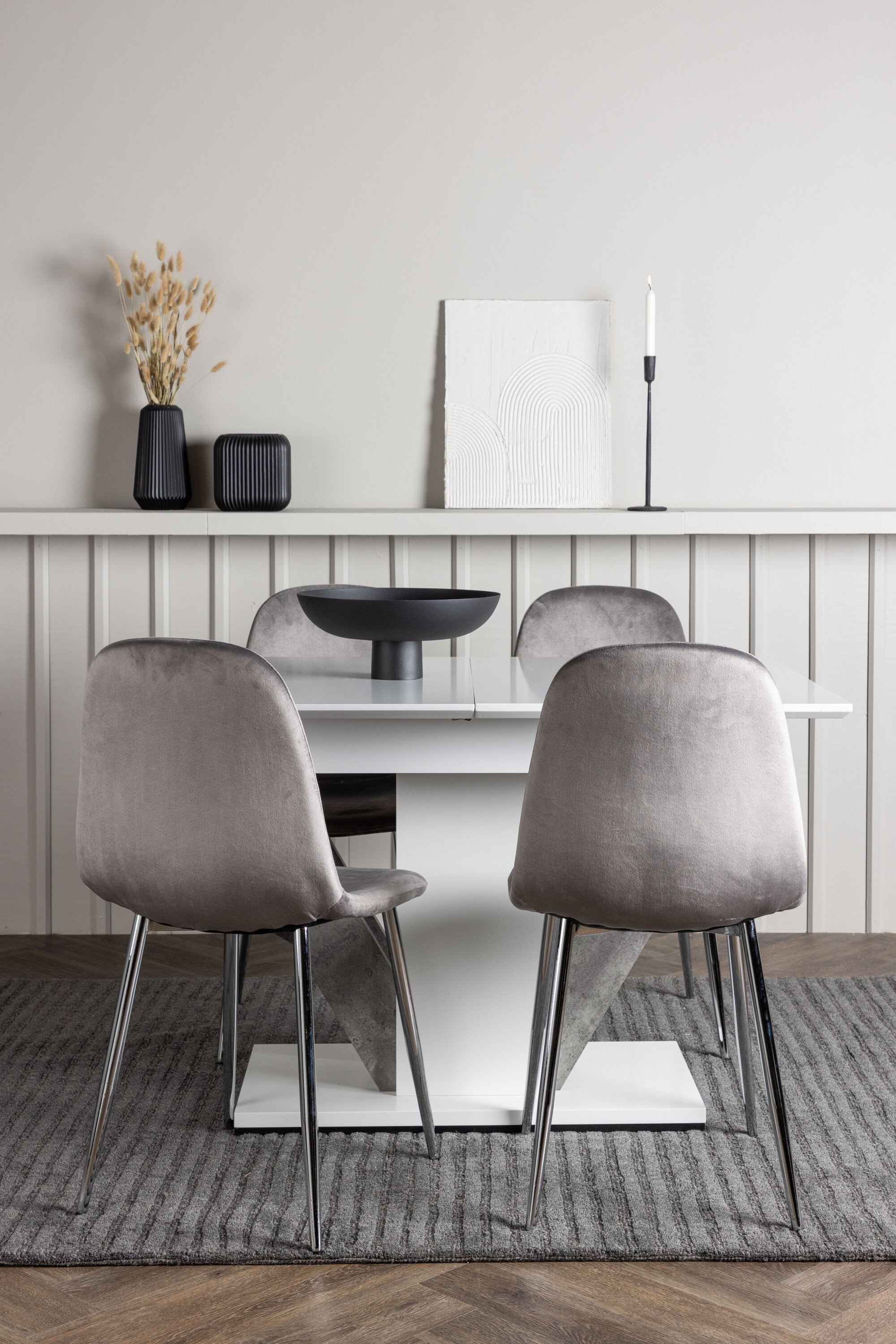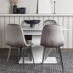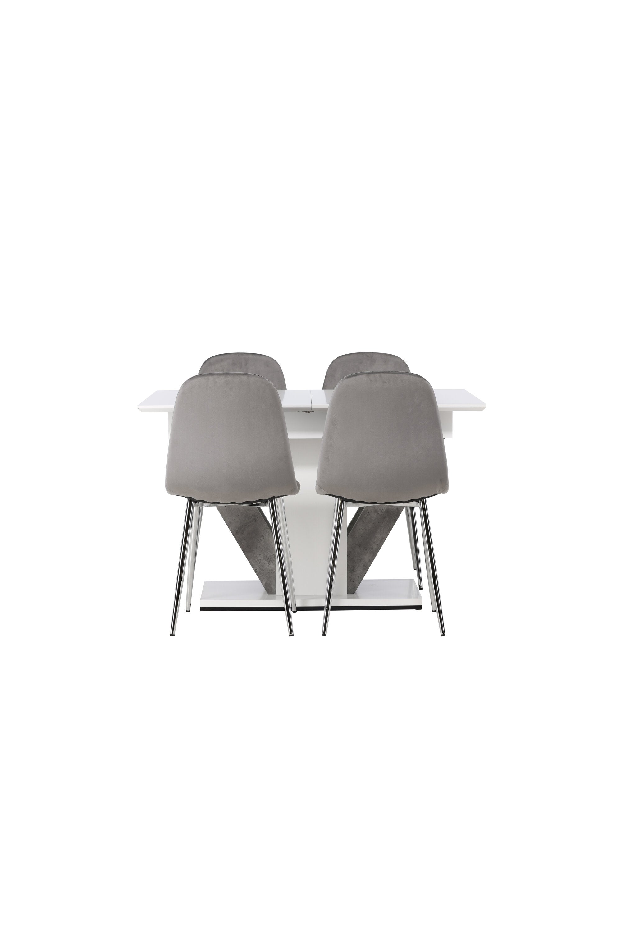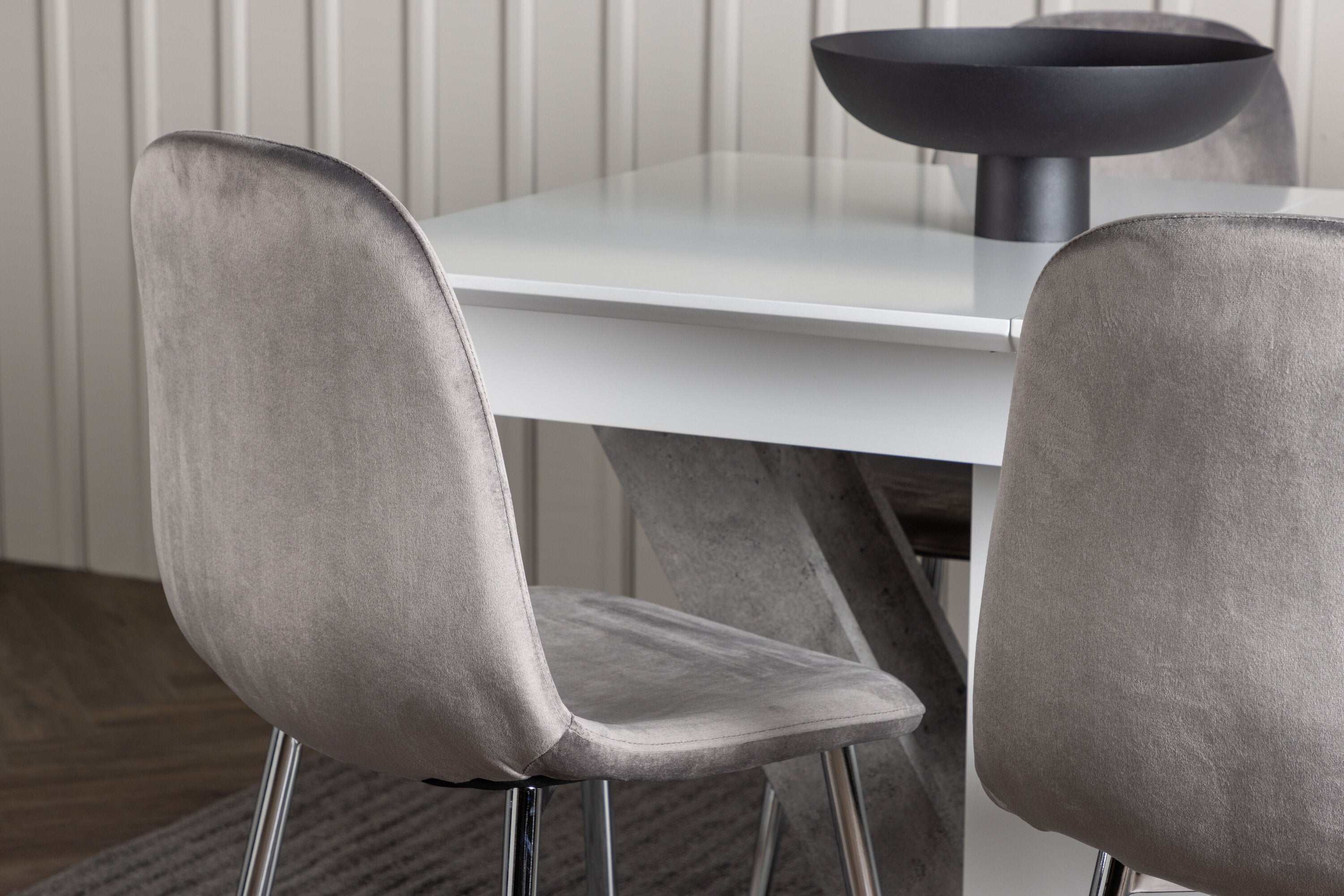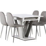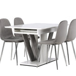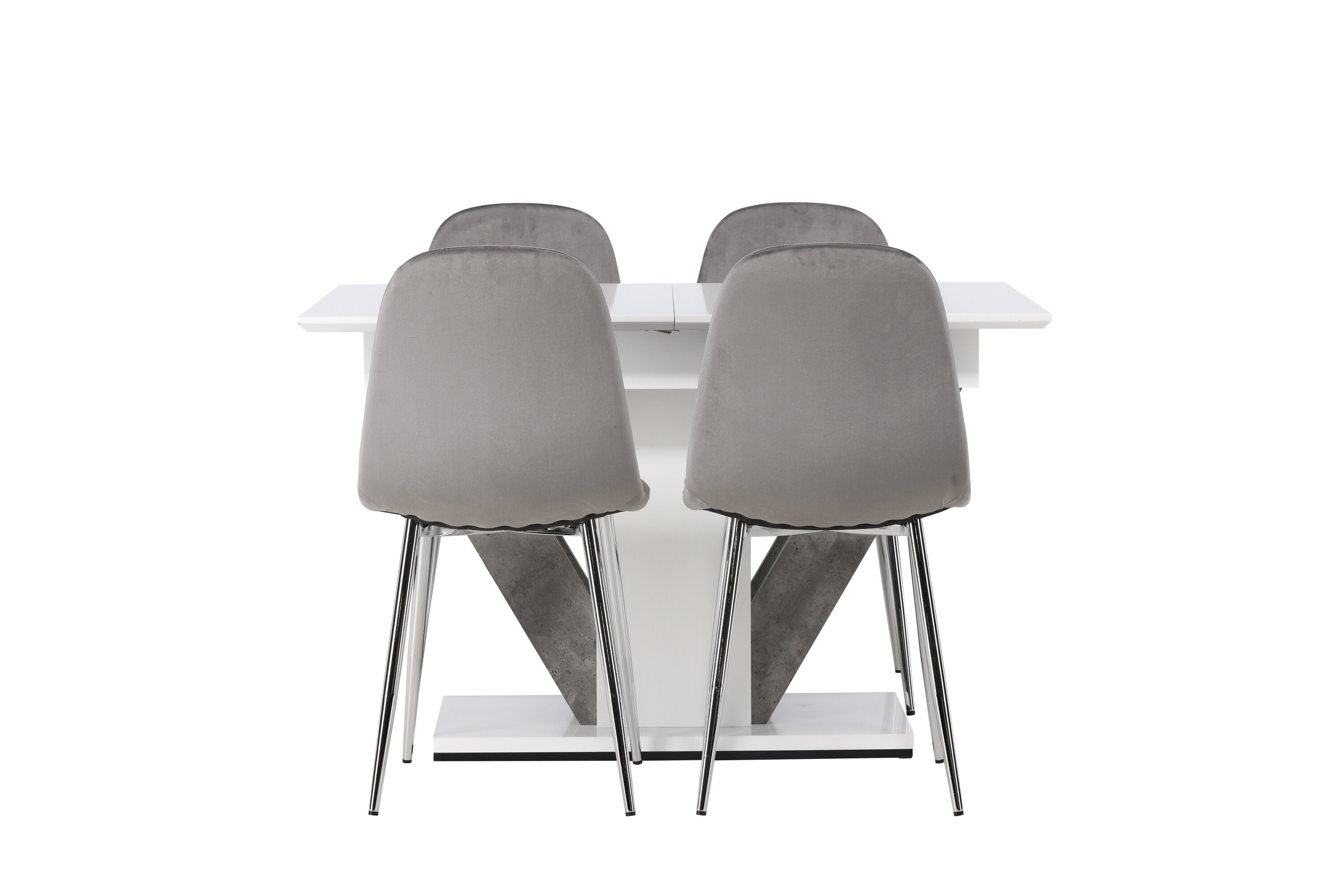 Jídelní stůl Disa 120/160*80 - Bílá / Šedá MDF +Jídelní židle Eva - Světle šedá / Světle šedá Velvet _4