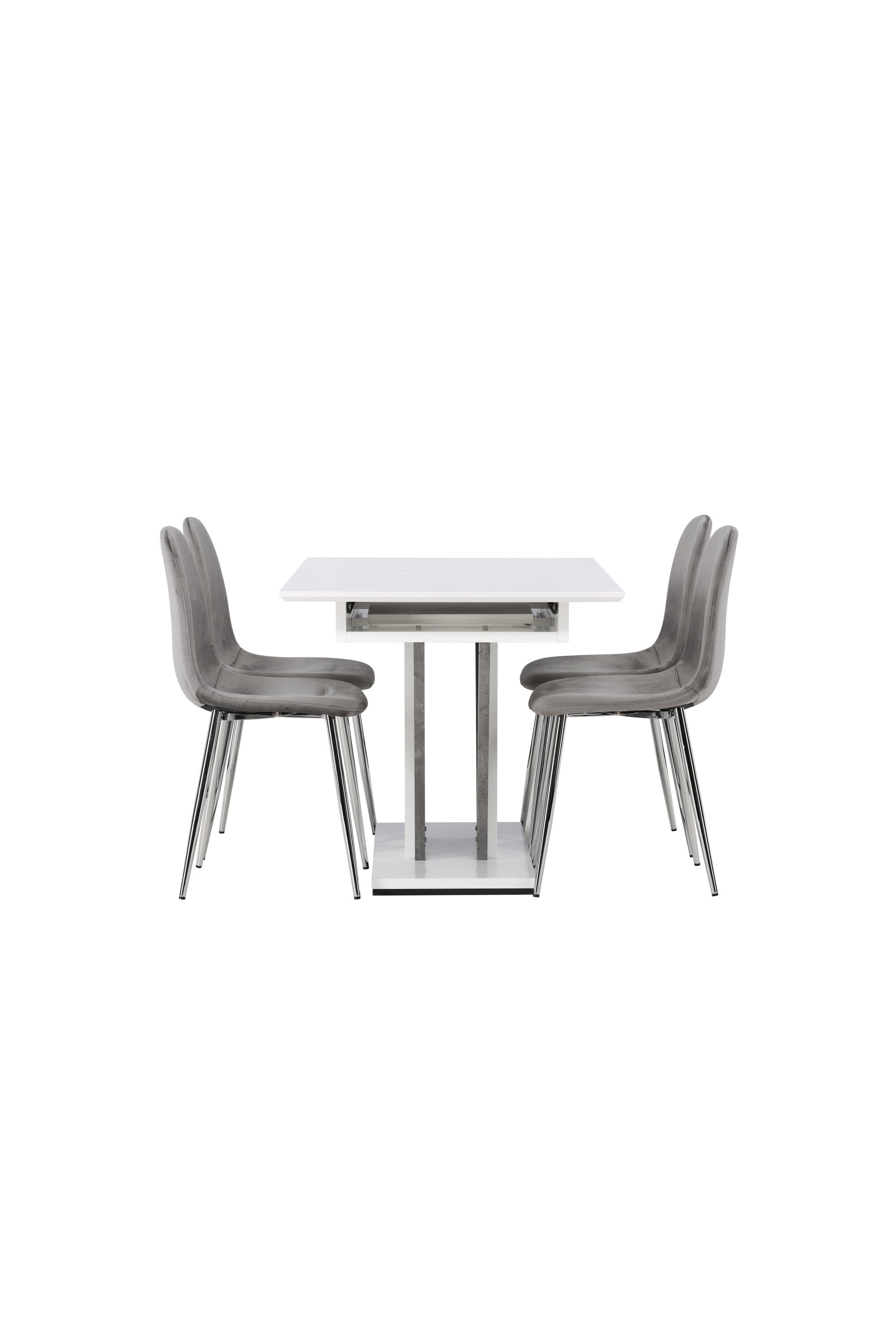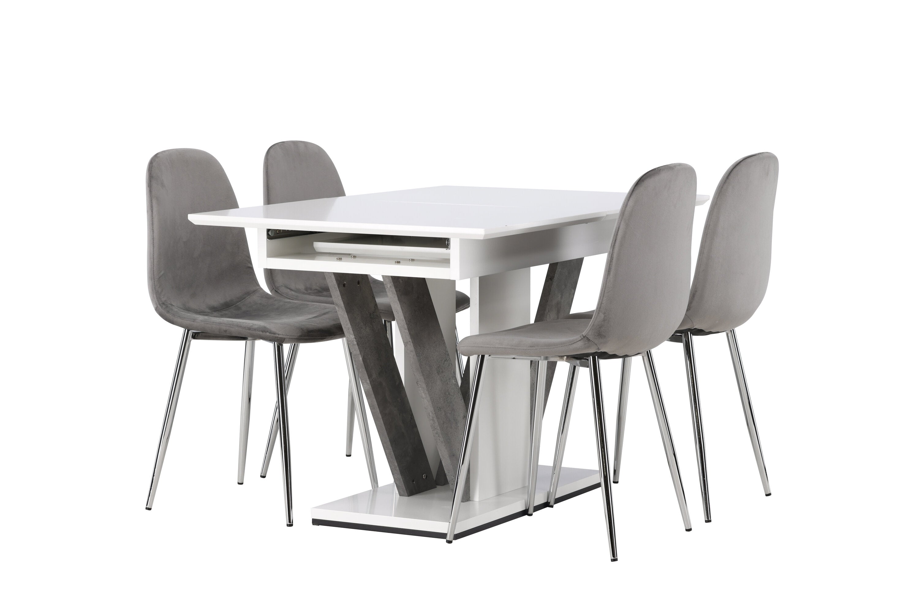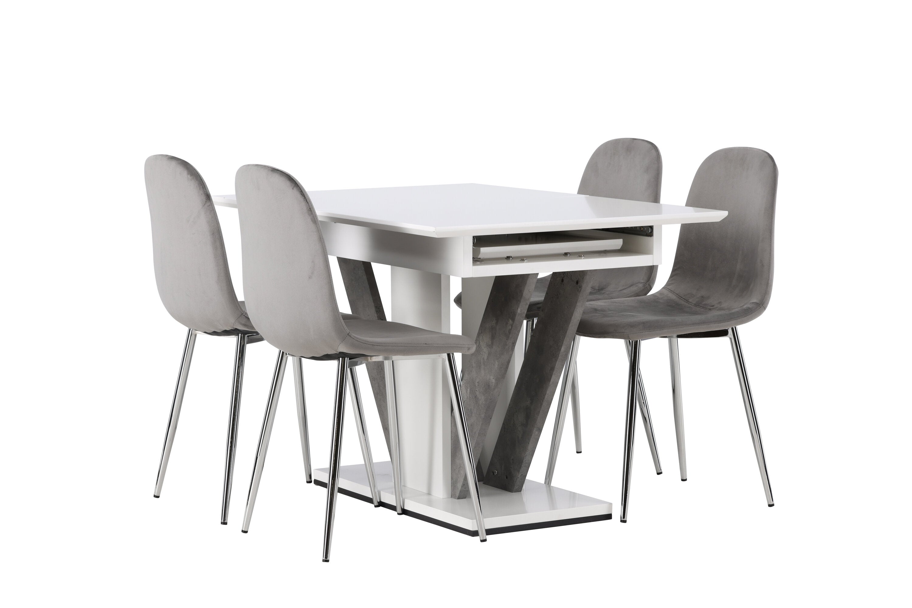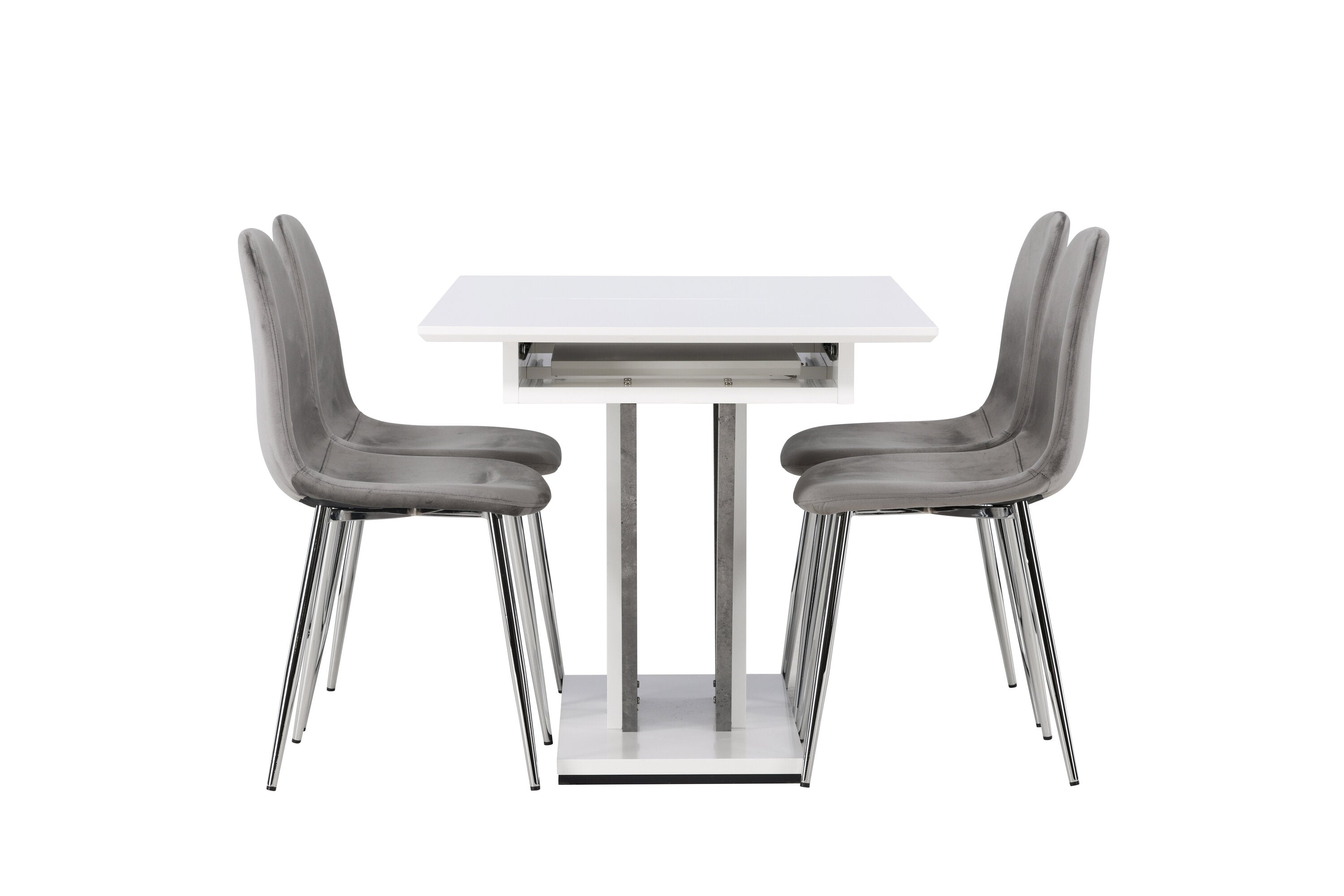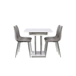 Jídelní stůl Disa 120/160*80 - Bílá / Šedá MDF +Jídelní židle Eva - Světle šedá / Světle šedá Velvet _4