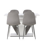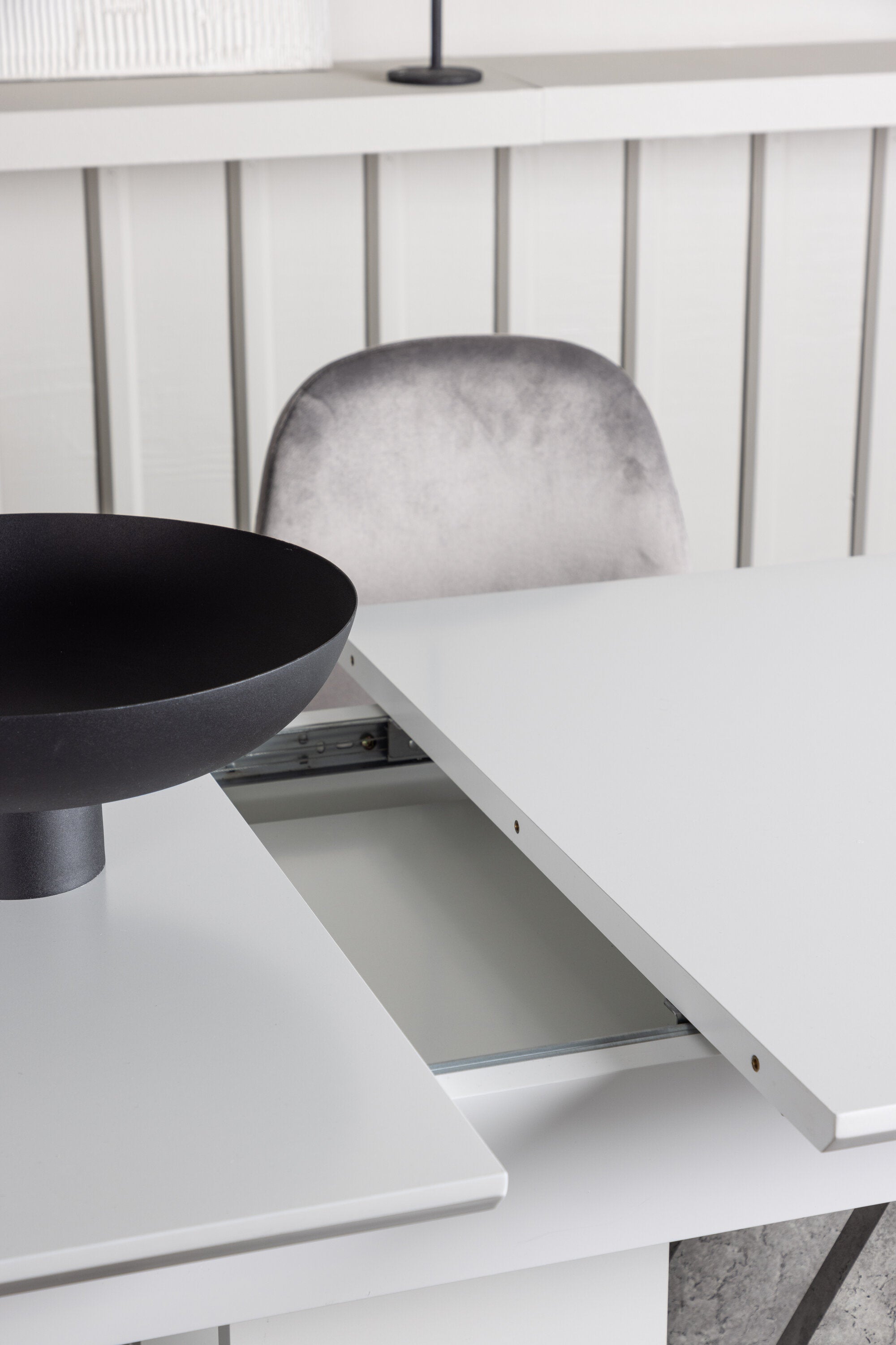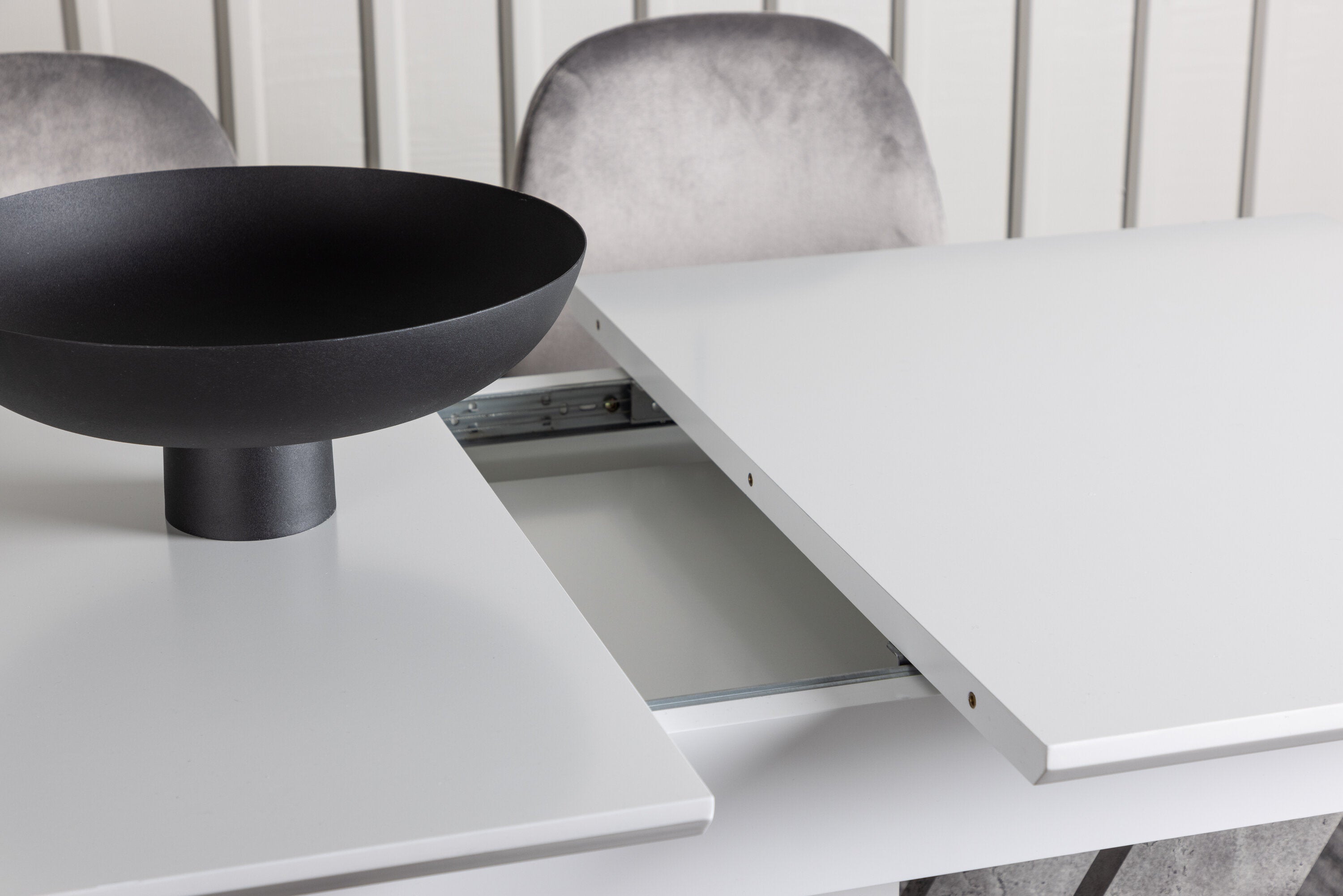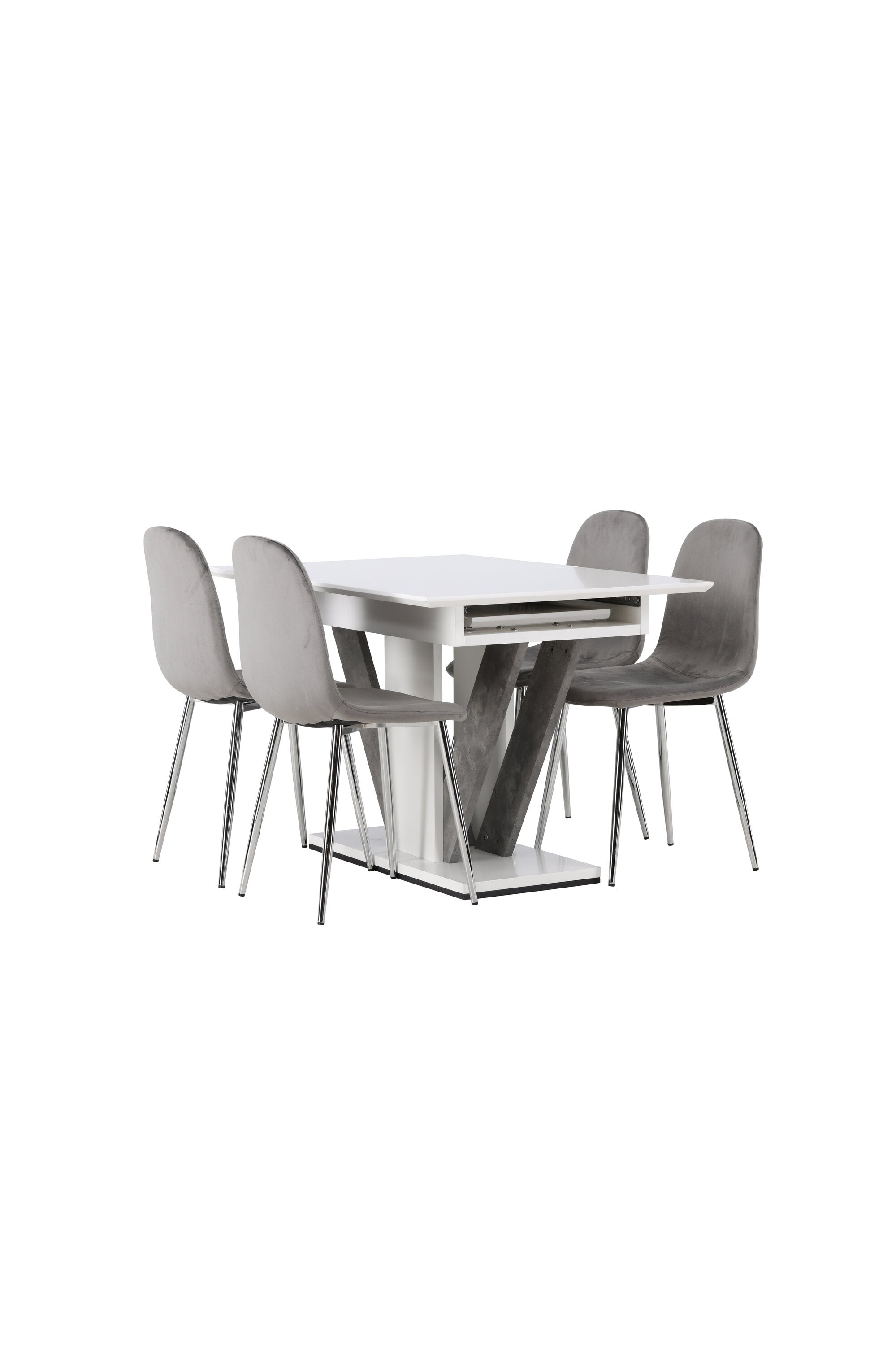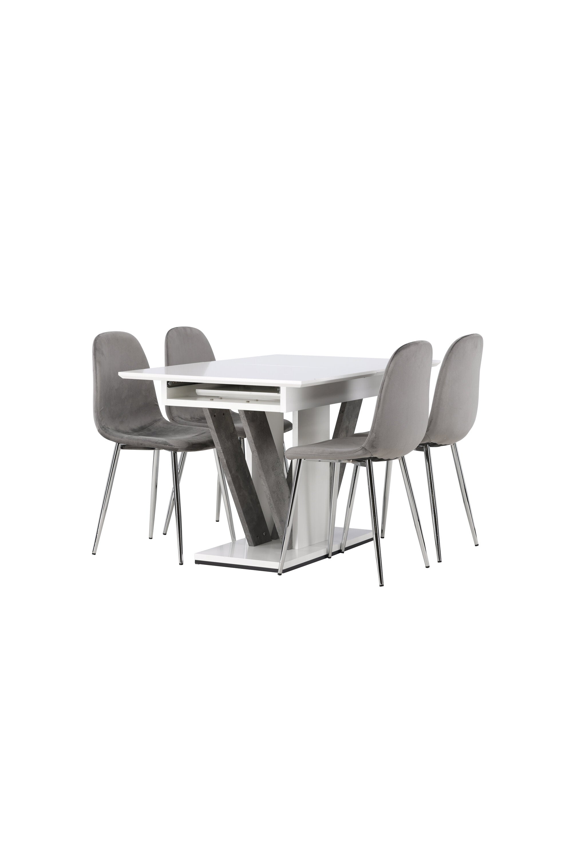 Jídelní stůl Disa 120/160*80 - Bílá / Šedá MDF +Jídelní židle Eva - Světle šedá / Světle šedá Velvet _4