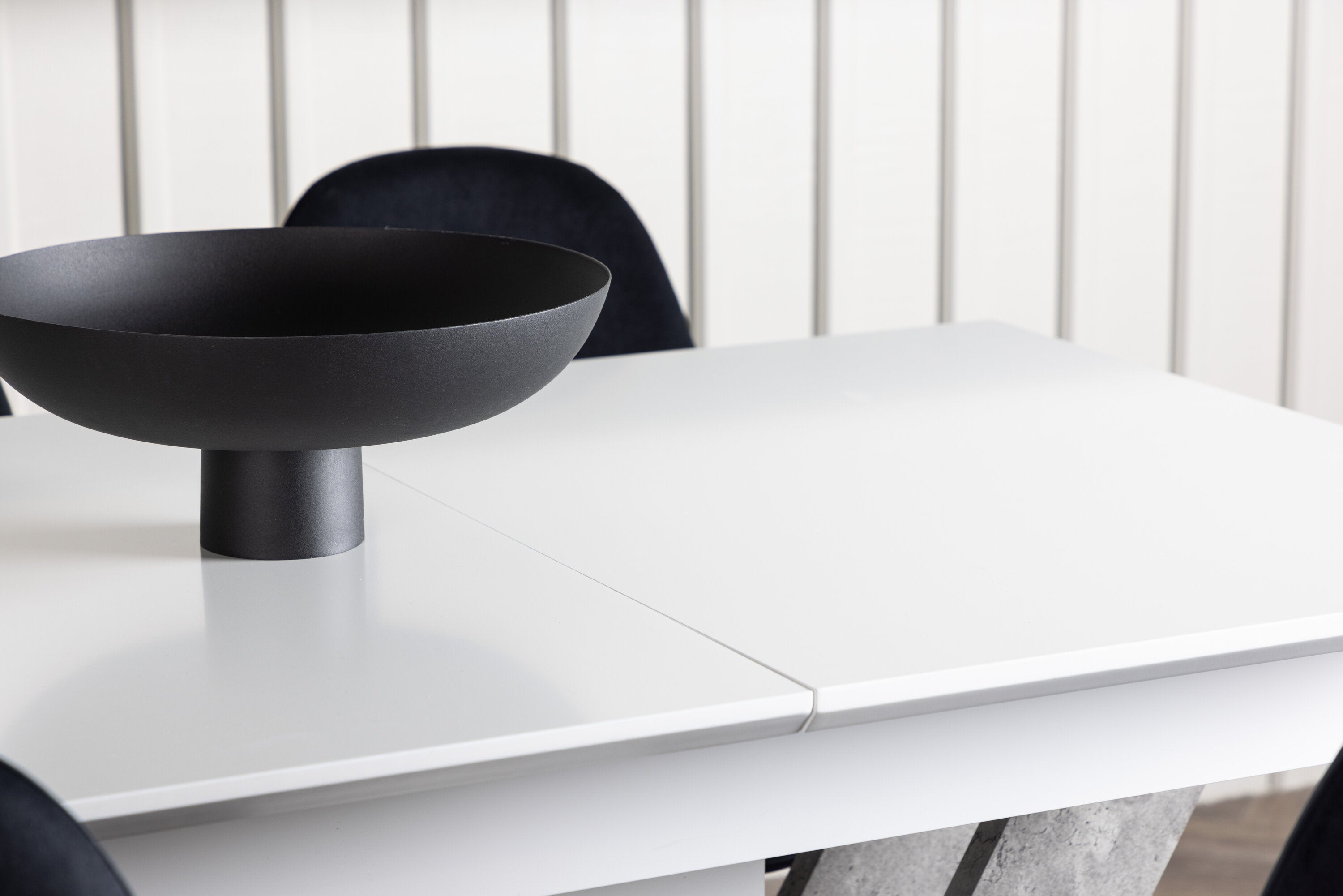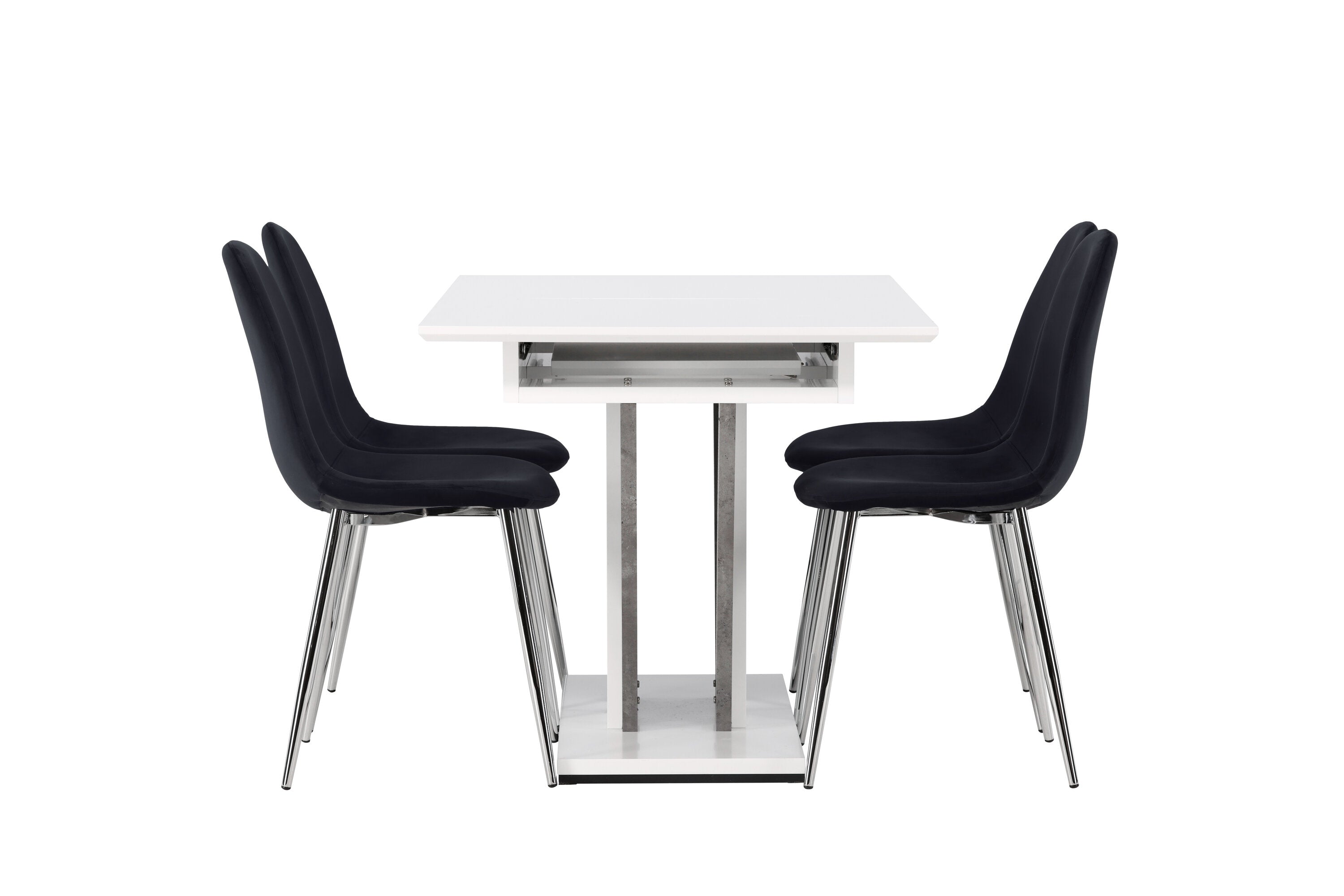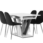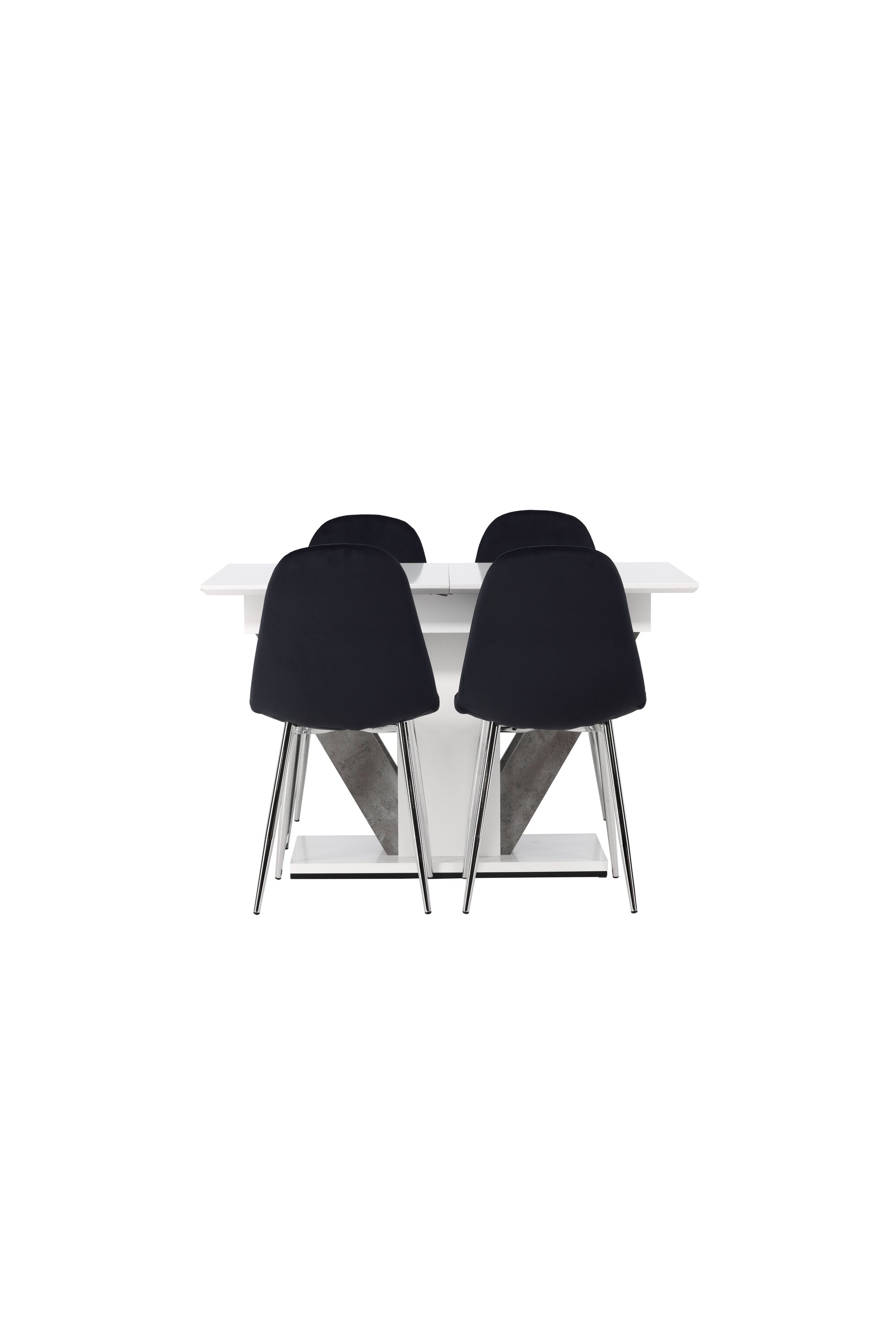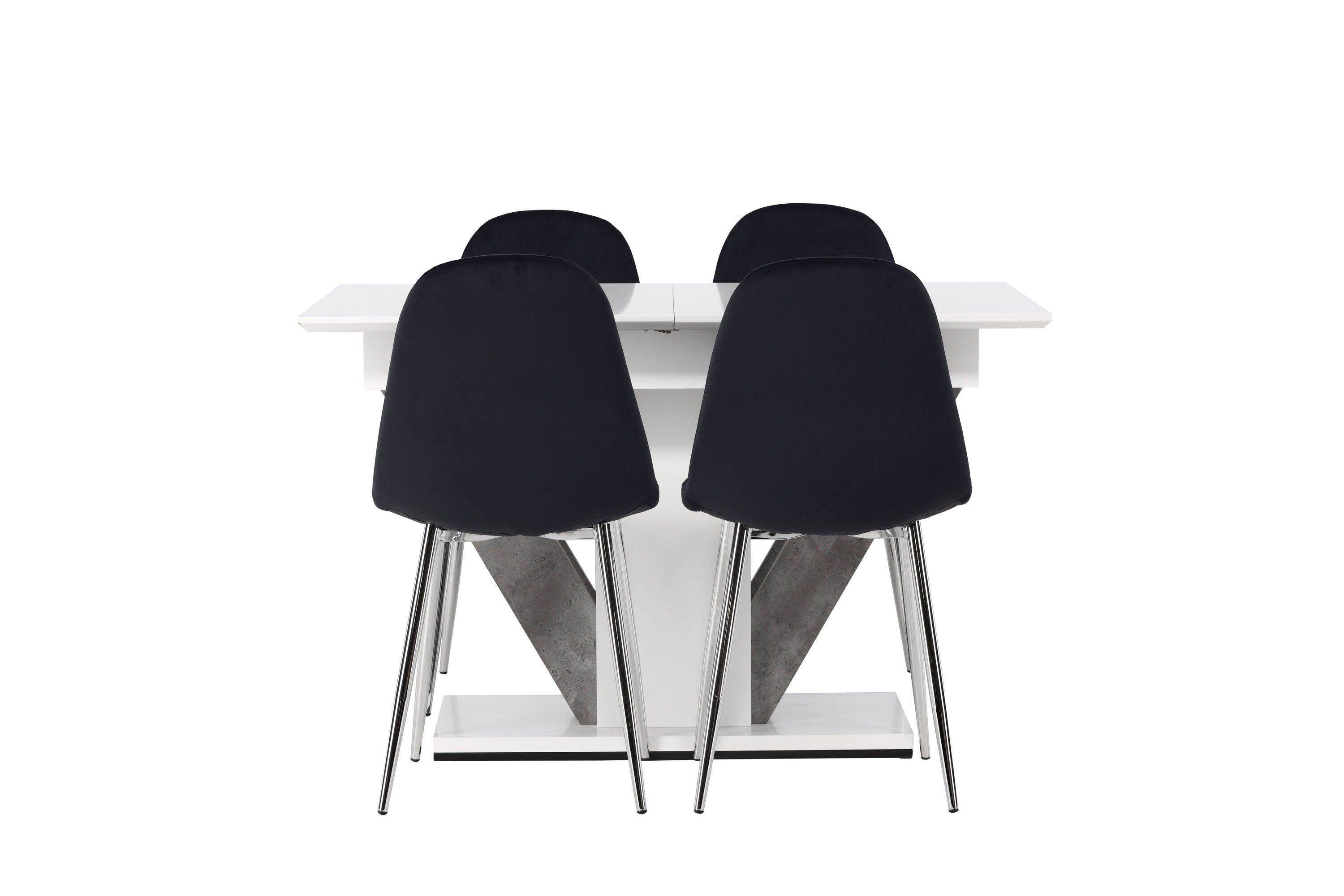 Jídelní stůl Disa 120/160*80 - bílá / šedá MDF + jídelní židle Polar - černá sametová / chrom _4