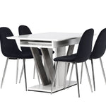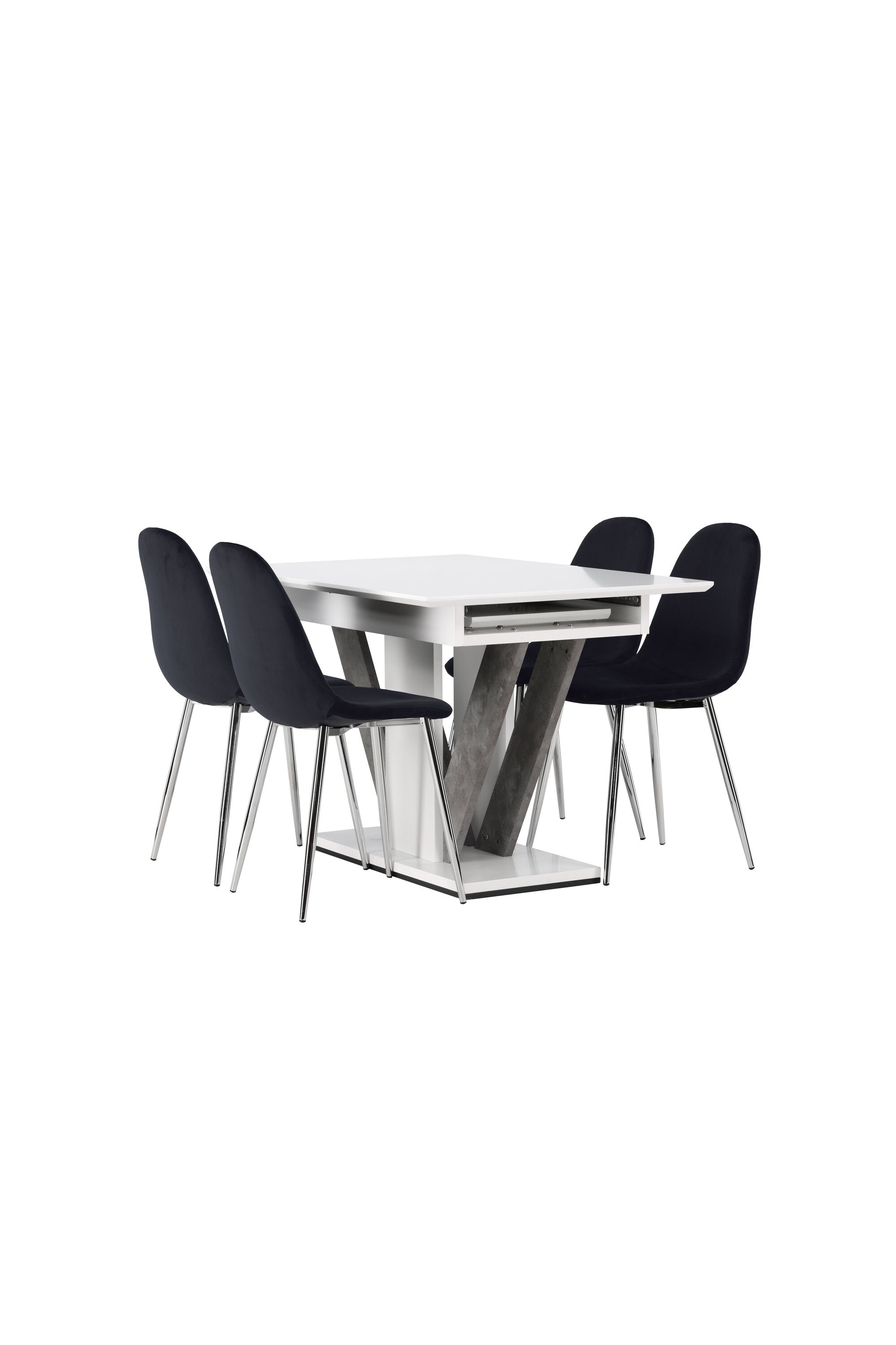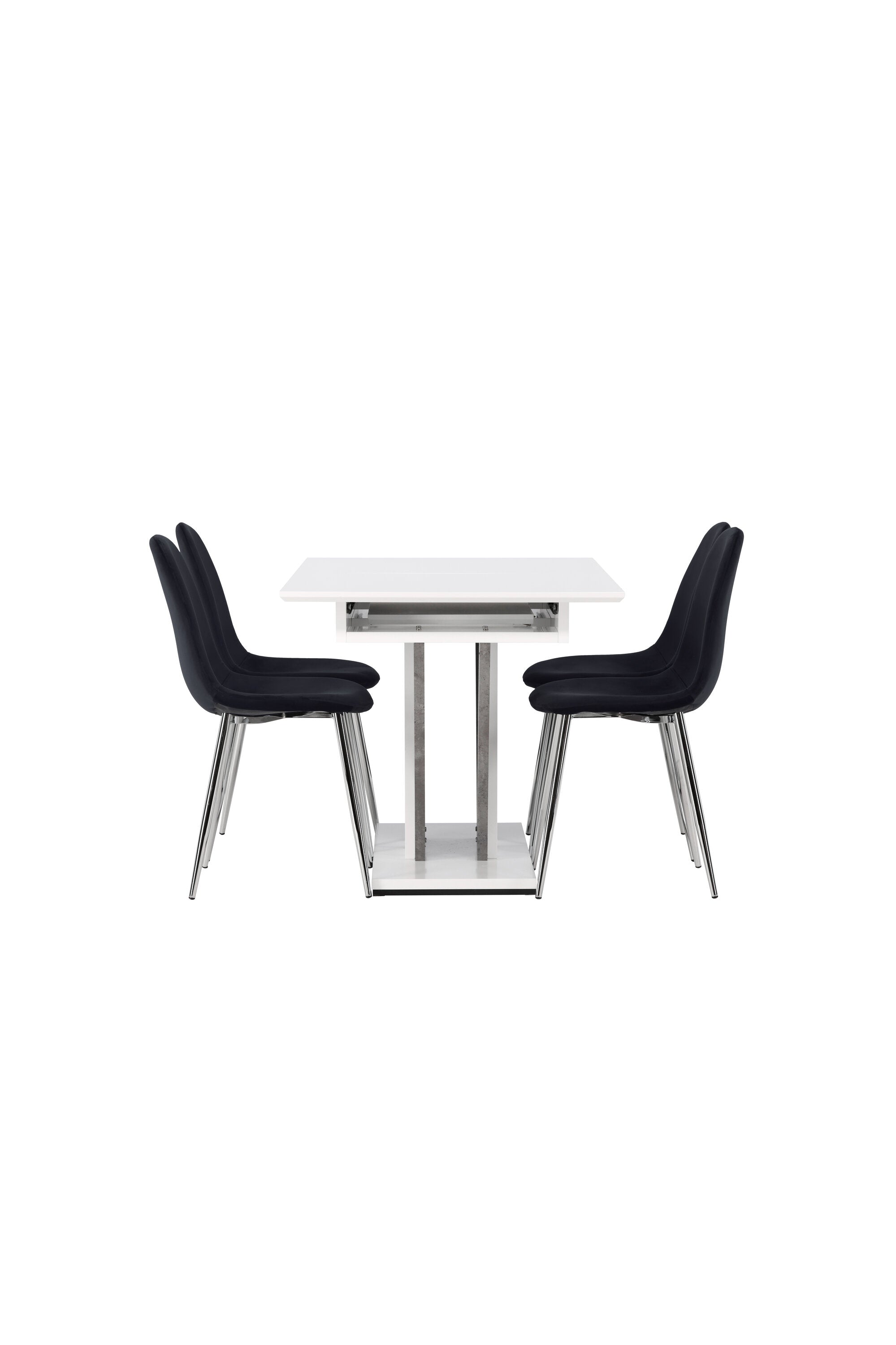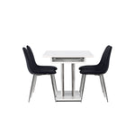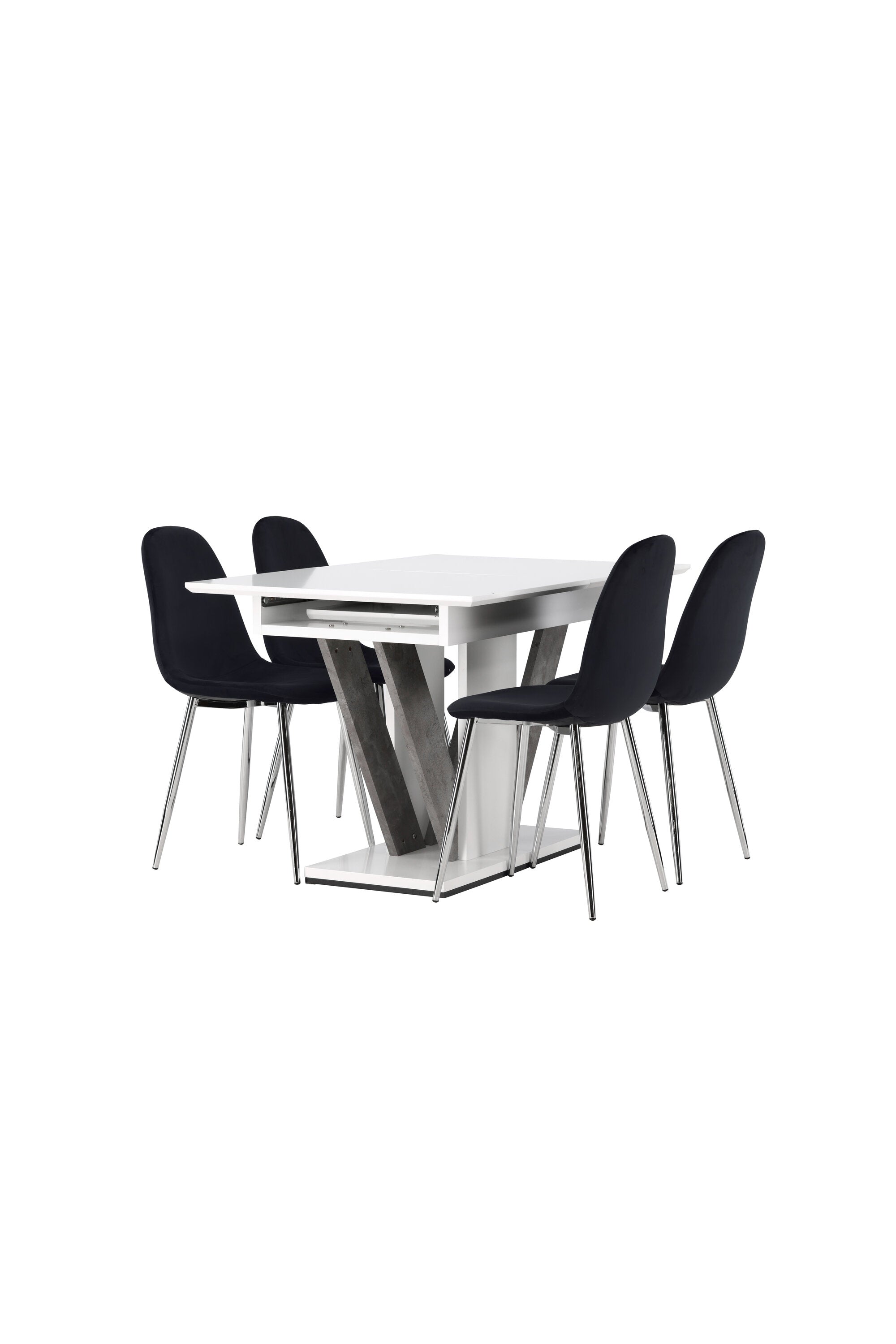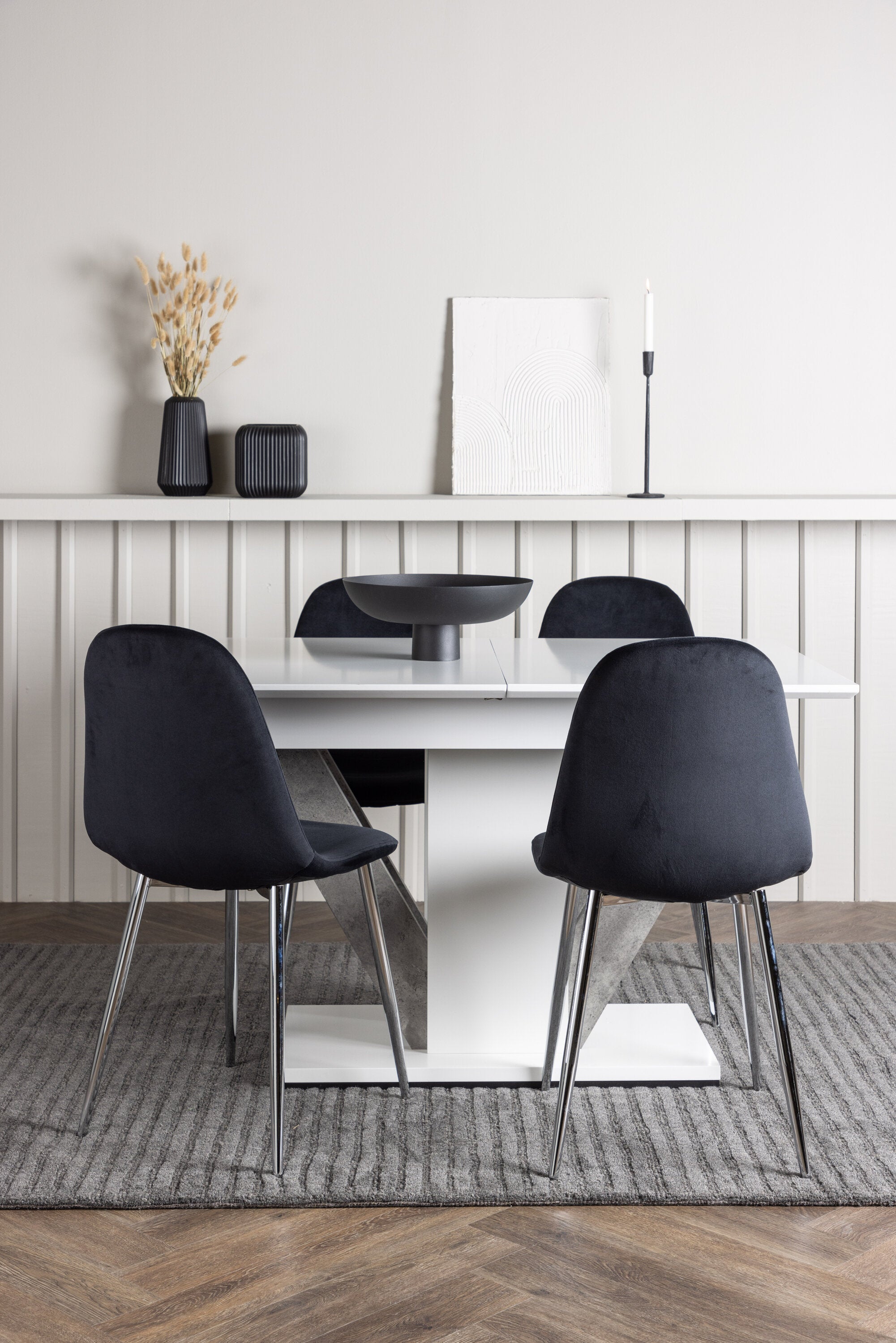 Jídelní stůl Disa 120/160*80 - bílá / šedá MDF + jídelní židle Polar - černá sametová / chrom _4