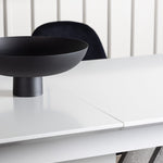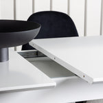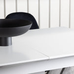 Náš obdélníkový jídelní stůl Disa má bílou desku z MDF a centrálně umístěnou základnu ze stejného materiálu. Součástí stolu jsou také dva šedé MDF podstavce, které dodávají stylový detail.