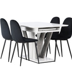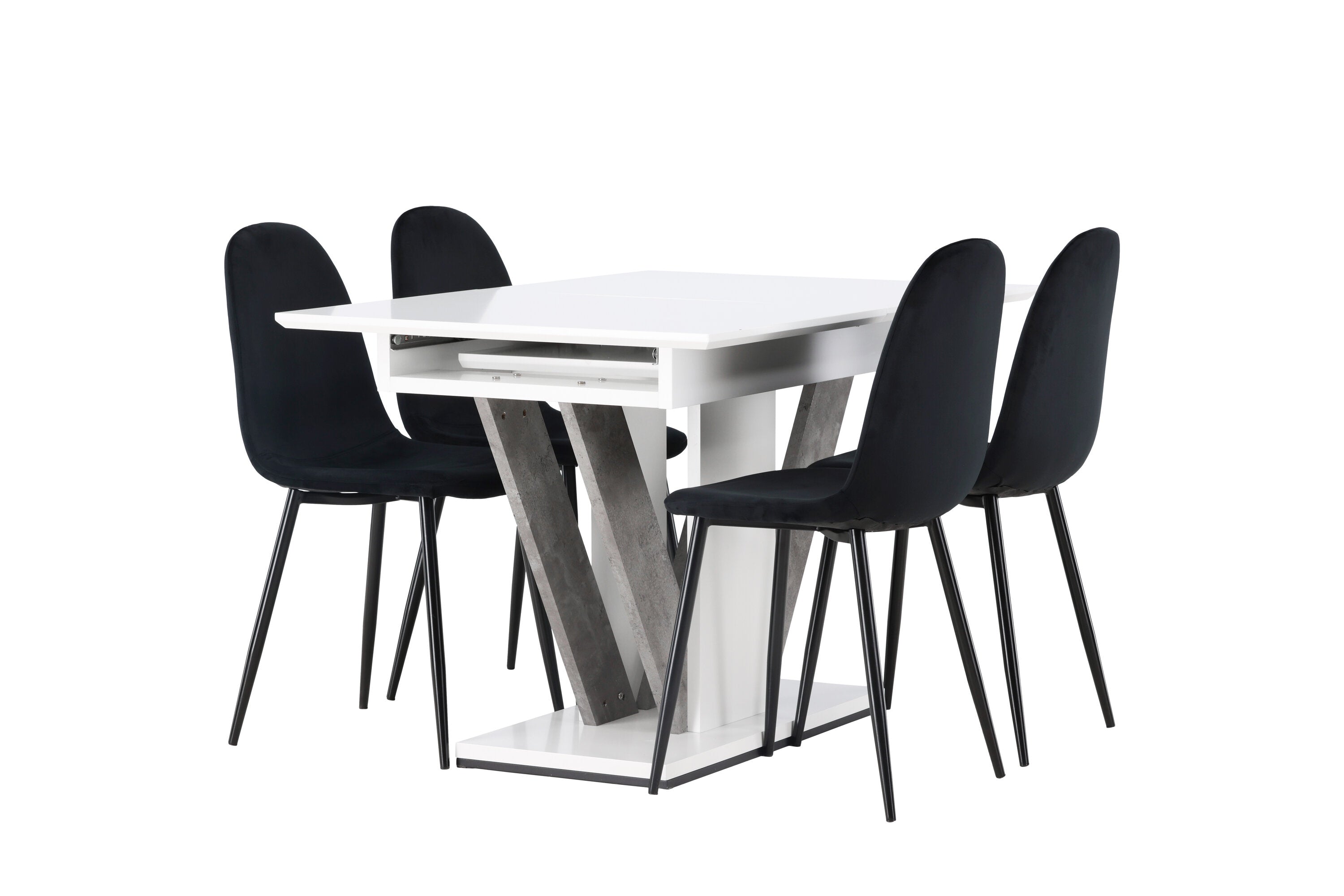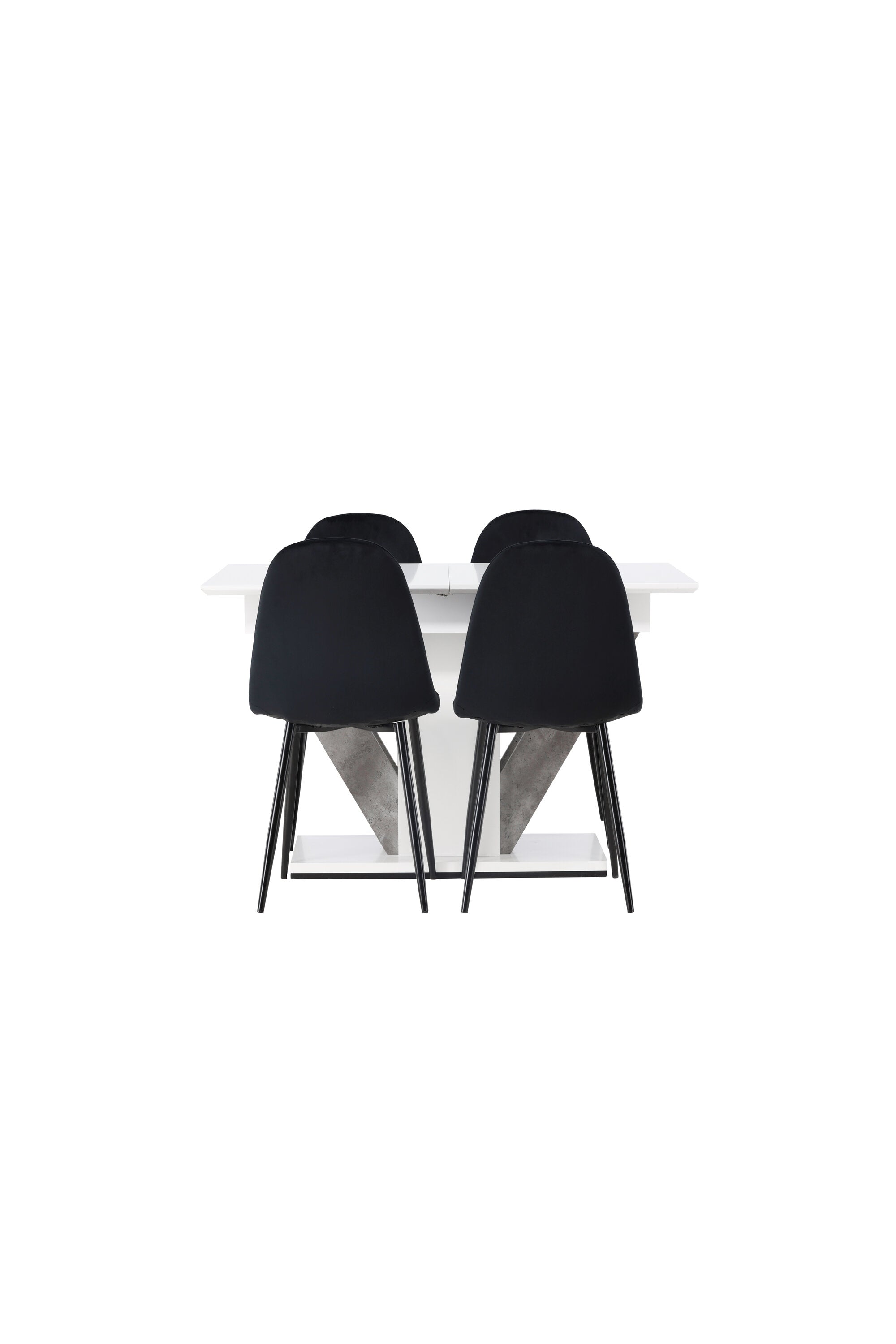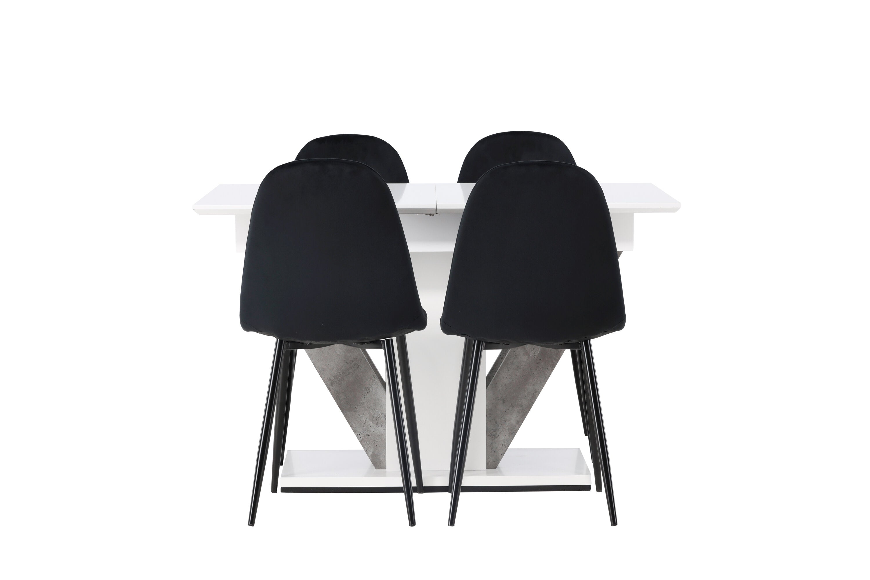 Jídelní stůl Disa 120/160*80 - bílá / šedá MDF + jídelní židle Polar - černé nohy / černý samet _4