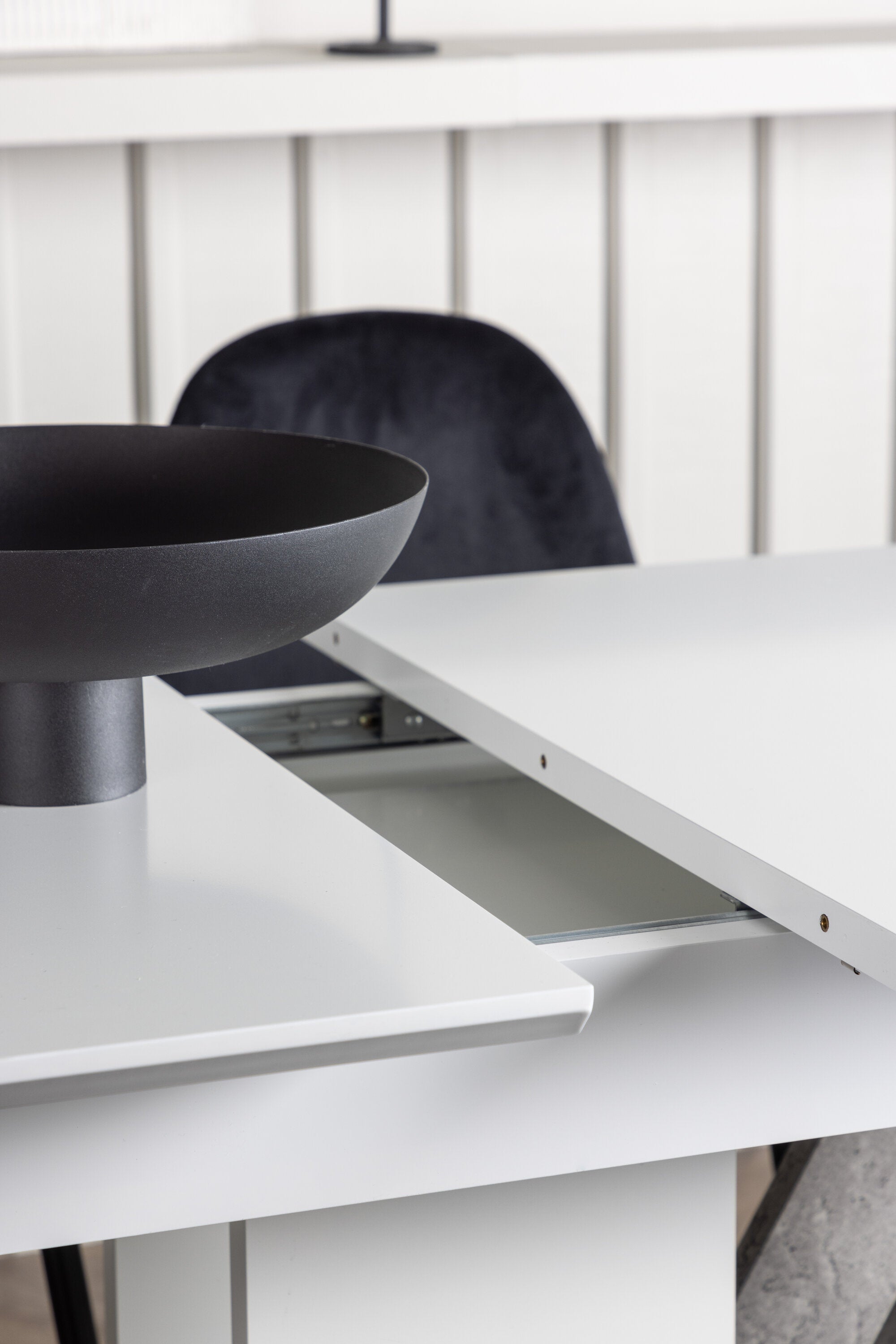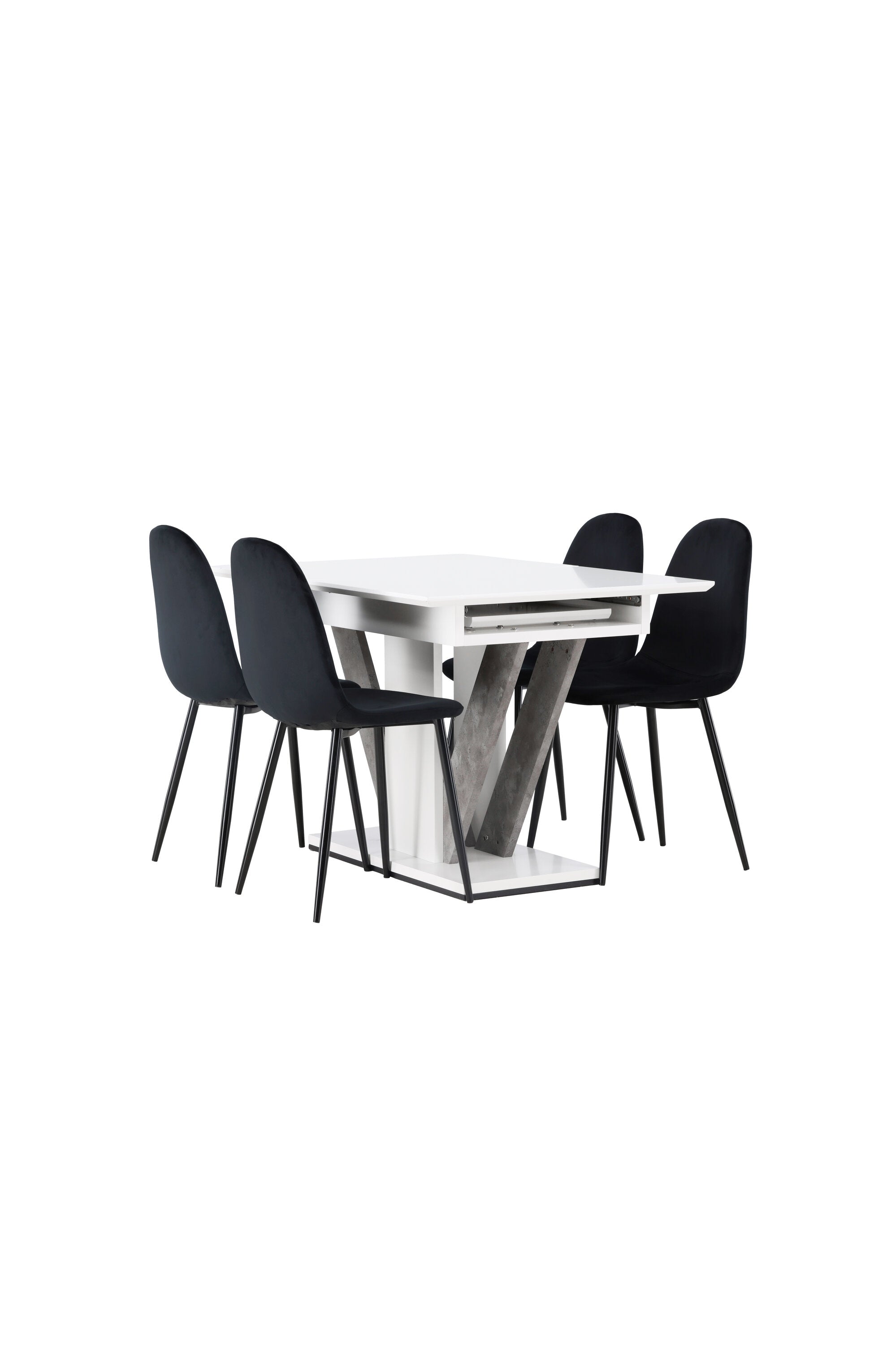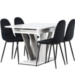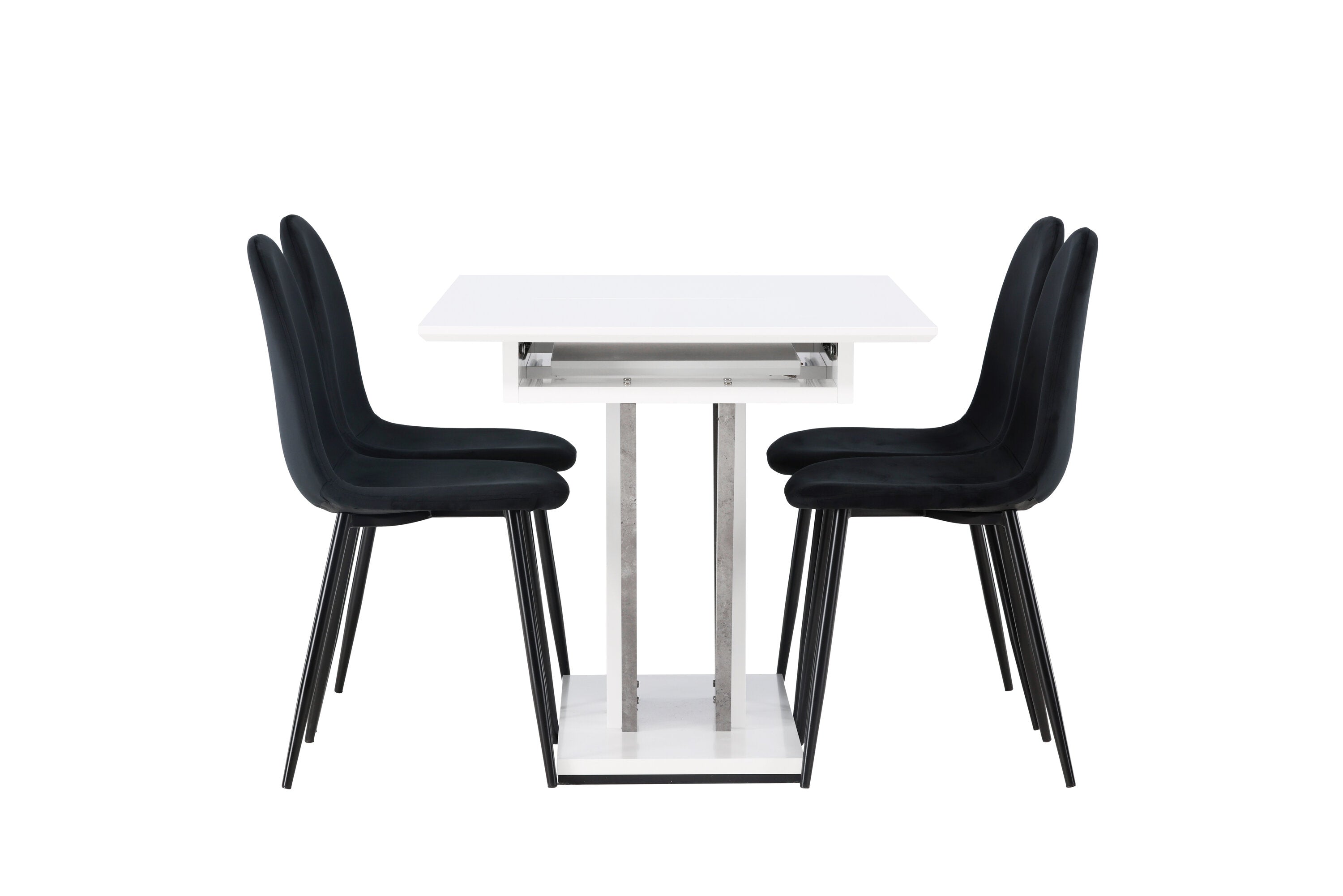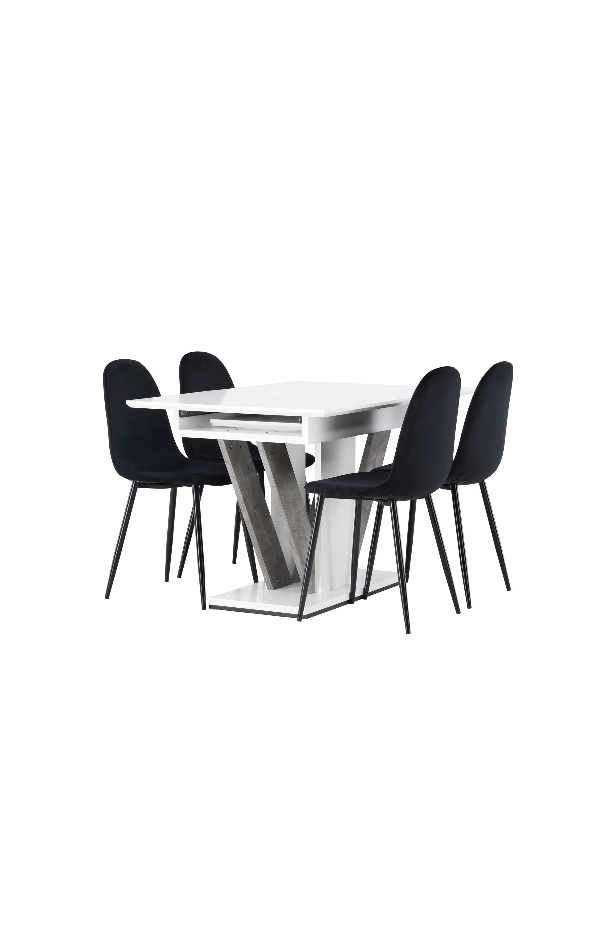Jídelní stůl Disa 120/160*80 - bílá / šedá MDF + jídelní židle Polar - černé nohy / černý samet _4