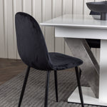 Společně s našimi sametovými židlemi ze série Polar se tato jídelní souprava stává kompletní. Židle Polar zaujmou svým celočalouněným designem, klasickými černými kovovými nohami a mírně zaobleným opěradlem pro extra pohodlí. Sedadlo je potaženo elegantní černou sametovou látkou, která působí luxusně a pohodlně se na něm sedí. Mělo by to být skvělý pocit vrátit se domů na příjemné jídlo!