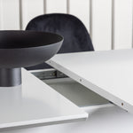 Náš obdélníkový jídelní stůl Disa má bílou desku MDF a středově umístěnou základnu ze stejného materiálu. Stůl má také dvě šedé MDF podpěry, které dodávají stylový nádech.