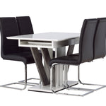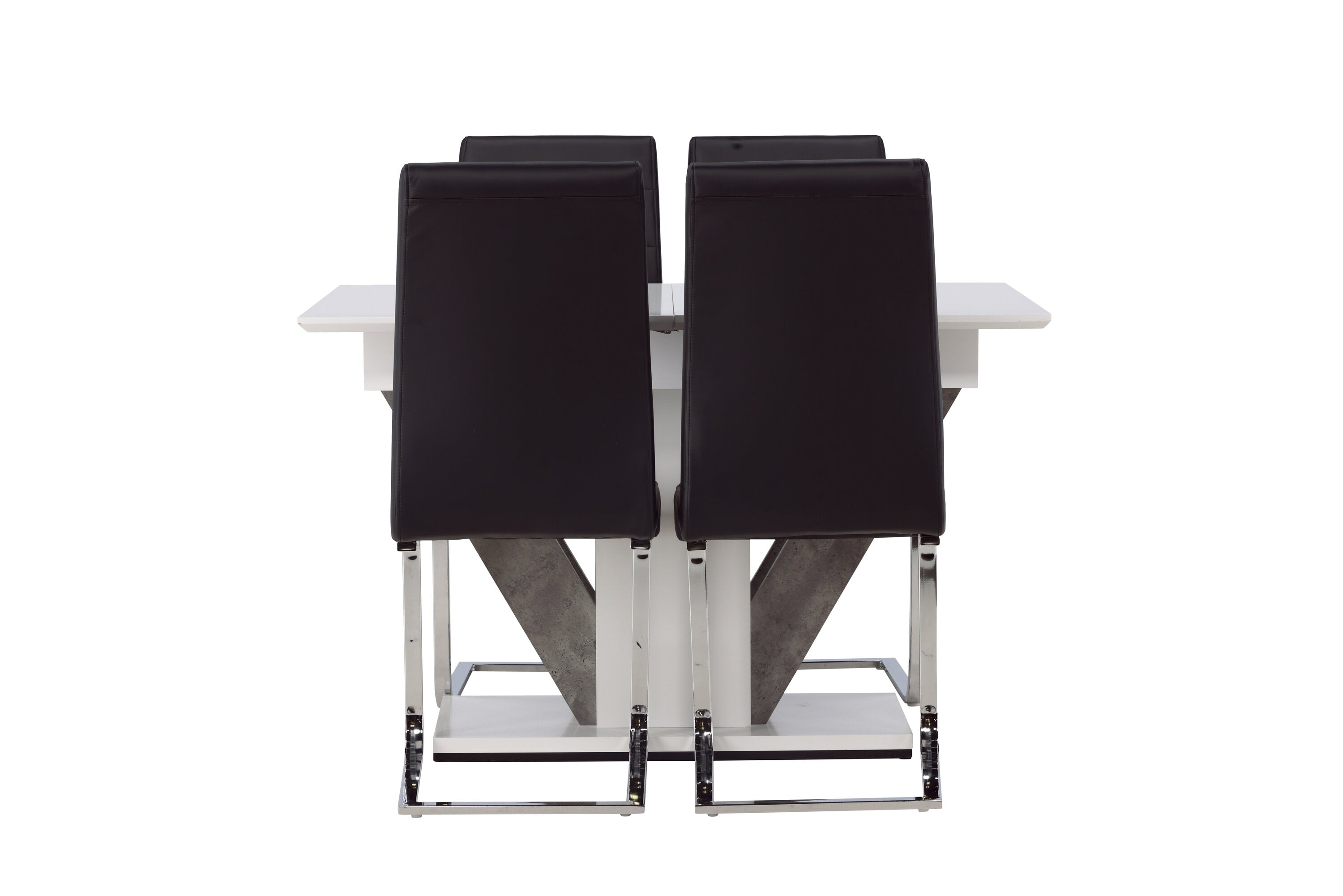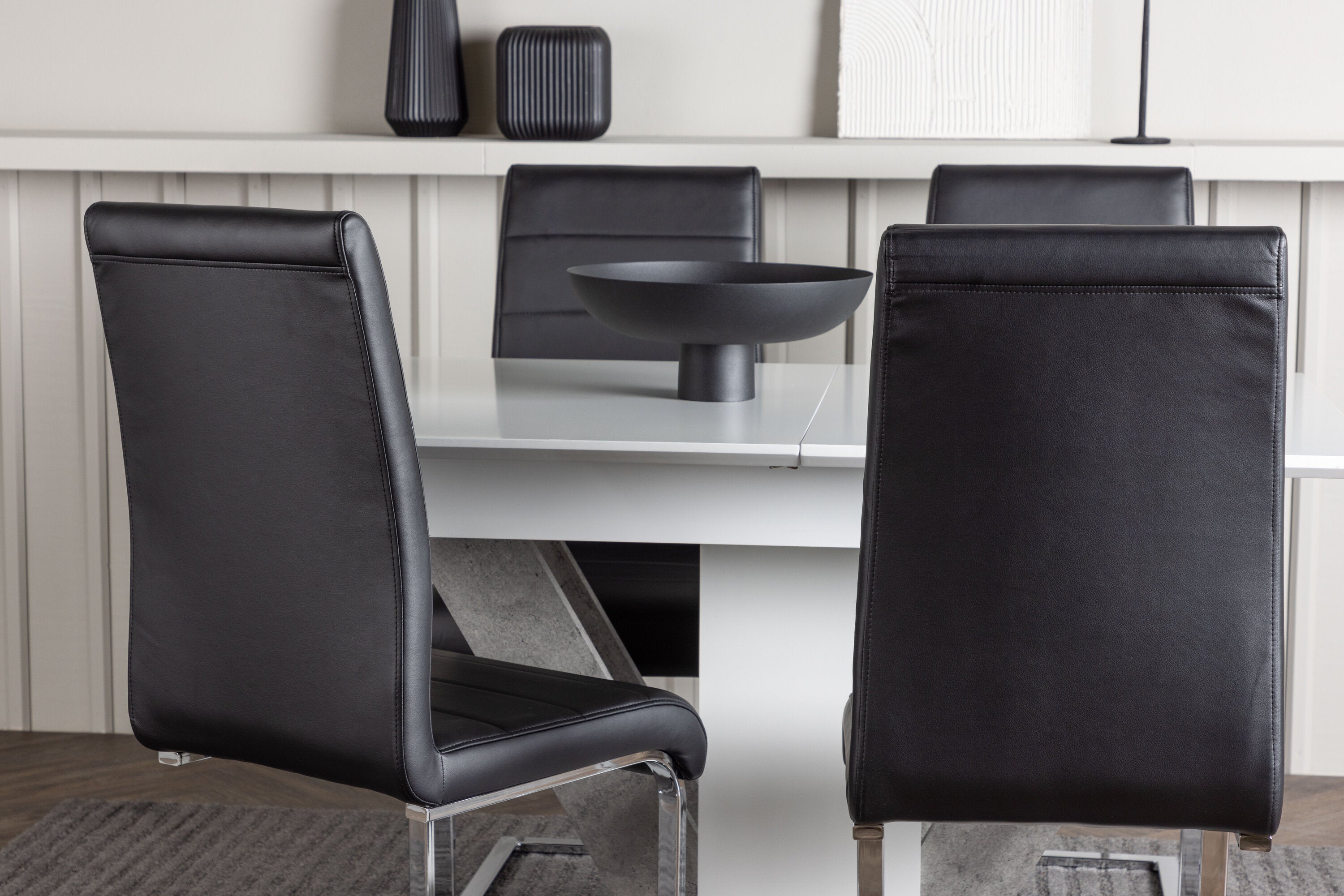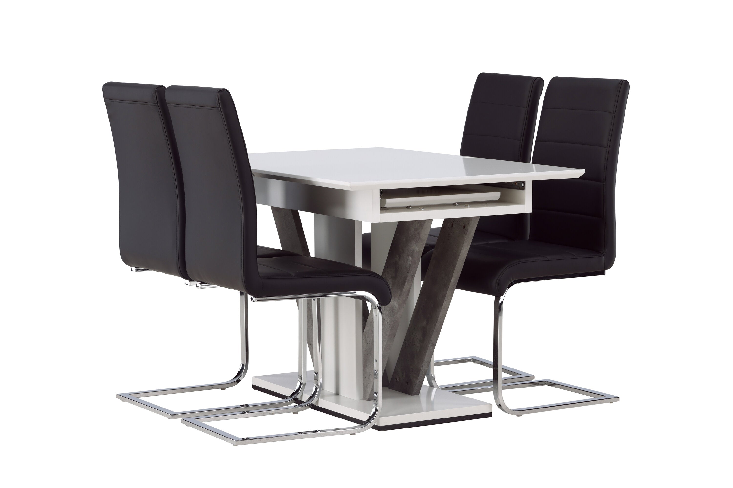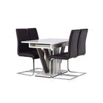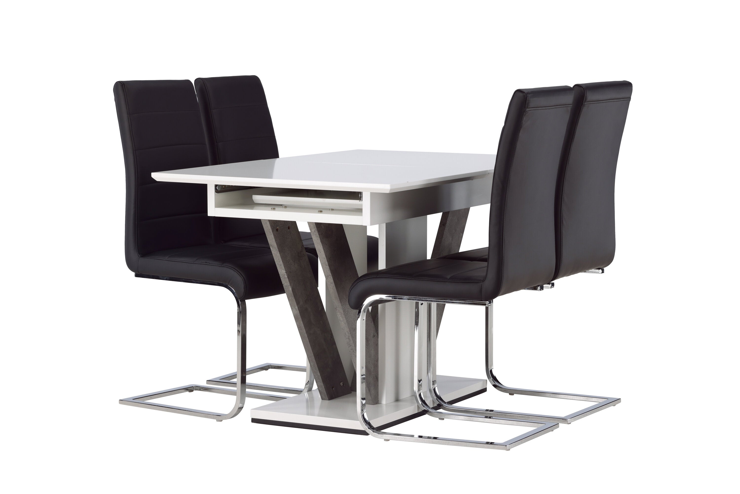 Jídelní stůl Disa 120/160*80 - Bílá / Šedá MDF + Jídelní židle Tempo - Pochromovaná noha / Černá PU _4