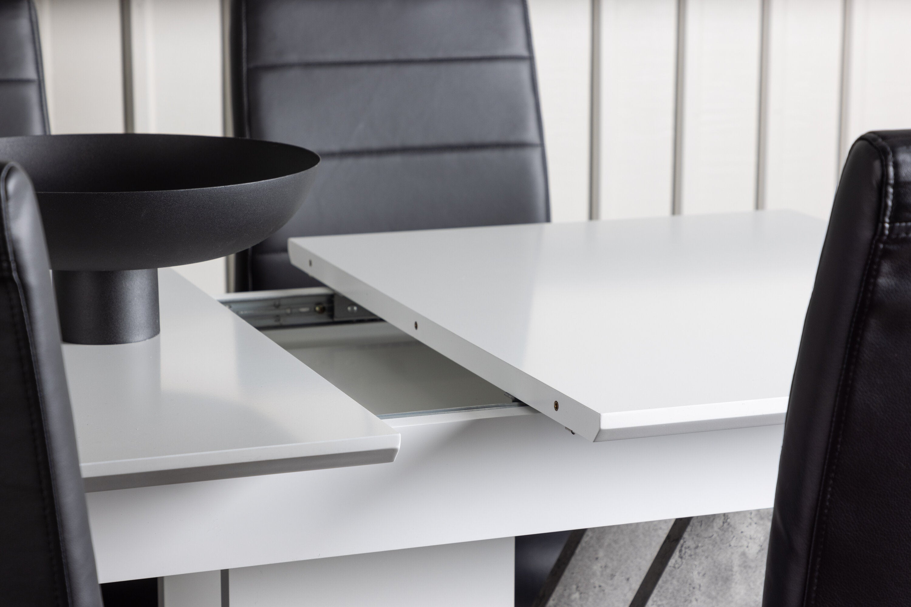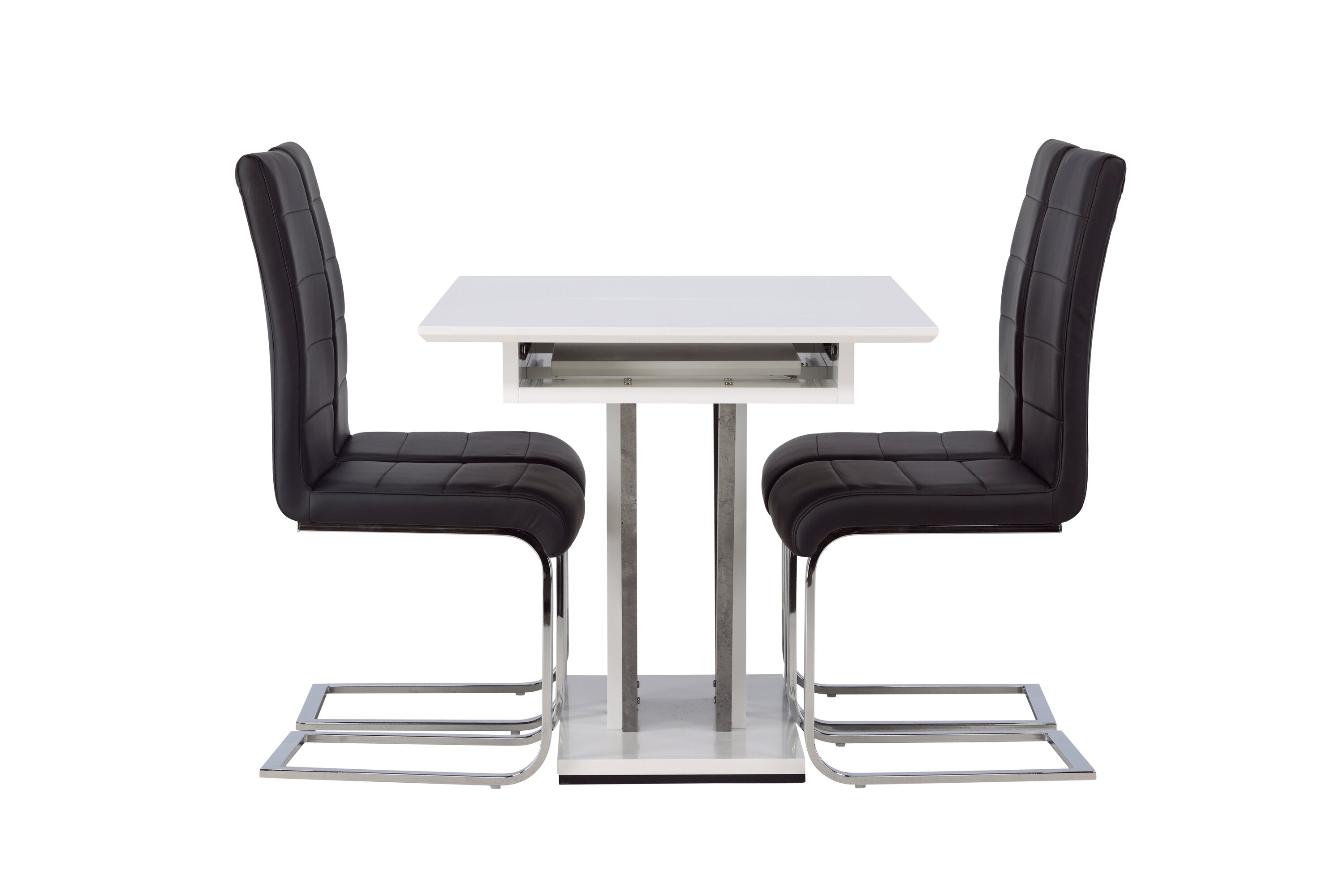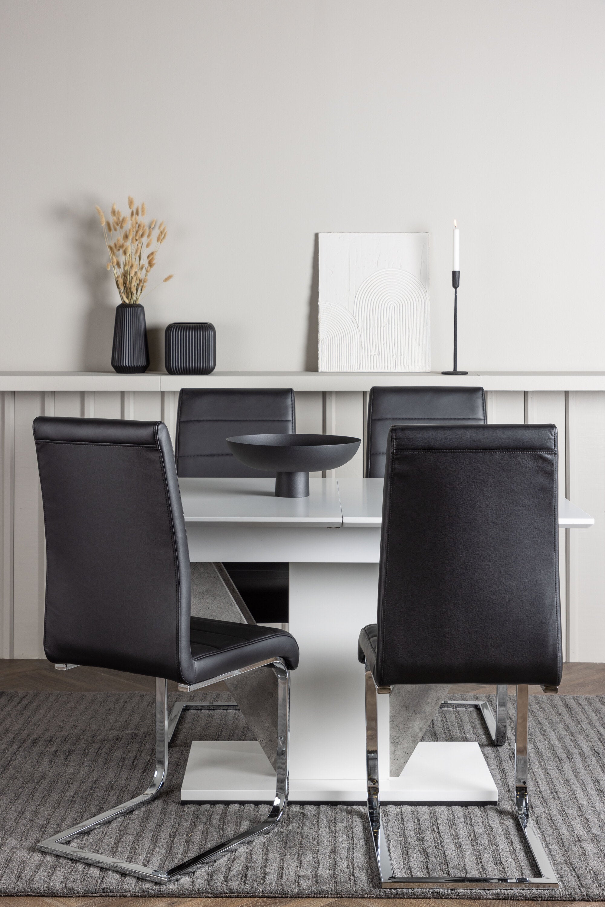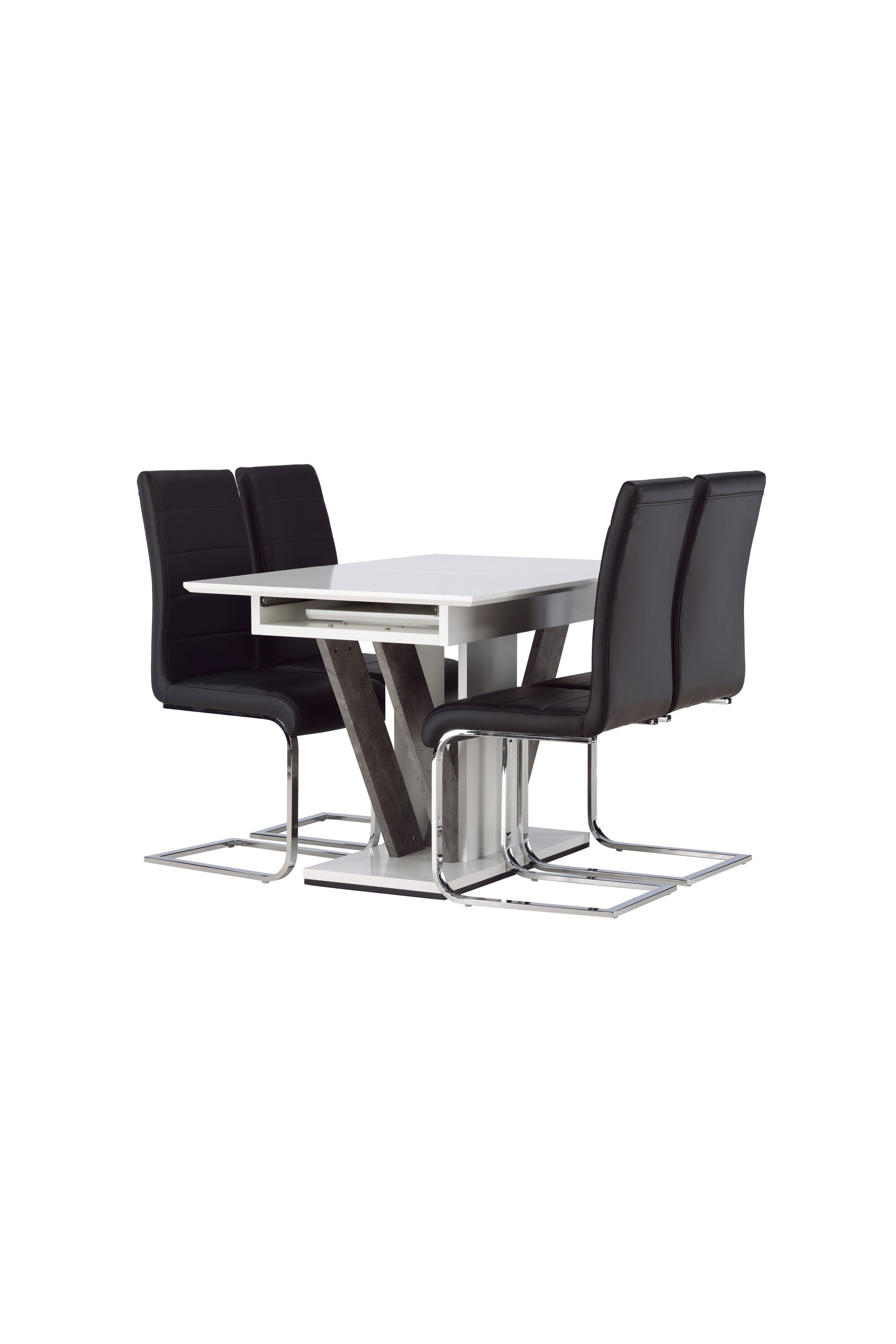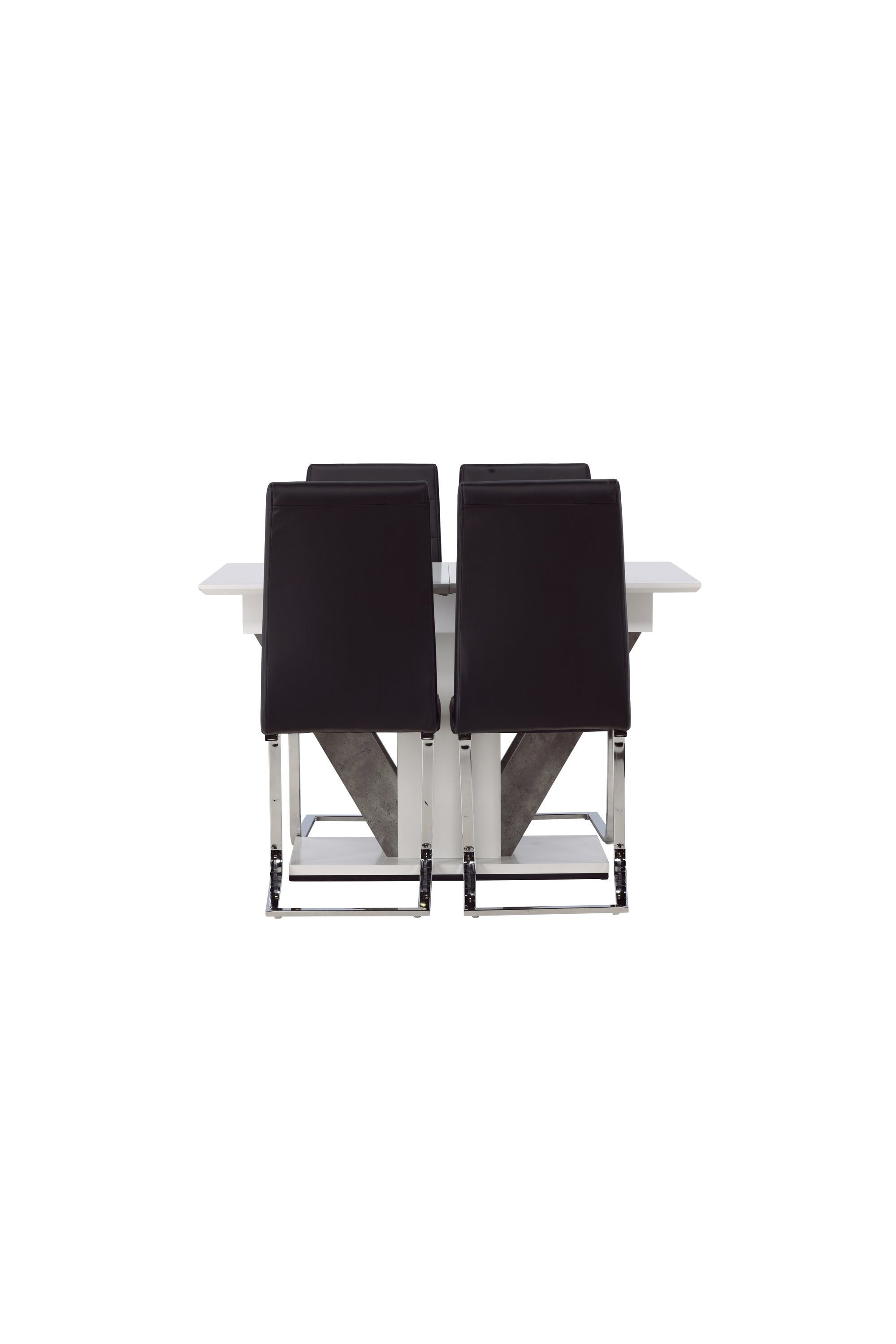 Jídelní stůl Disa 120/160*80 - Bílá / Šedá MDF + Jídelní židle Tempo - Pochromovaná noha / Černá PU _4