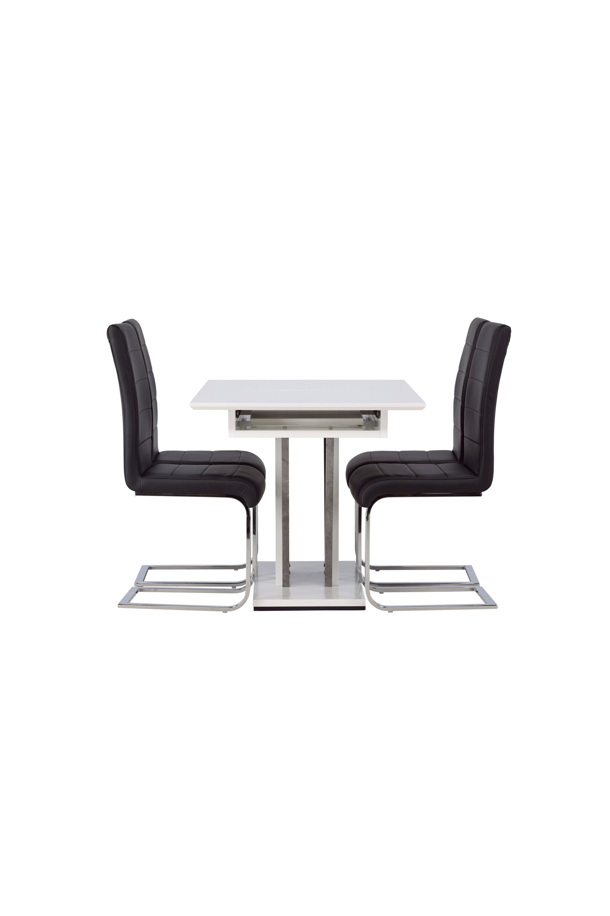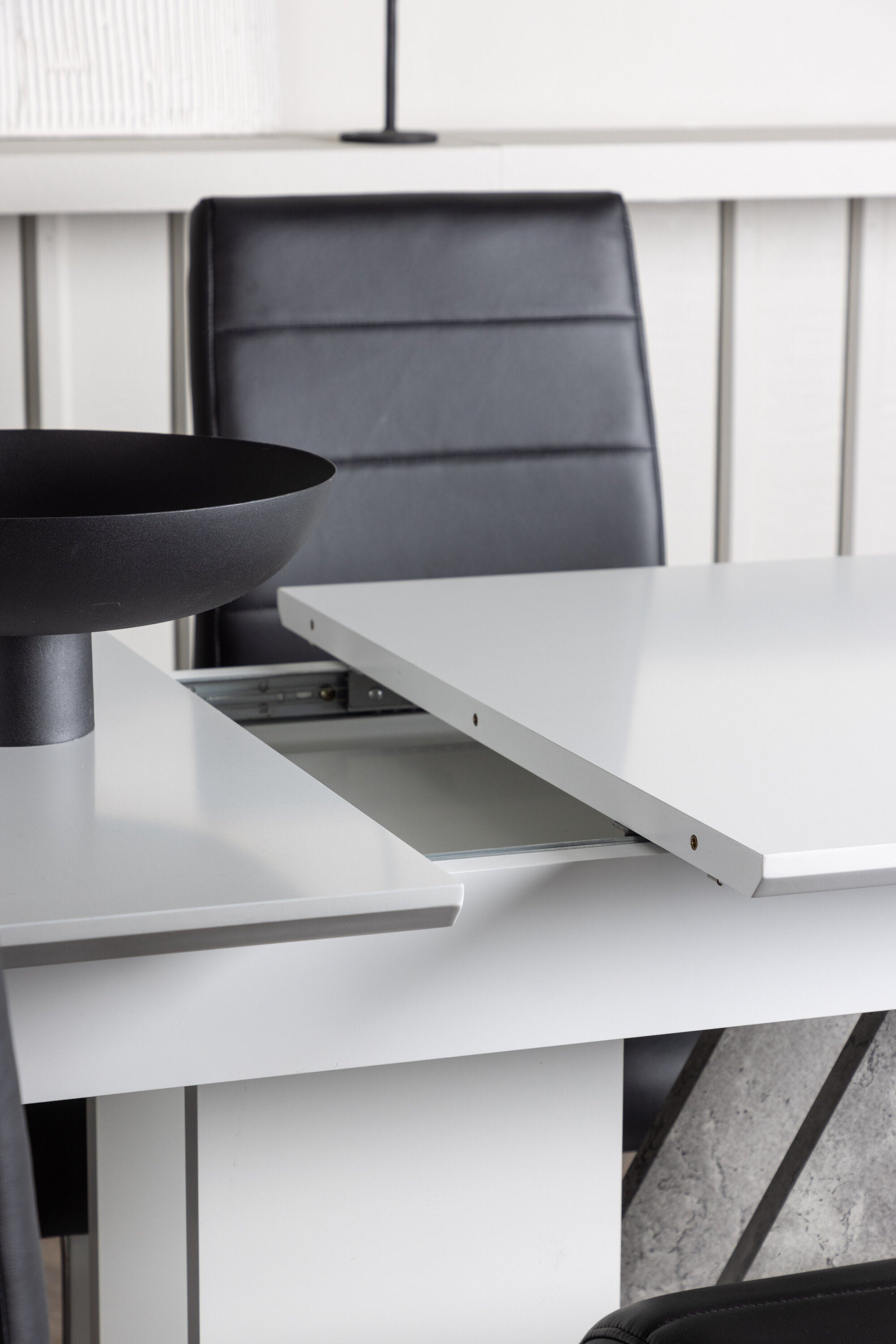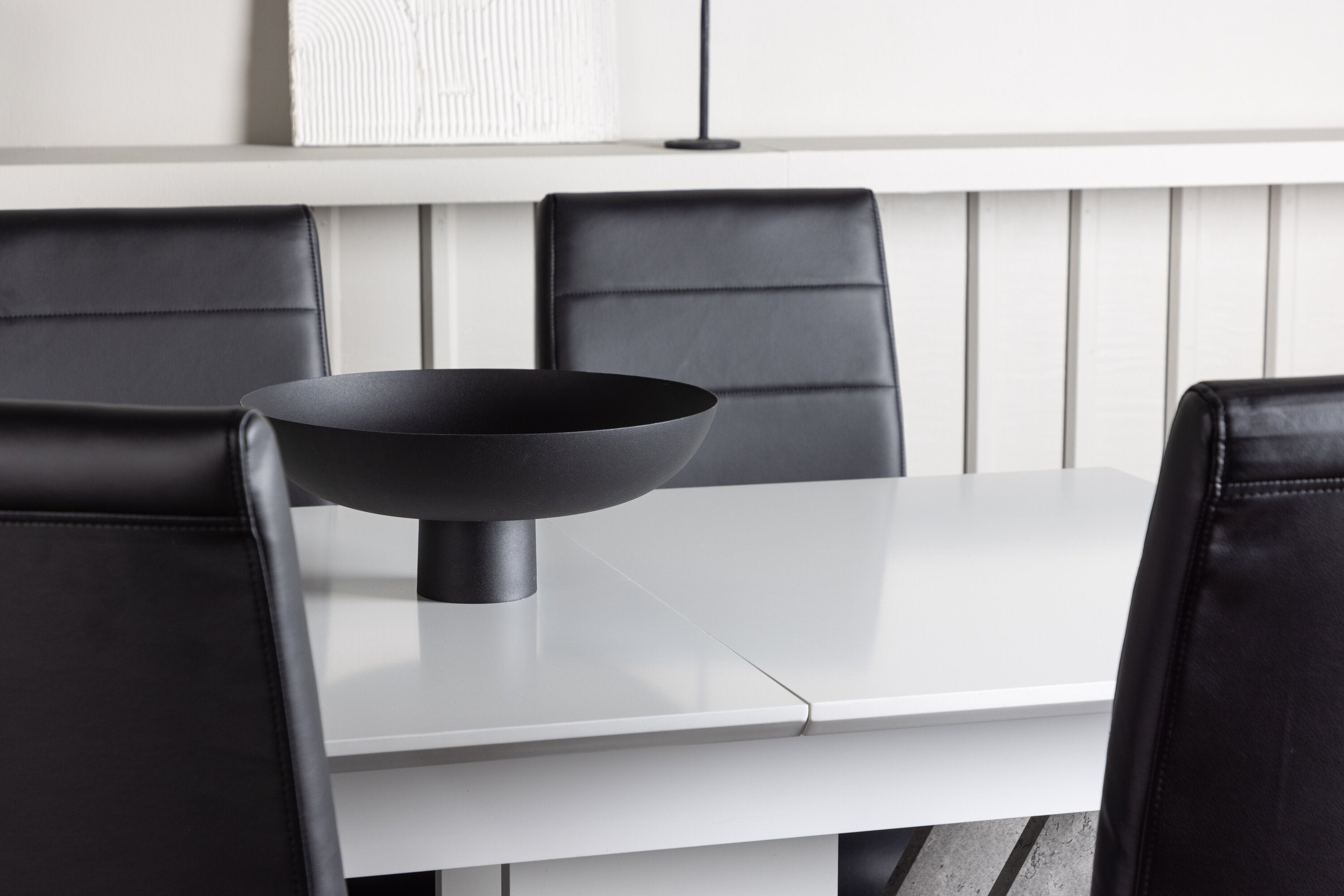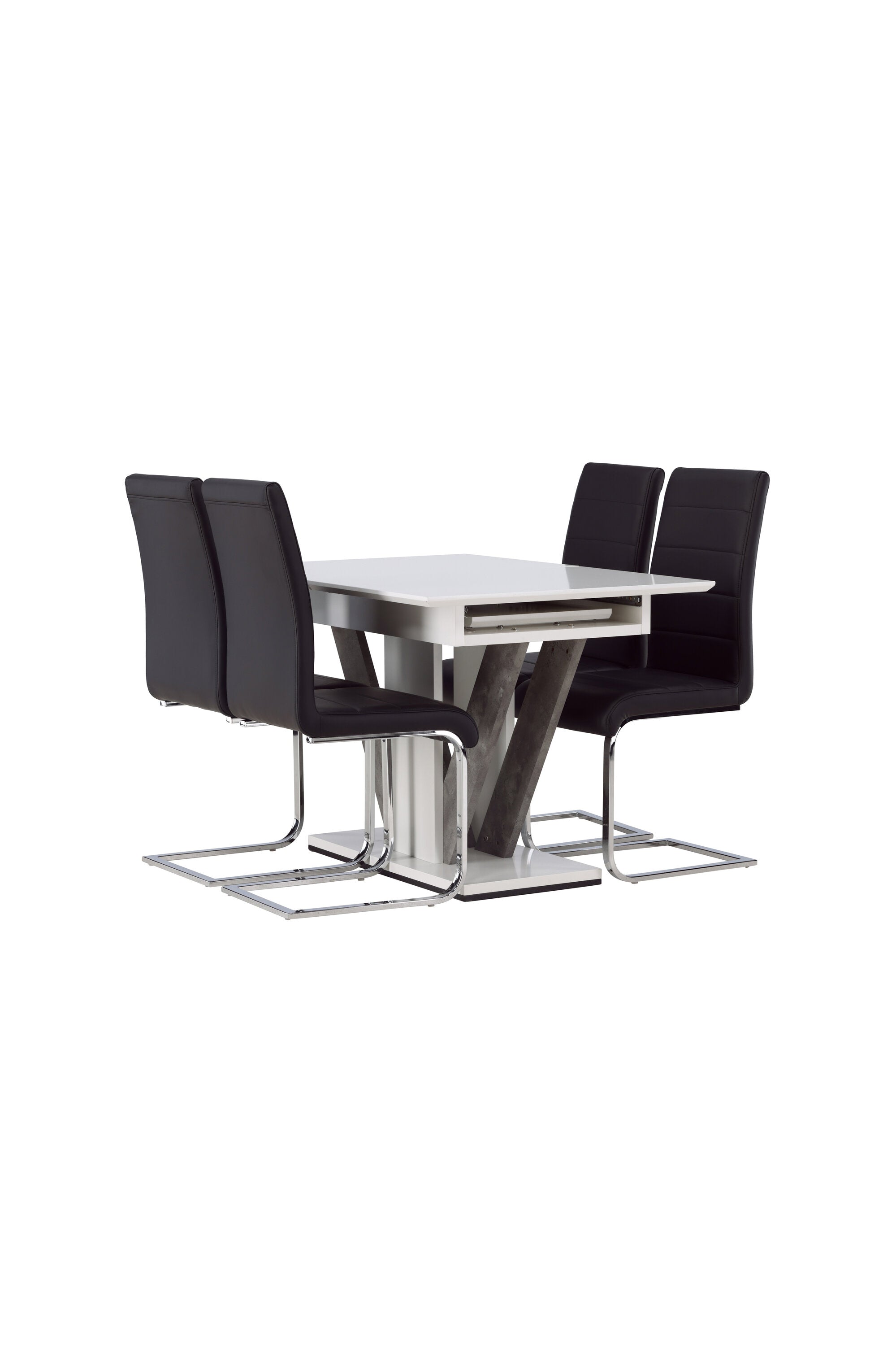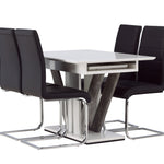 Jídelní stůl Disa 120/160*80 - Bílá / Šedá MDF + Jídelní židle Tempo - Pochromovaná noha / Černá PU _4