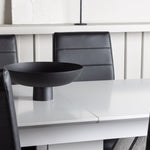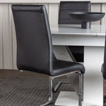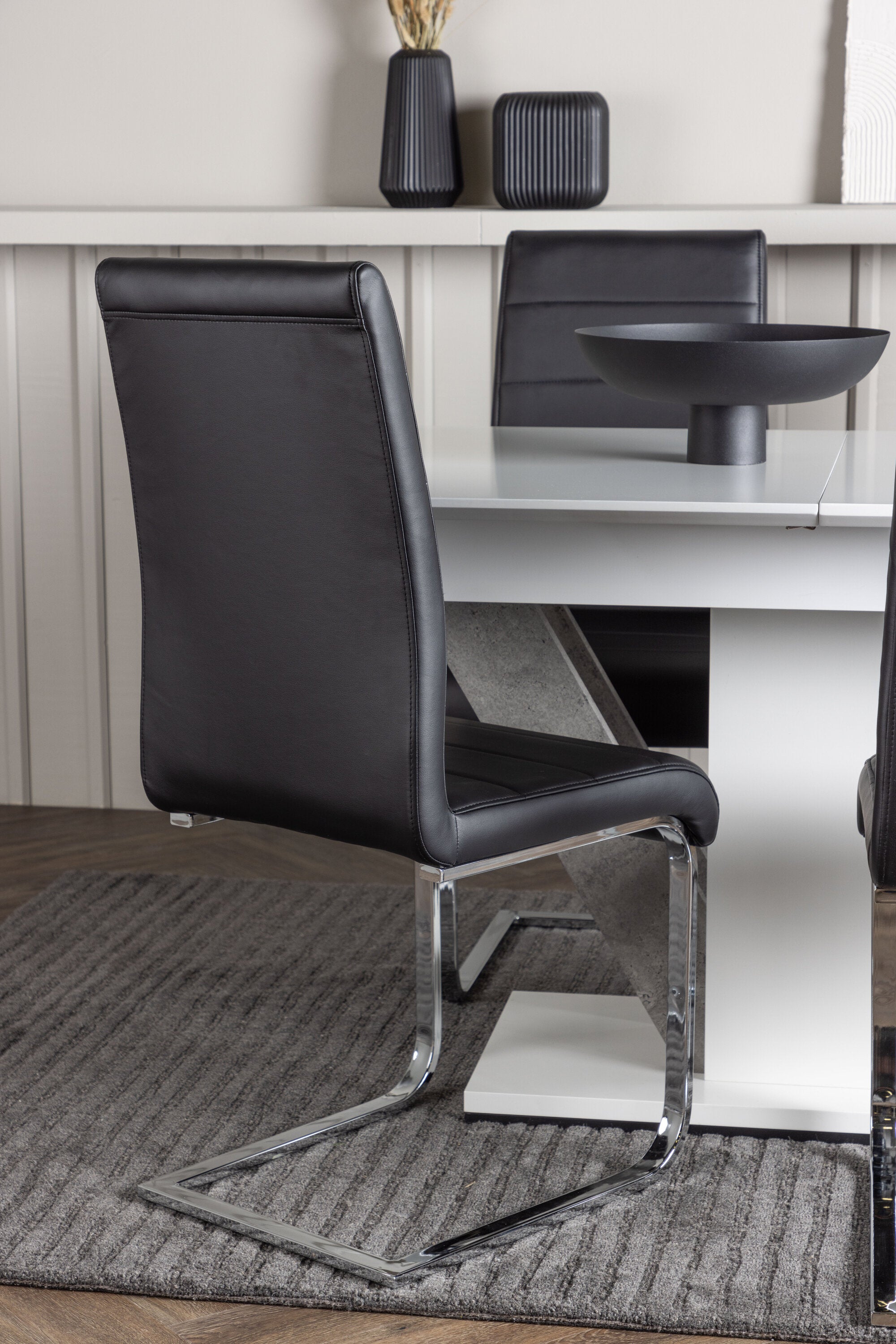 Zde jsou v nádherné kombinaci naše moderní jídelní židle Tempo. Módní černé PU čalounění a chromované nohy židle jsou kombinací stylu a funkčnosti. Dekorativní rám dodává židli jedinečný nádech a vytváří příjemné houpání, které vám umožní vychutnat si pohodlný houpací pohyb během dlouhých večeří.