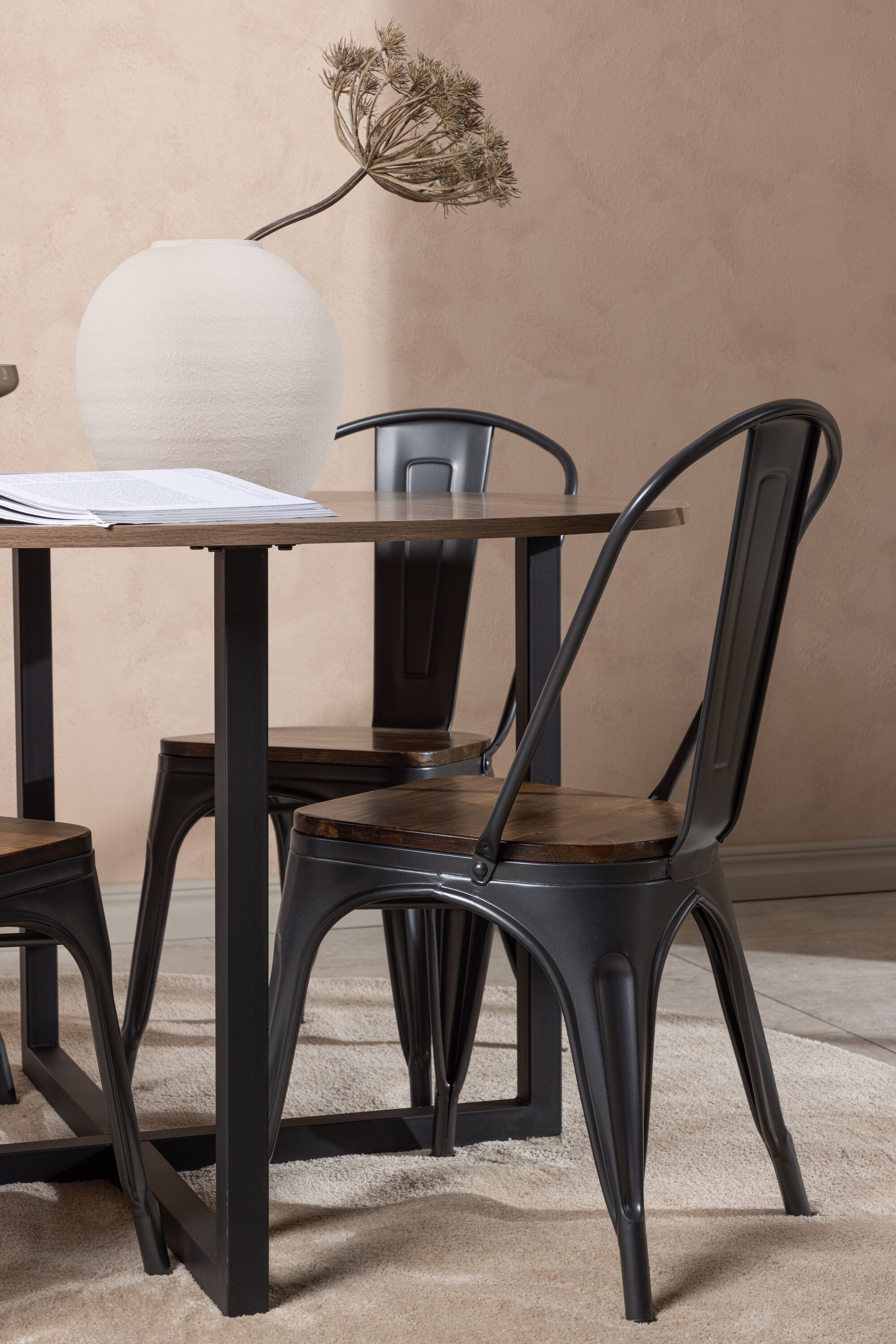 Jídelní stůl Durango - Černá / Ořech MDF + Jídelní židle Tempe - Tmavě šedá / Tmavě hnědá MDF _4