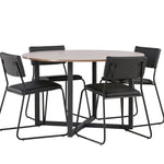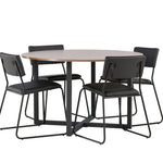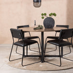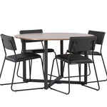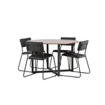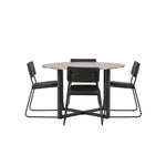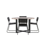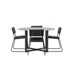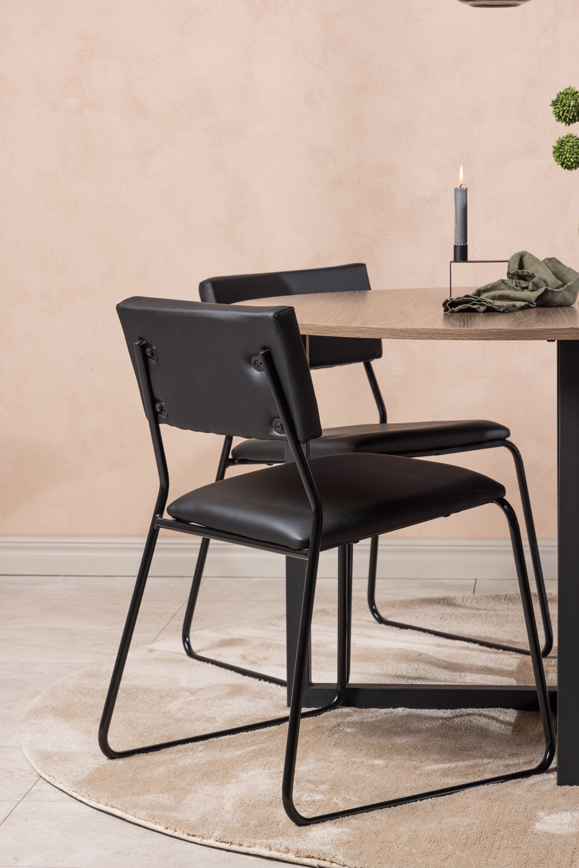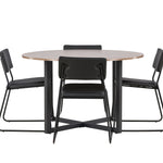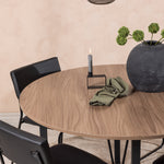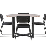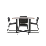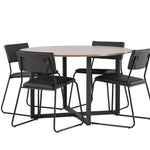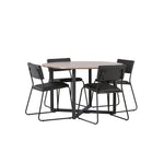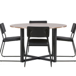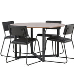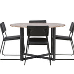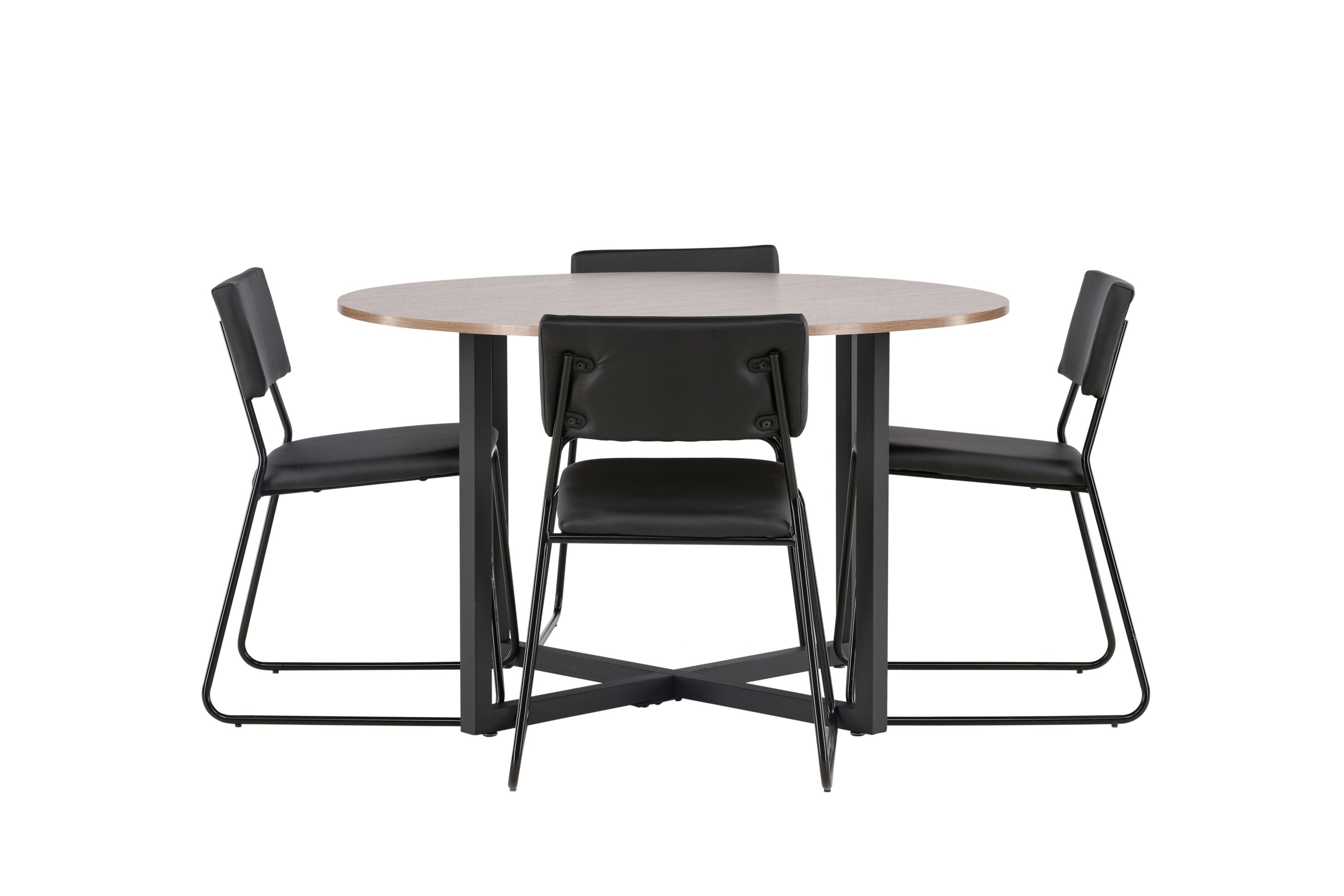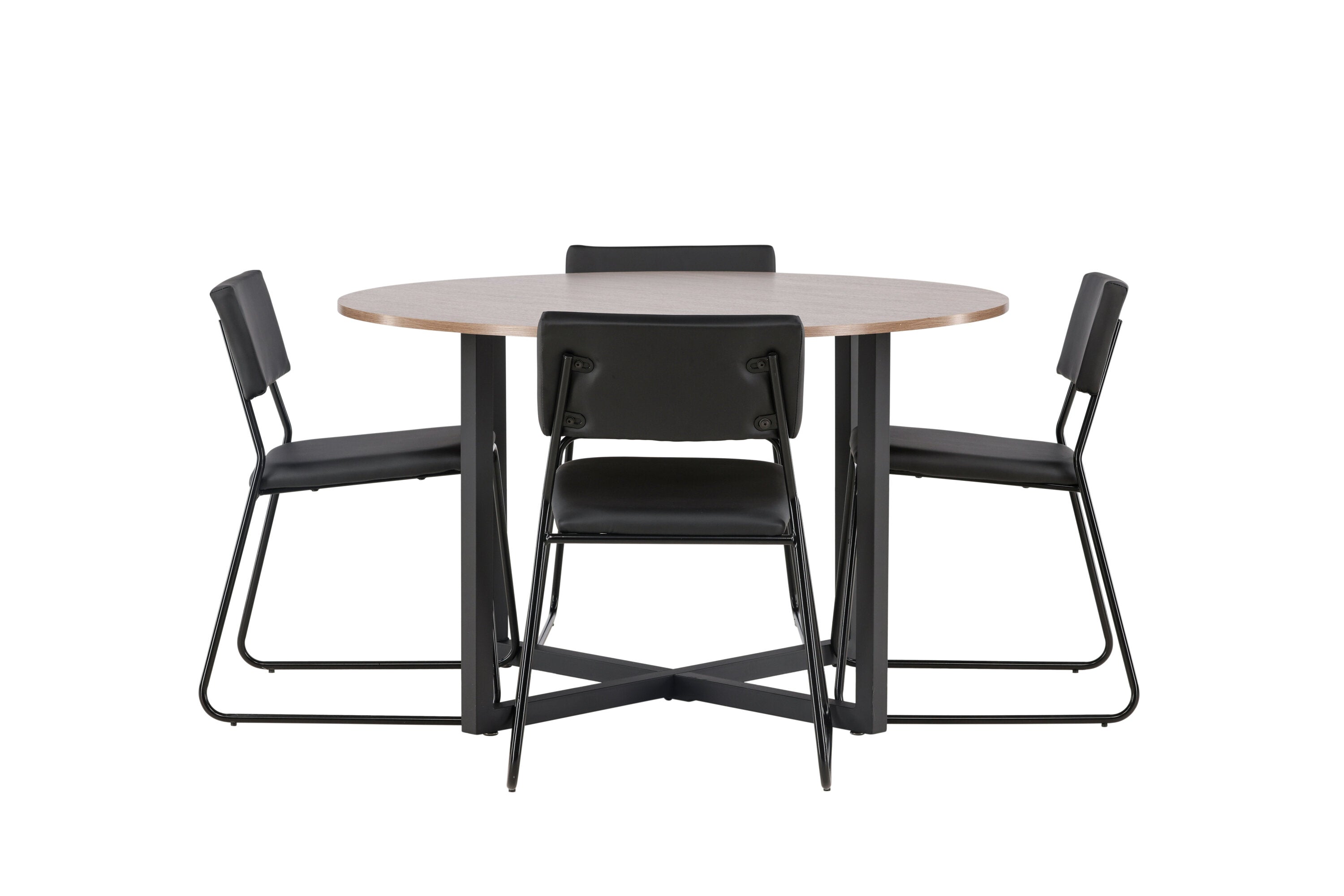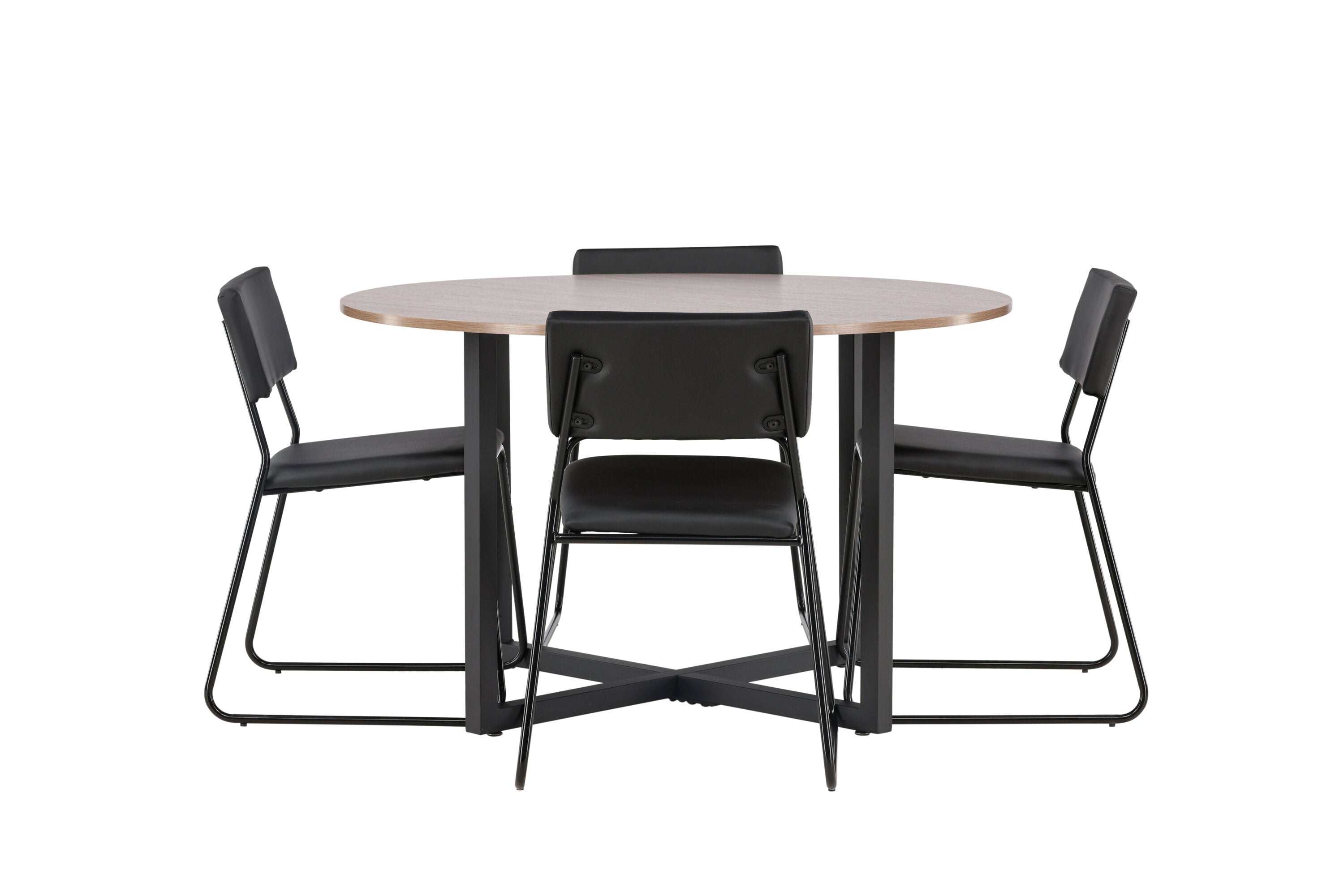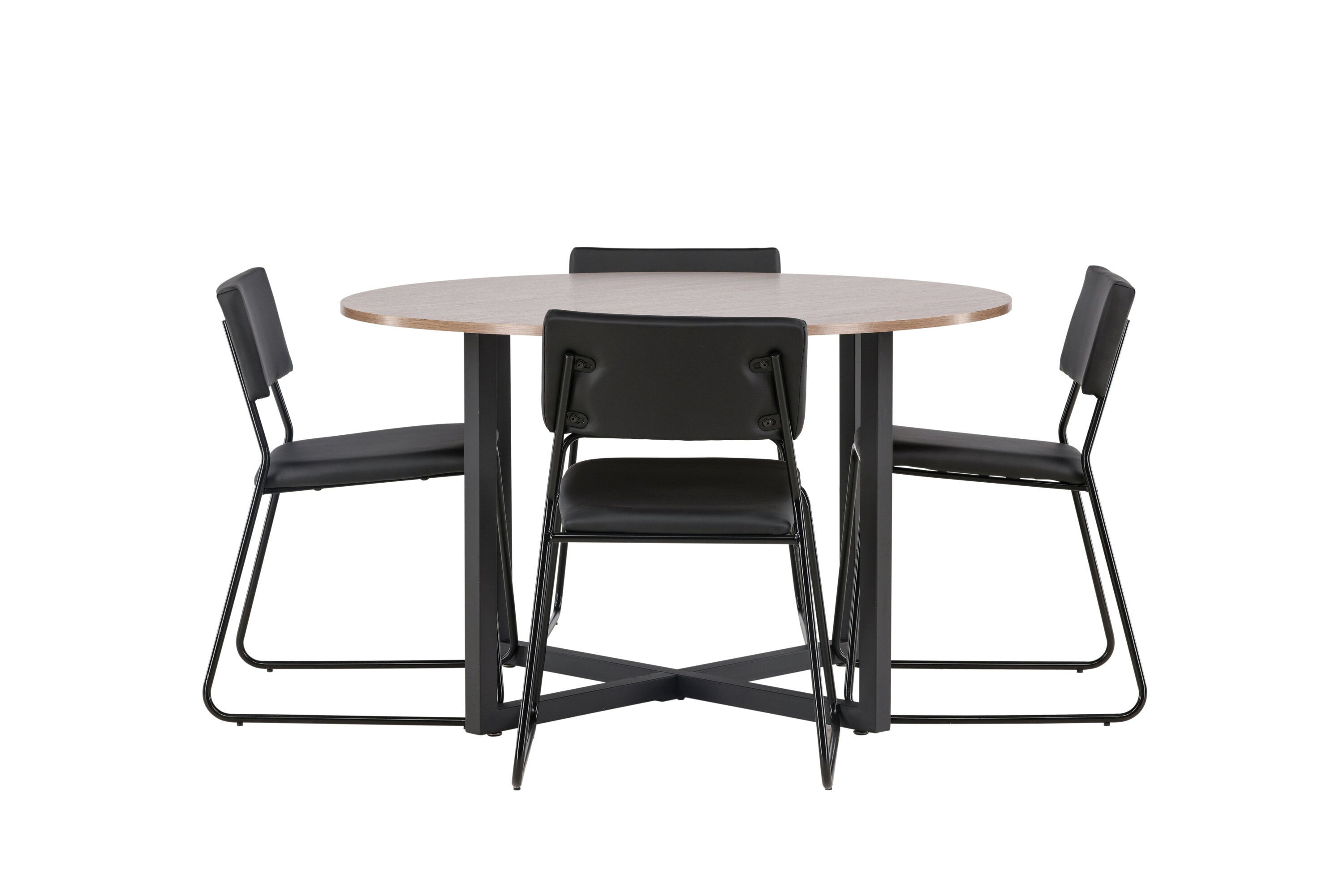 Minimalistický a moderní! Náš kulatý jídelní stůl Durango má desku stolu z MDF v barvě ořechu a rovné nohy stolu z černé oceli, které se na podlaze sbíhají do kříže. Zde společně s našimi černými jídelními židlemi ze série Kenth. Minimalistický, moderní design vytváří vzdušný pocit. Židle má opěradlo a sedák z černé polyuretanové kůže a polyesteru a ozdobné úzké nohy ze železa. Zde získáte dobře promyšlenou jídelní skupinu v módním duchu! Rozměry stolu: 120 cm.