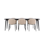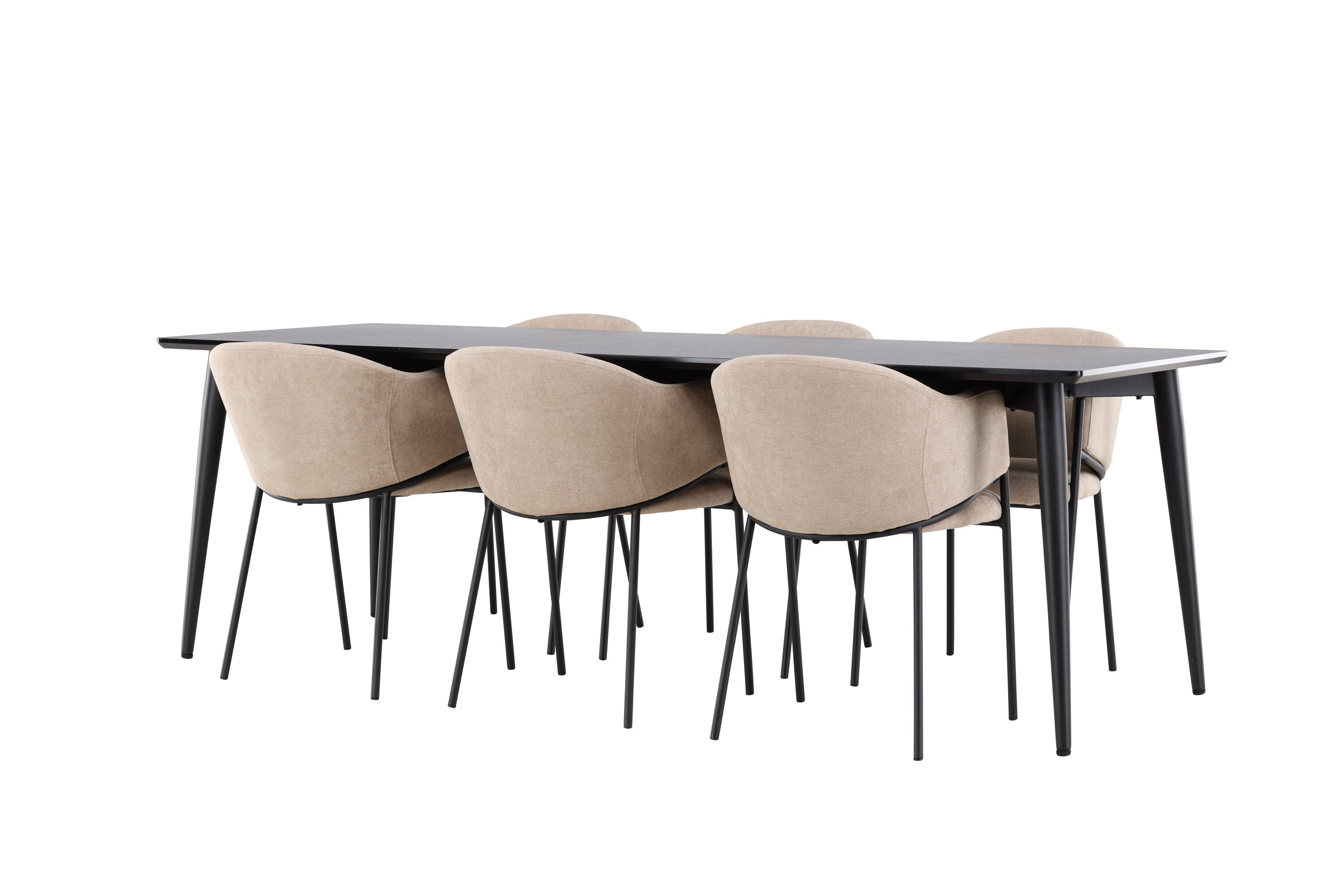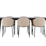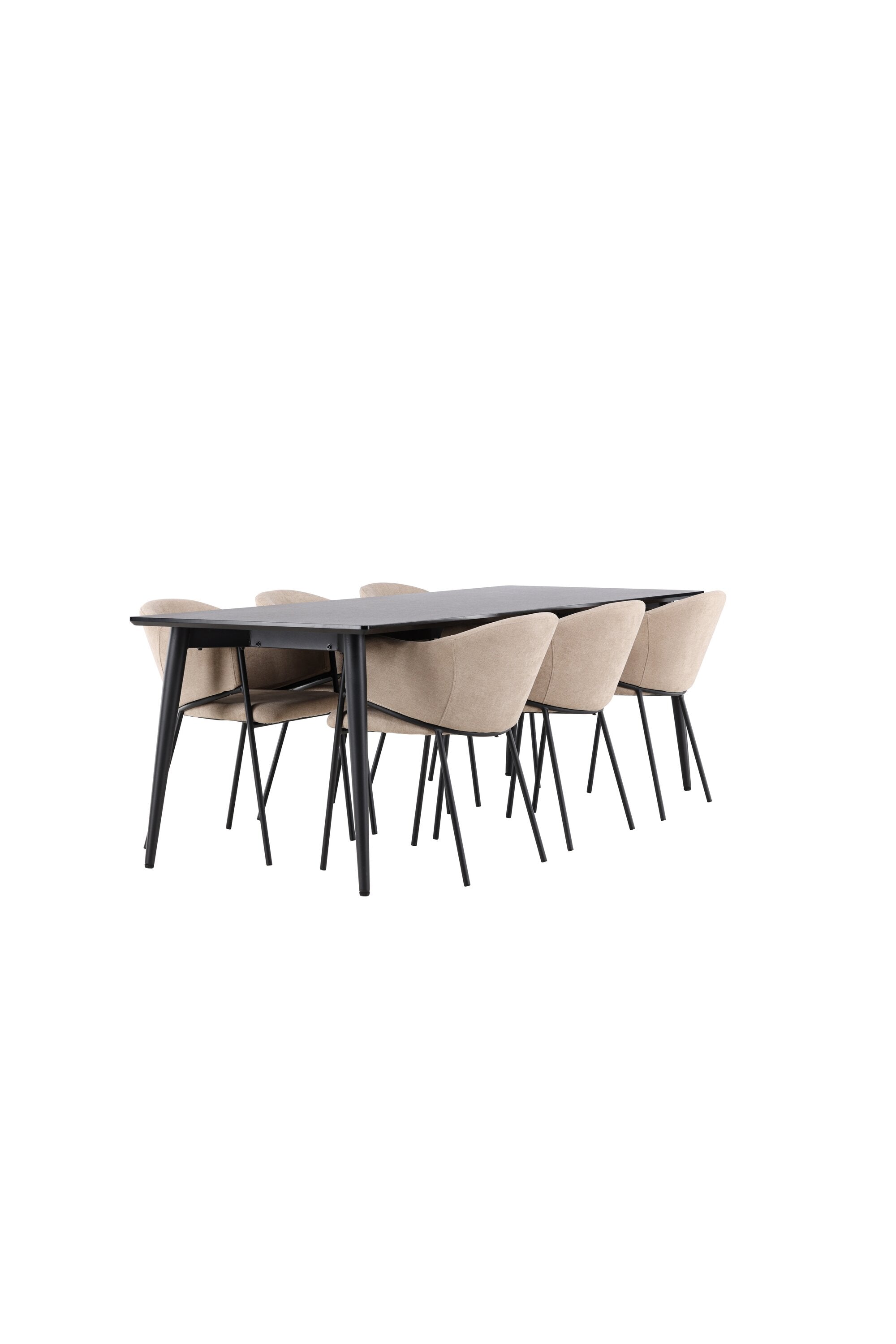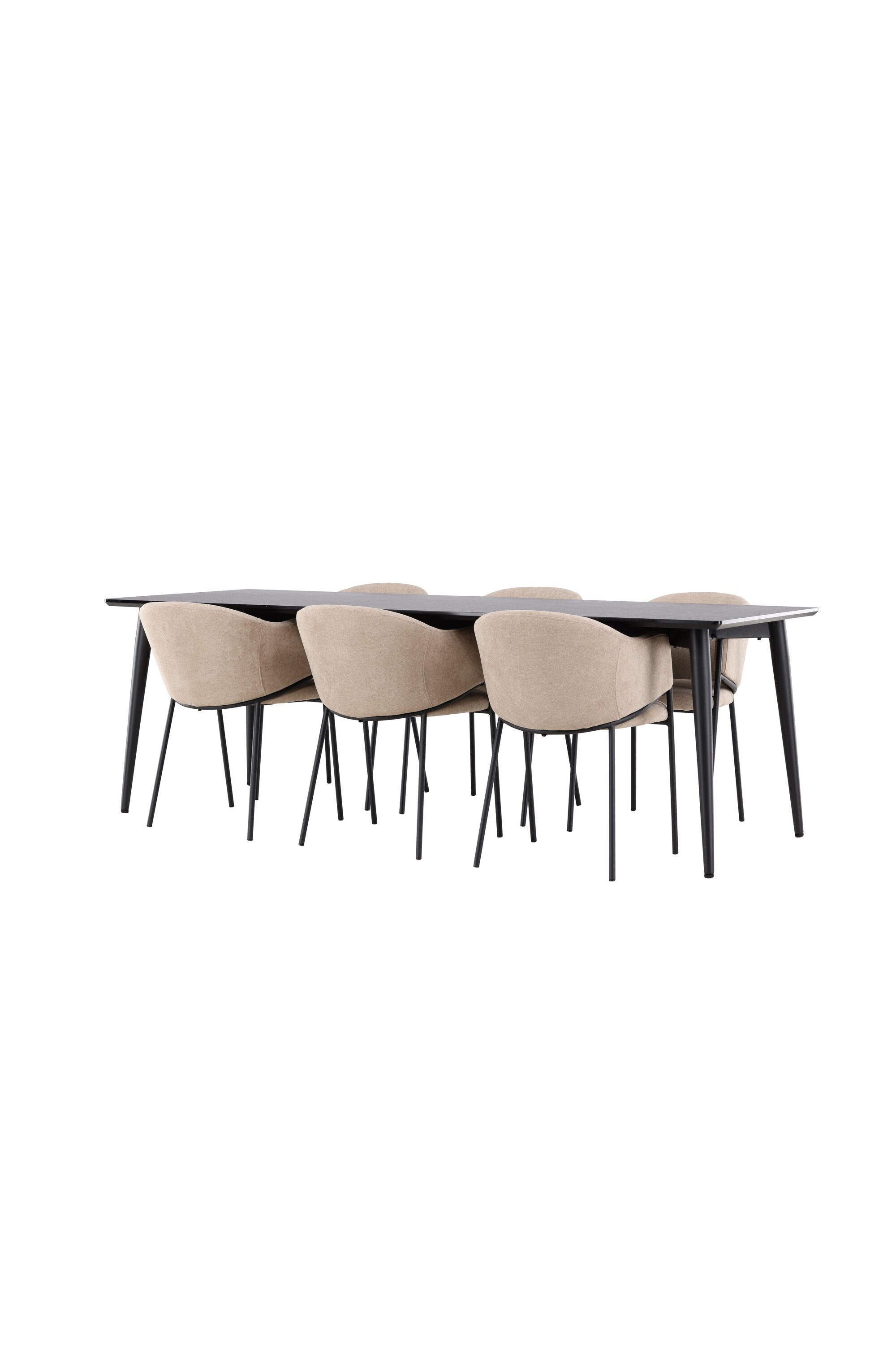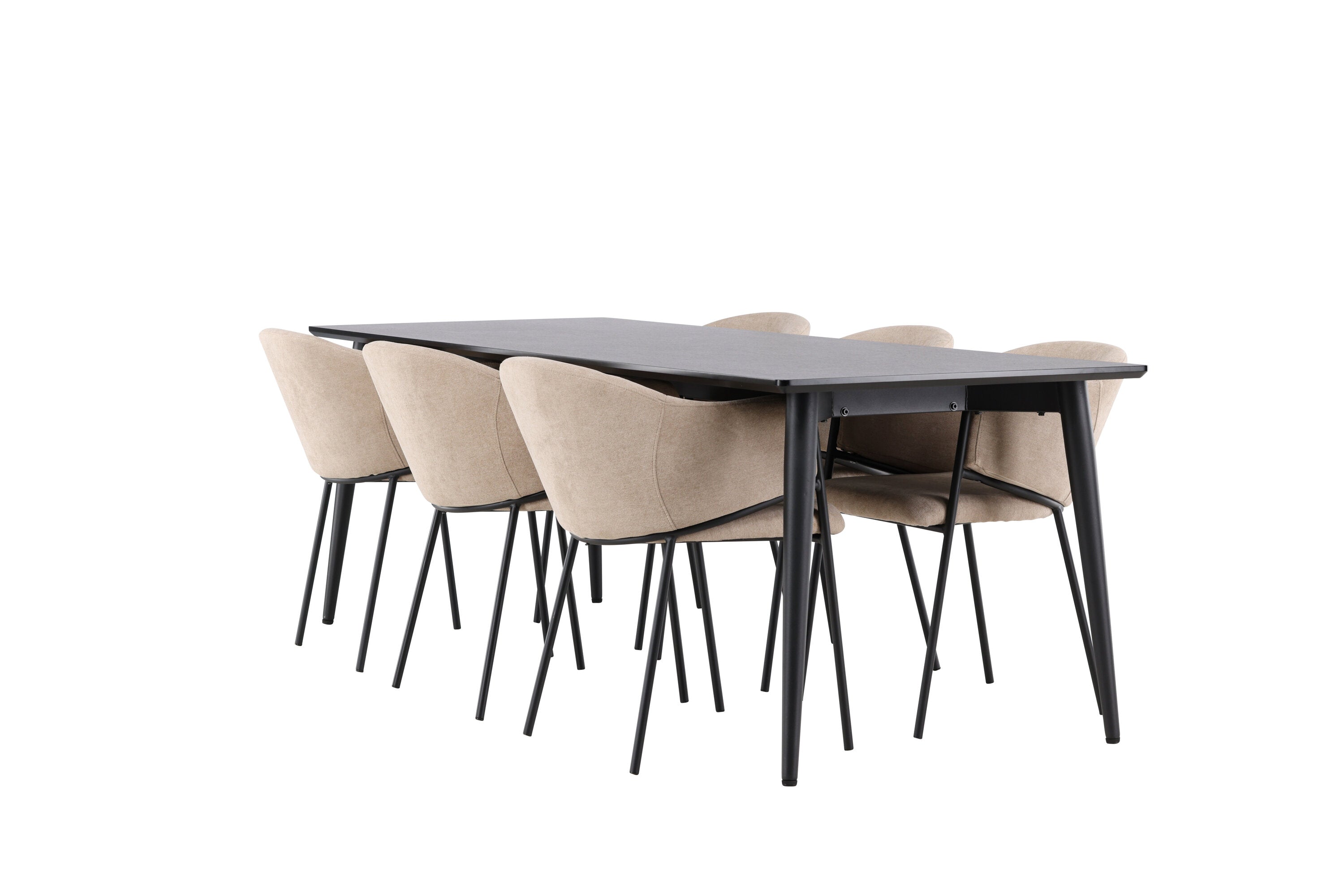 Objevte perfektní jídelní set s jídelní židlí Evelina a jídelním stolem Ellis – kombinaci, která vyzařuje eleganci i funkčnost pro váš domov. Jídelní židle Evelina je nejlepší volbou pro teplý a příjemný jídelní zážitek. Se sedadlem čalouněným polyesterovým lnem v jemné béžové barvě vnáší Evelina do vaší jídelny elegantní a zemitý nádech. Robustní konstrukce dělá z Eveliny spolehlivého společníka pro dlouhá a příjemná jídla. Prozkoumejte Ellis, robustní jídelní stůl, který se stane středobodem vašeho jídelního prostředí. Díky černé barvě dodává Ellis vašemu pokoji elegantní a moderní nádech. Stůl je vyroben s ocelovými nohami a deskou z MDF, což poskytuje dokonalou rovnováhu mezi robustností a stylem. S velkorysými rozměry 230x85 cm je stůl Ellis jako stvořený pro společenské večeře a setkání s přáteli a rodinou. Dopřejte své jídelně dokonalý výtah s jídelní židlí Evelina a jídelním stolem Ellis. Tato jídelní souprava vytváří trendy a stylovou atmosféru a zanechává trvalý dojem. Tato kombinace je ideální jak pro každodenní večeři, tak pro slavnostní příležitosti, nabízí rovnováhu mezi nadčasovým designem a moderními detaily, díky čemuž je perfektní volbou pro všechna vaše společenská setkání.