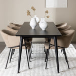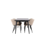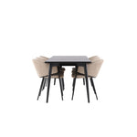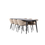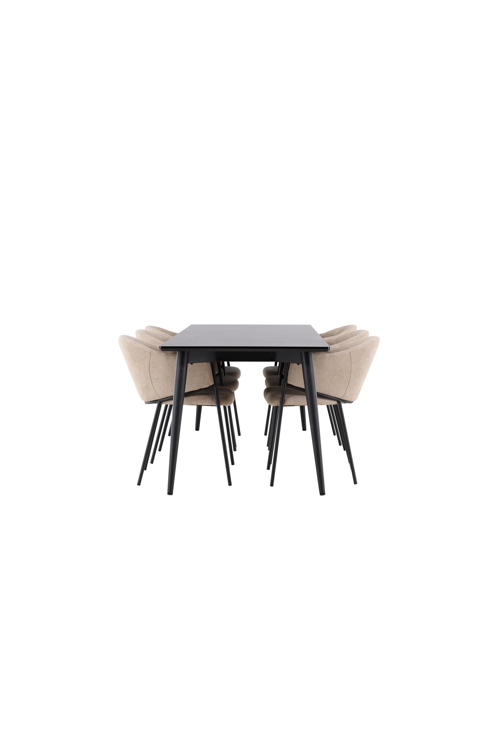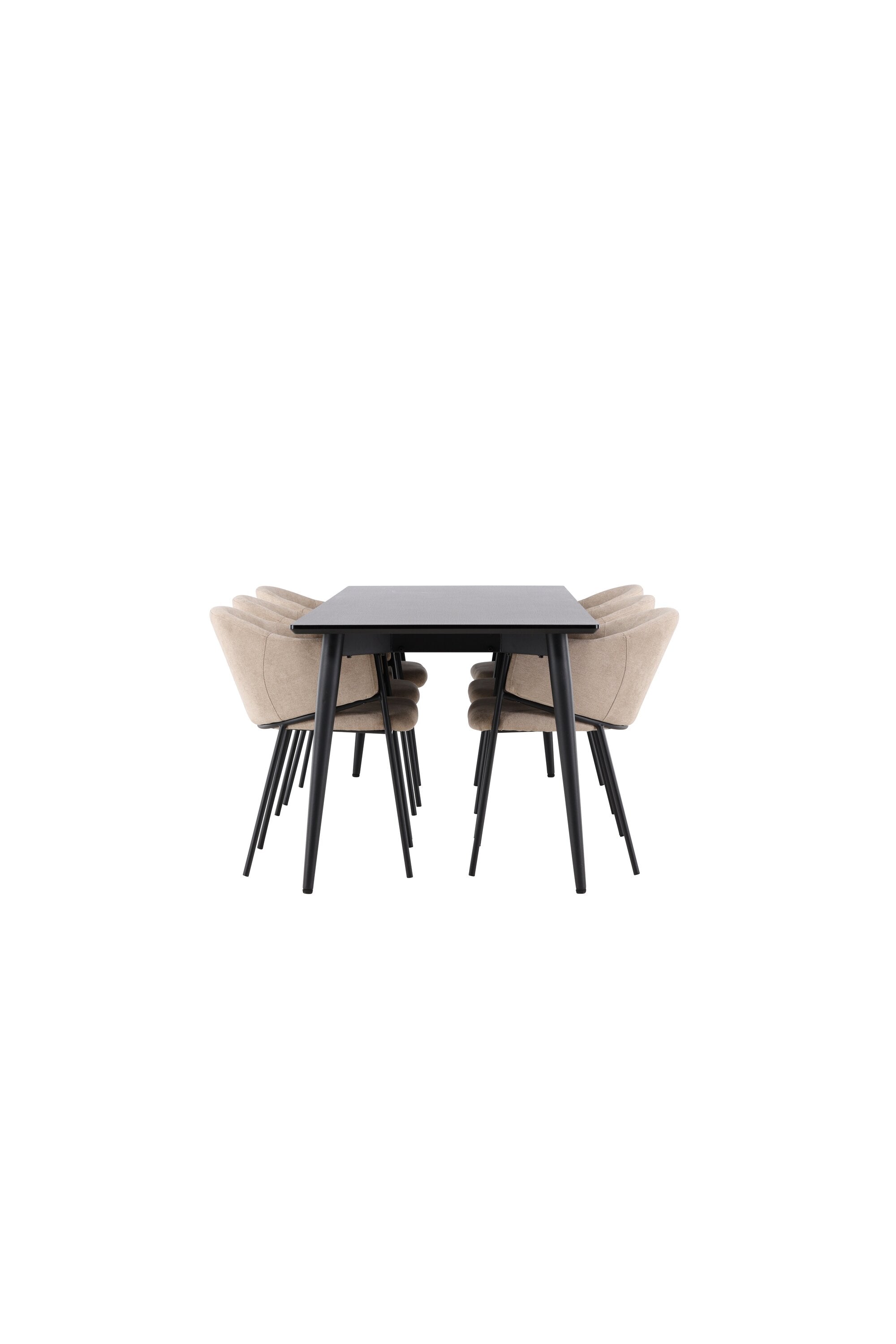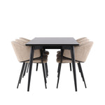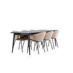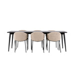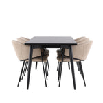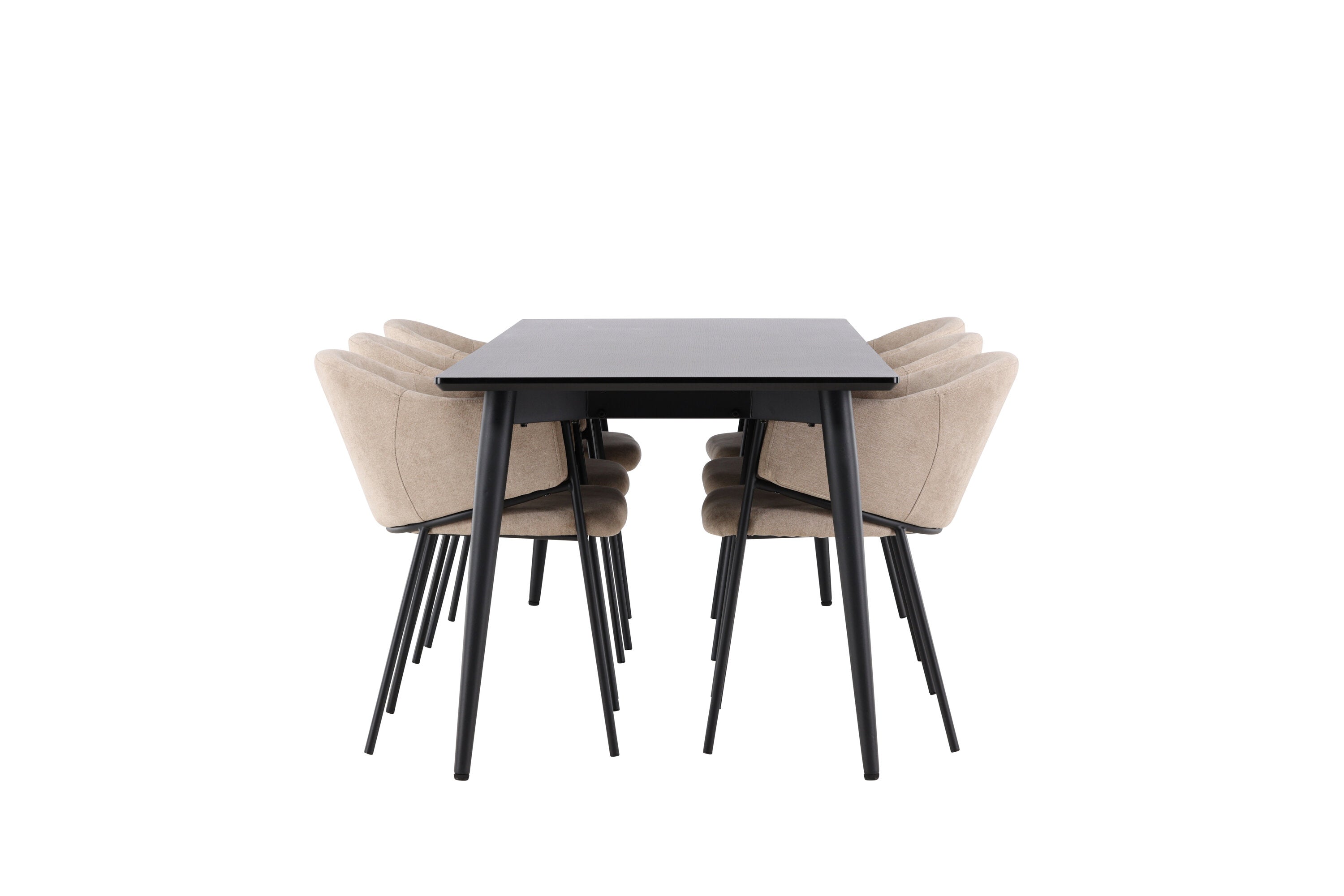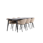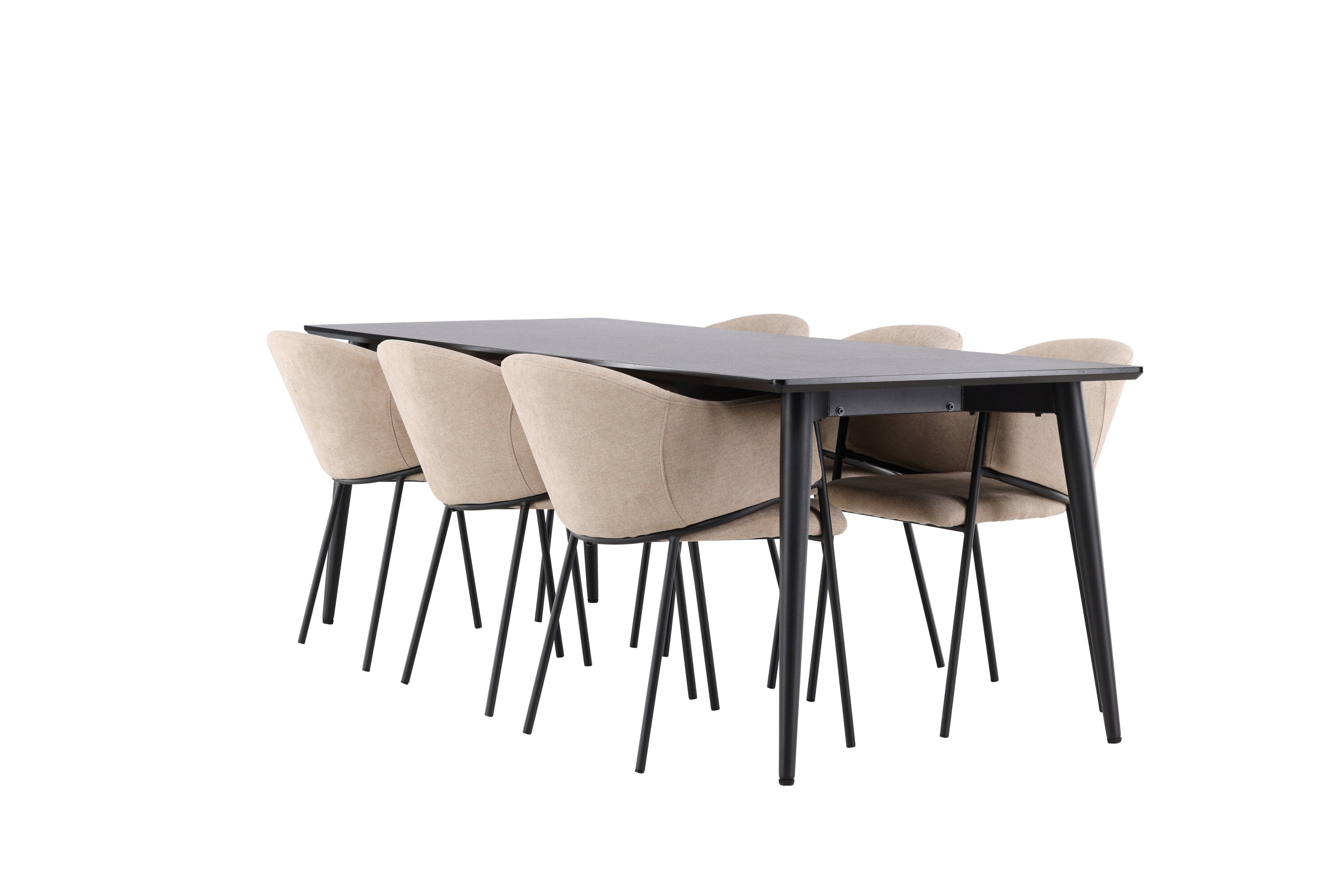 Objevte perfektní jídelní set s jídelní židlí Evelina a jídelním stolem Ellis – kombinaci, která vyzařuje eleganci i funkčnost pro váš domov. Jídelní židle Evelina je nejlepší volbou pro teplý a příjemný jídelní zážitek. Se sedadlem čalouněným polyesterovým lnem v jemné béžové barvě vnáší Evelina do vaší jídelny elegantní a zemitý nádech. Robustní konstrukce dělá z Eveliny spolehlivého společníka pro dlouhá a příjemná jídla. Prozkoumejte Ellis, robustní jídelní stůl, který se stane středobodem vašeho jídelního prostředí. Díky černé barvě dodává Ellis vašemu pokoji elegantní a moderní nádech. Stůl je vyroben s ocelovými nohami a deskou z MDF, což poskytuje dokonalou rovnováhu mezi robustností a stylem. S velkorysými rozměry 230x85 cm je stůl Ellis jako stvořený pro společenské večeře a setkání s přáteli a rodinou. Dopřejte své jídelně dokonalý výtah s jídelní židlí Evelina a jídelním stolem Ellis. Tato jídelní souprava vytváří trendy a stylovou atmosféru a zanechává trvalý dojem. Tato kombinace je ideální jak pro každodenní večeři, tak pro slavnostní příležitosti, nabízí rovnováhu mezi nadčasovým designem a moderními detaily, díky čemuž je perfektní volbou pro všechna vaše společenská setkání.