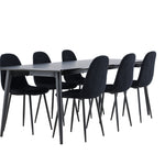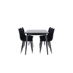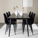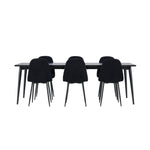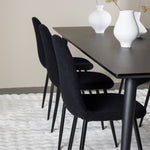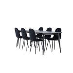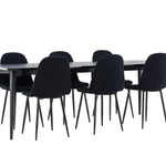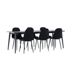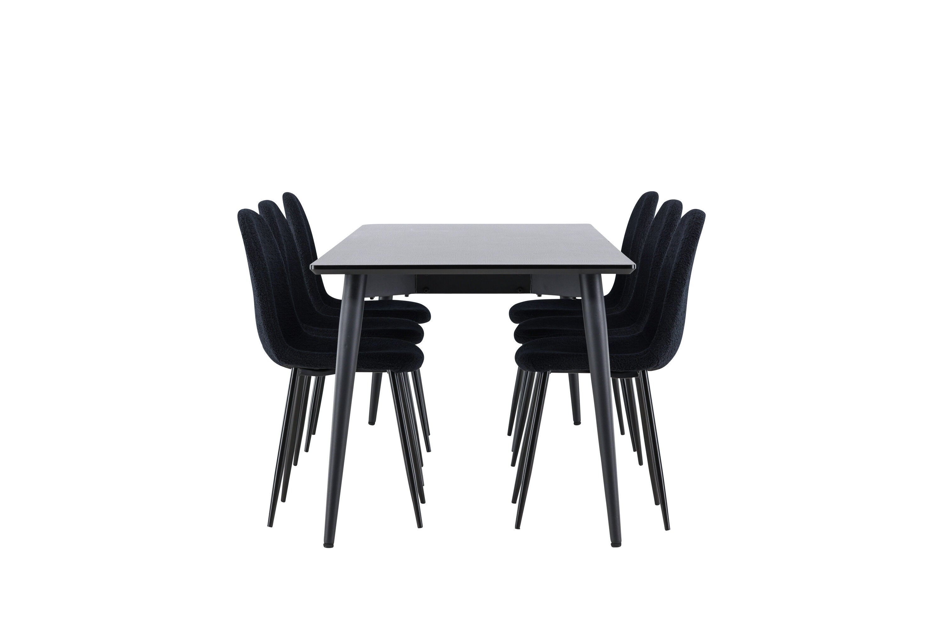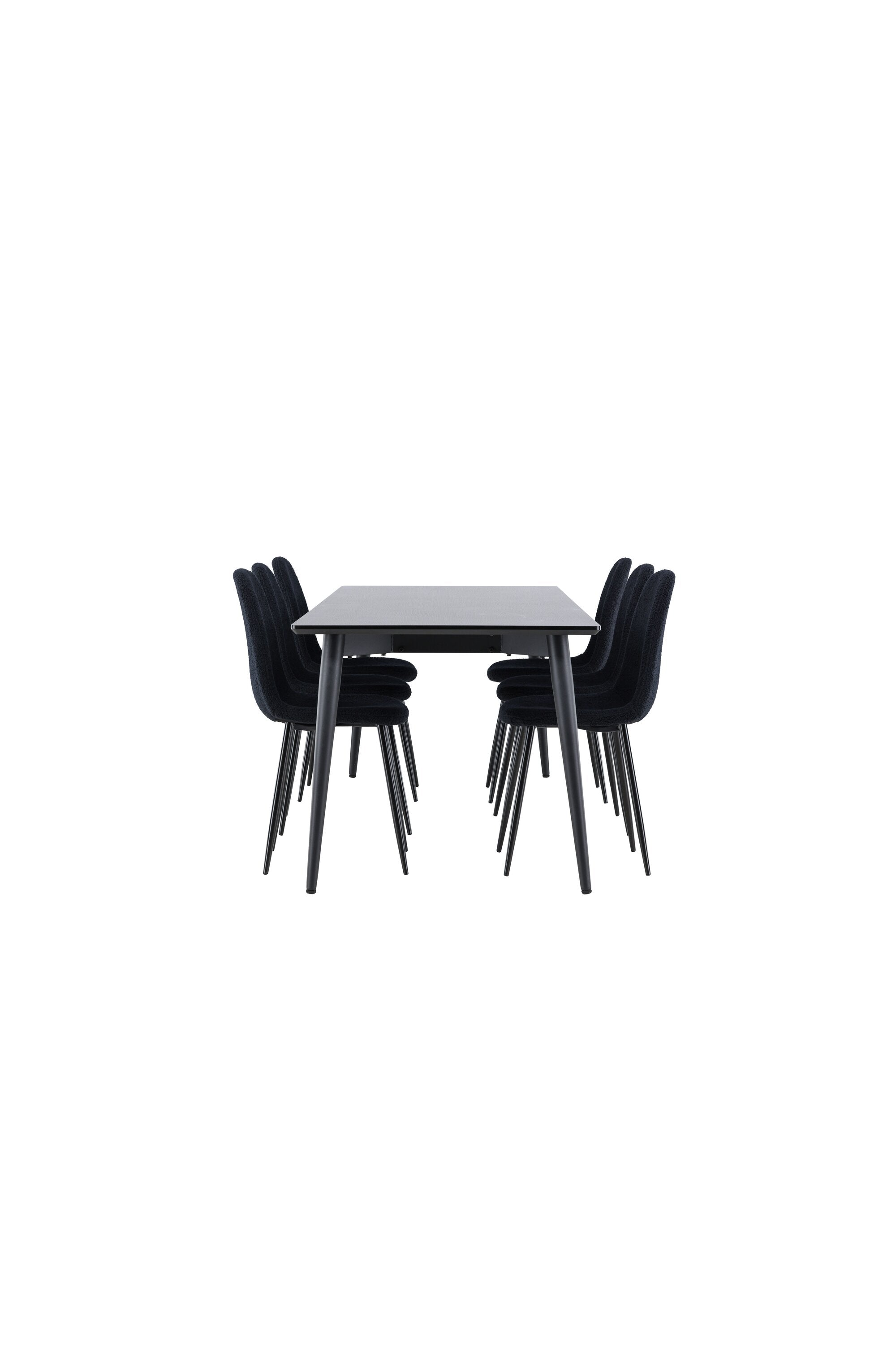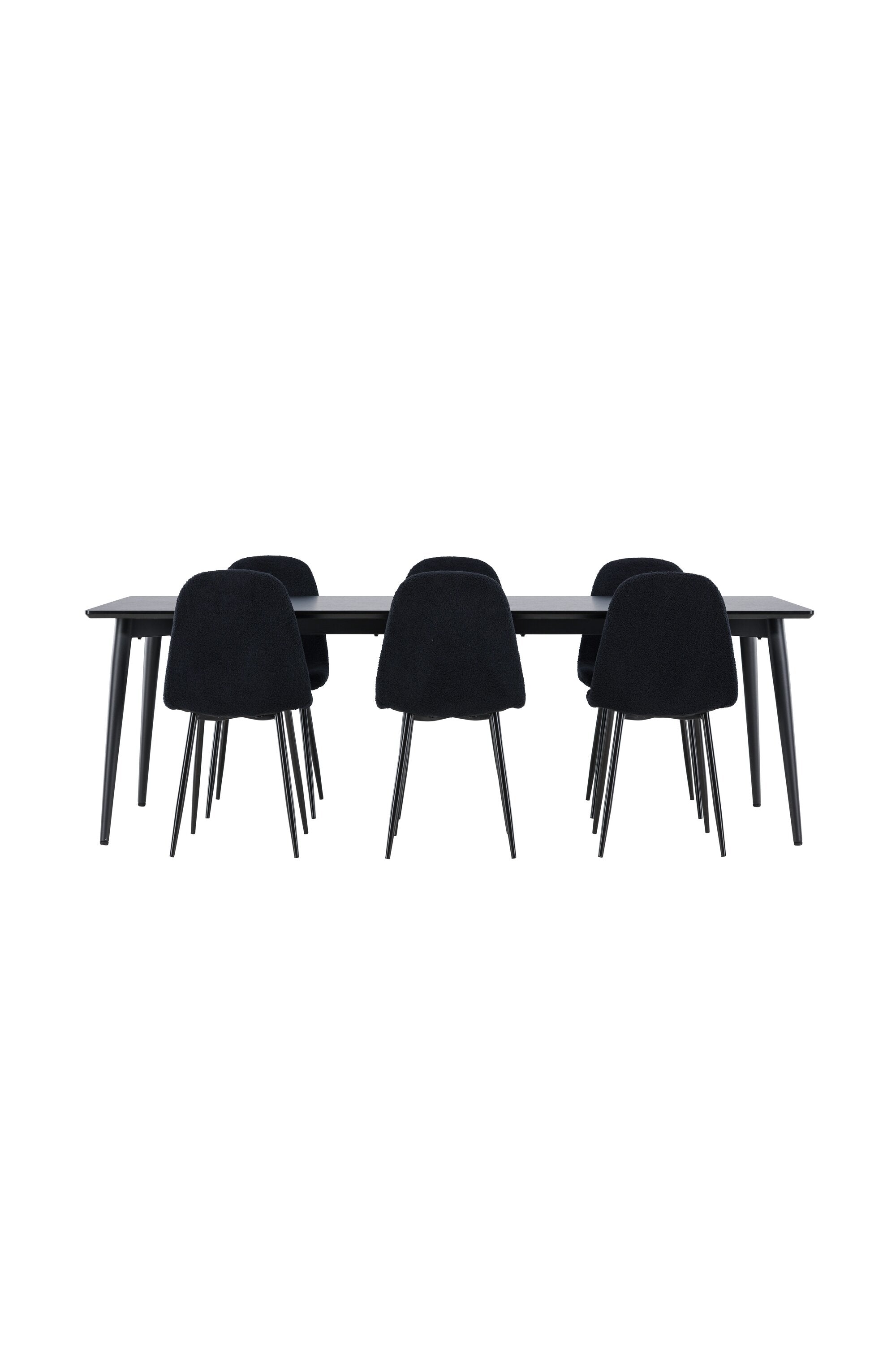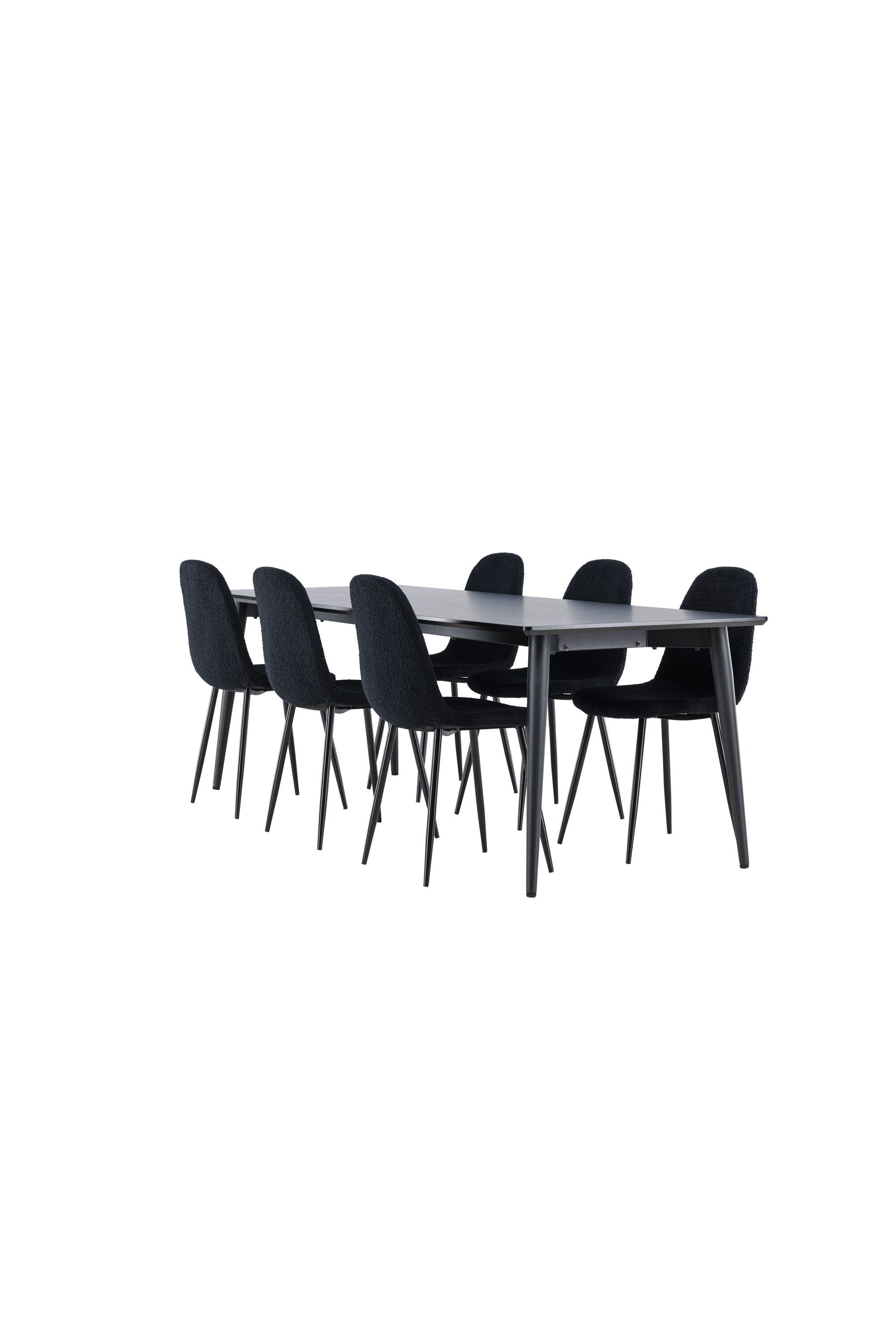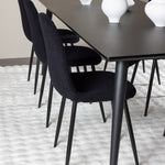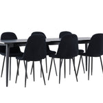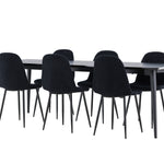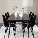 Objevte dokonalý jídelní set, který kombinuje moderní eleganci a robustnost s jídelní židlí Polar a jídelním stolem Ellis. Společně vytvářejí stylovou a příjemnou atmosféru pro všechna vaše jídla a setkání. Židle má certifikaci FSC® (FSC®C177288), což znamená, že se skládá ze dřeva z odpovědného lesnictví, lesnictví, které bere ohled na lidi a životní prostředí. Jídelní židle Polar je dokonalou kombinací moderní elegance a jednoduchosti pro vaše stolování. Polar je nejlepší volbou, která dodá vaší jídelně stylový a moderní nádech. Tmavě černá barva křesla a polyesterový plyšový materiál poskytují exkluzivní pocit a nabízejí pohodlné sezení na všech vašich večeřích a setkáních. Jeho moderní design a čisté linie poskytují nadčasovou estetiku, která doplňuje všechny styly interiéru. Nohy jídelní židle Polar jsou vyrobeny z černé oceli, poskytují pevnou a robustní konstrukci a zároveň přispívají k jejímu elegantnímu vzhledu. Díky své jednoduchosti a všestrannosti bude Polar vítaným doplňkem vašeho domova. Vylepšete svou jídelnu jídelní židli Polar - pohodlnou, moderní a stylovou židli, která je ideální pro každodenní použití a zvláštní příležitosti. Prozkoumejte Ellis – robustní jídelní stůl, který se stane centrem vašeho jídelního prostředí. Díky černé barvě dodává Ellis vašemu pokoji elegantní a moderní nádech. Stůl je vyroben s ocelovými nohami a deskou z MDF, což poskytuje dokonalou rovnováhu mezi robustností a stylem. Díky velkorysým rozměrům 230x85 cm je stůl Ellis perfektní pro společenské večeře a setkání s přáteli a rodinou. Jeho robustní konstrukce a elegantní design z něj činí spolehlivý kus nábytku vhodný pro všechny příležitosti. Ať už jej použijete pro rodinnou večeři nebo pořádání večírku, Ellis vytvoří trendy a stylovou atmosféru u vás doma. Vylepšete svůj jídelní kout elegantním a robustním jídelním stolem Ellis.