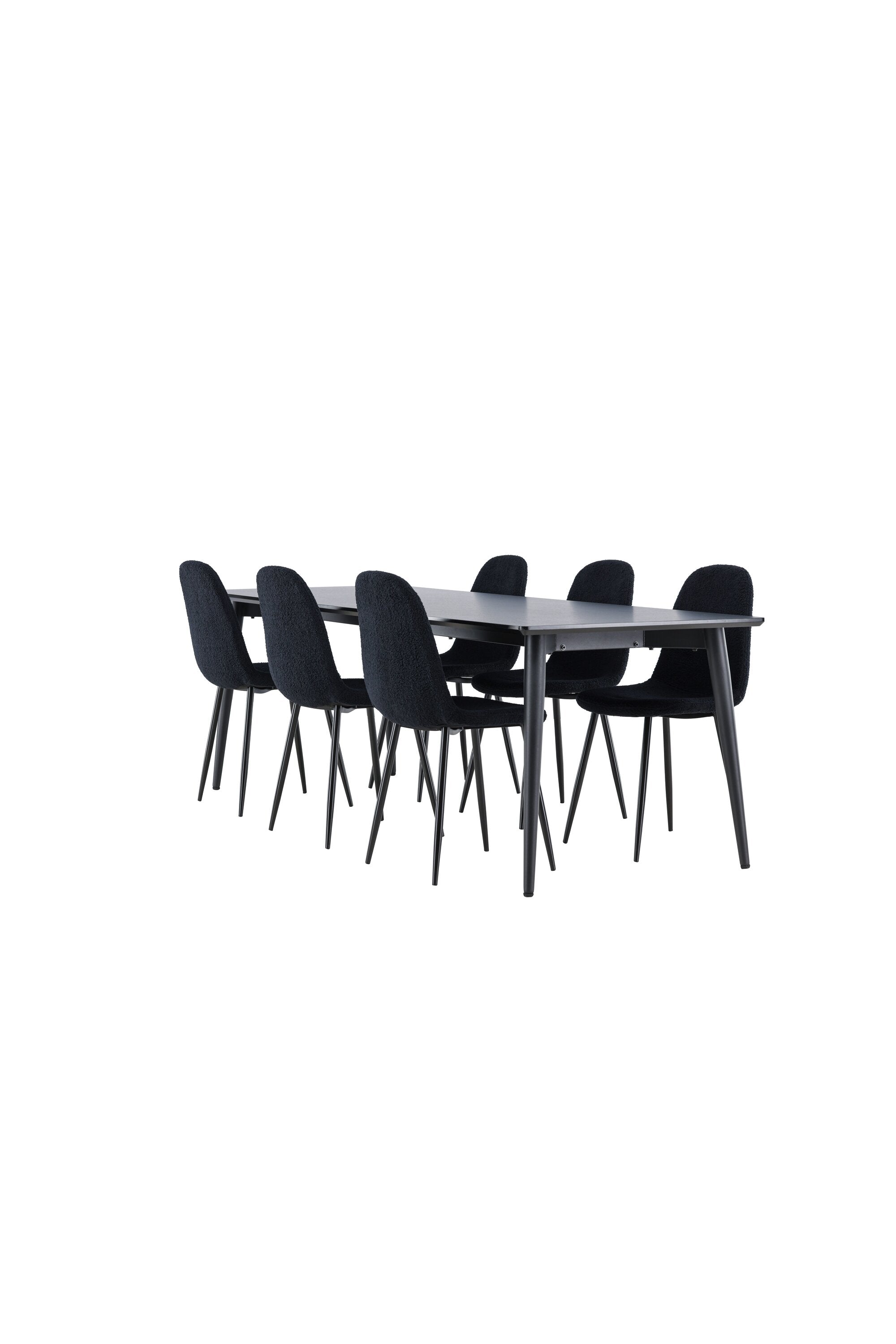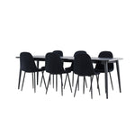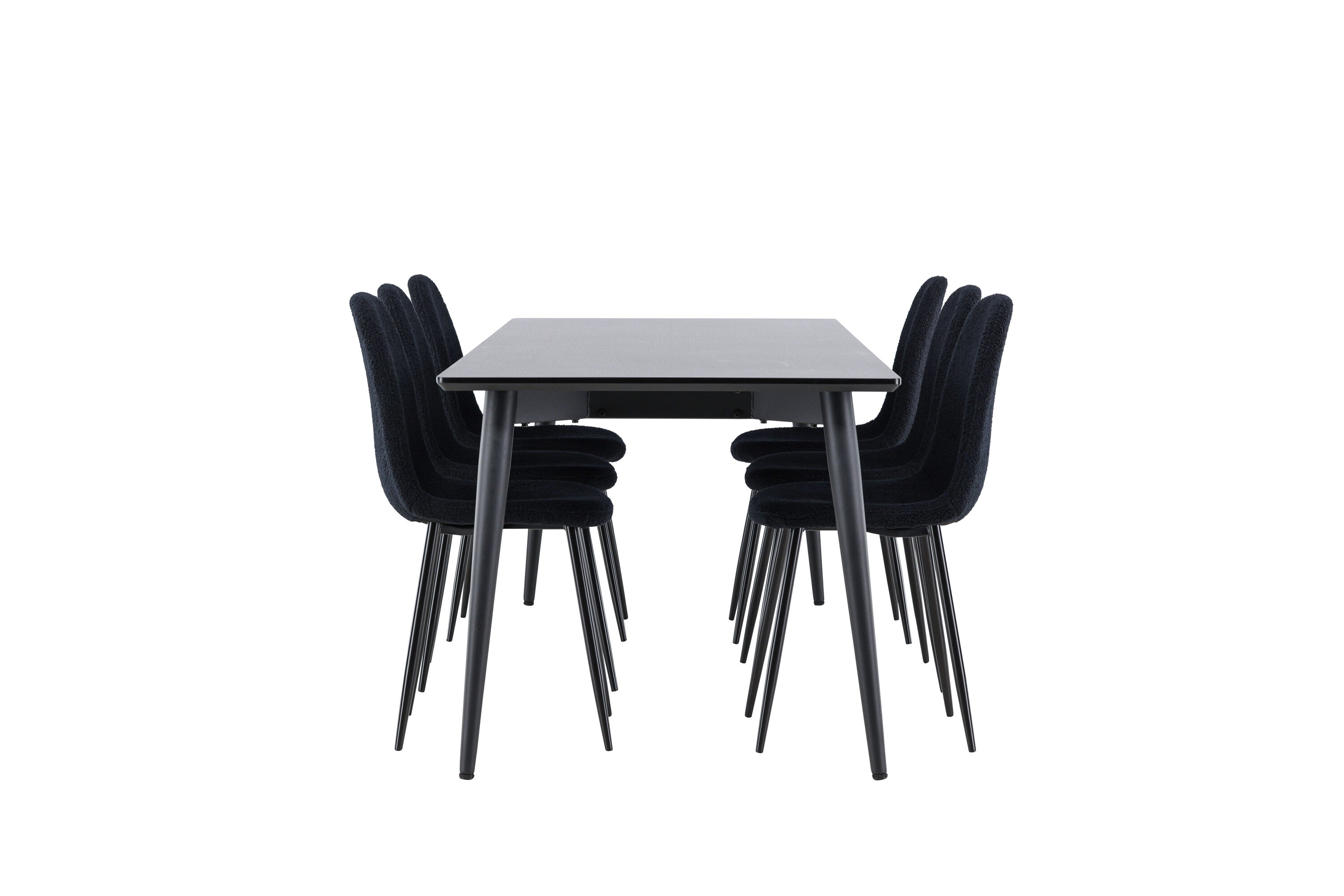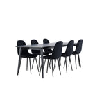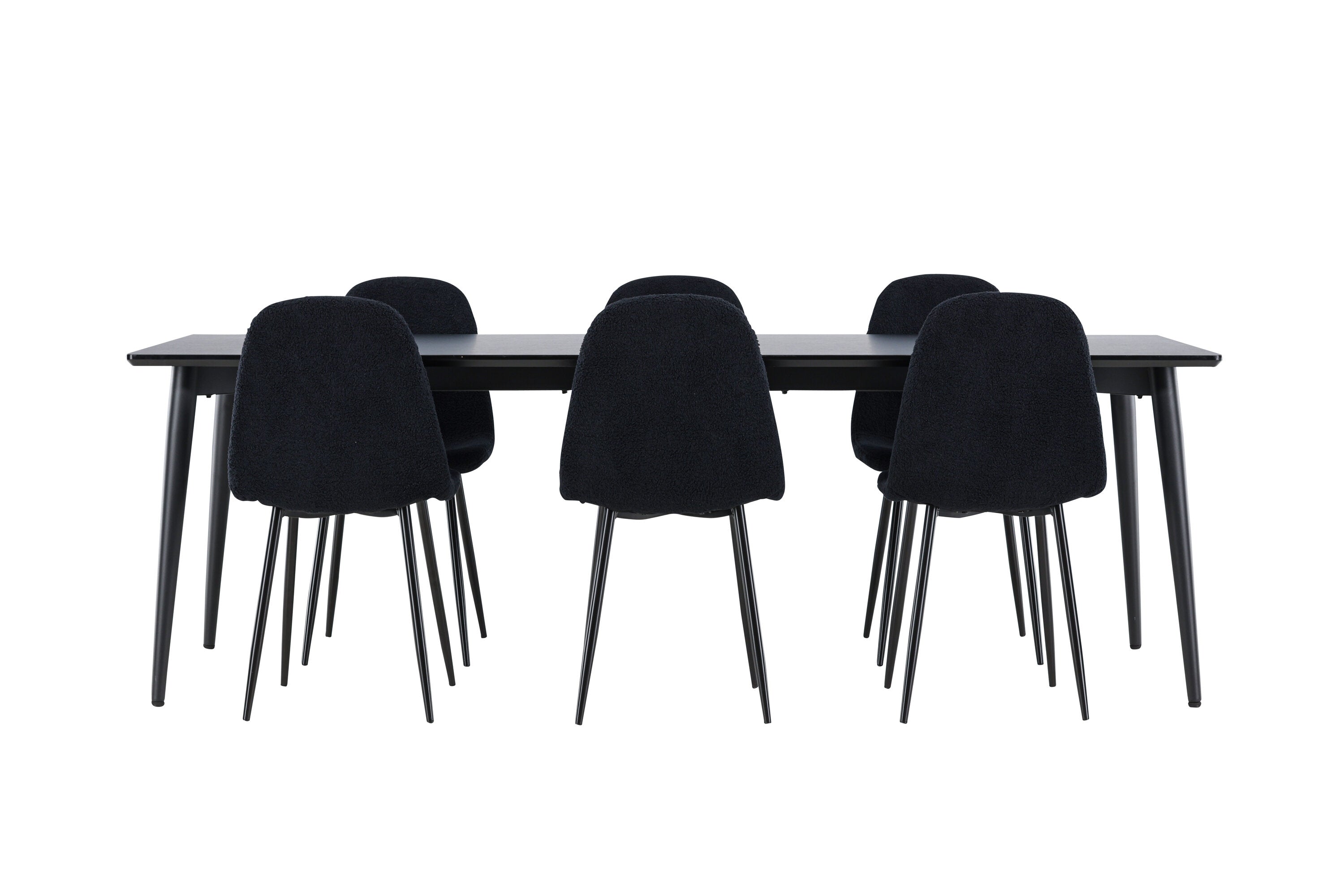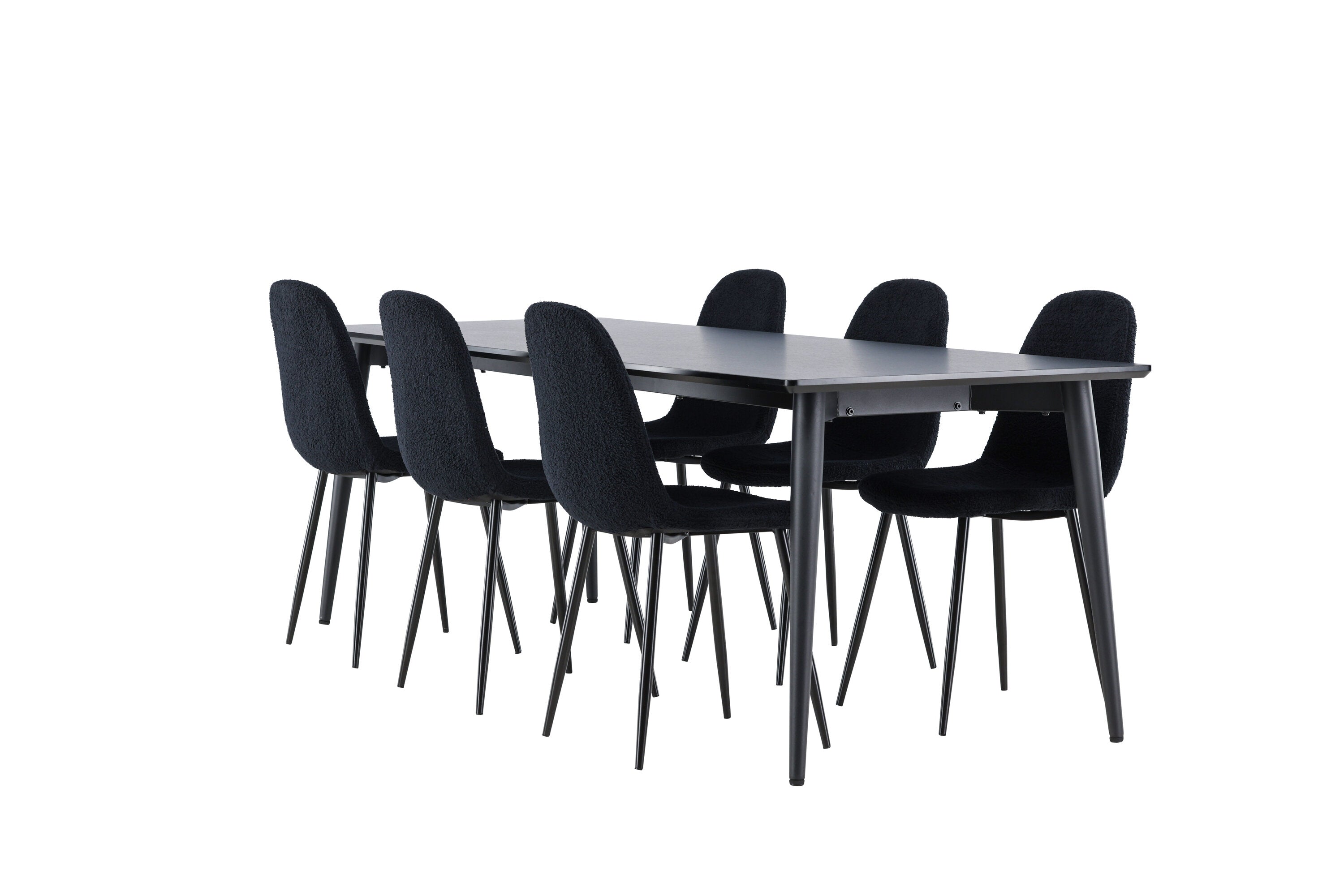 Objevte dokonalý jídelní set, který kombinuje moderní eleganci a robustnost s jídelní židlí Polar a jídelním stolem Ellis. Společně vytvářejí stylovou a příjemnou atmosféru pro všechna vaše jídla a setkání. Židle má certifikaci FSC® (FSC®C177288), což znamená, že se skládá ze dřeva z odpovědného lesnictví, lesnictví, které bere ohled na lidi a životní prostředí. Jídelní židle Polar je dokonalou kombinací moderní elegance a jednoduchosti pro vaše stolování. Polar je nejlepší volbou, která dodá vaší jídelně stylový a moderní nádech. Tmavě černá barva křesla a polyesterový plyšový materiál poskytují exkluzivní pocit a nabízejí pohodlné sezení na všech vašich večeřích a setkáních. Jeho moderní design a čisté linie poskytují nadčasovou estetiku, která doplňuje všechny styly interiéru. Nohy jídelní židle Polar jsou vyrobeny z černé oceli, poskytují pevnou a robustní konstrukci a zároveň přispívají k jejímu elegantnímu vzhledu. Díky své jednoduchosti a všestrannosti bude Polar vítaným doplňkem vašeho domova. Vylepšete svou jídelnu jídelní židli Polar - pohodlnou, moderní a stylovou židli, která je ideální pro každodenní použití a zvláštní příležitosti. Prozkoumejte Ellis – robustní jídelní stůl, který se stane centrem vašeho jídelního prostředí. Díky černé barvě dodává Ellis vašemu pokoji elegantní a moderní nádech. Stůl je vyroben s ocelovými nohami a deskou z MDF, což poskytuje dokonalou rovnováhu mezi robustností a stylem. Díky velkorysým rozměrům 230x85 cm je stůl Ellis perfektní pro společenské večeře a setkání s přáteli a rodinou. Jeho robustní konstrukce a elegantní design z něj činí spolehlivý kus nábytku vhodný pro všechny příležitosti. Ať už jej použijete pro rodinnou večeři nebo pořádání večírku, Ellis vytvoří trendy a stylovou atmosféru u vás doma. Vylepšete svůj jídelní kout elegantním a robustním jídelním stolem Ellis.