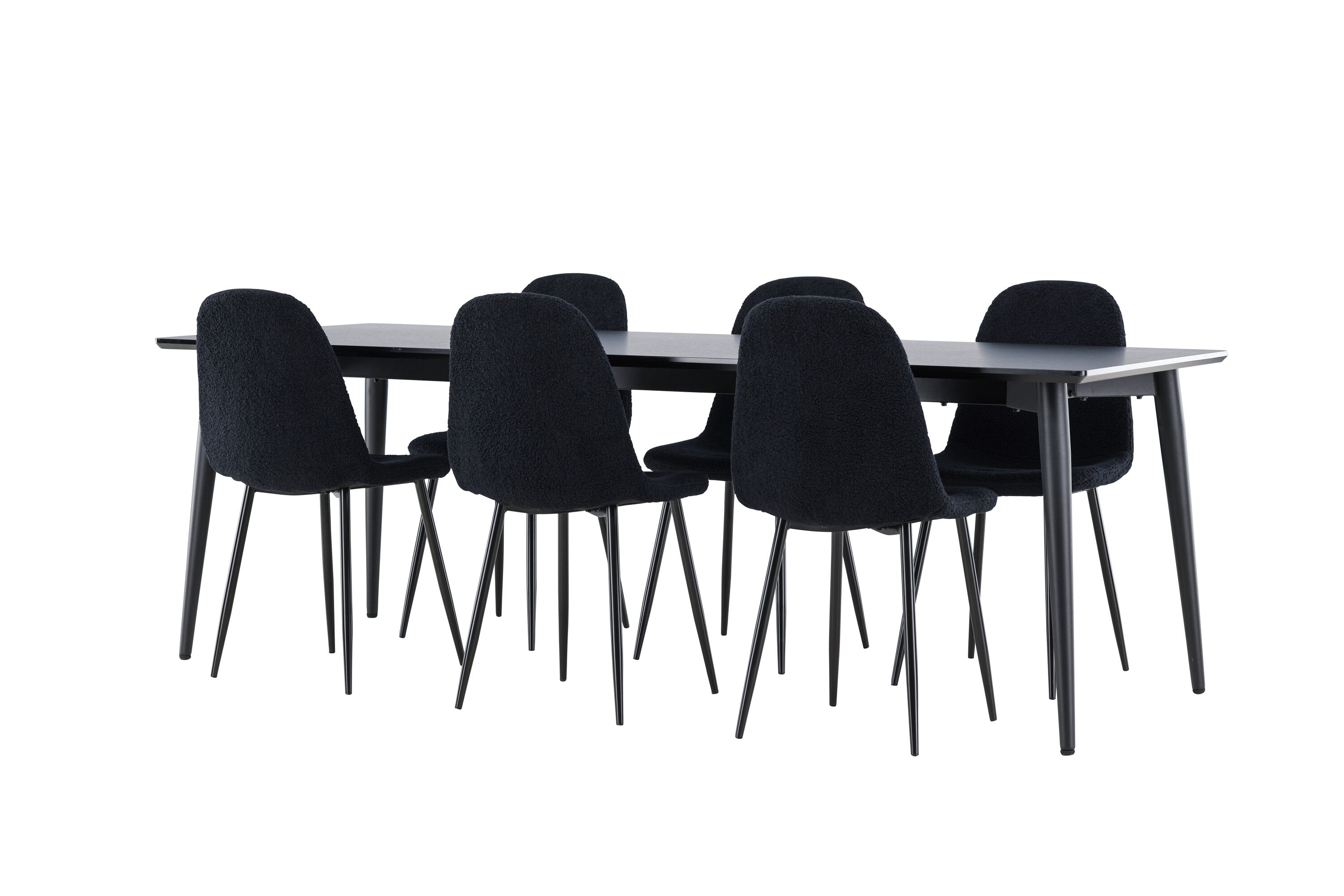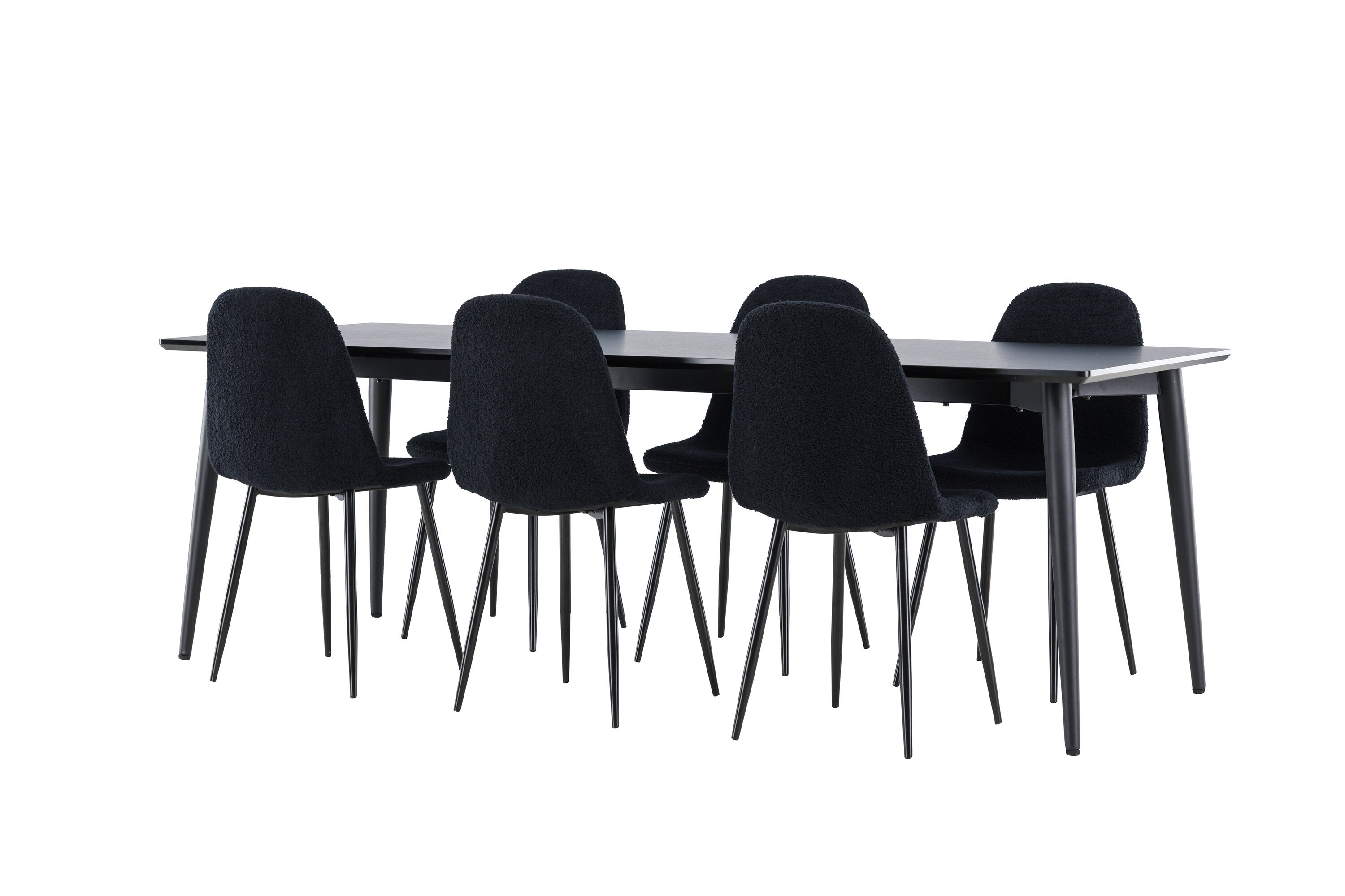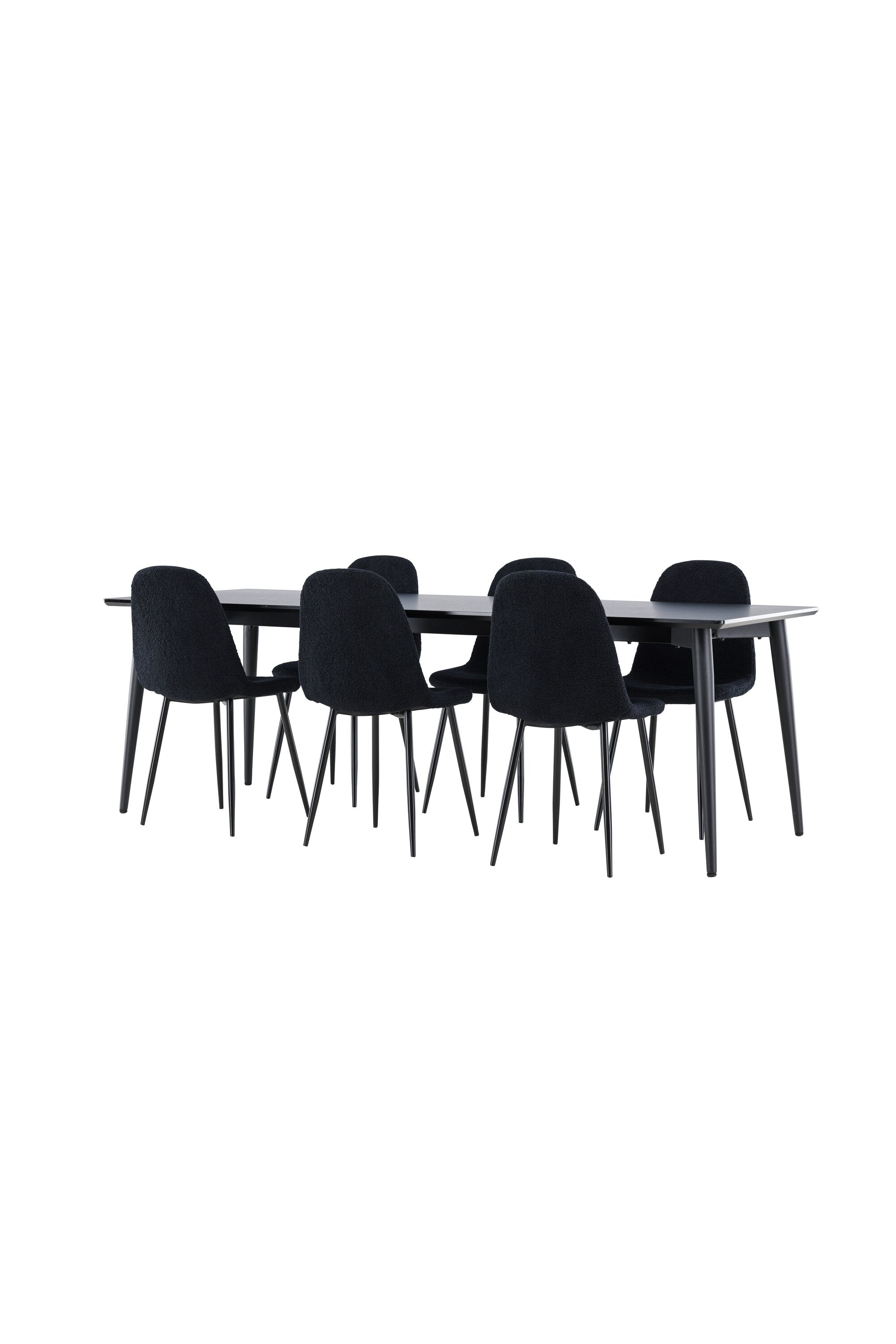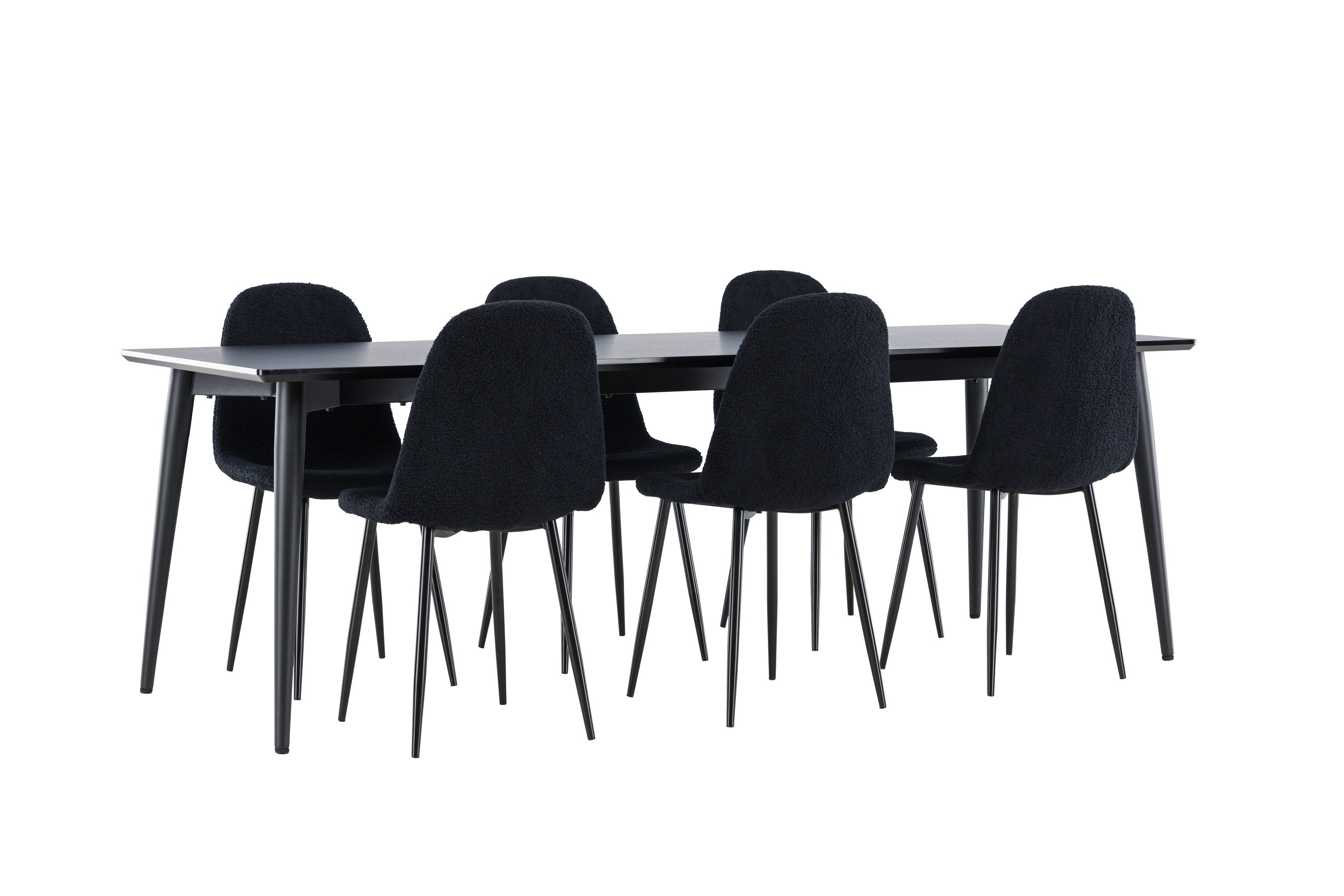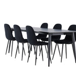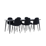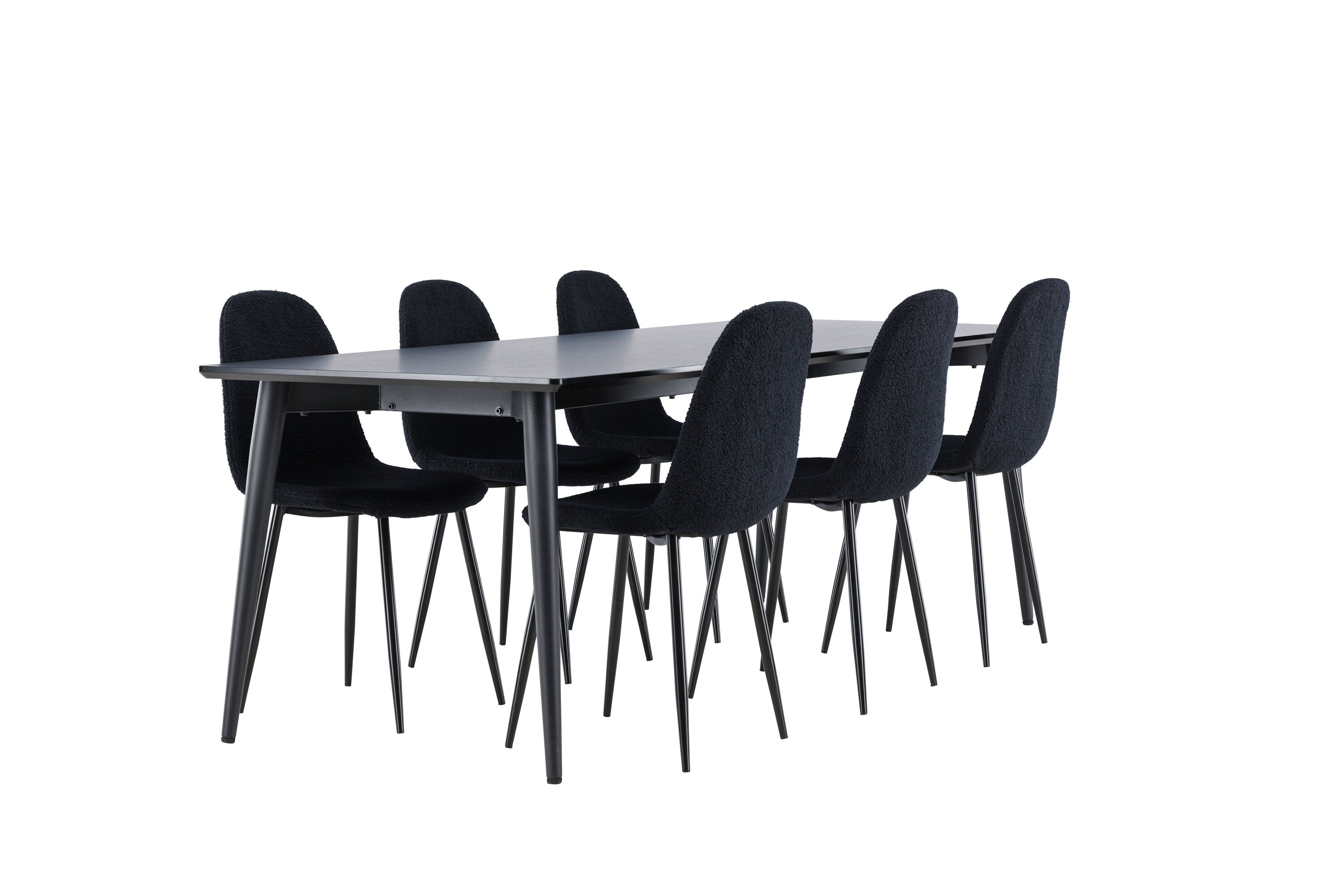 Objevte dokonalý jídelní set, který kombinuje moderní eleganci a robustnost s jídelní židlí Polar a jídelním stolem Ellis. Společně vytvářejí stylovou a příjemnou atmosféru pro všechna vaše jídla a setkání. Židle má certifikaci FSC® (FSC®C177288), což znamená, že se skládá ze dřeva z odpovědného lesnictví, lesnictví, které bere ohled na lidi a životní prostředí. Jídelní židle Polar je dokonalou kombinací moderní elegance a jednoduchosti pro vaše stolování. Polar je nejlepší volbou, která dodá vaší jídelně stylový a moderní nádech. Tmavě černá barva křesla a polyesterový plyšový materiál poskytují exkluzivní pocit a nabízejí pohodlné sezení na všech vašich večeřích a setkáních. Jeho moderní design a čisté linie poskytují nadčasovou estetiku, která doplňuje všechny styly interiéru. Nohy jídelní židle Polar jsou vyrobeny z černé oceli, poskytují pevnou a robustní konstrukci a zároveň přispívají k jejímu elegantnímu vzhledu. Díky své jednoduchosti a všestrannosti bude Polar vítaným doplňkem vašeho domova. Vylepšete svou jídelnu jídelní židli Polar - pohodlnou, moderní a stylovou židli, která je ideální pro každodenní použití a zvláštní příležitosti. Prozkoumejte Ellis – robustní jídelní stůl, který se stane centrem vašeho jídelního prostředí. Díky černé barvě dodává Ellis vašemu pokoji elegantní a moderní nádech. Stůl je vyroben s ocelovými nohami a deskou z MDF, což poskytuje dokonalou rovnováhu mezi robustností a stylem. Díky velkorysým rozměrům 230x85 cm je stůl Ellis perfektní pro společenské večeře a setkání s přáteli a rodinou. Jeho robustní konstrukce a elegantní design z něj činí spolehlivý kus nábytku vhodný pro všechny příležitosti. Ať už jej použijete pro rodinnou večeři nebo pořádání večírku, Ellis vytvoří trendy a stylovou atmosféru u vás doma. Vylepšete svůj jídelní kout elegantním a robustním jídelním stolem Ellis.