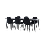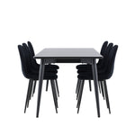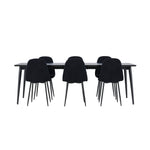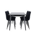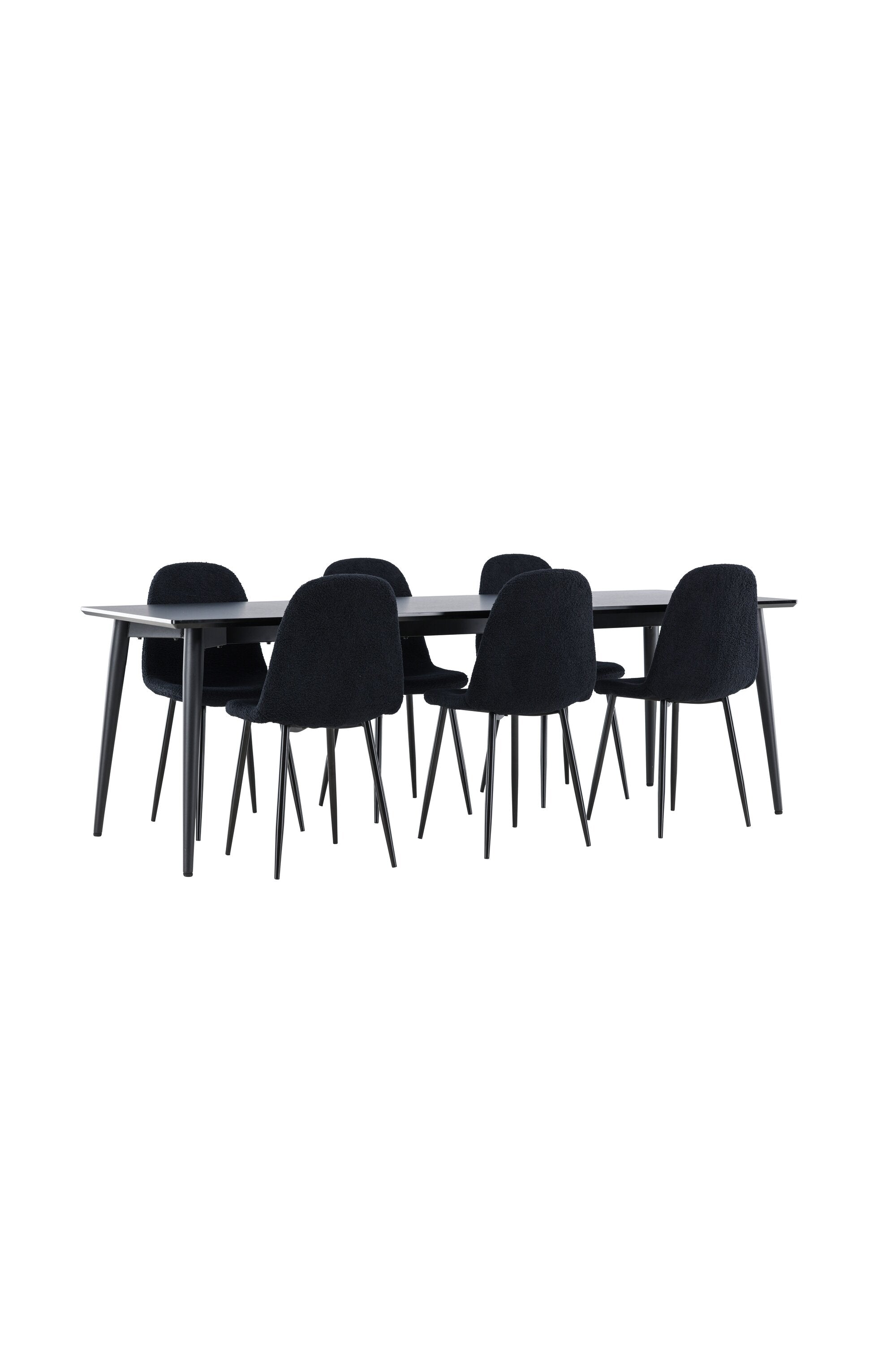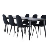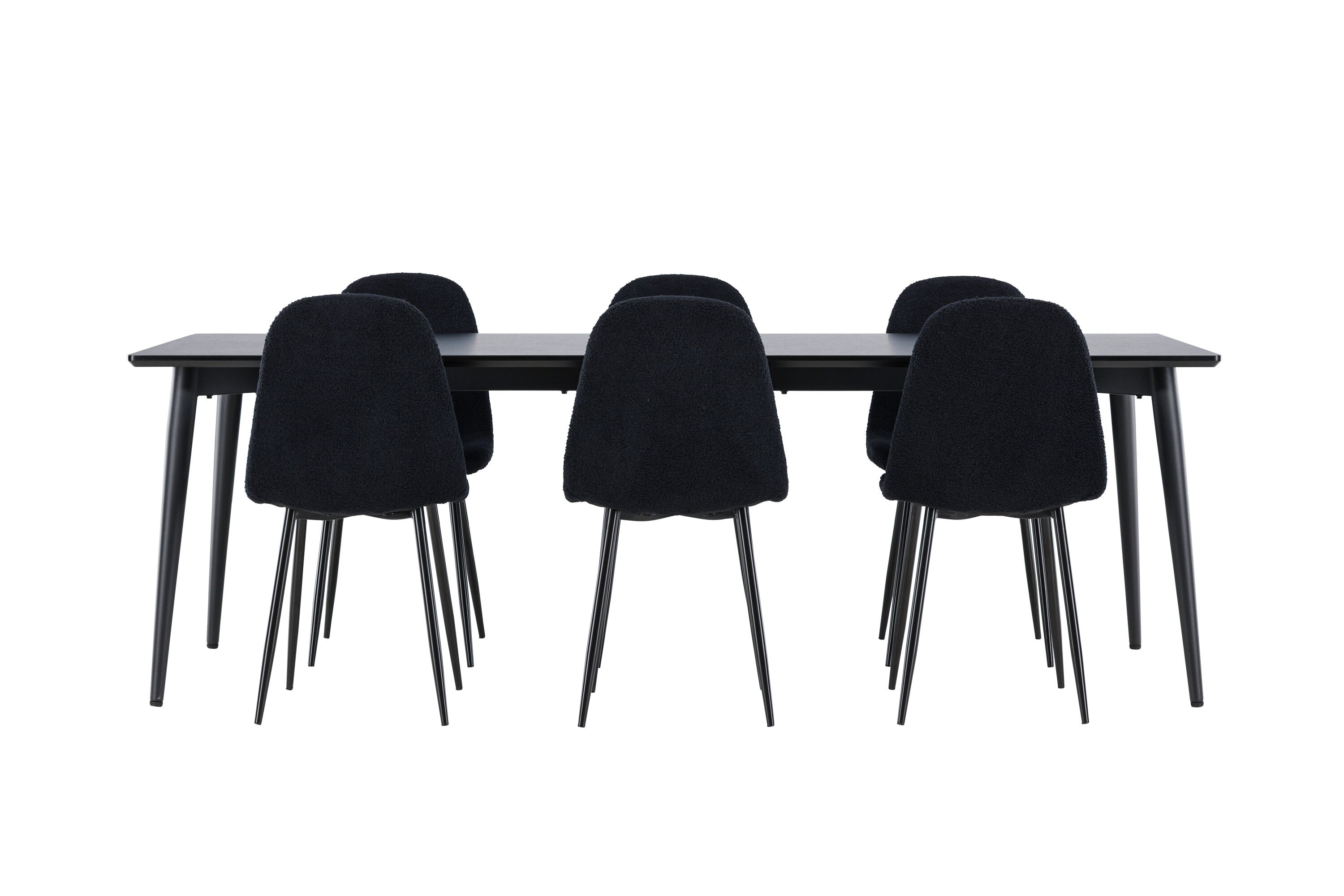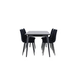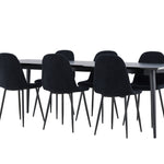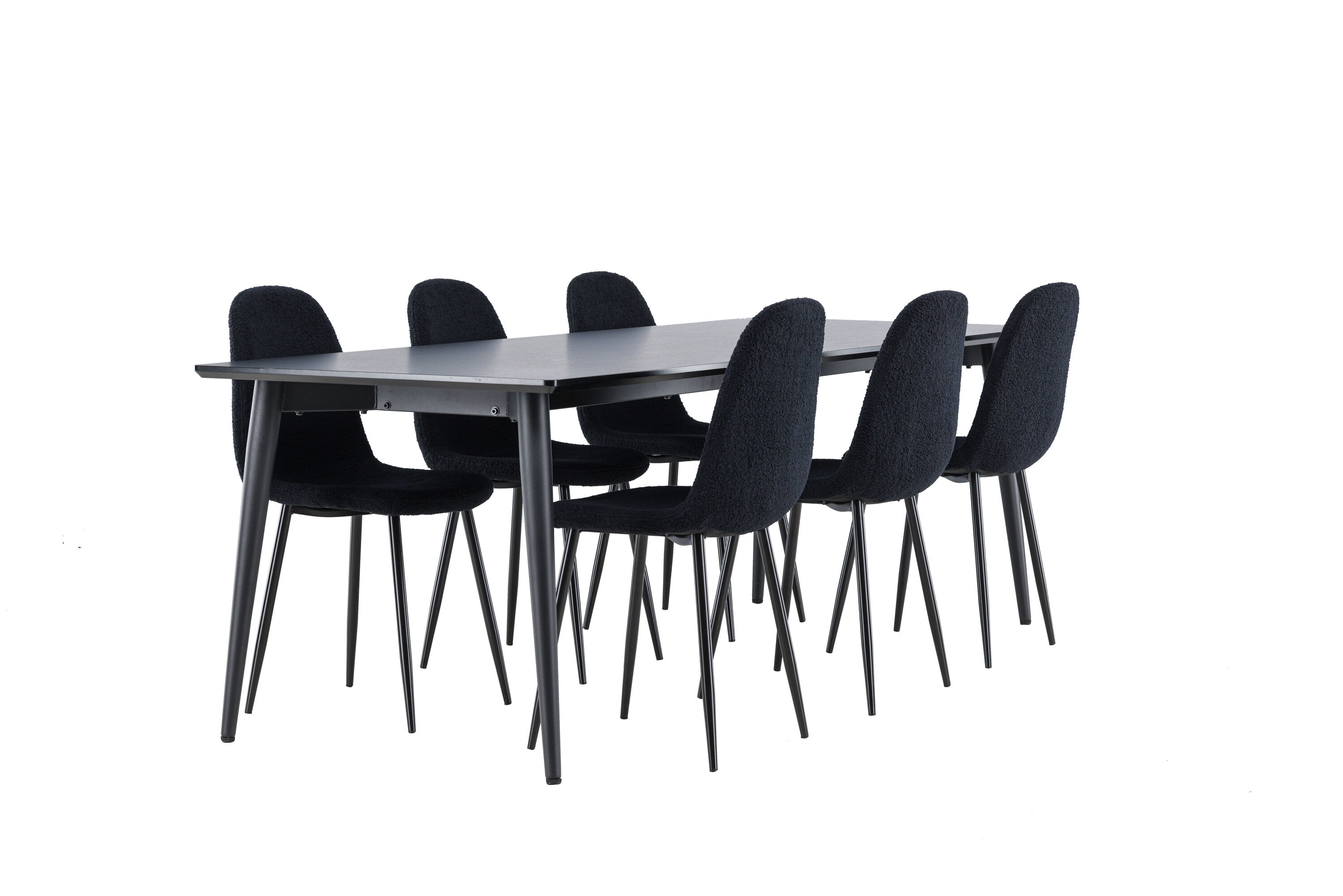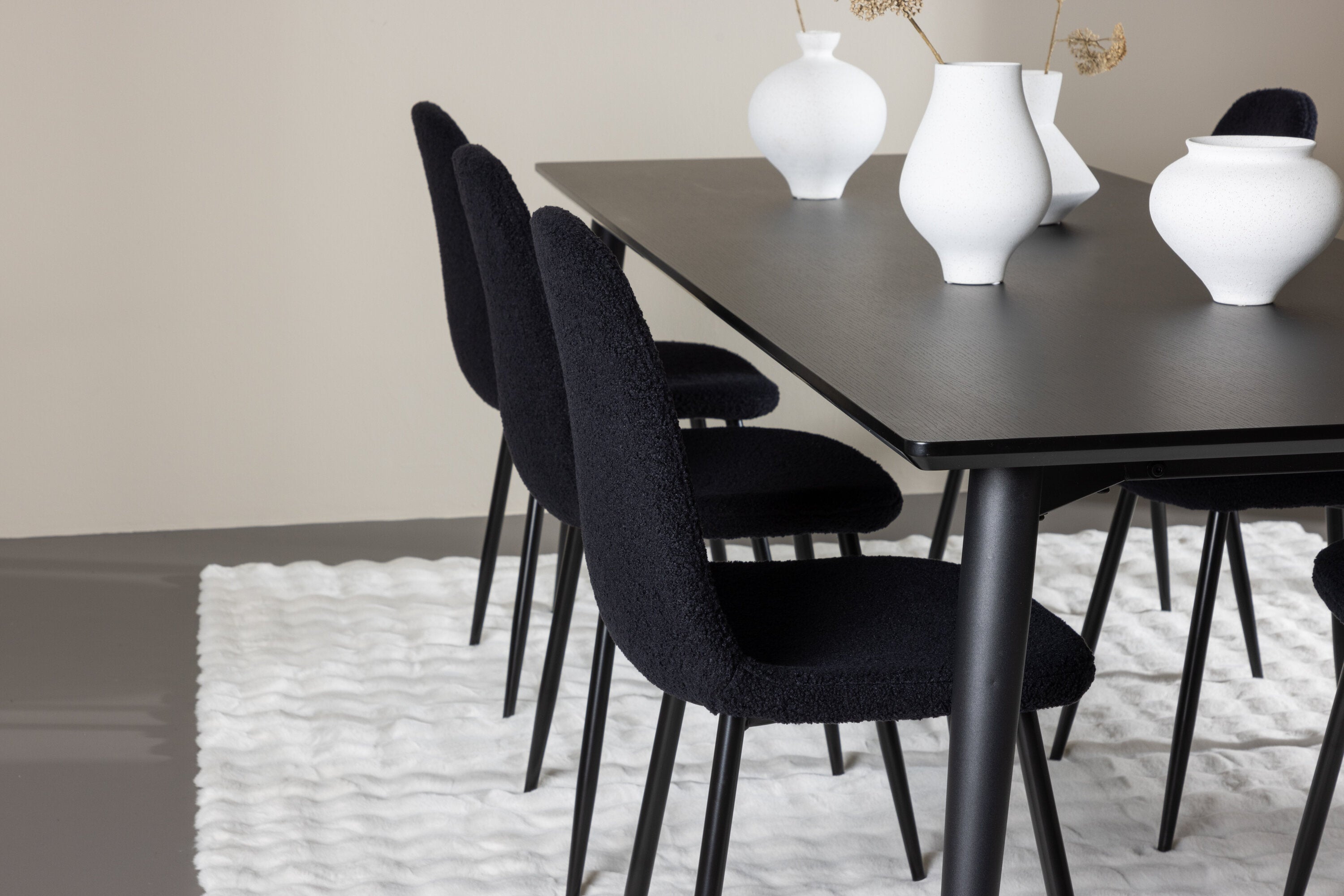 Objevte dokonalý jídelní set, který kombinuje moderní eleganci a robustnost s jídelní židlí Polar a jídelním stolem Ellis. Společně vytvářejí stylovou a příjemnou atmosféru pro všechna vaše jídla a setkání. Židle má certifikaci FSC® (FSC®C177288), což znamená, že se skládá ze dřeva z odpovědného lesnictví, lesnictví, které bere ohled na lidi a životní prostředí. Jídelní židle Polar je dokonalou kombinací moderní elegance a jednoduchosti pro vaše stolování. Polar je nejlepší volbou, která dodá vaší jídelně stylový a moderní nádech. Tmavě černá barva křesla a polyesterový plyšový materiál poskytují exkluzivní pocit a nabízejí pohodlné sezení na všech vašich večeřích a setkáních. Jeho moderní design a čisté linie poskytují nadčasovou estetiku, která doplňuje všechny styly interiéru. Nohy jídelní židle Polar jsou vyrobeny z černé oceli, poskytují pevnou a robustní konstrukci a zároveň přispívají k jejímu elegantnímu vzhledu. Díky své jednoduchosti a všestrannosti bude Polar vítaným doplňkem vašeho domova. Vylepšete svou jídelnu jídelní židli Polar - pohodlnou, moderní a stylovou židli, která je ideální pro každodenní použití a zvláštní příležitosti. Prozkoumejte Ellis – robustní jídelní stůl, který se stane centrem vašeho jídelního prostředí. Díky černé barvě dodává Ellis vašemu pokoji elegantní a moderní nádech. Stůl je vyroben s ocelovými nohami a deskou z MDF, což poskytuje dokonalou rovnováhu mezi robustností a stylem. Díky velkorysým rozměrům 230x85 cm je stůl Ellis perfektní pro společenské večeře a setkání s přáteli a rodinou. Jeho robustní konstrukce a elegantní design z něj činí spolehlivý kus nábytku vhodný pro všechny příležitosti. Ať už jej použijete pro rodinnou večeři nebo pořádání večírku, Ellis vytvoří trendy a stylovou atmosféru u vás doma. Vylepšete svůj jídelní kout elegantním a robustním jídelním stolem Ellis.