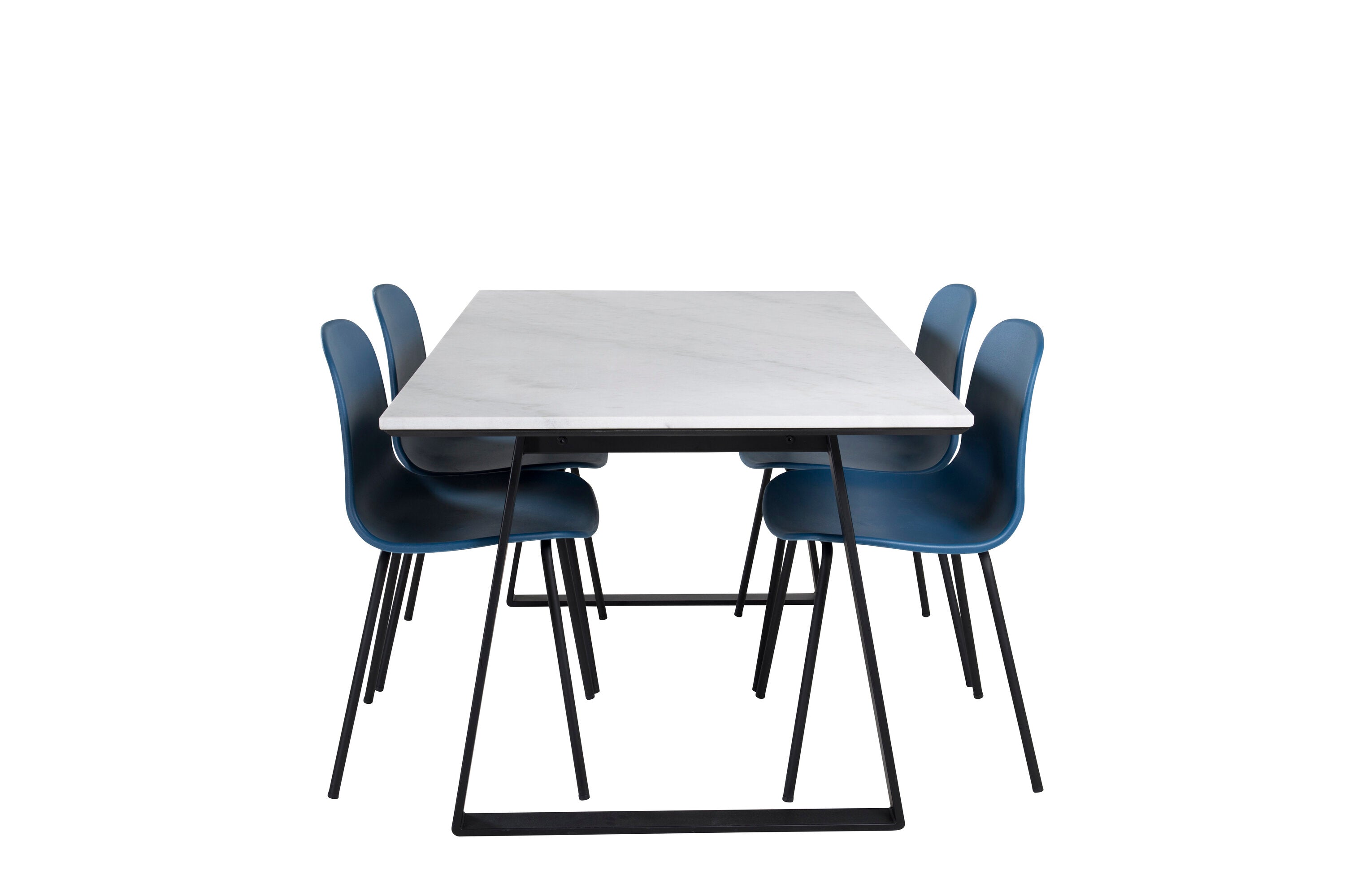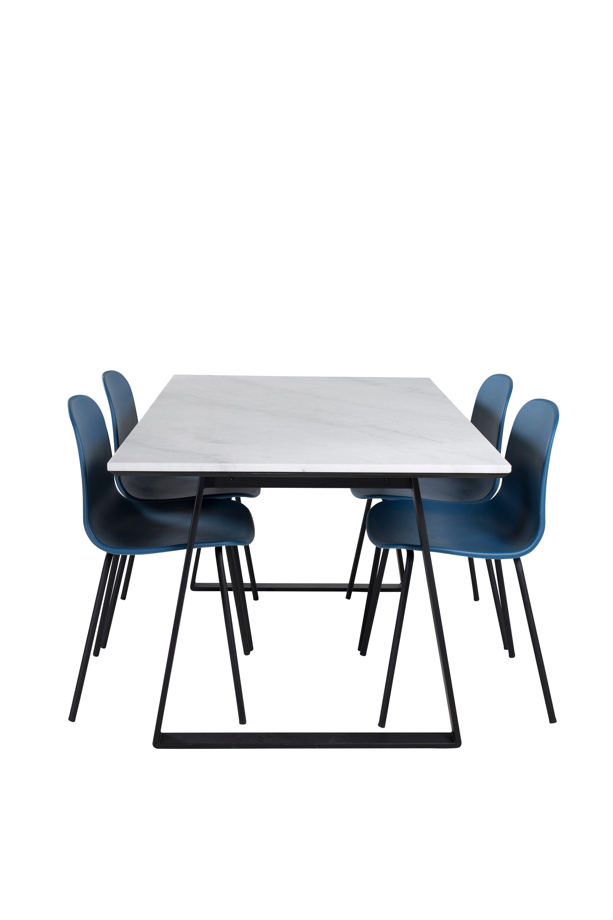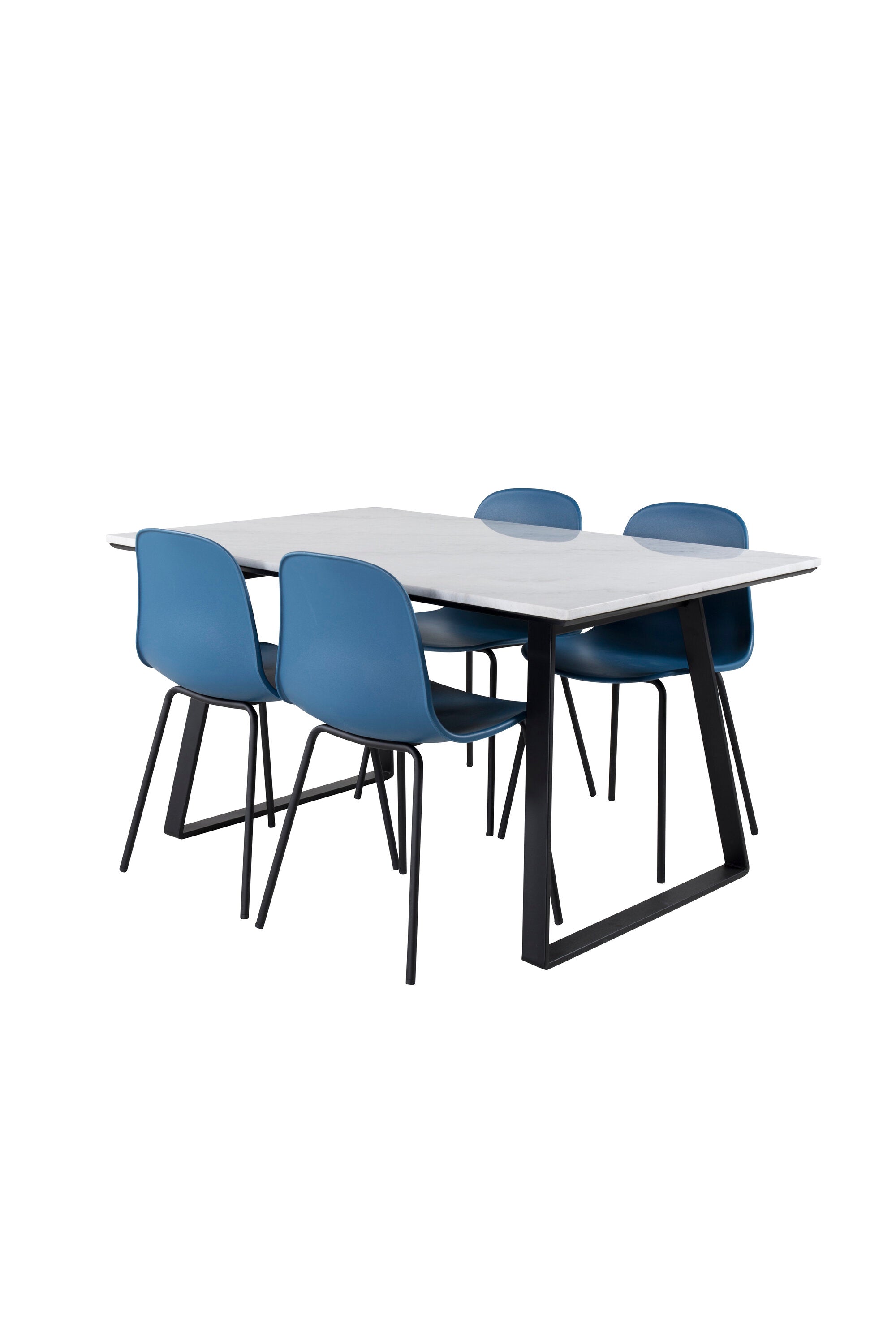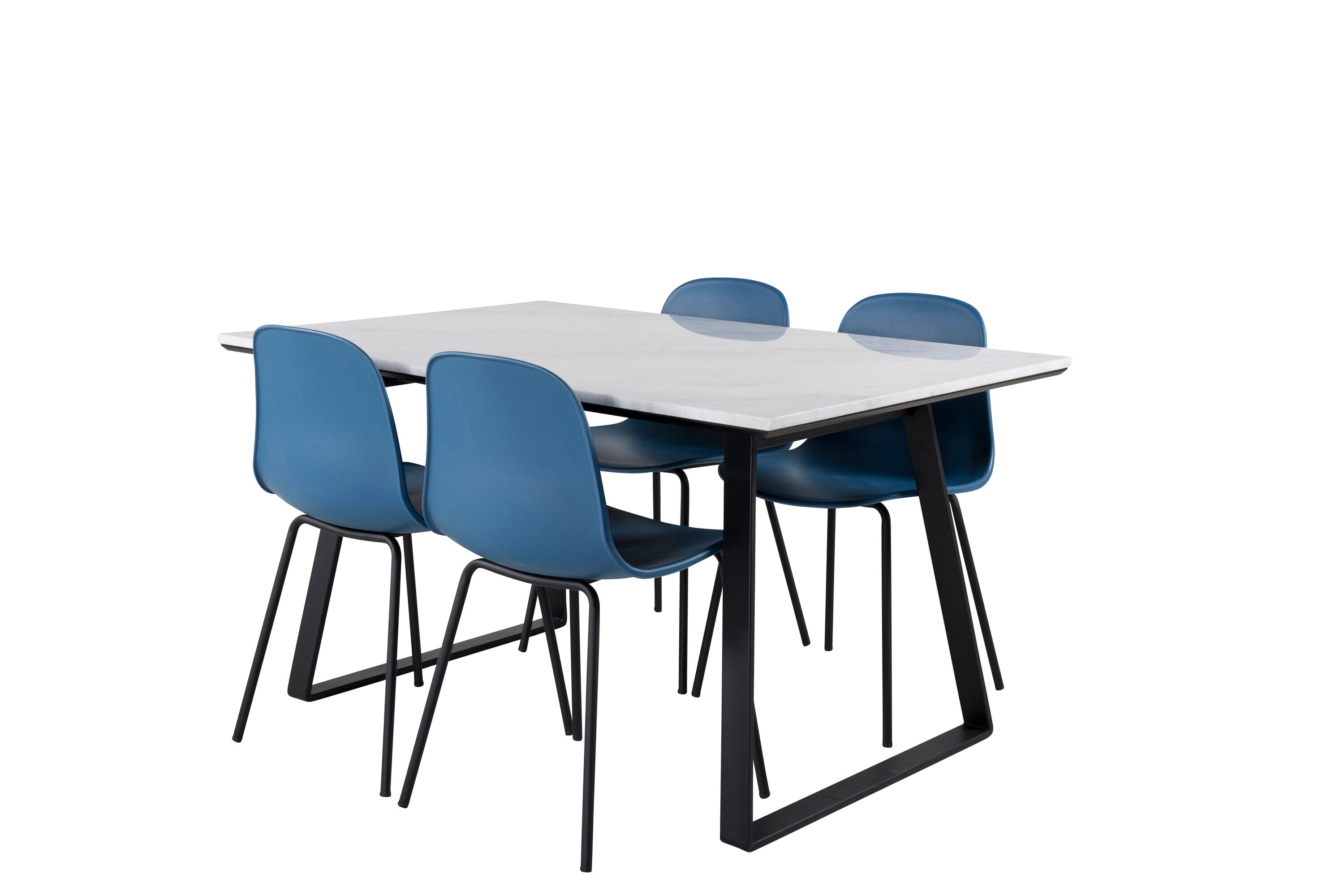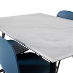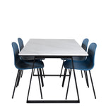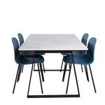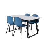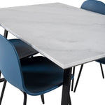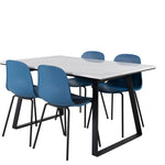 Jídelní stůl Estelle 140*90 - Bílá / Černá + Jídelní židle Arctic - Černé nohy - Modrý plast_4